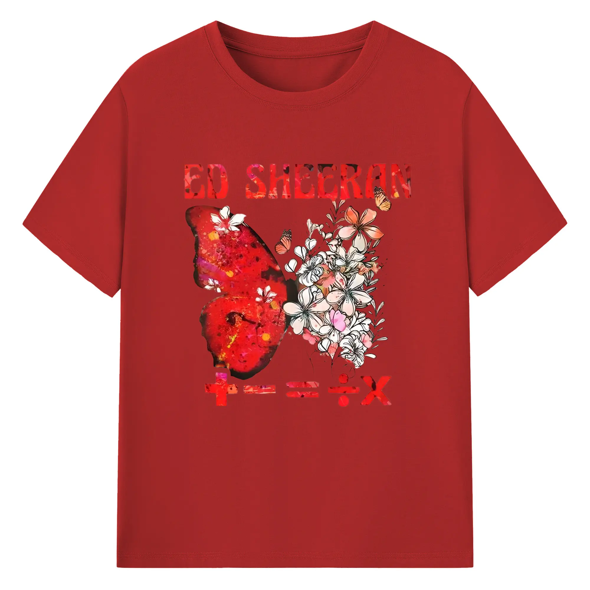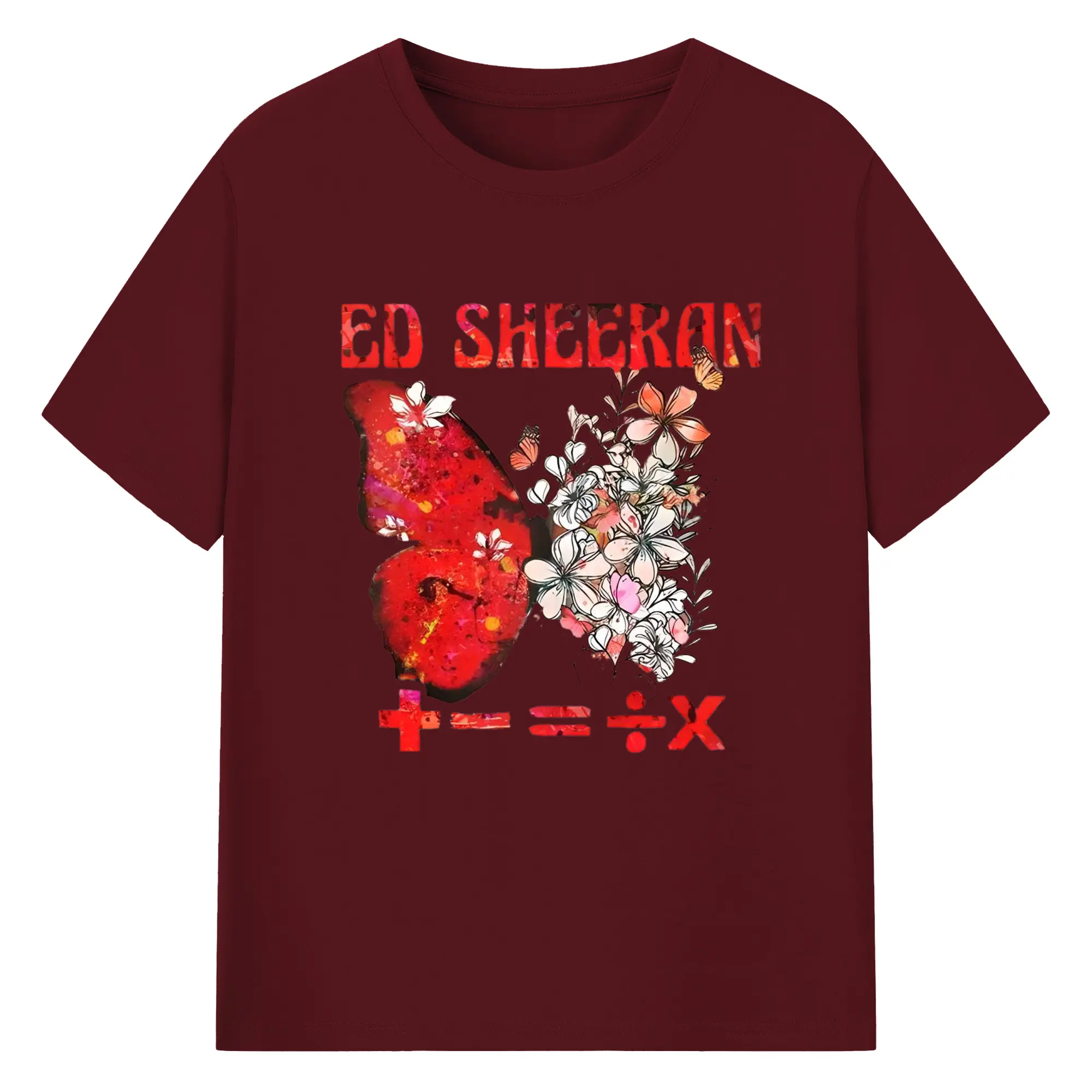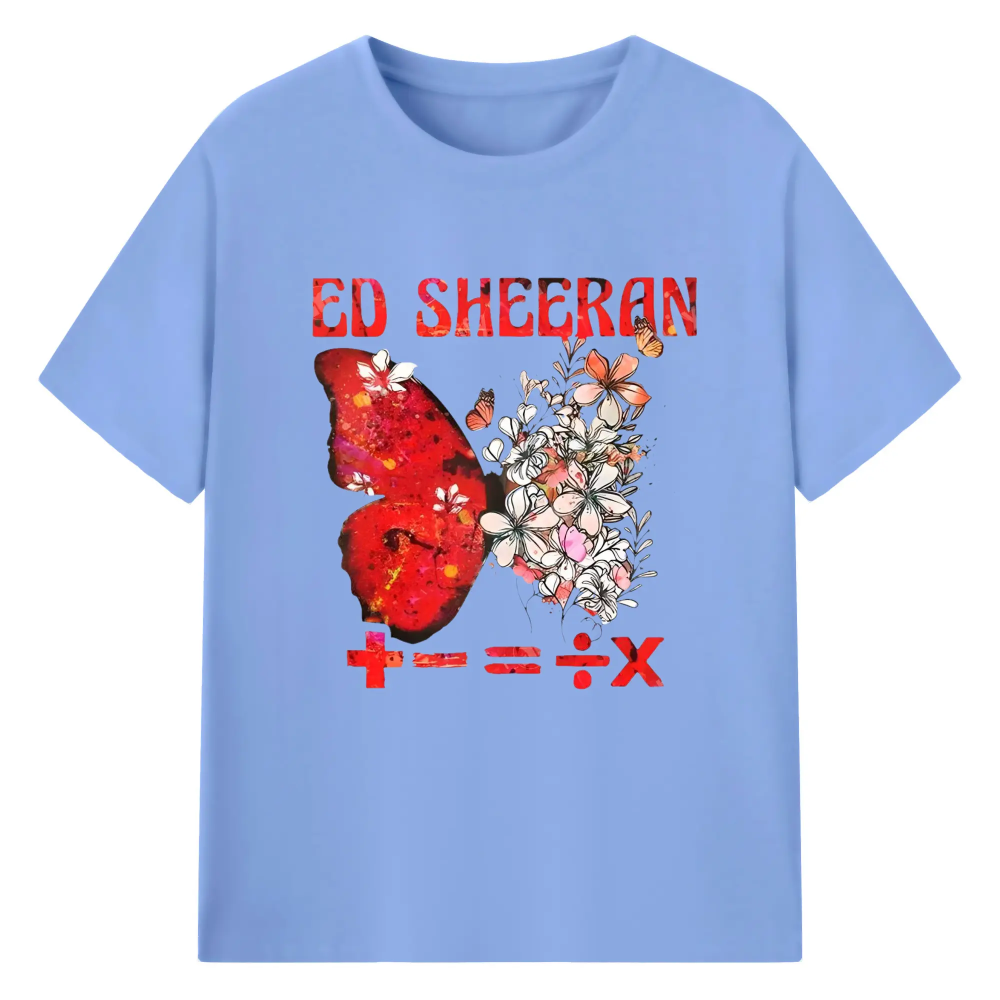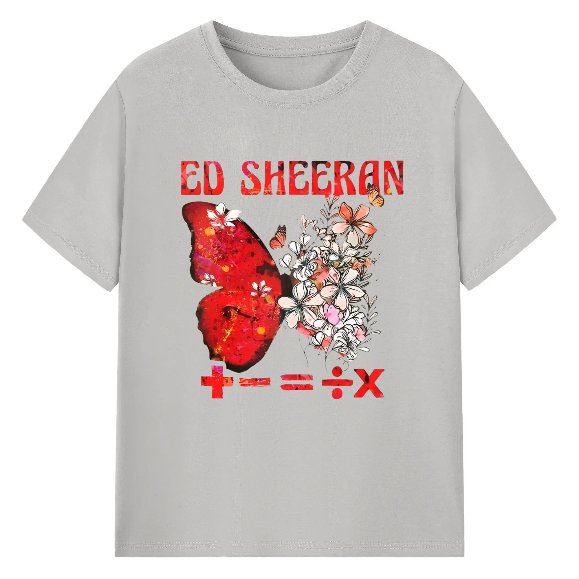 Ed Sheeran Pop Music Floral Butterfly DIY - 180g Cotton T-Shirt With Front Heat Transfer Print – Soft, Lightweight, Fitted Design – Comfortable Casual Wear For Sports & Everyday Use