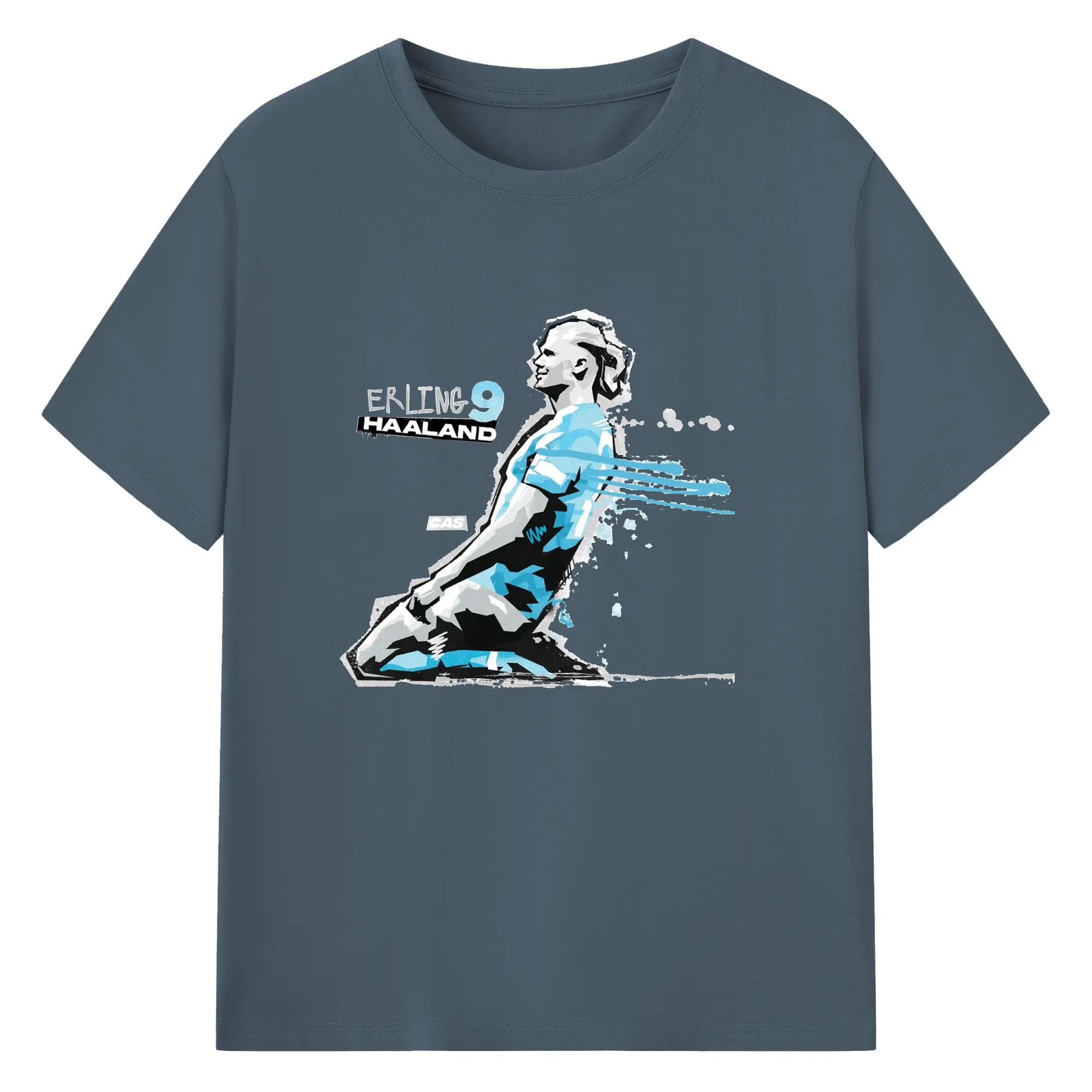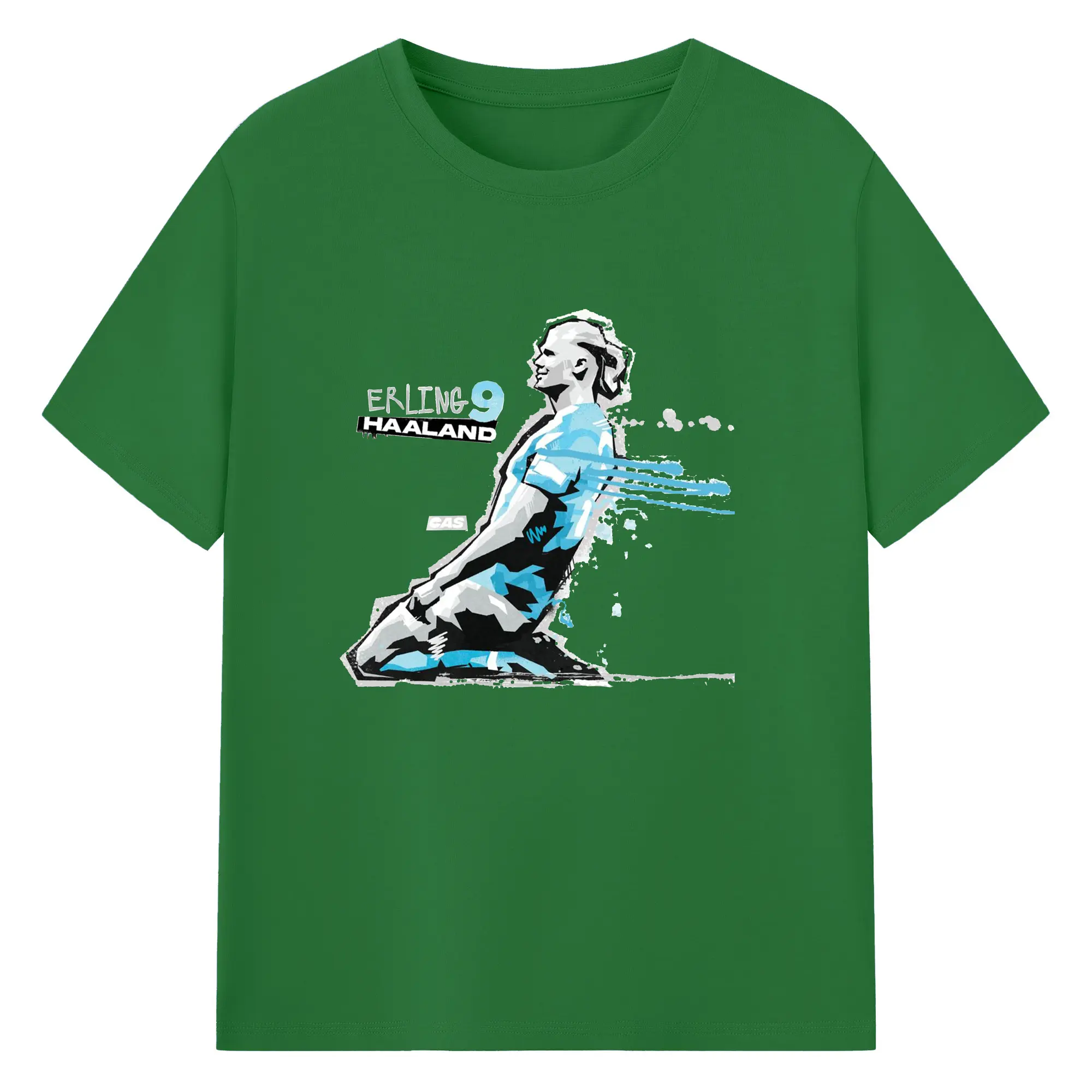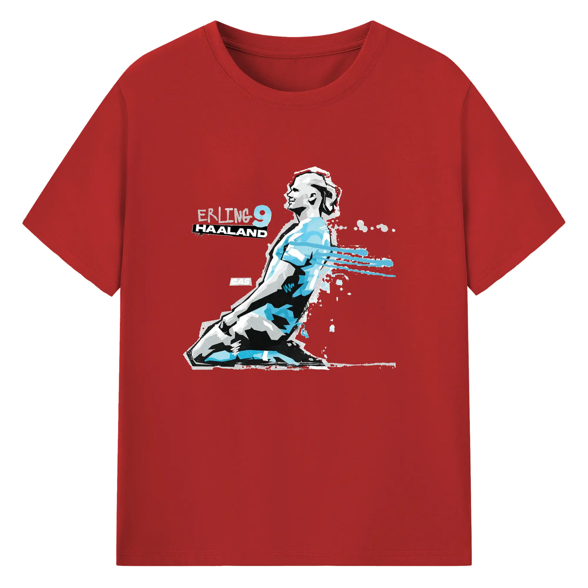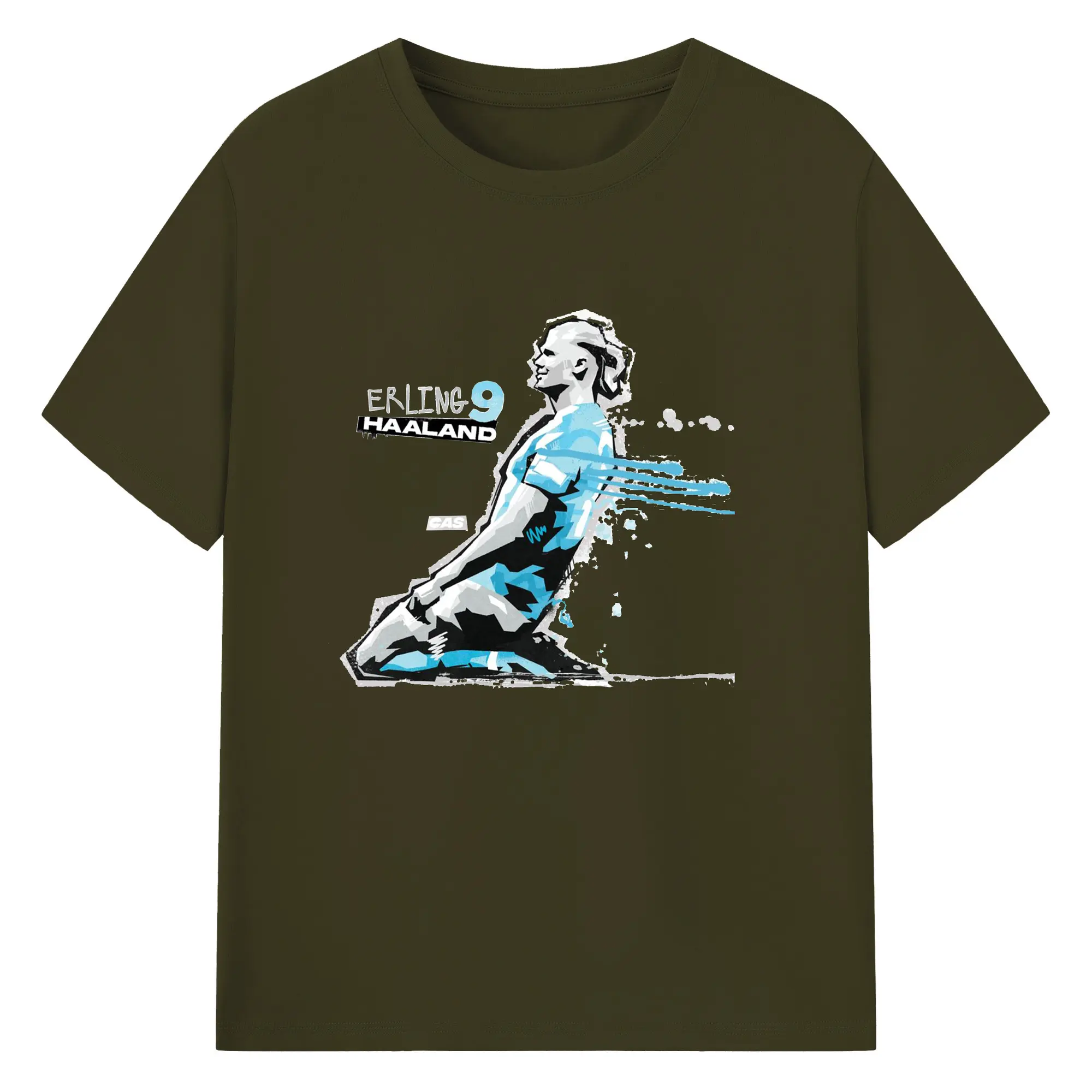 Erling Haaland #9 Soccer Star Slide Celebration DIY Shirt - 180g Cotton T-Shirt With Front Heat Transfer Print – Soft, Lightweight, Fitted Design – Comfortable Casual Wear For Sports & Everyday Use