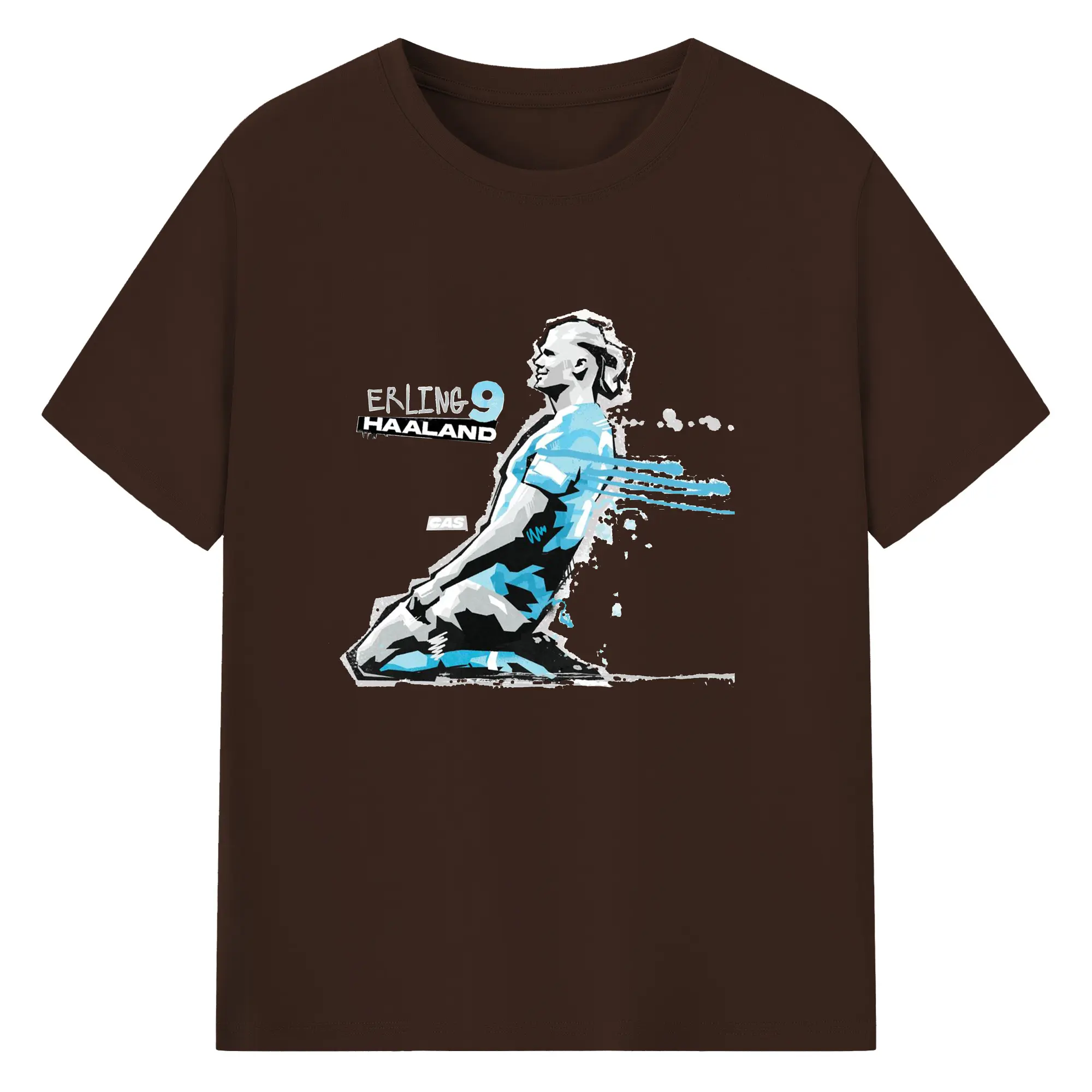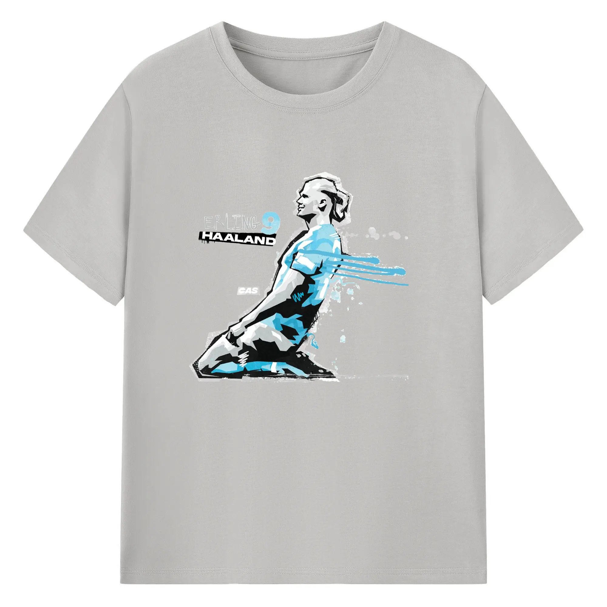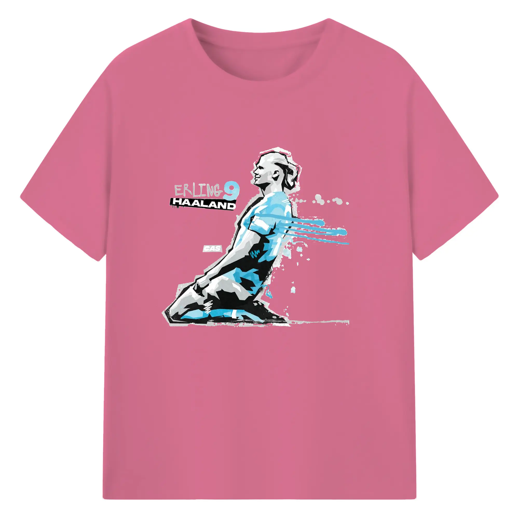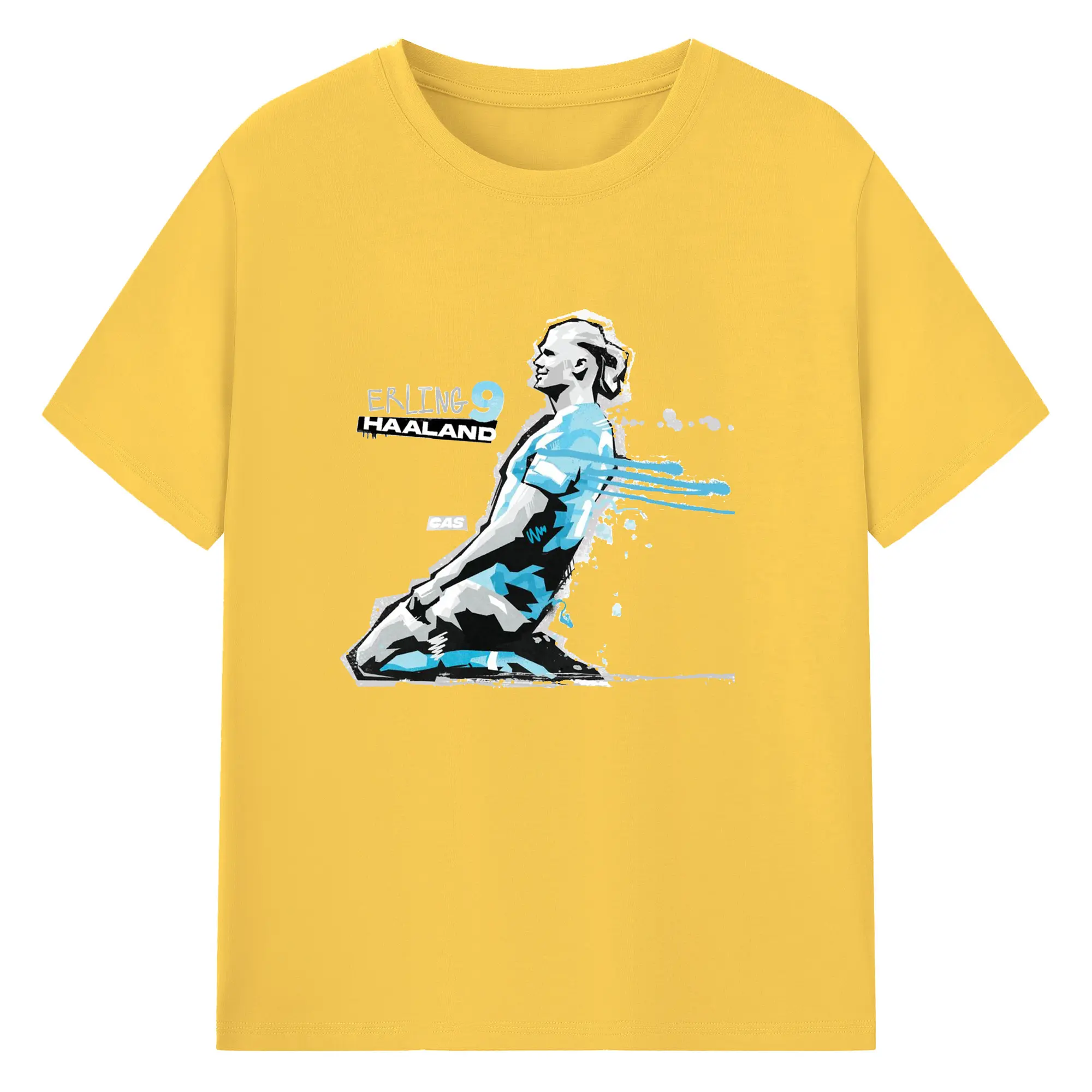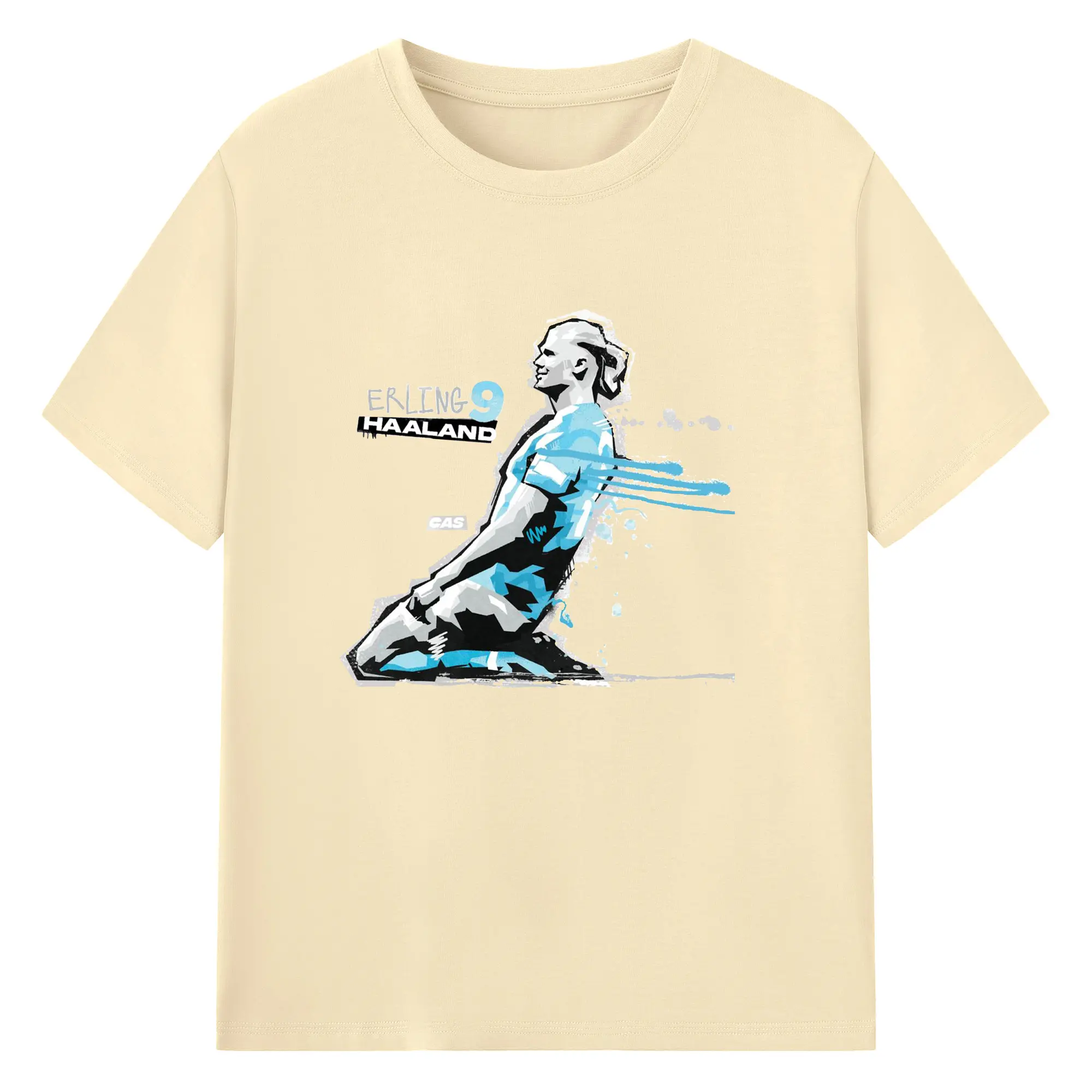 Erling Haaland #9 Soccer Star Slide Celebration DIY Shirt - 180g Cotton T-Shirt With Front Heat Transfer Print – Soft, Lightweight, Fitted Design – Comfortable Casual Wear For Sports & Everyday Use