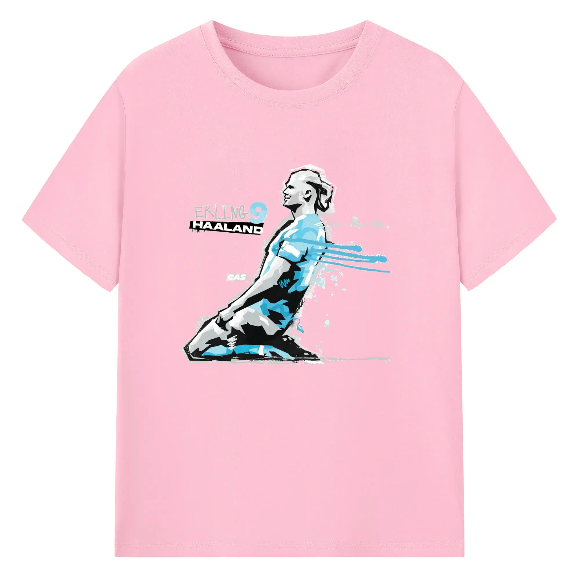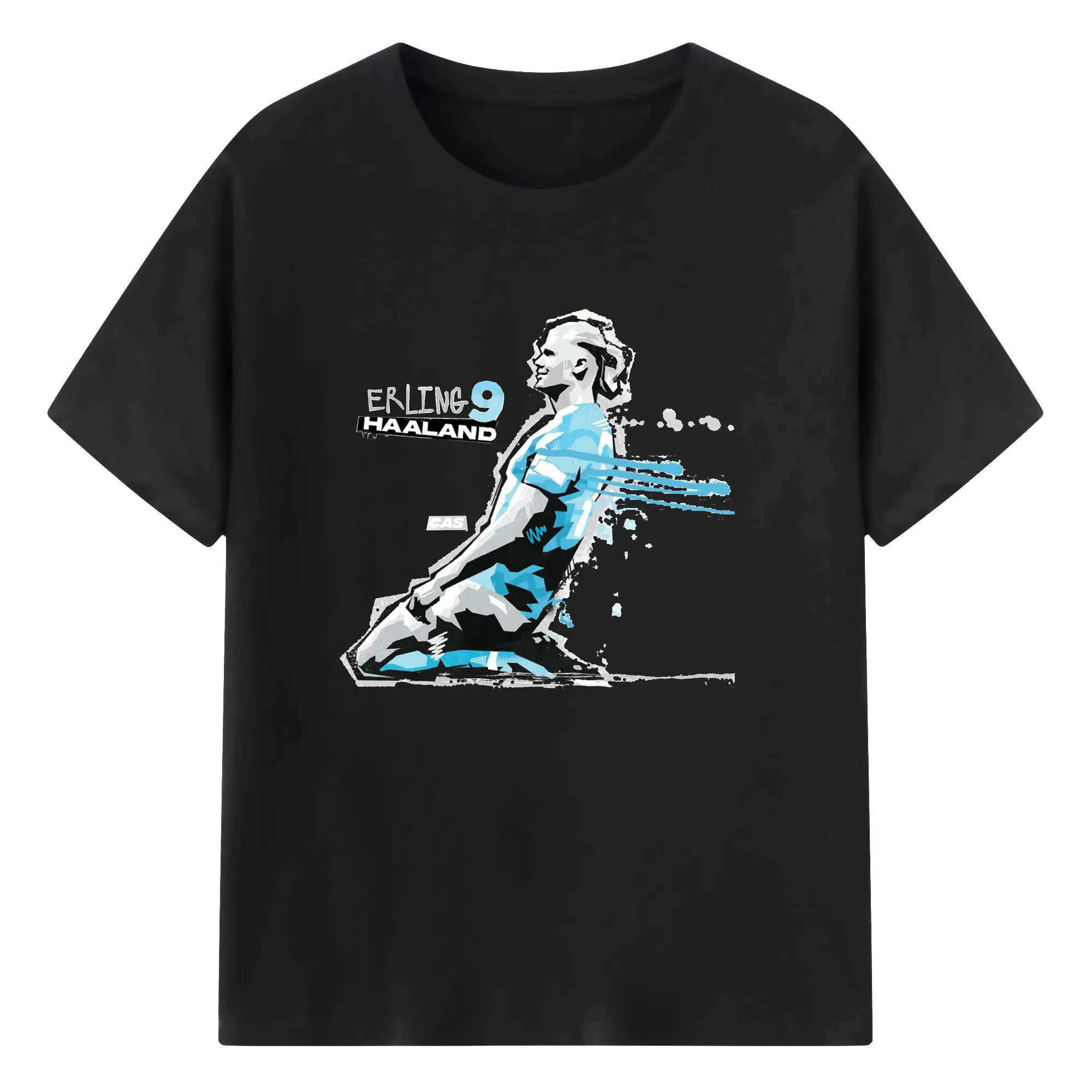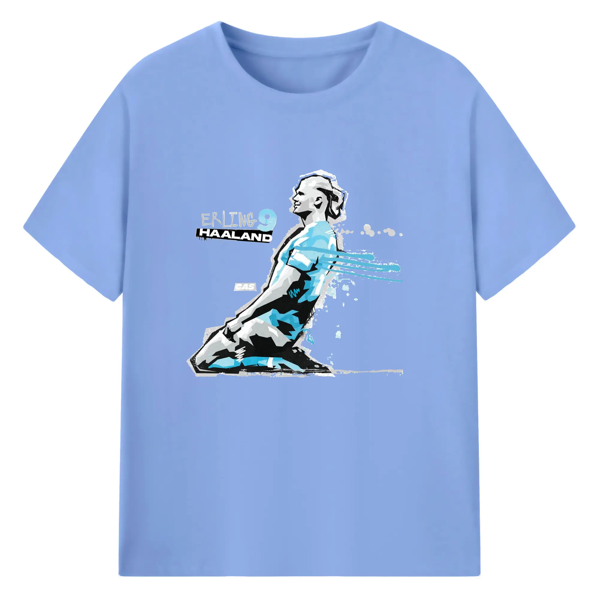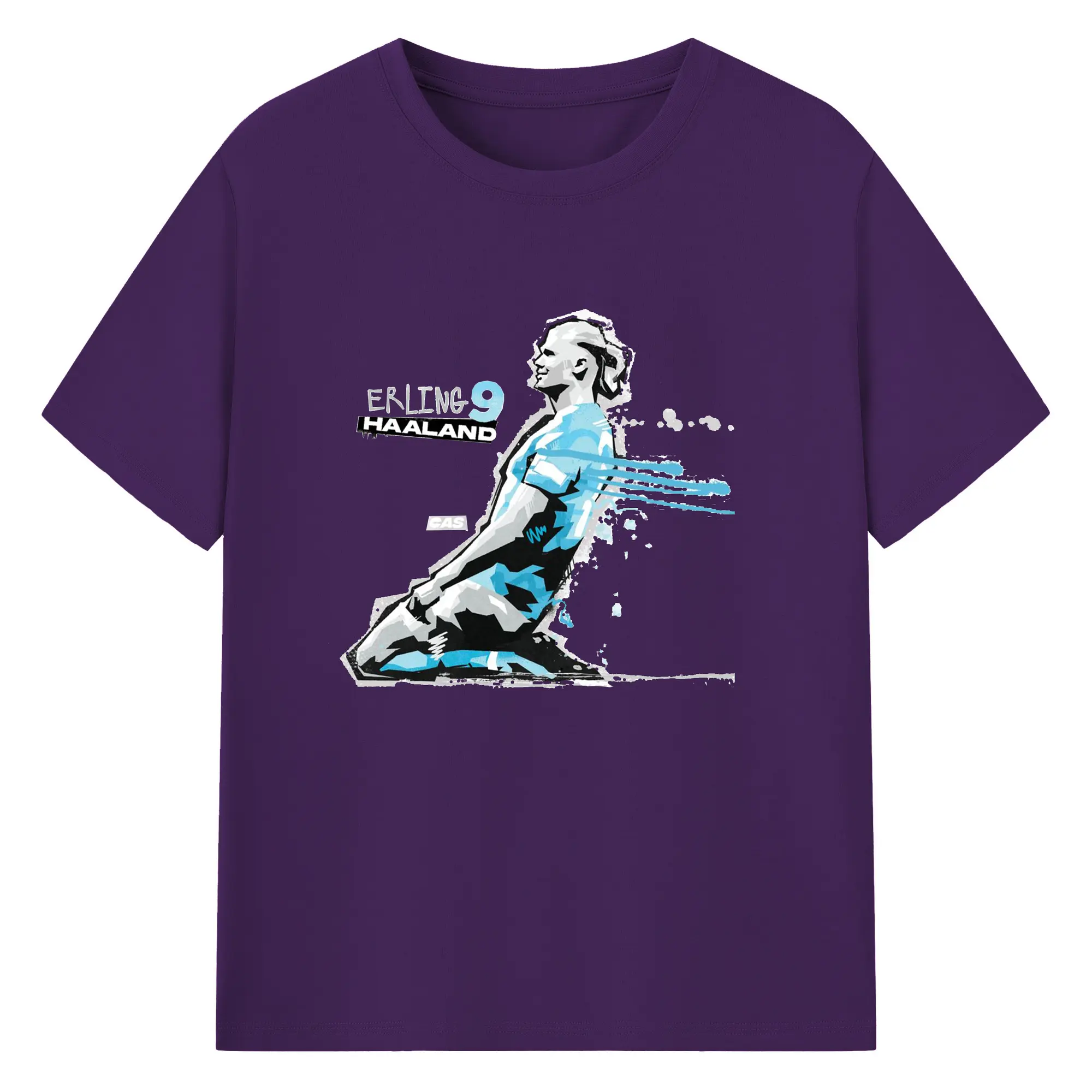 Erling Haaland #9 Soccer Star Slide Celebration DIY Shirt - 180g Cotton T-Shirt With Front Heat Transfer Print – Soft, Lightweight, Fitted Design – Comfortable Casual Wear For Sports & Everyday Use