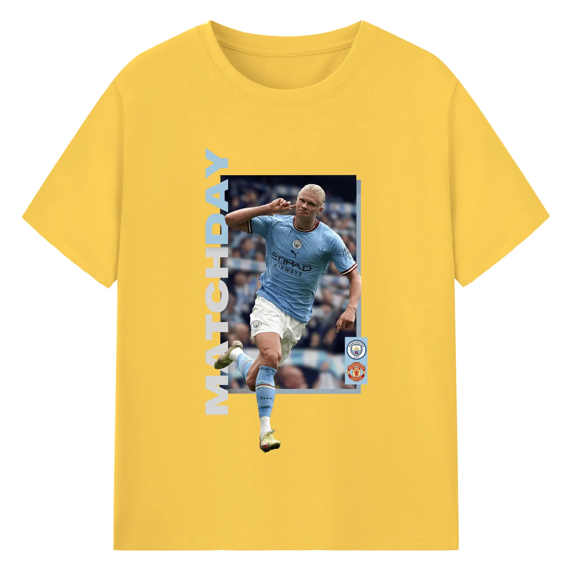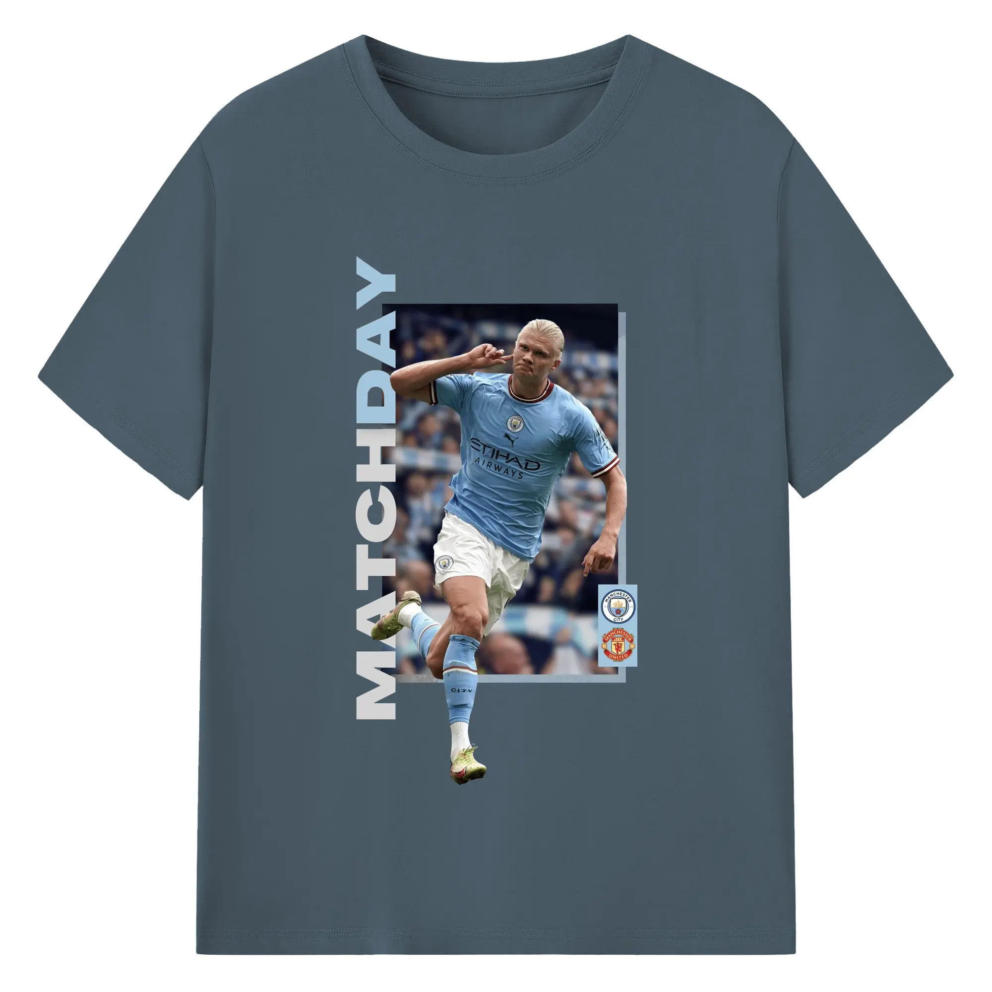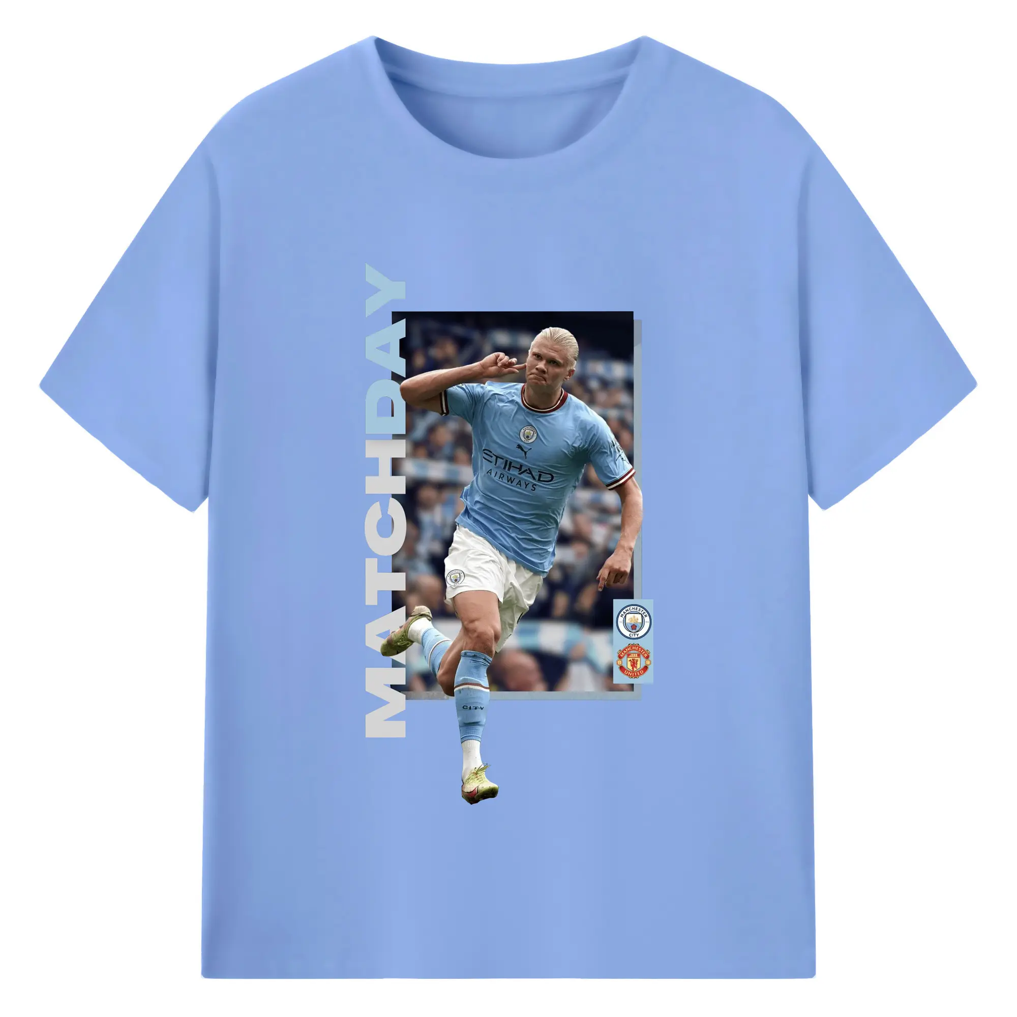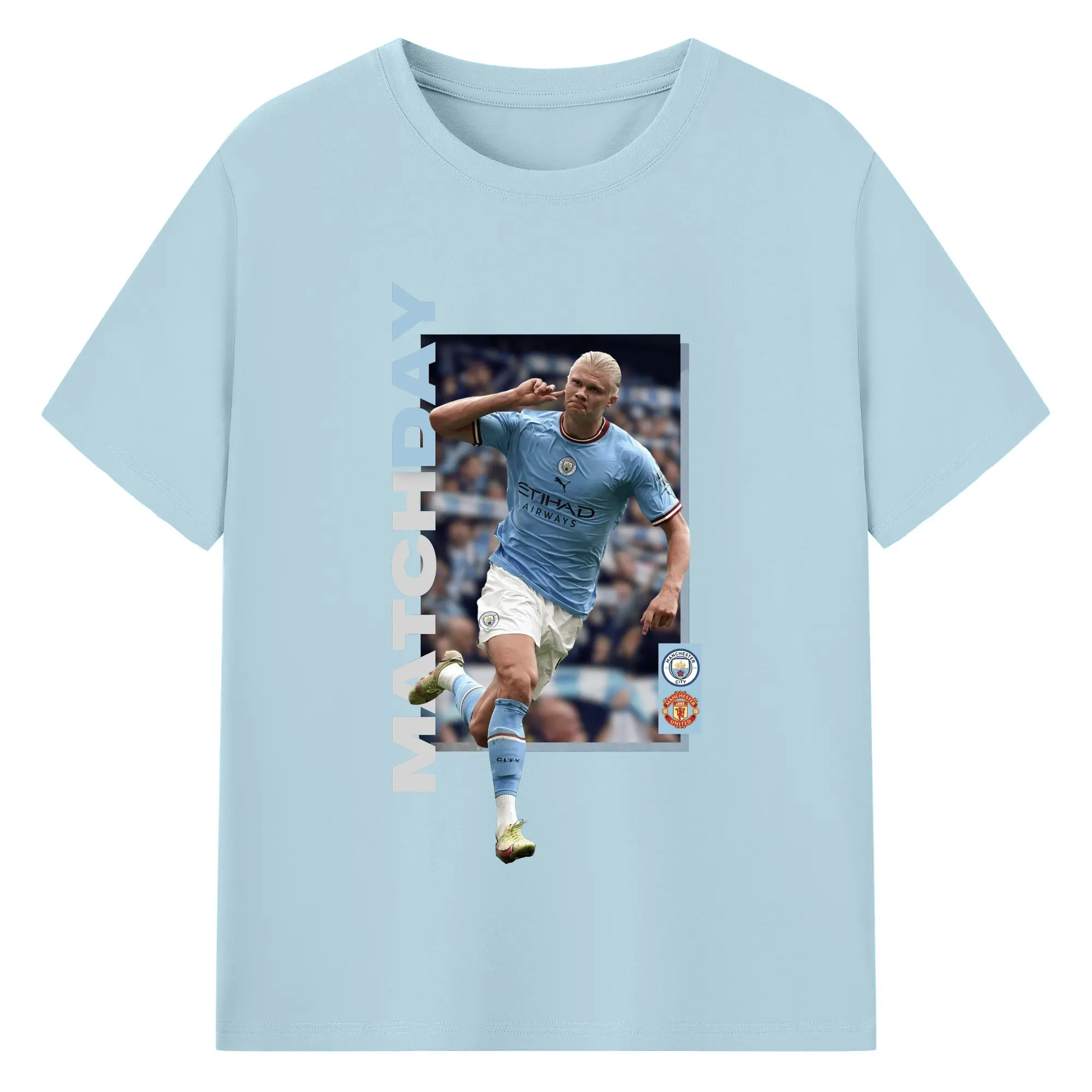 Erling Haaland Manchester City Matchday DIY Shirt - 180g Cotton T-Shirt With Front Heat Transfer Print – Soft, Lightweight, Fitted Design – Comfortable Casual Wear For Sports & Everyday Use