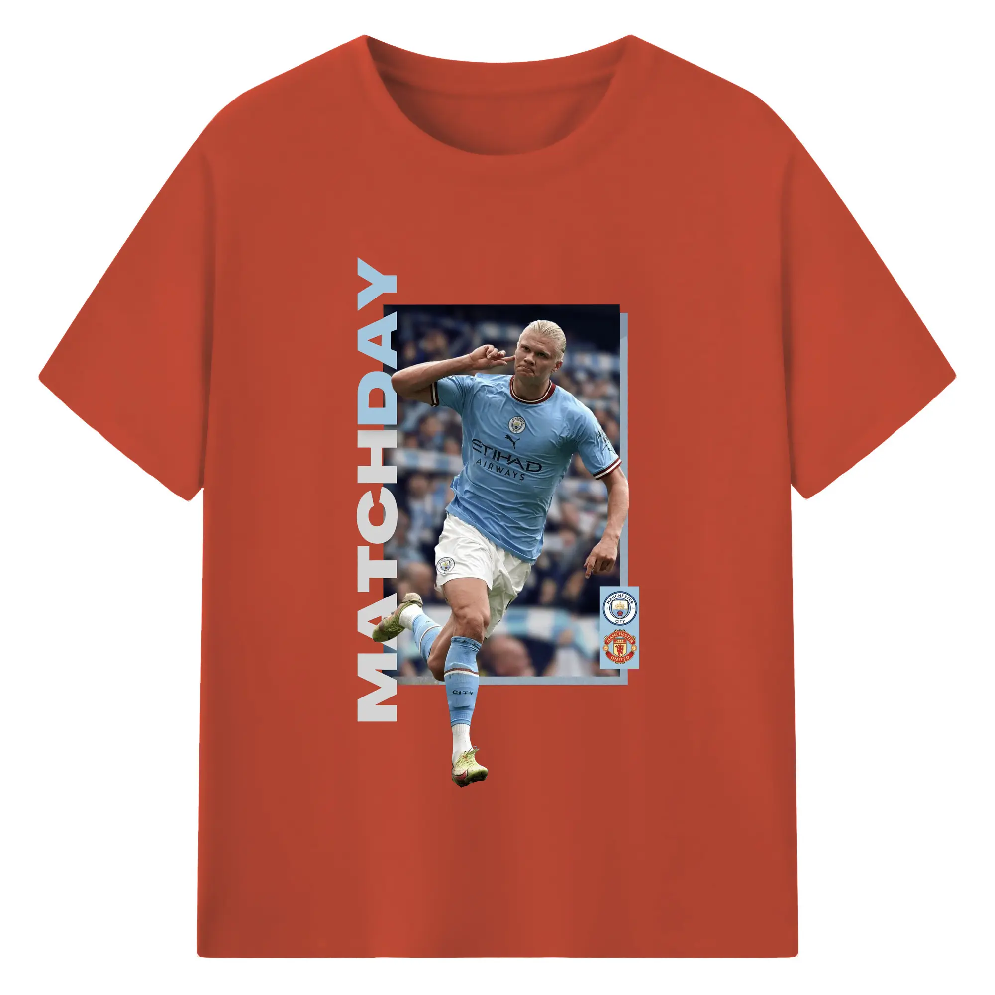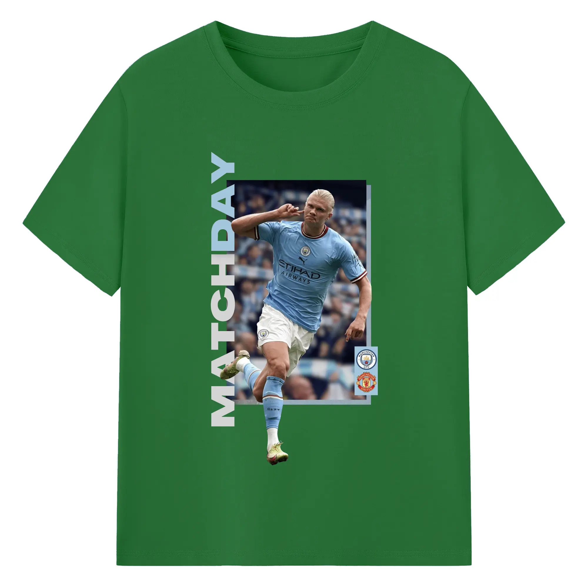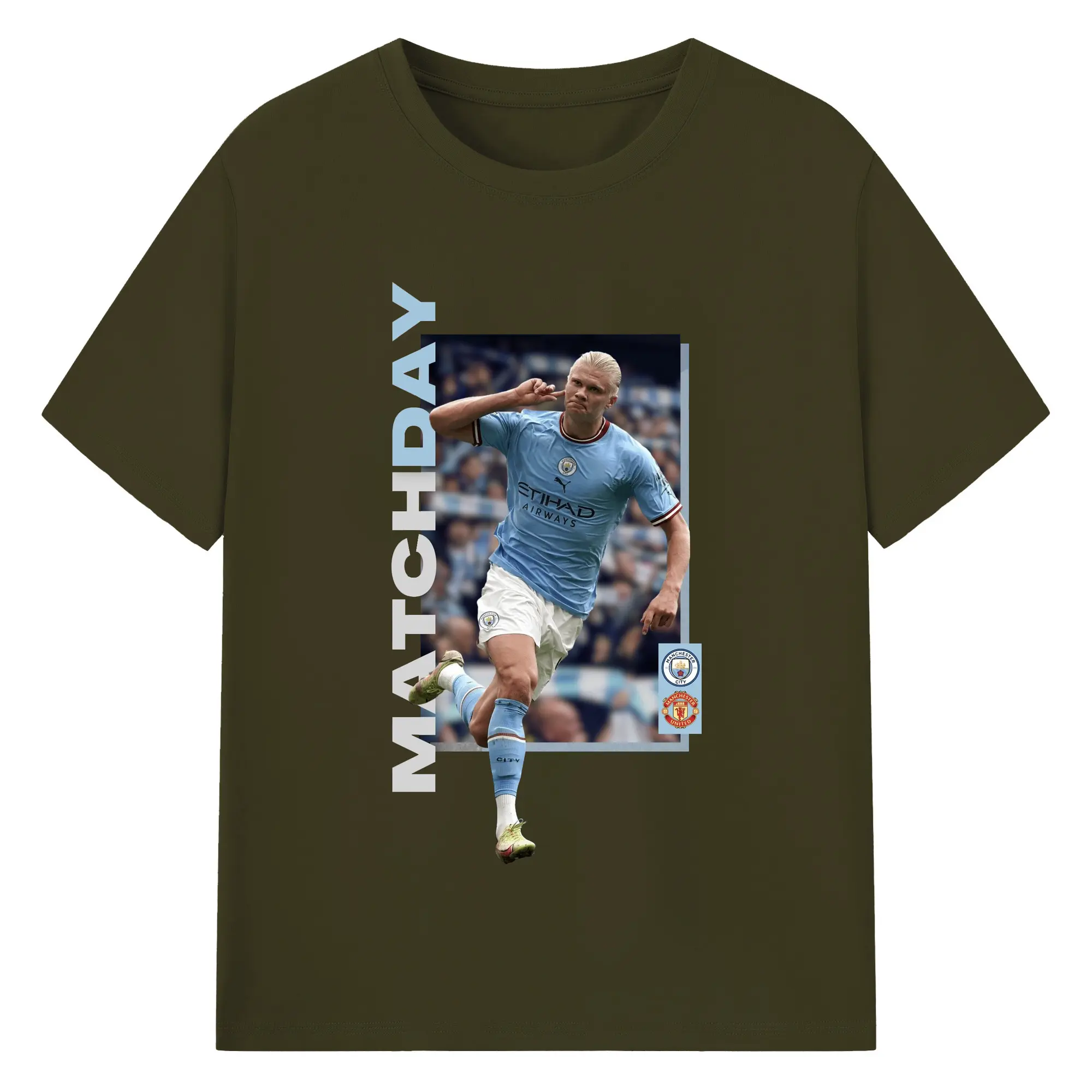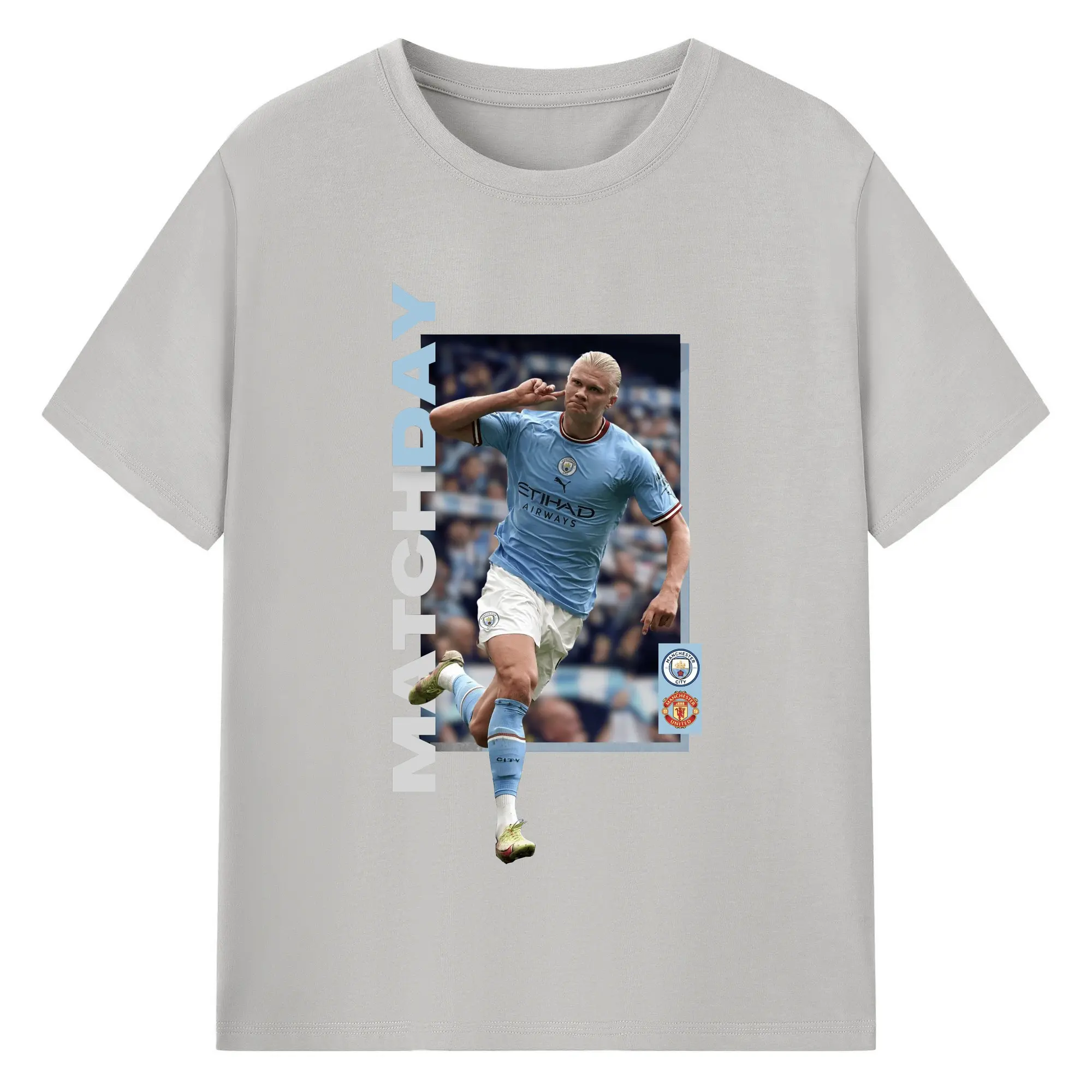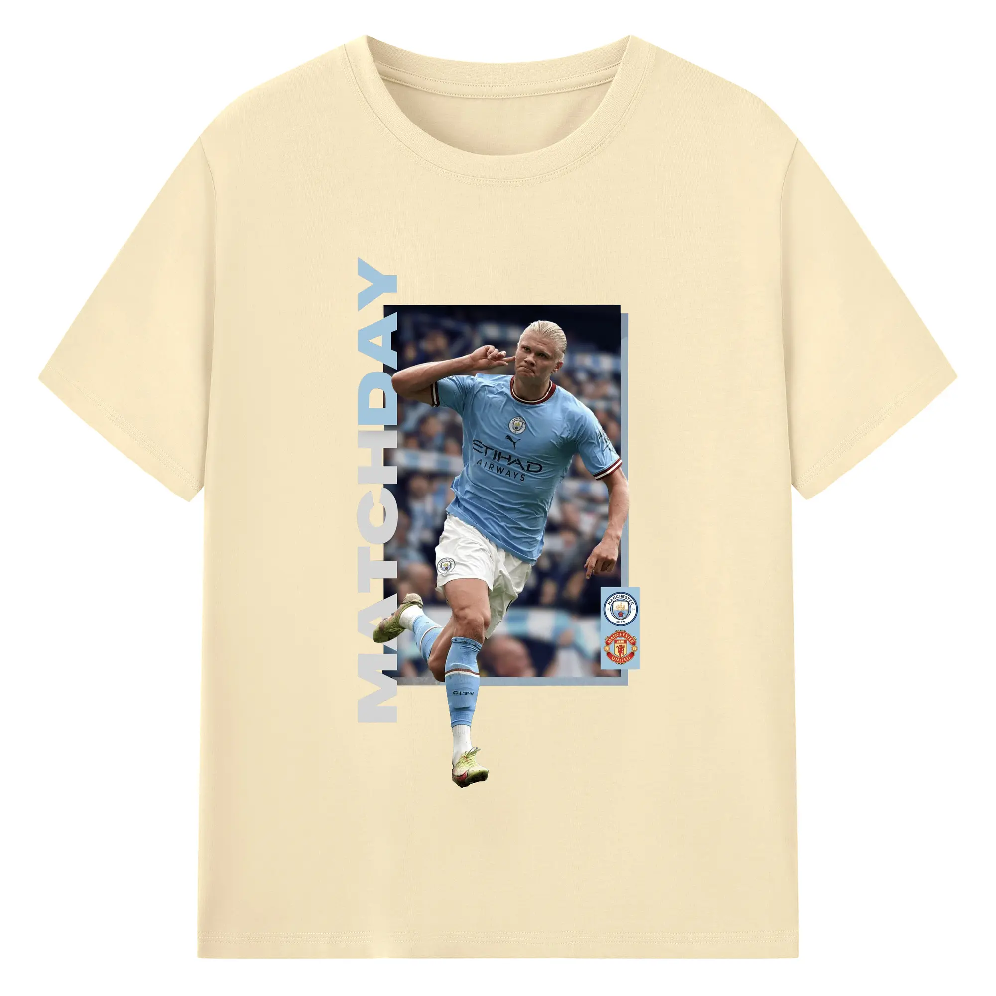 Erling Haaland Manchester City Matchday DIY Shirt - 180g Cotton T-Shirt With Front Heat Transfer Print – Soft, Lightweight, Fitted Design – Comfortable Casual Wear For Sports & Everyday Use