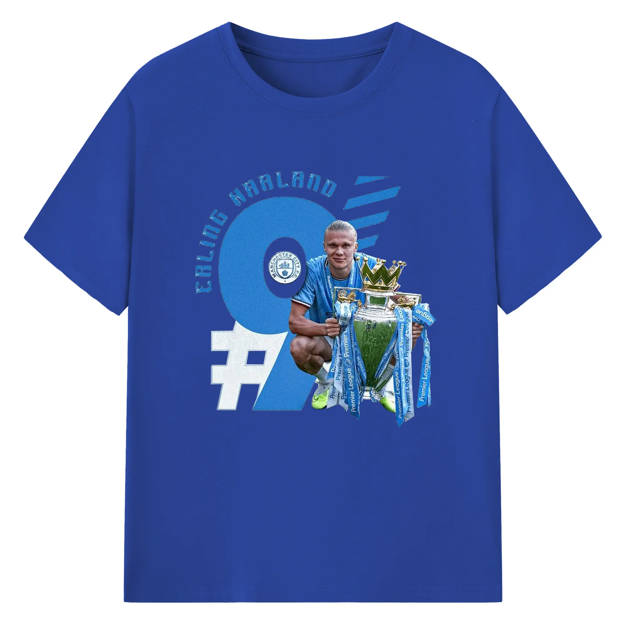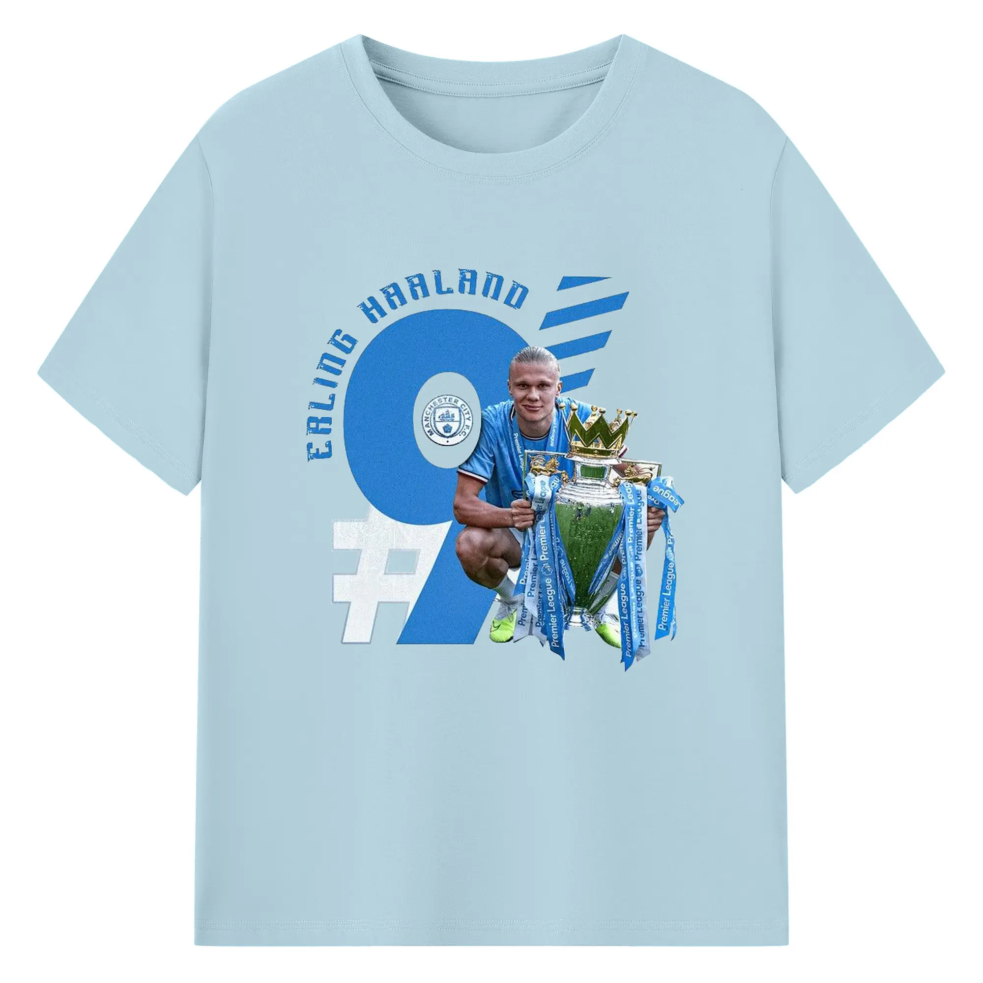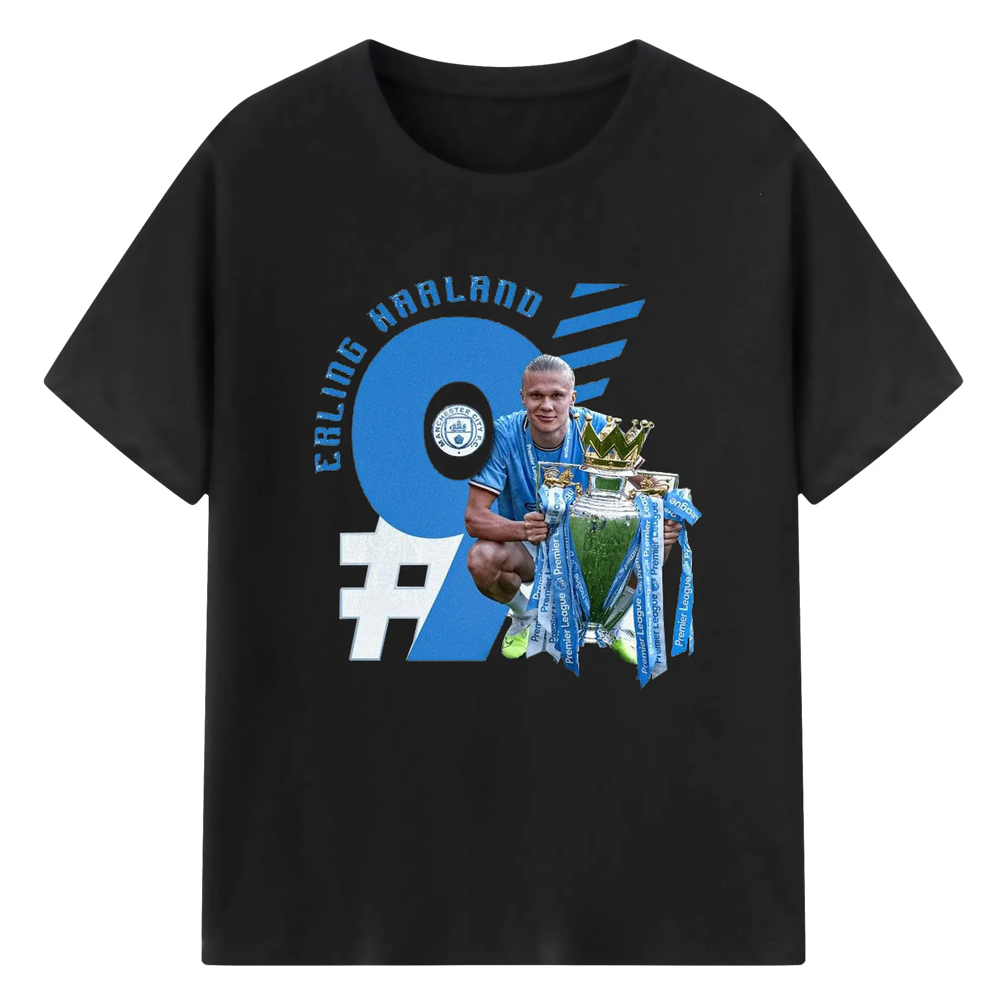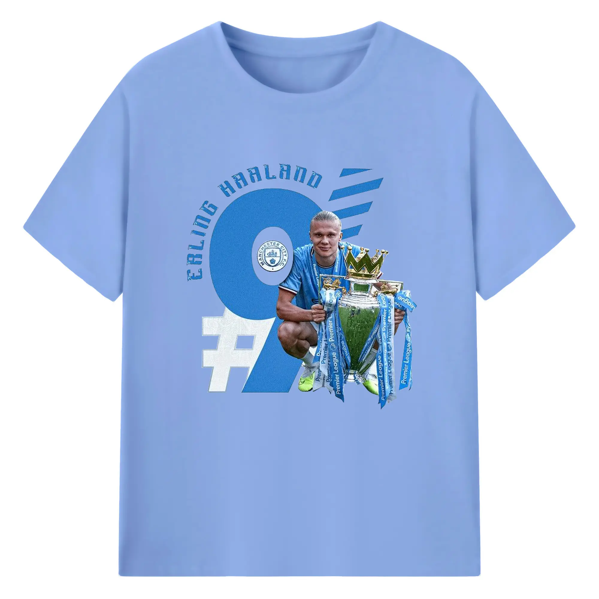 Erling Haaland Manchester City Premier League Champion DIY Shirt - 180g Cotton T-Shirt With Front Heat Transfer Print – Soft, Lightweight, Fitted Design – Comfortable Casual Wear For Sports & Everyday Use