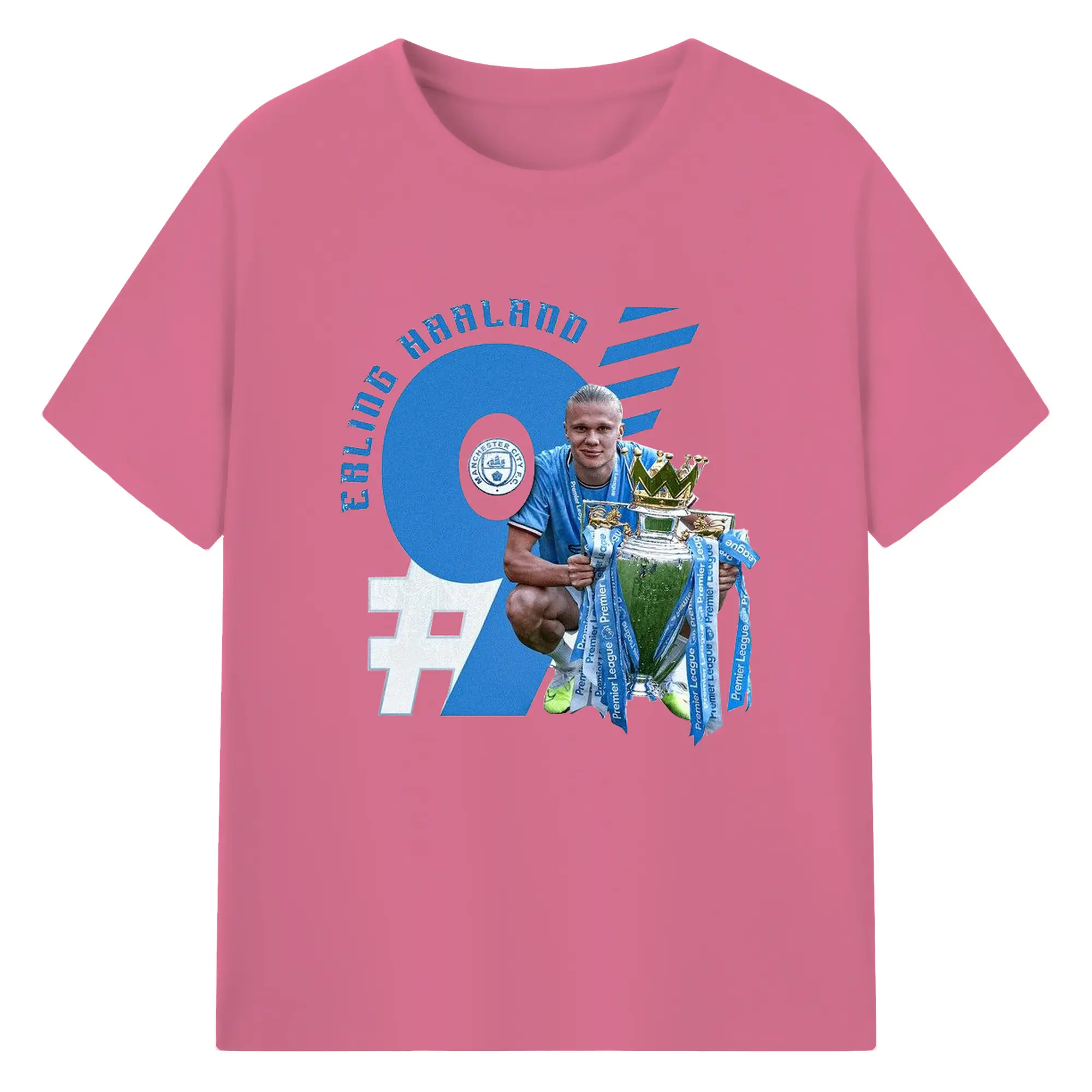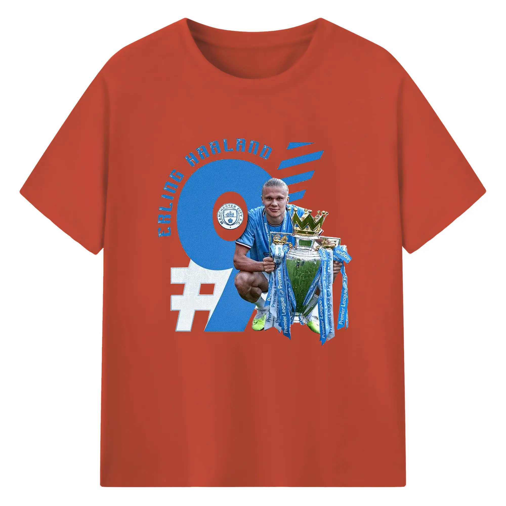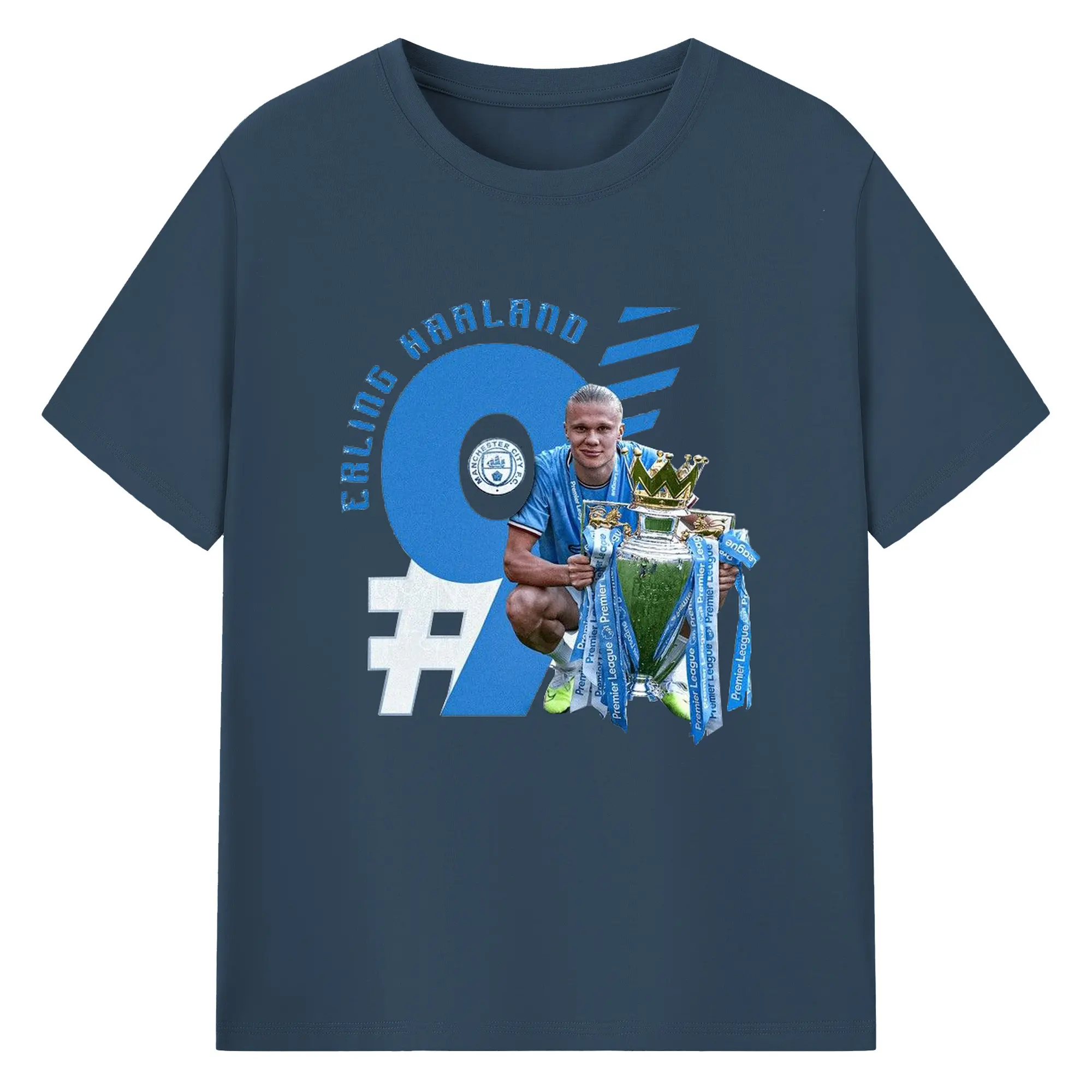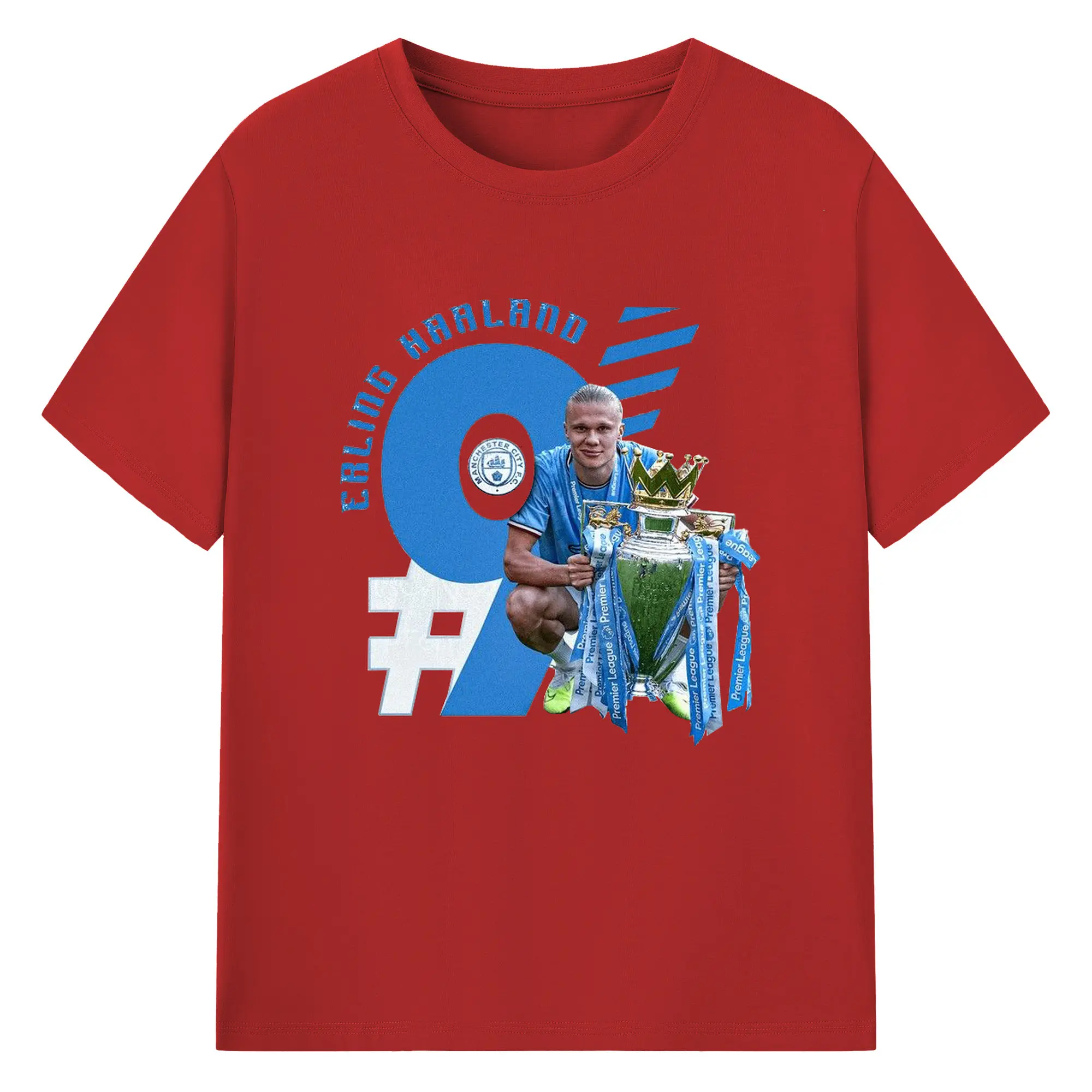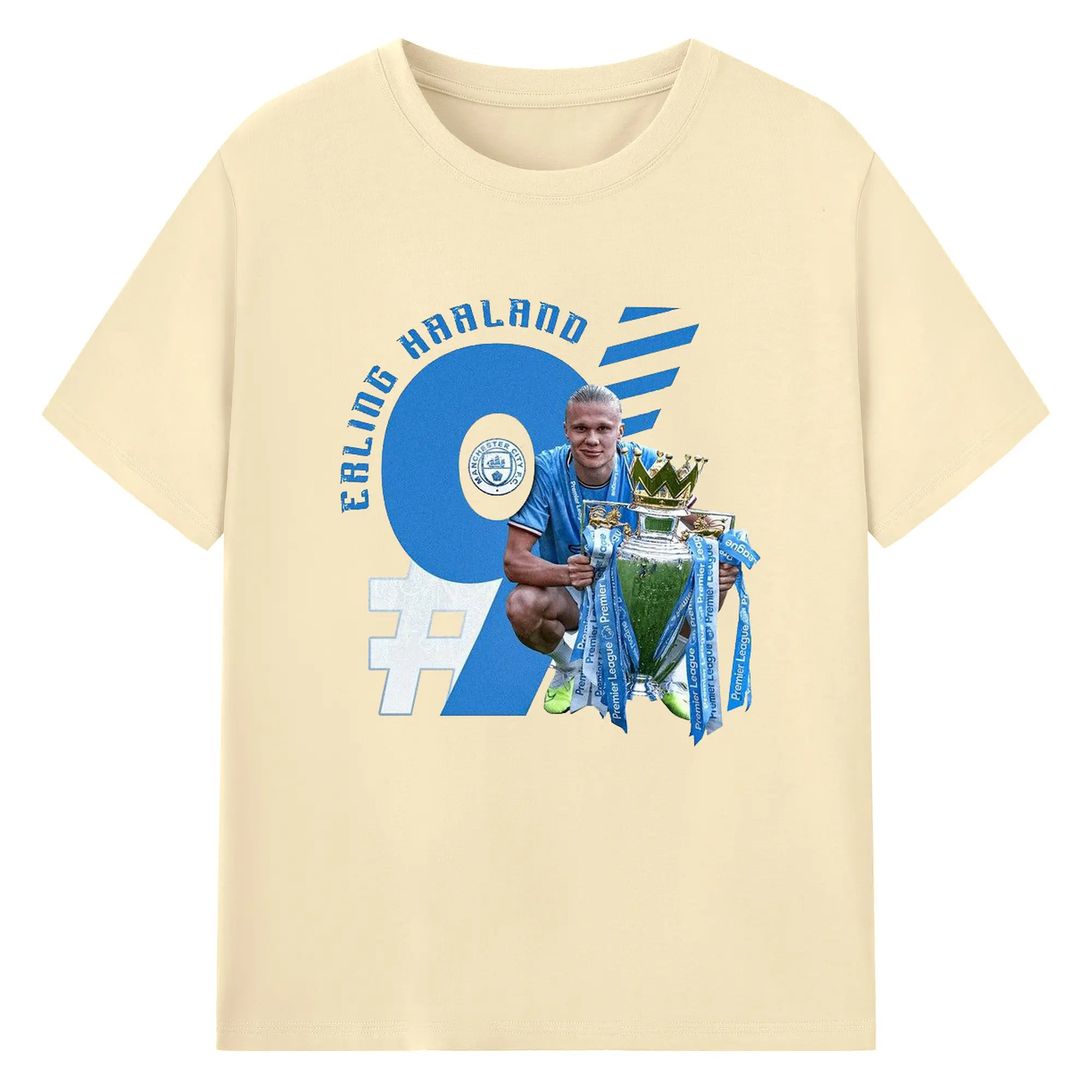 Erling Haaland Manchester City Premier League Champion DIY Shirt - 180g Cotton T-Shirt With Front Heat Transfer Print – Soft, Lightweight, Fitted Design – Comfortable Casual Wear For Sports & Everyday Use