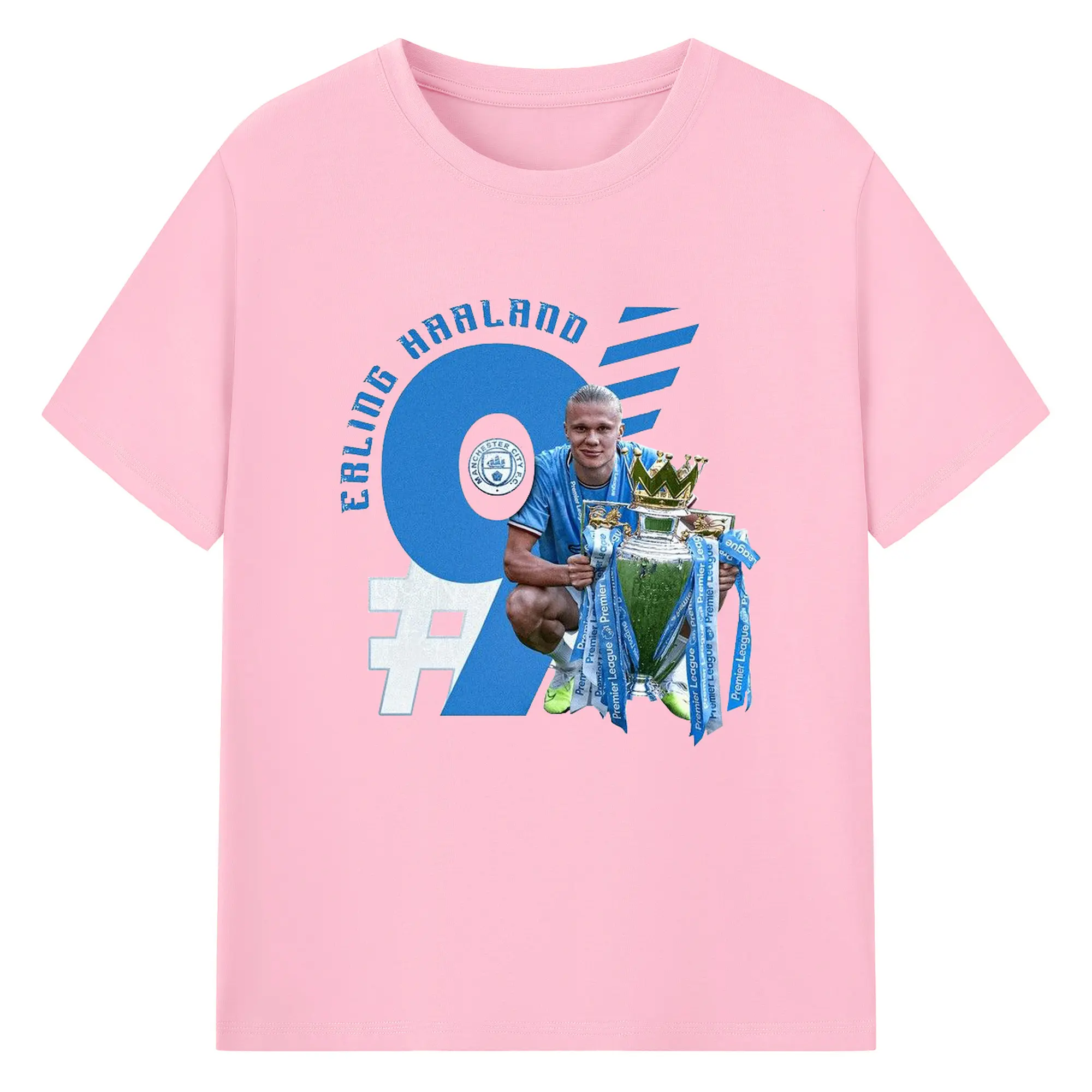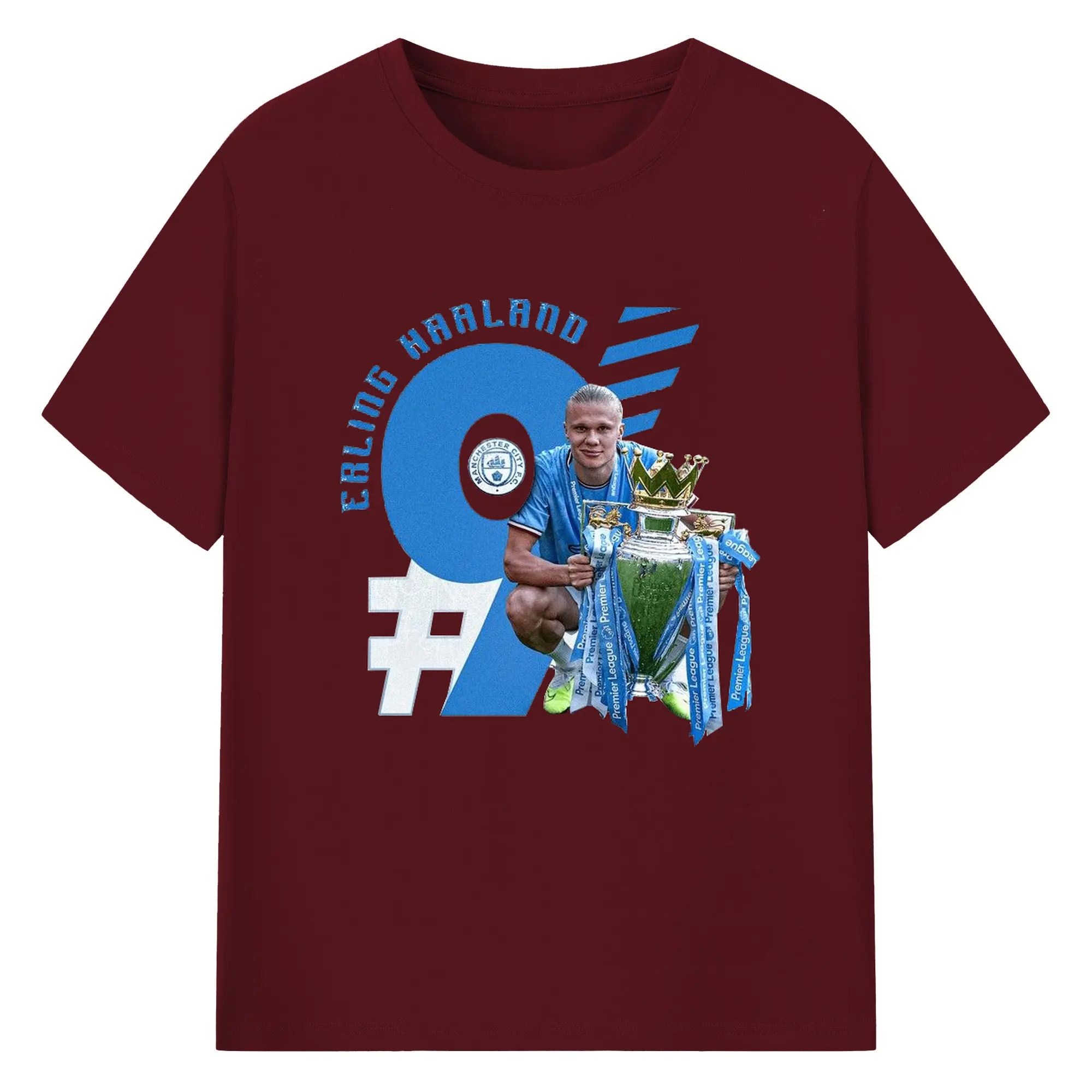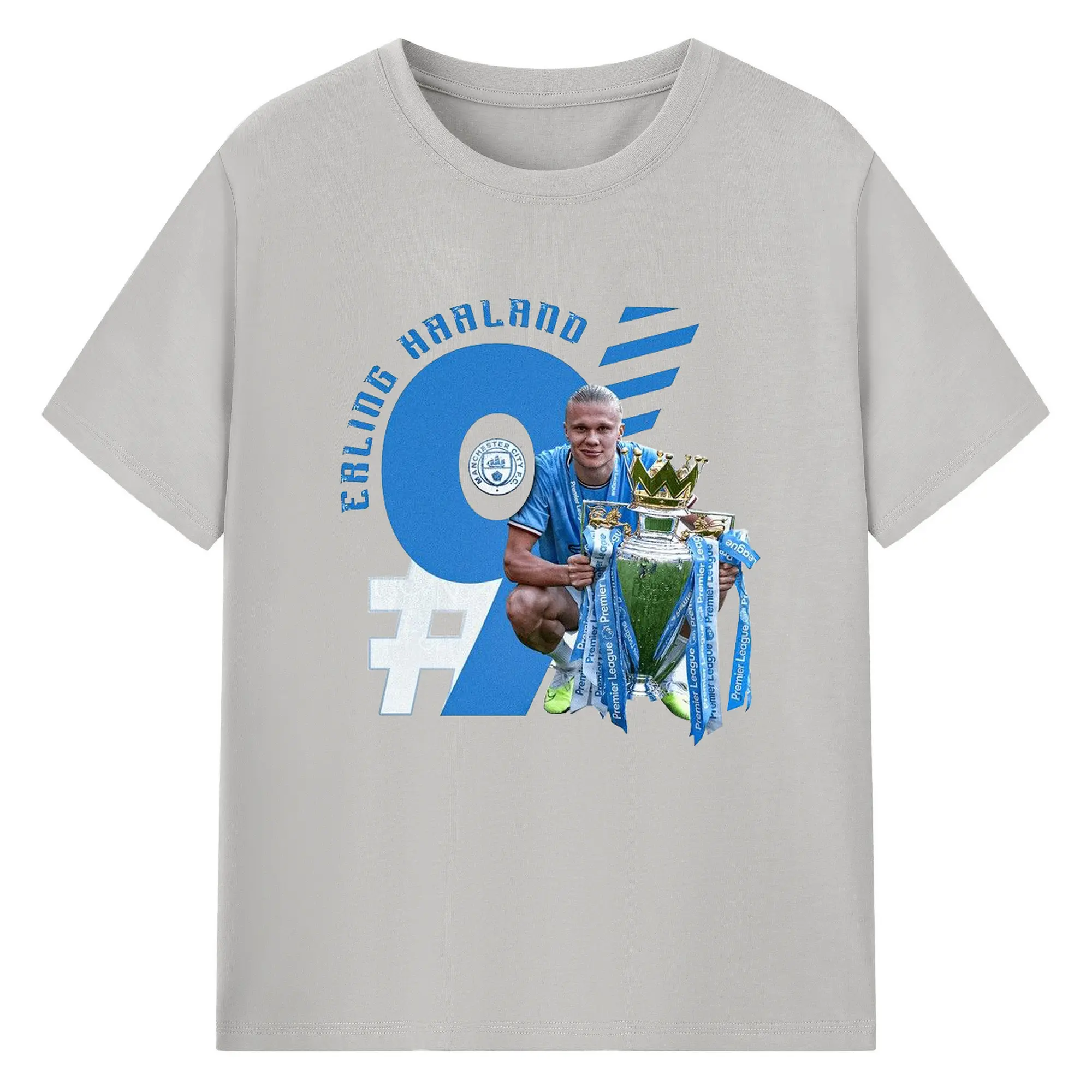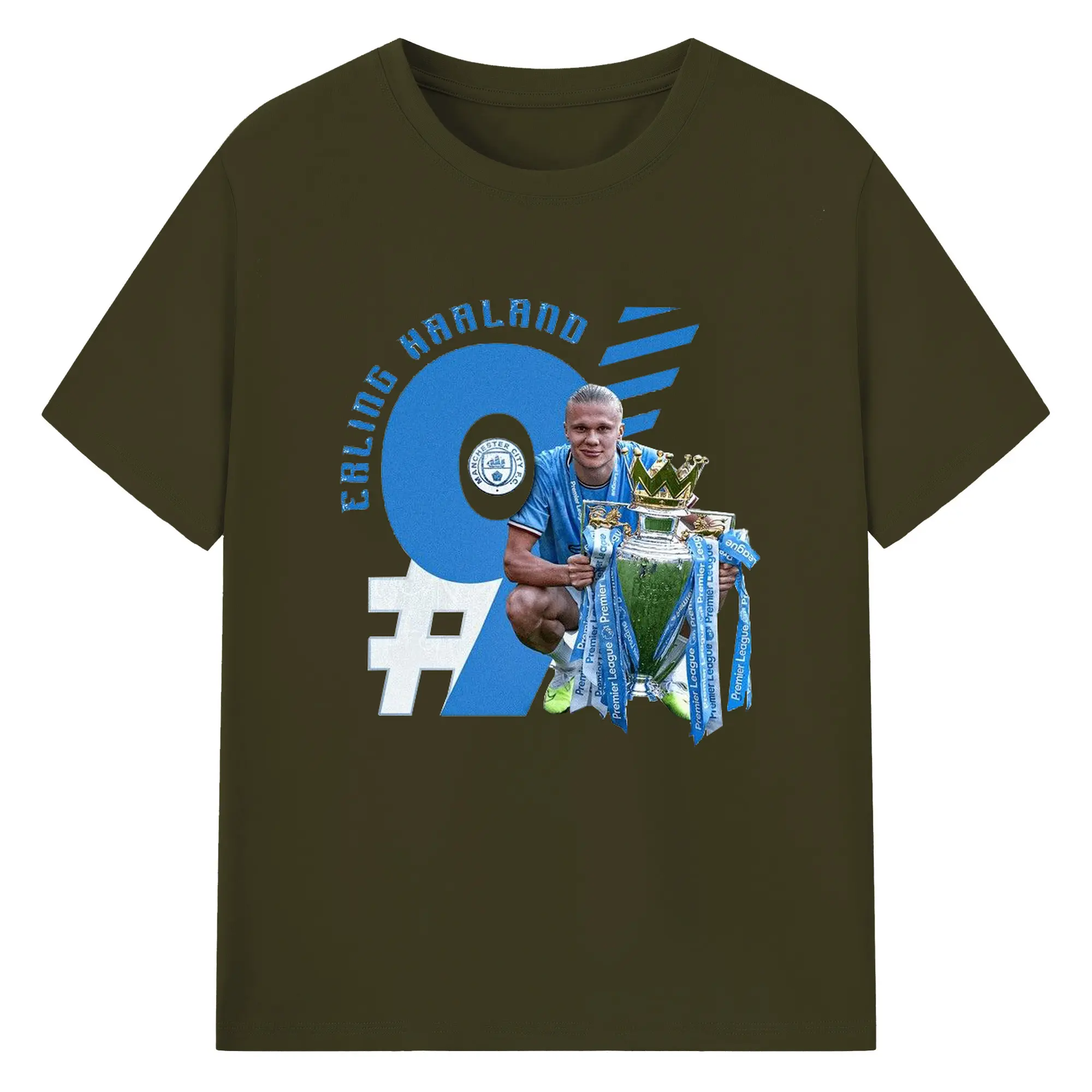 Erling Haaland Manchester City Premier League Champion DIY Shirt - 180g Cotton T-Shirt With Front Heat Transfer Print – Soft, Lightweight, Fitted Design – Comfortable Casual Wear For Sports & Everyday Use