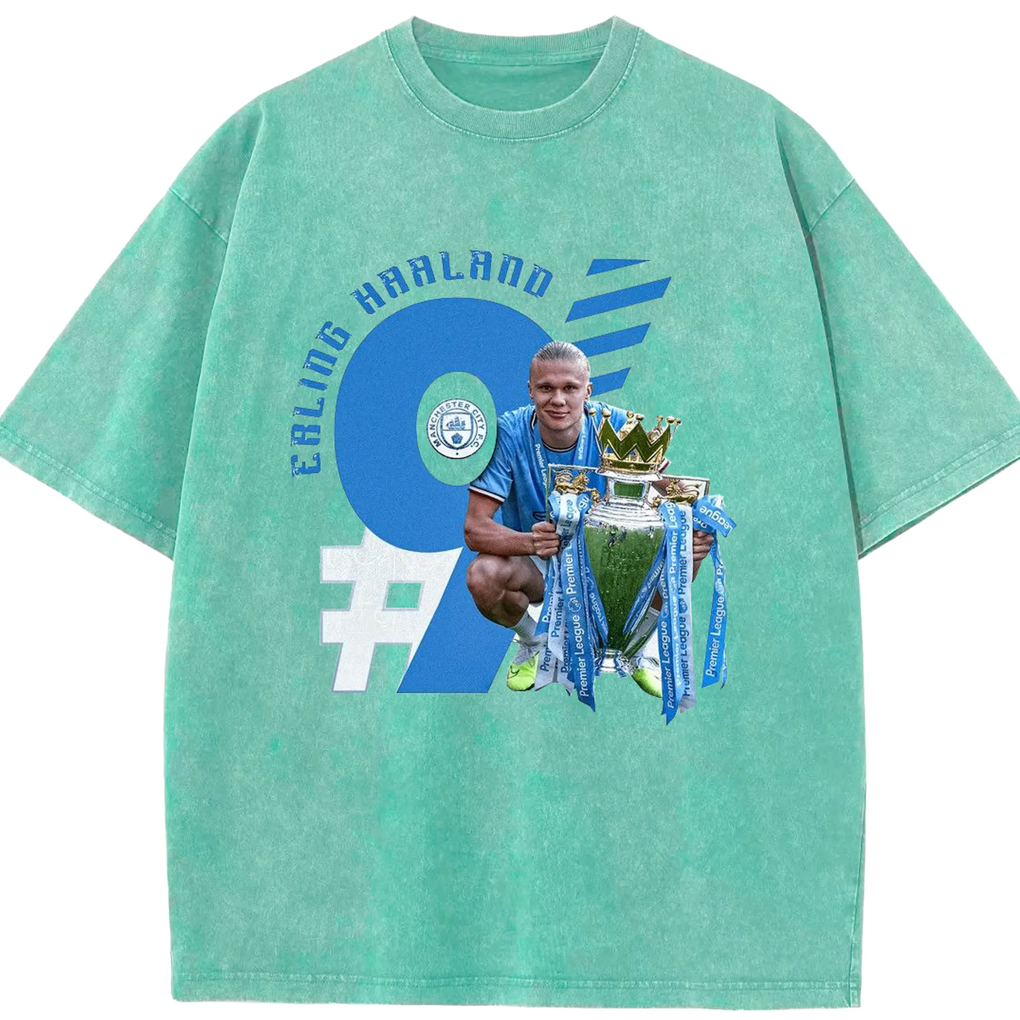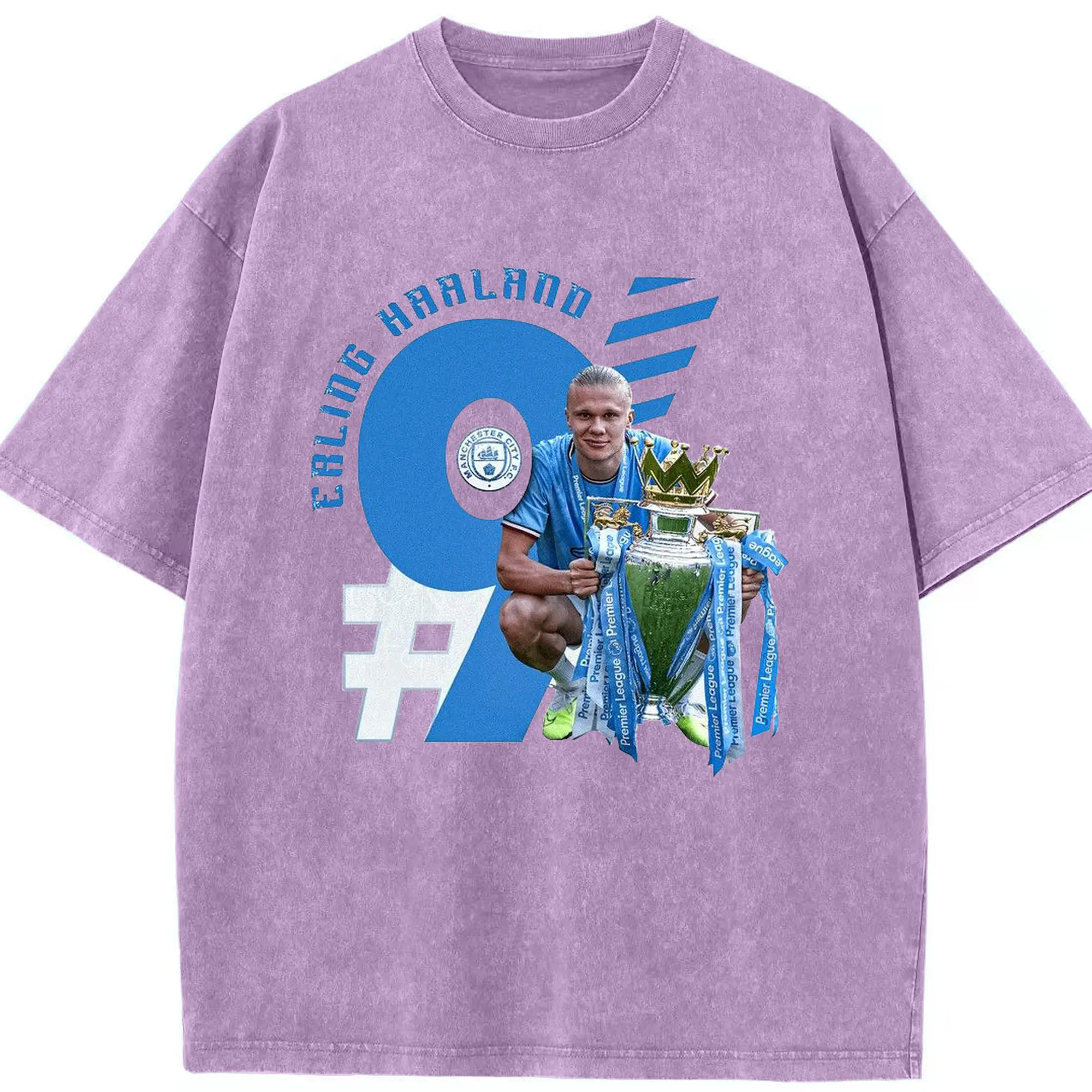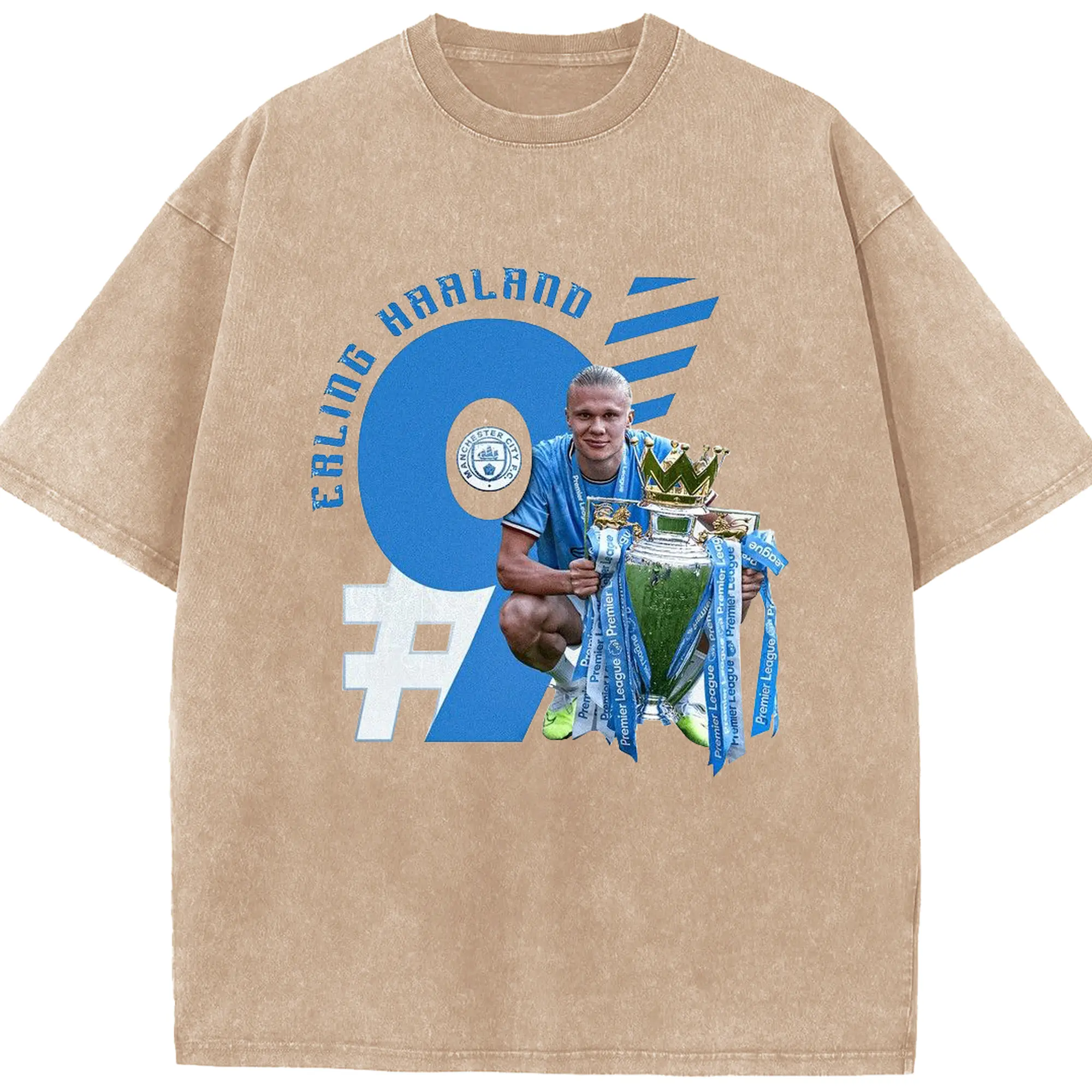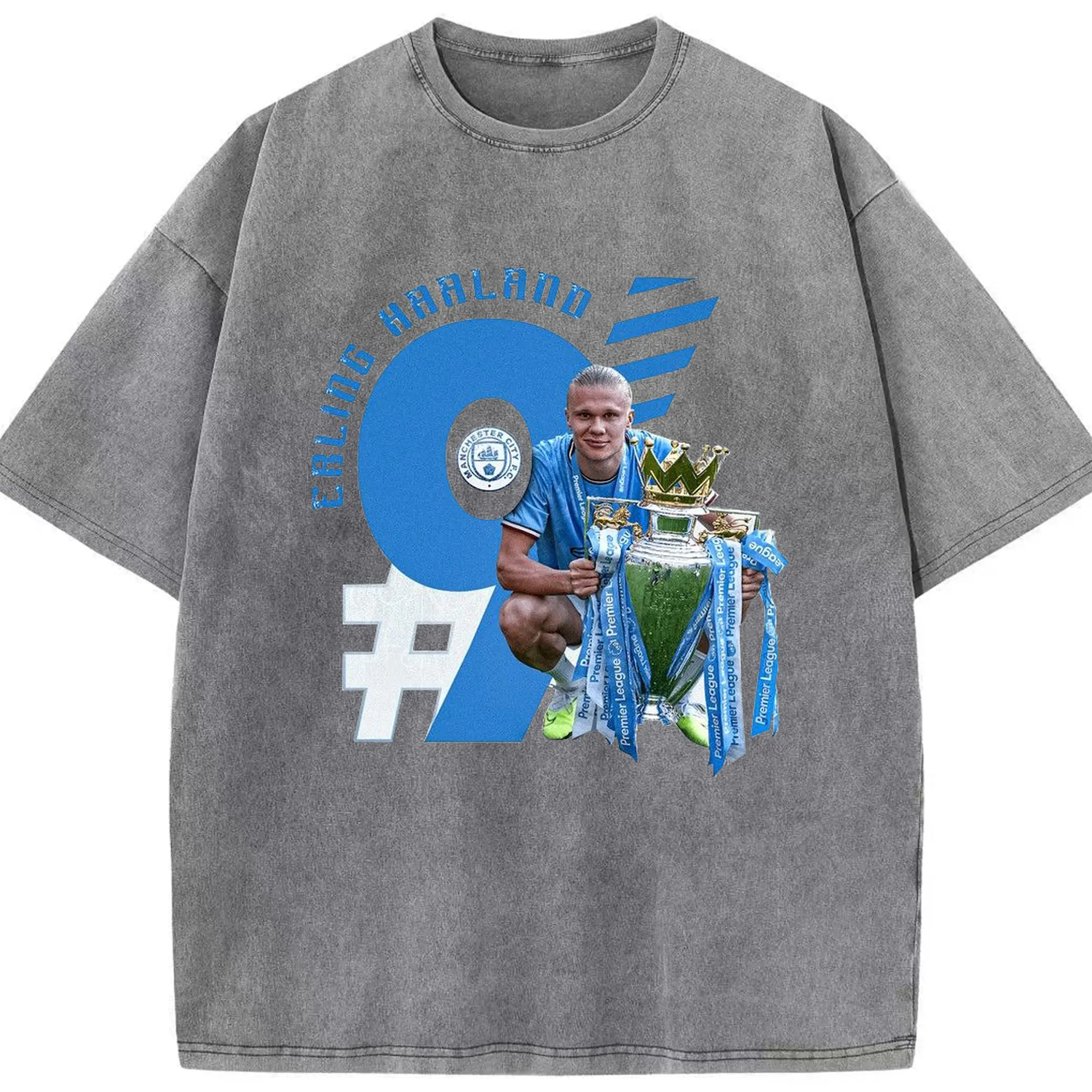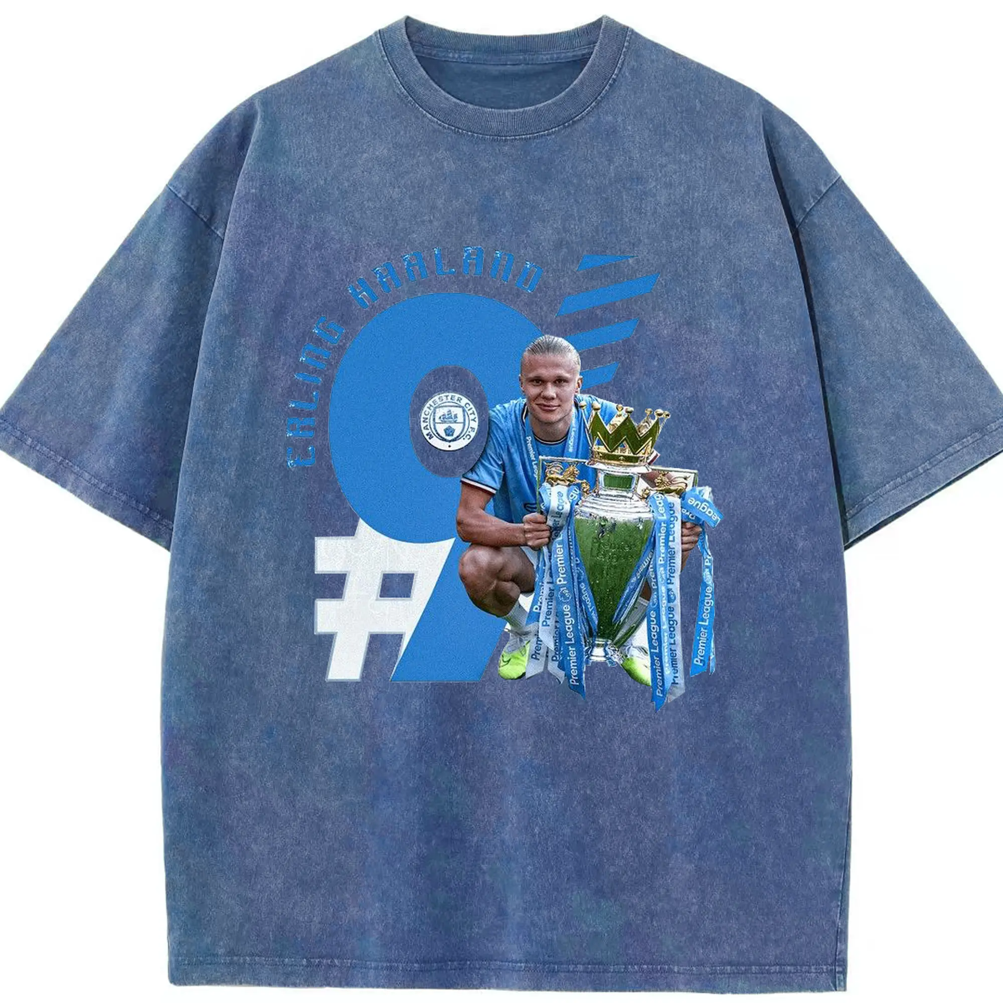 Erling Haaland Manchester City Premier League Champion DIY Shirt - Washed Vintage Look 230g Cotton Oversized T-Shirt With Front Heat Transfer Print – Soft, Lightweight, Stylish Fit – Comfortable Casual Wear For Sports & Everyday Use