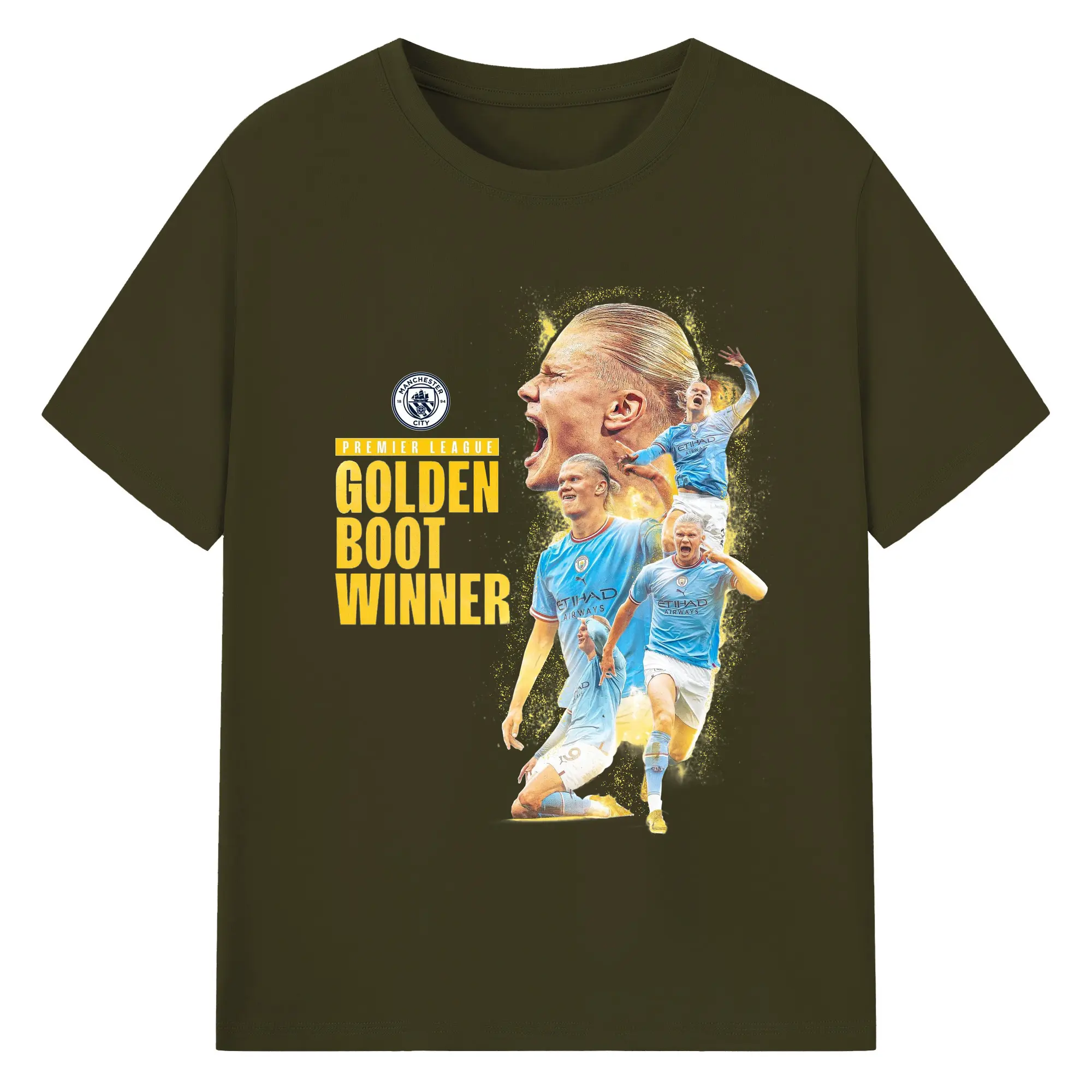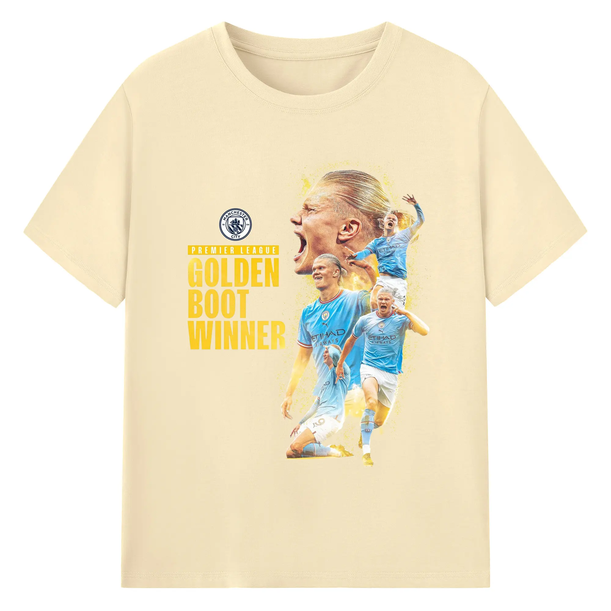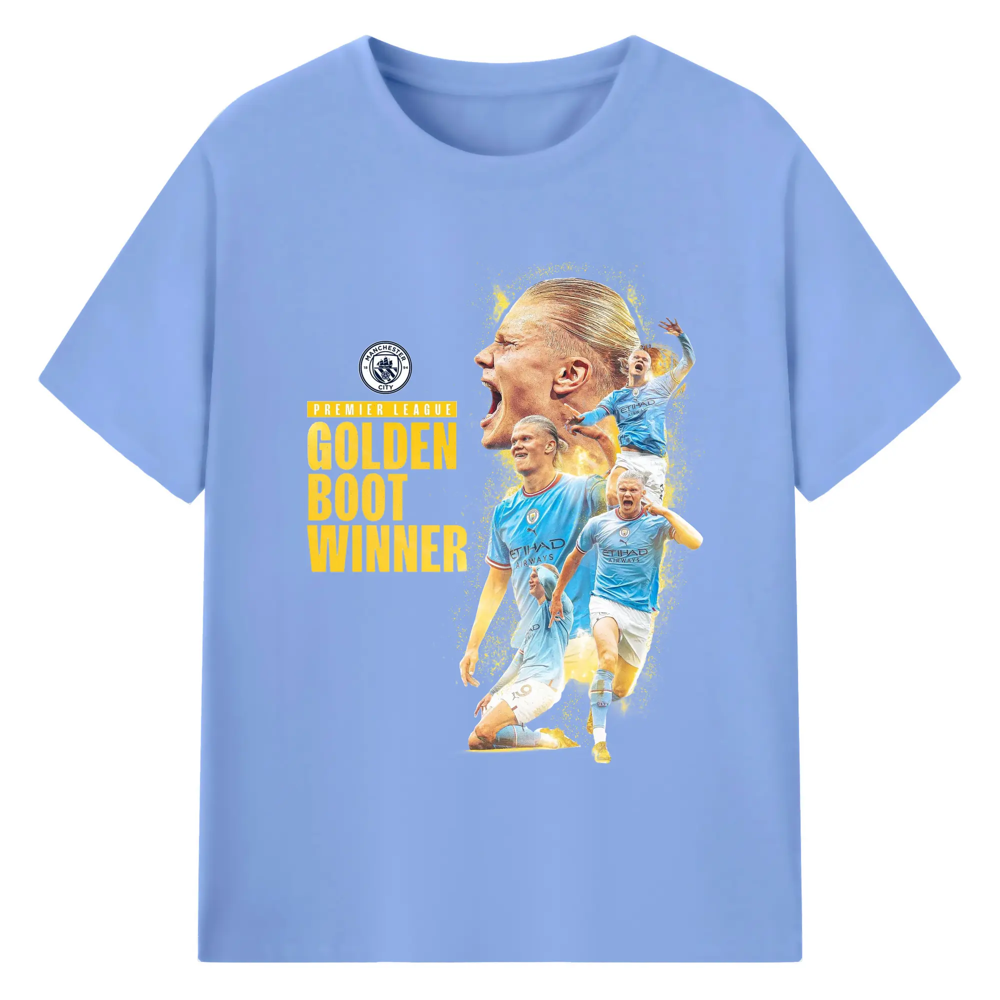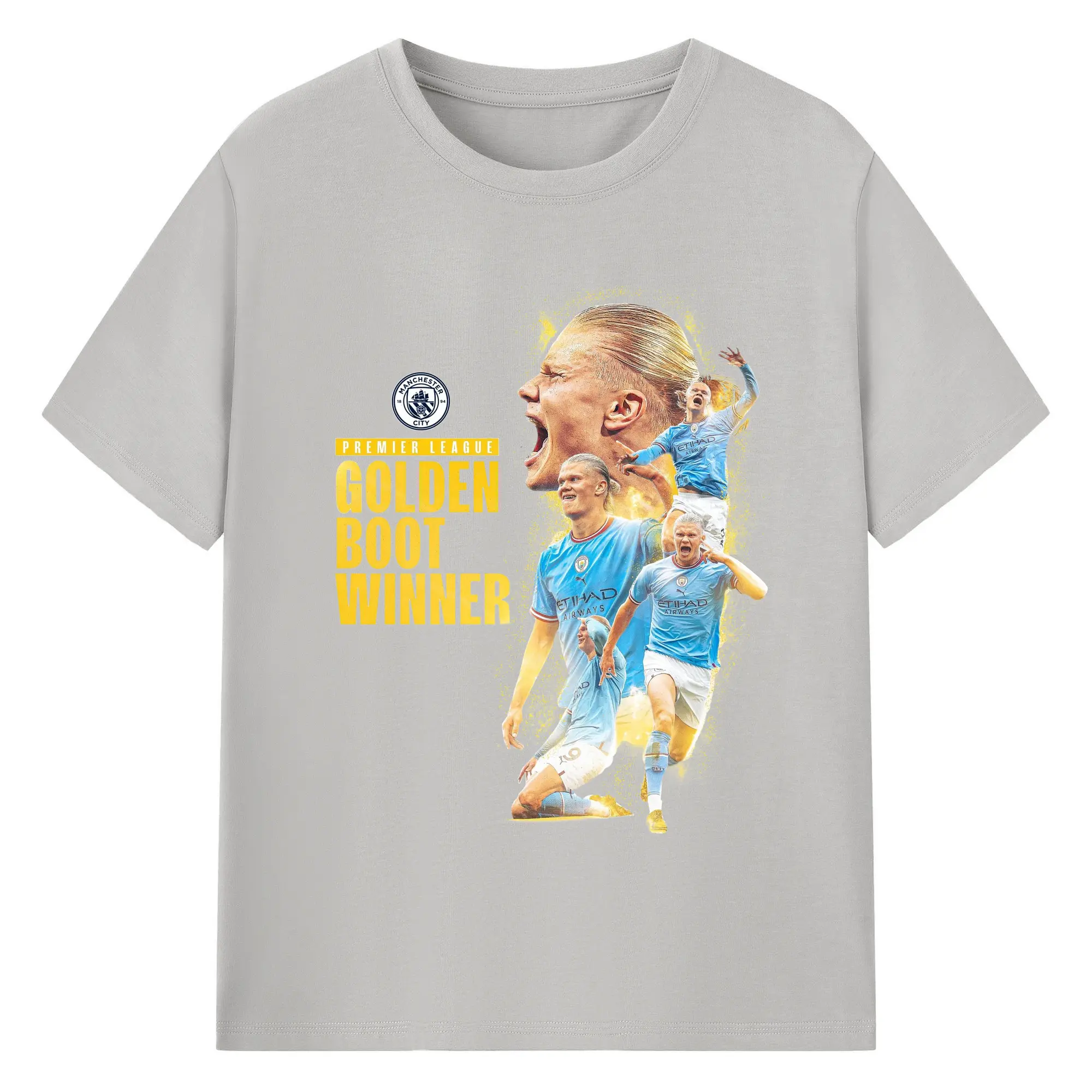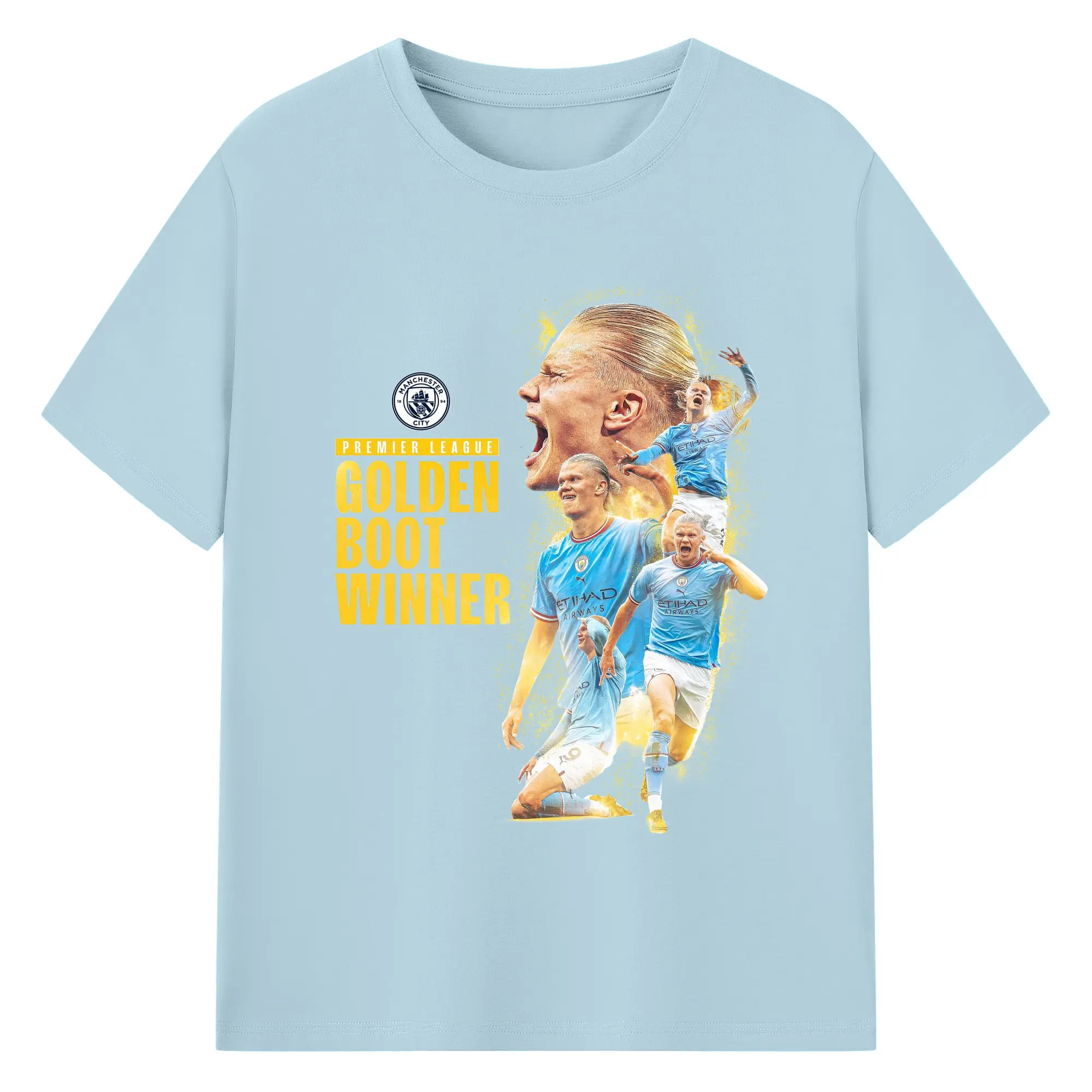 Erling Haaland Manchester City Premier League Golden Boot DIY Shirt - 180g Cotton T-Shirt With Front Heat Transfer Print – Soft, Lightweight, Fitted Design – Comfortable Casual Wear For Sports & Everyday Use