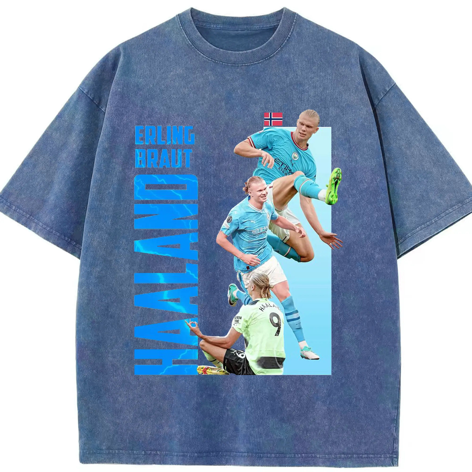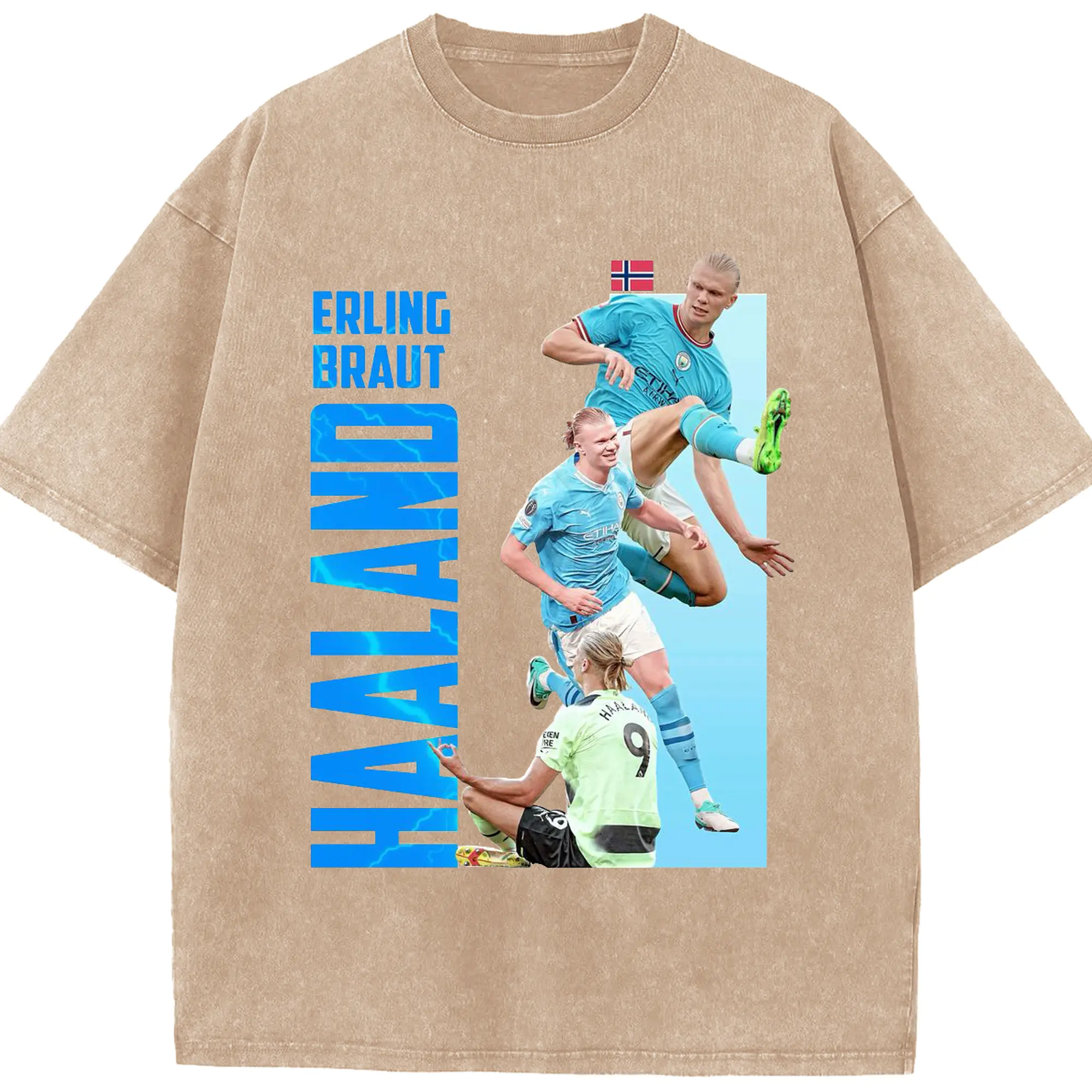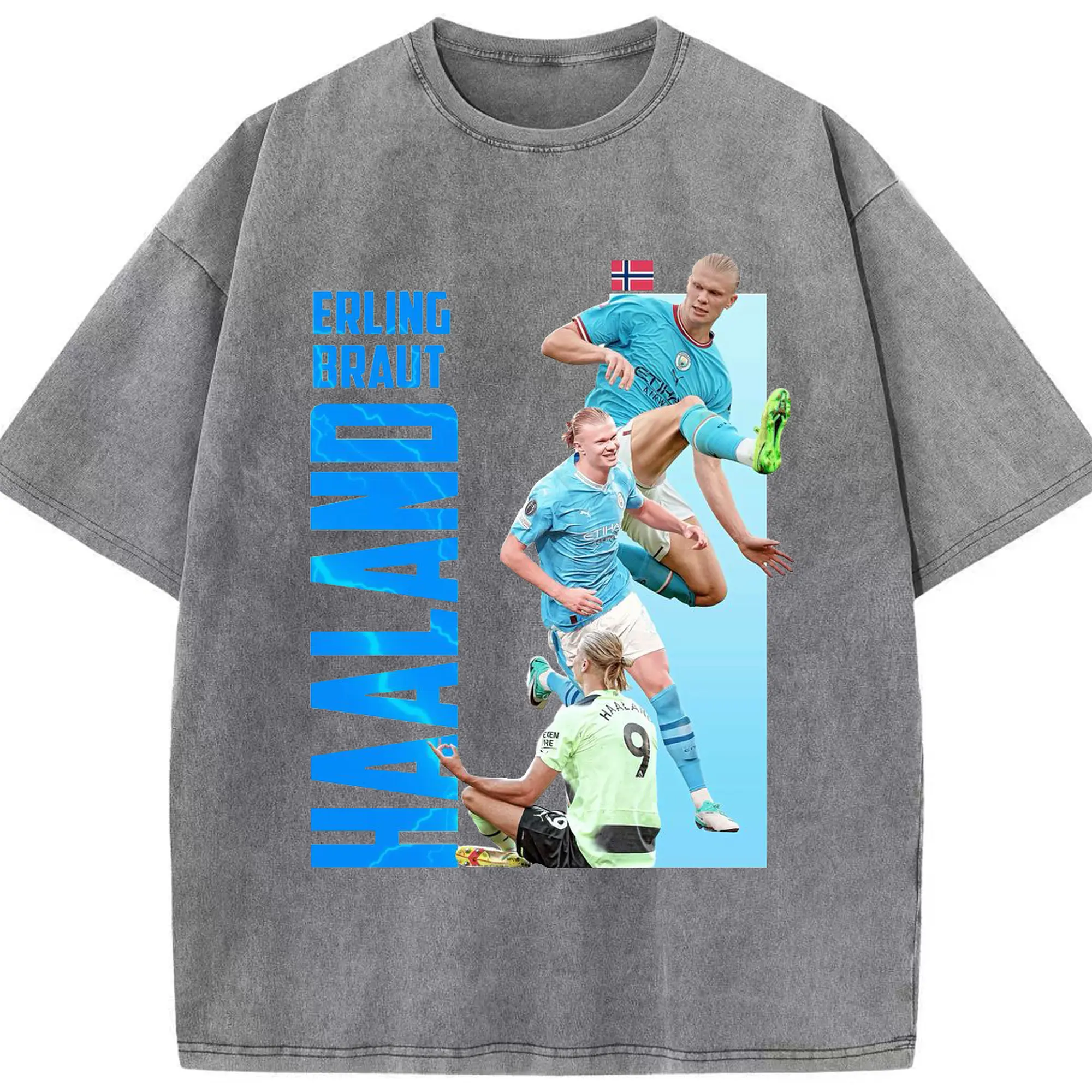 Erling Haaland Manchester City Soccer DIY T-Shirt - Washed Vintage Look 230g Cotton Oversized T-Shirt With Front Heat Transfer Print – Soft, Lightweight, Stylish Fit – Comfortable Casual Wear For Sports & Everyday Use