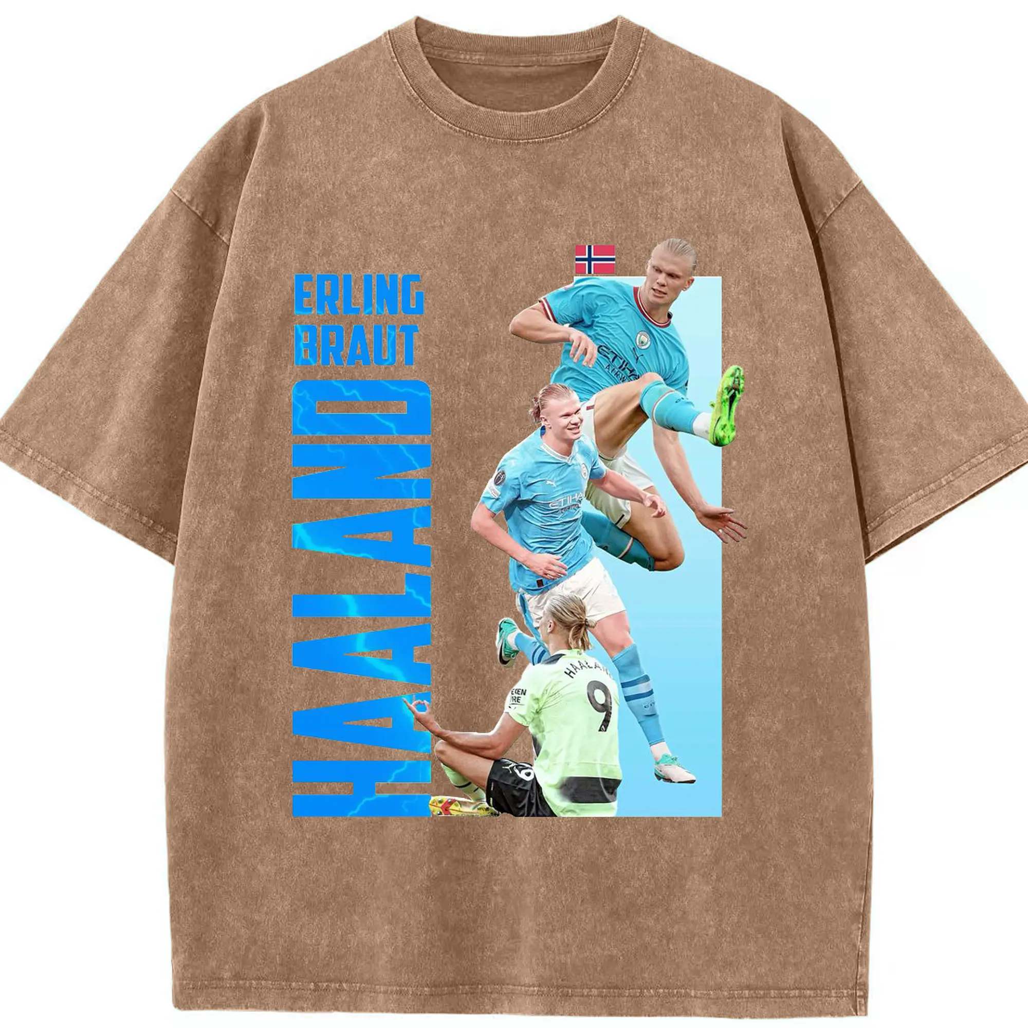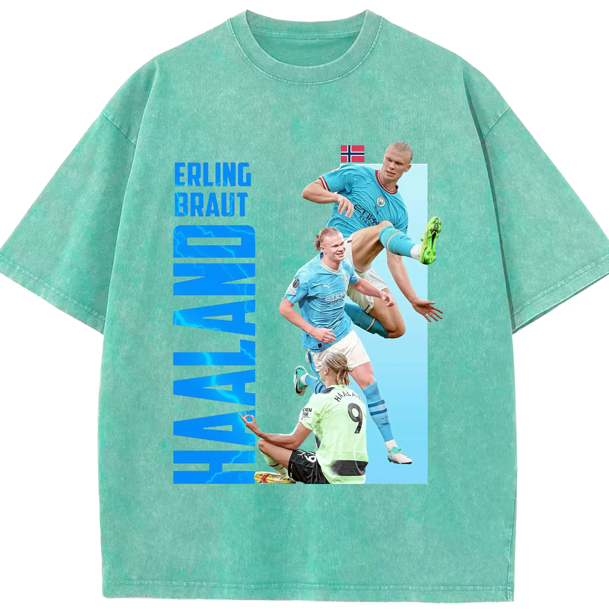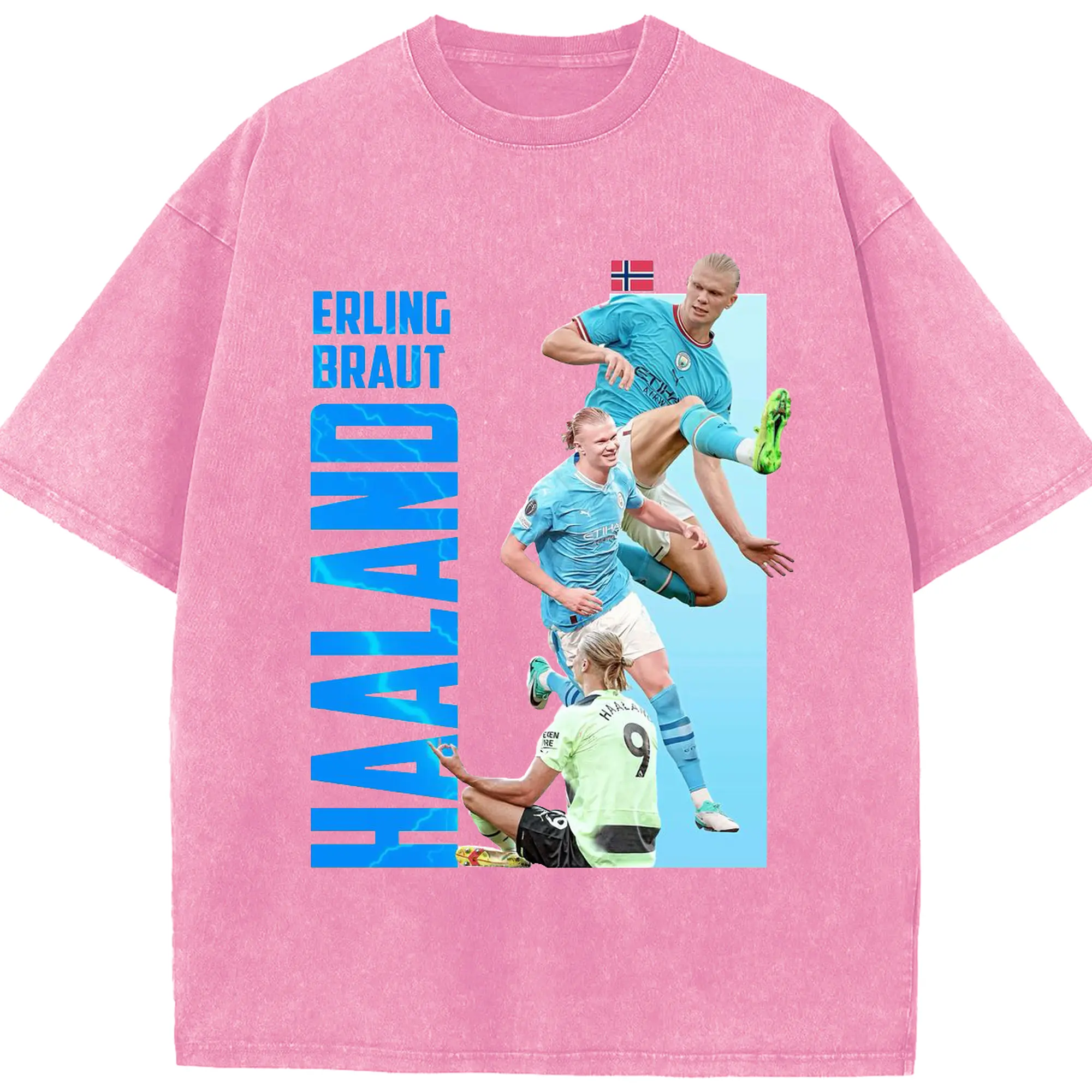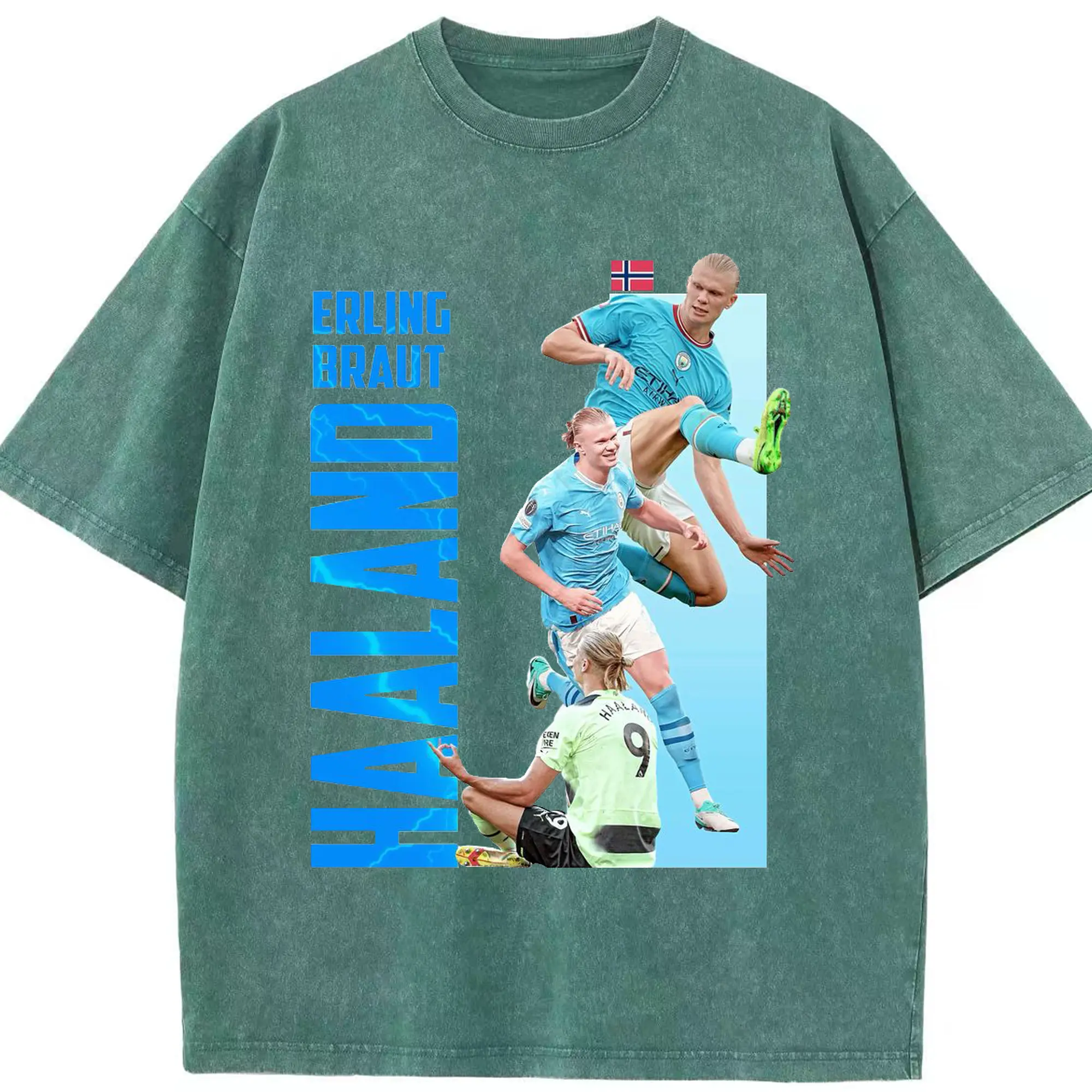 Erling Haaland Manchester City Soccer DIY T-Shirt - Washed Vintage Look 230g Cotton Oversized T-Shirt With Front Heat Transfer Print – Soft, Lightweight, Stylish Fit – Comfortable Casual Wear For Sports & Everyday Use