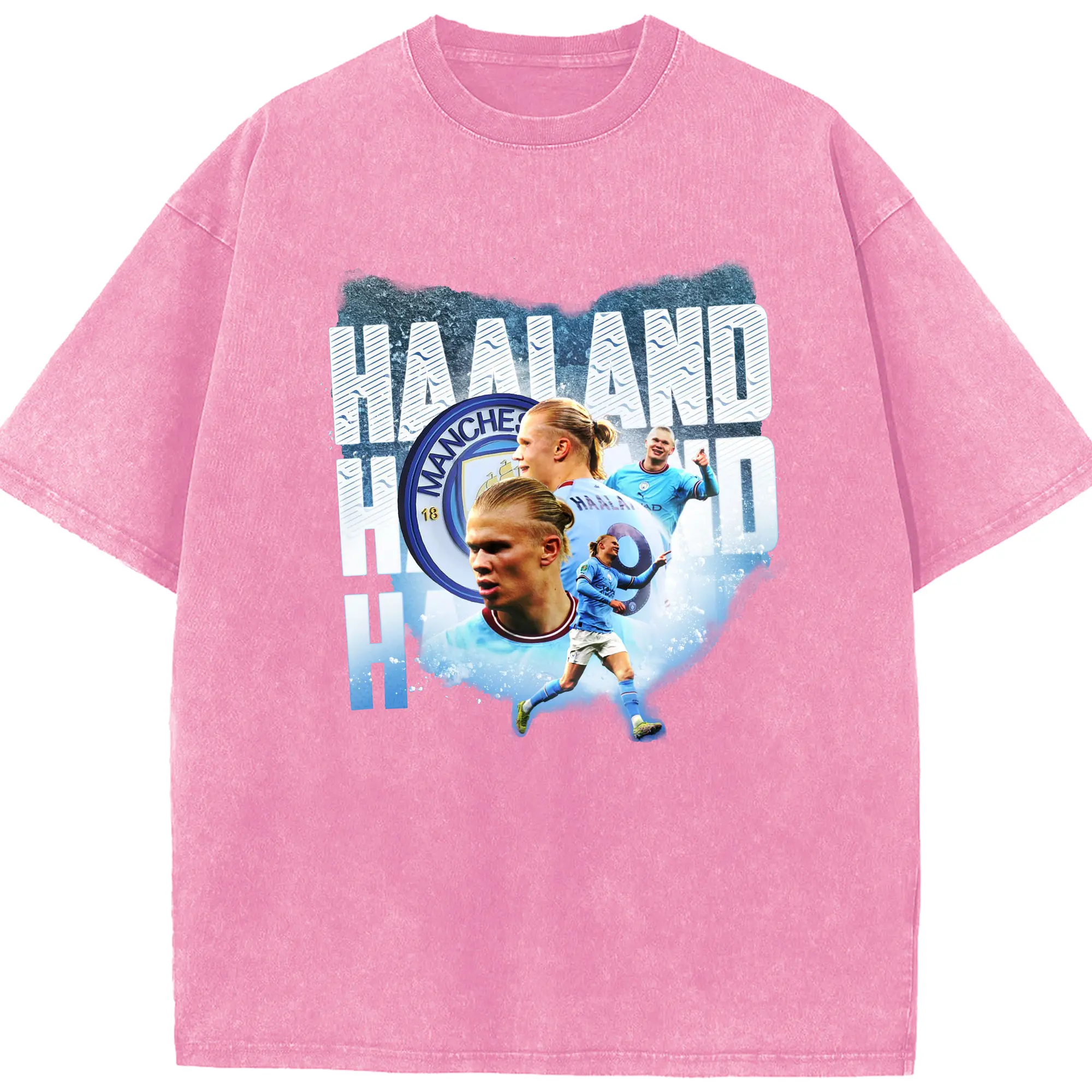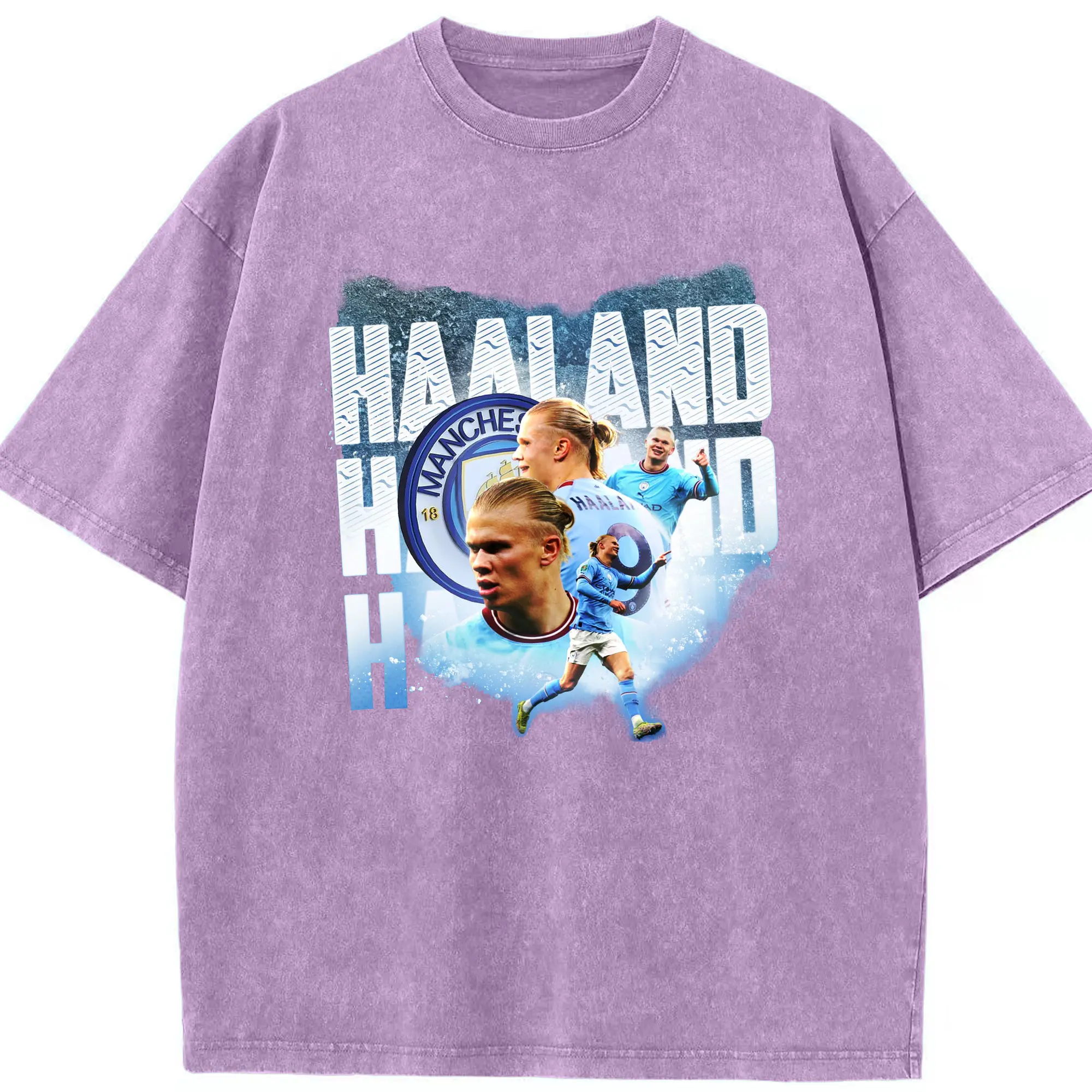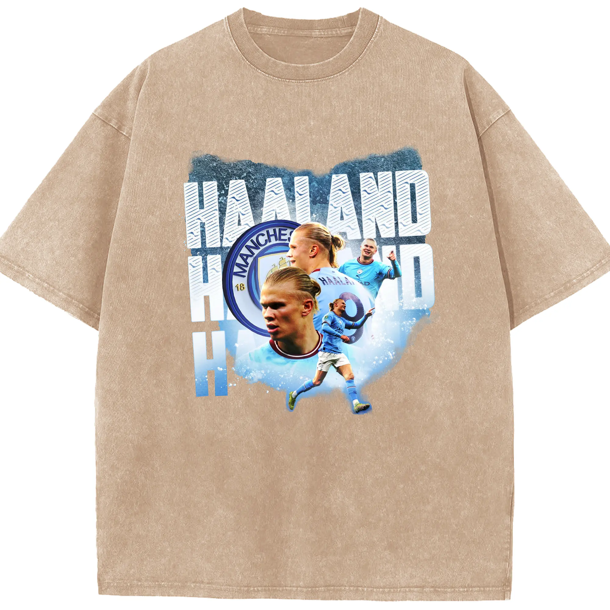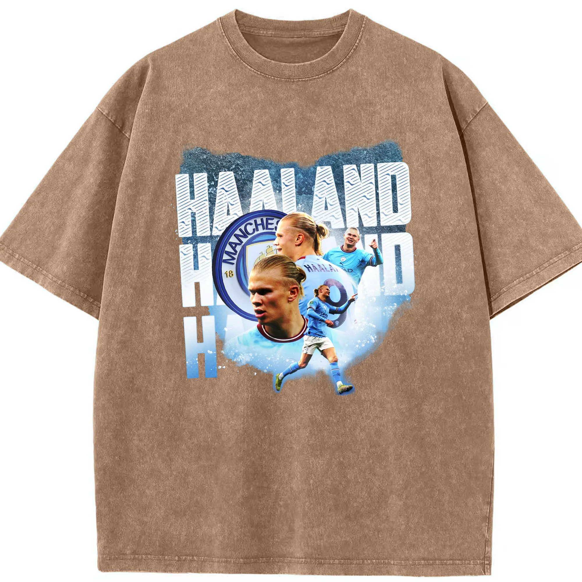 Erling Haaland Manchester City Soccer Star Collage DIY Shirt - Washed Vintage Look 230g Cotton Oversized T-Shirt With Front Heat Transfer Print – Soft, Lightweight, Stylish Fit – Comfortable Casual Wear For Sports & Everyday Use