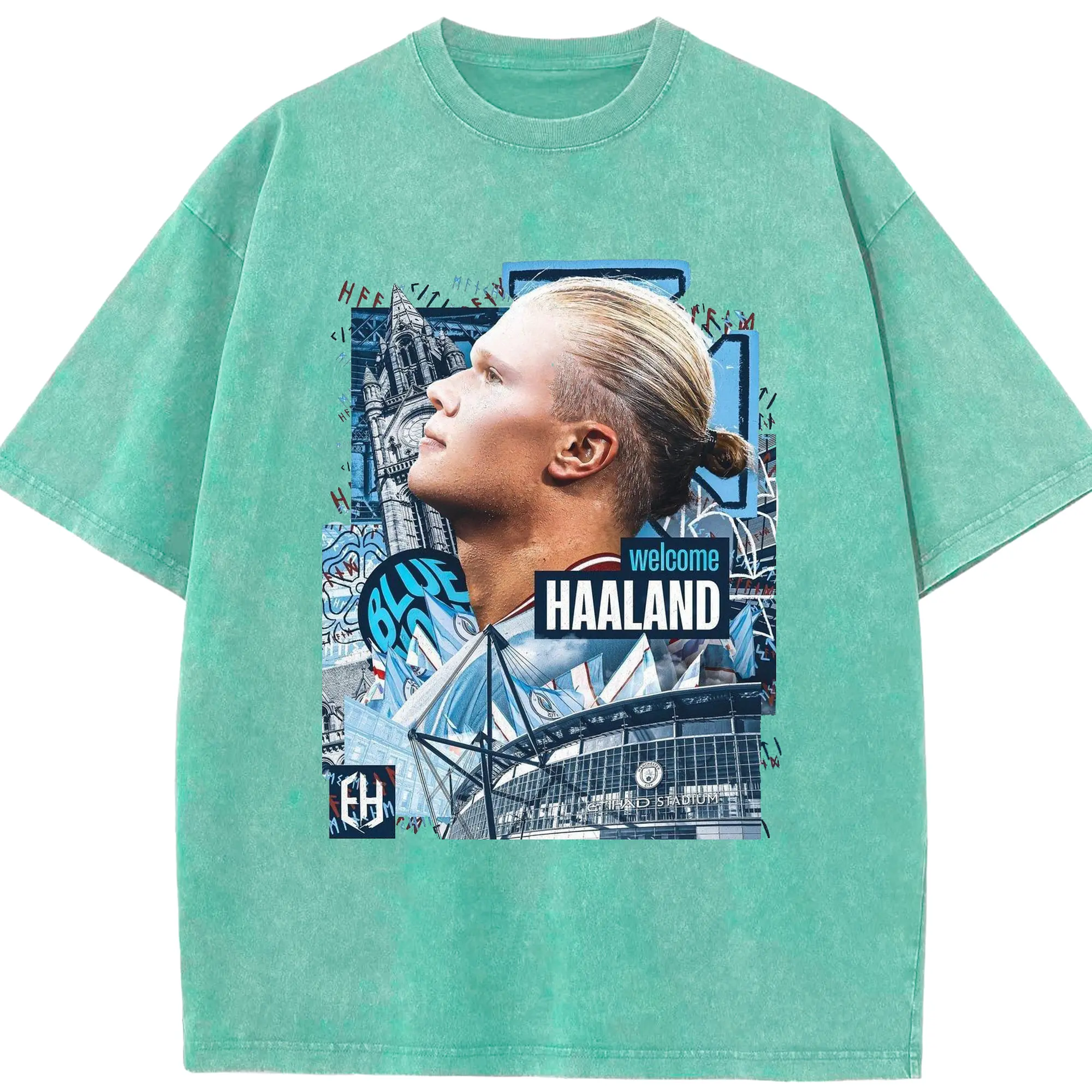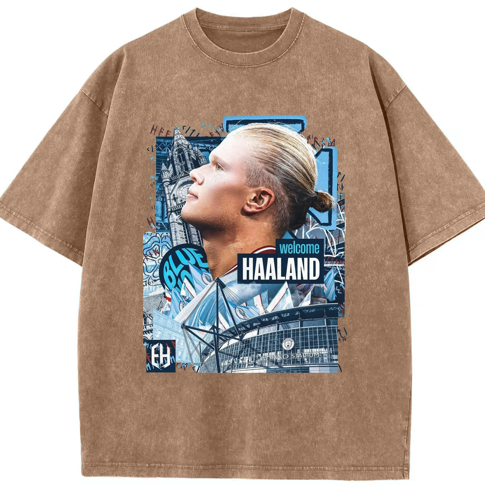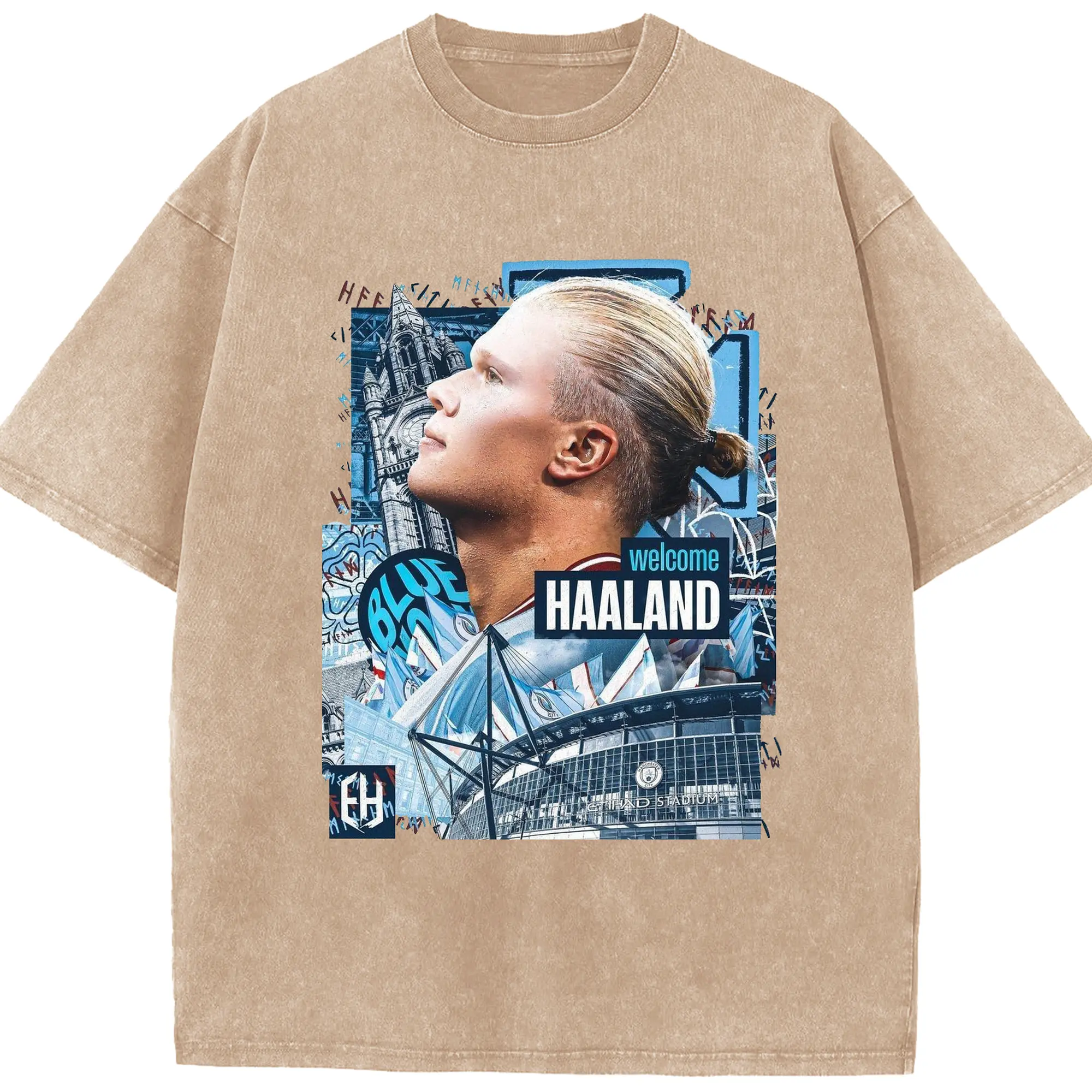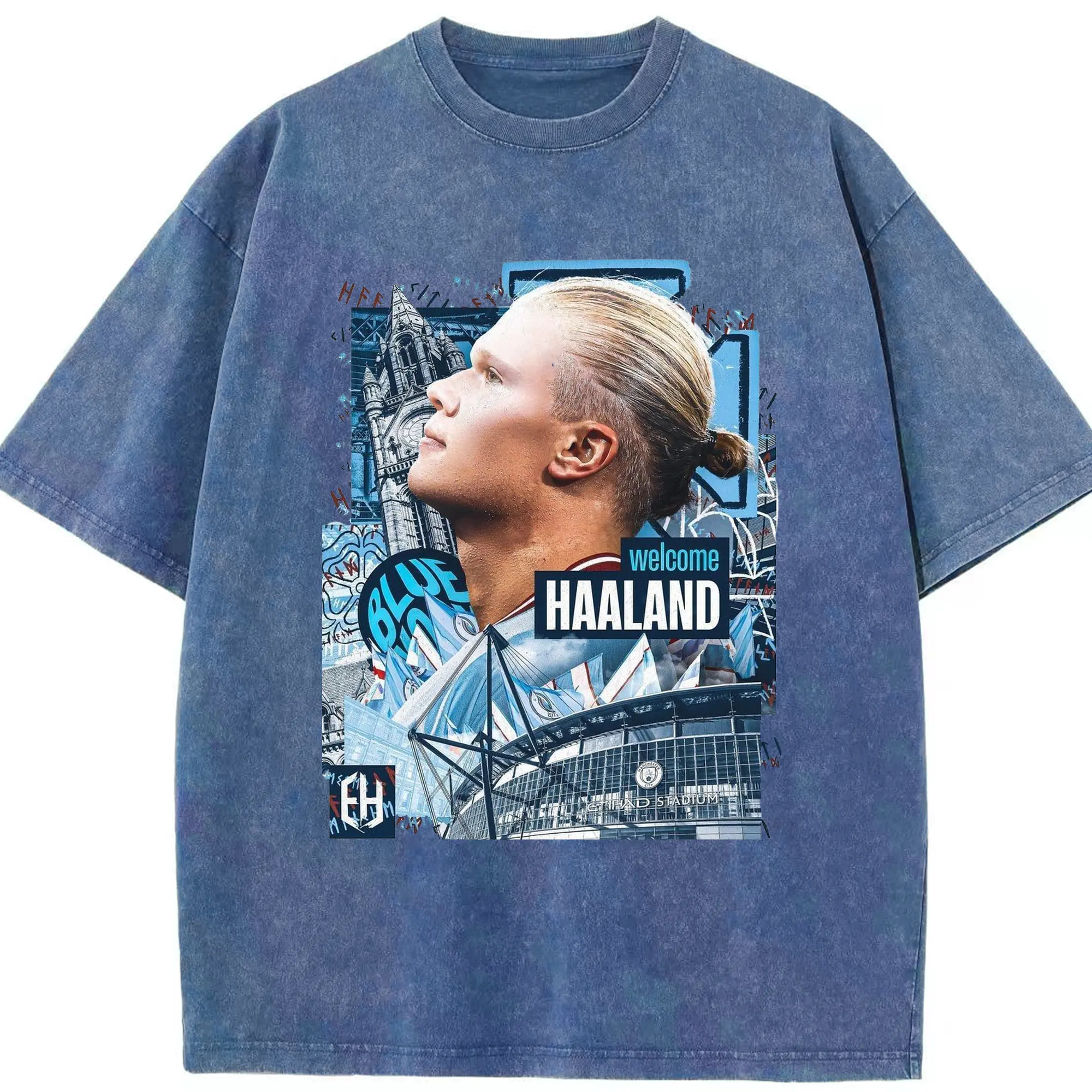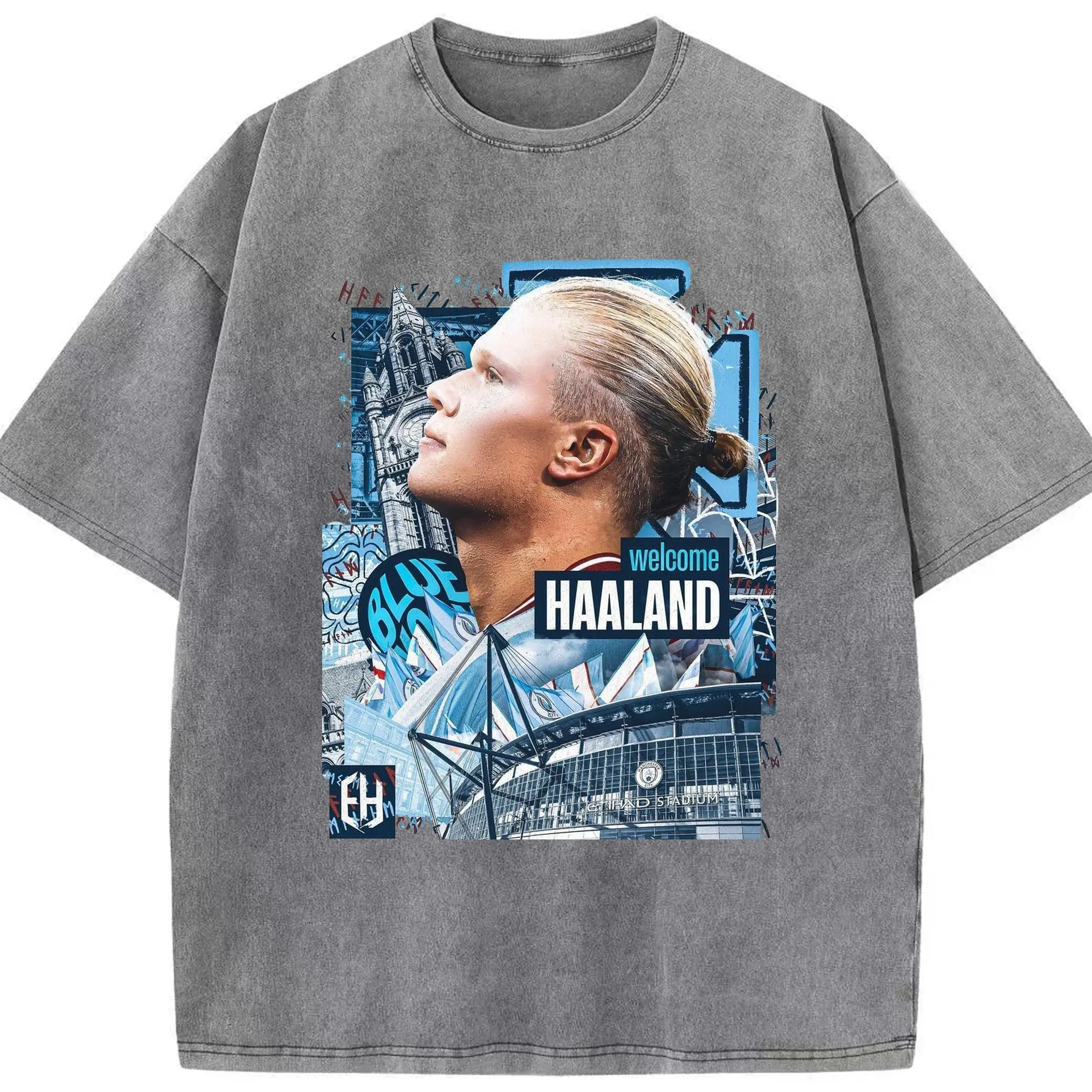Erling Haaland Manchester City Welcome Collage DIY Shirt - Washed Vintage Look 230g Cotton Oversized T-Shirt With Front Heat Transfer Print – Soft, Lightweight, Stylish Fit – Comfortable Casual Wear For Sports & Everyday Use