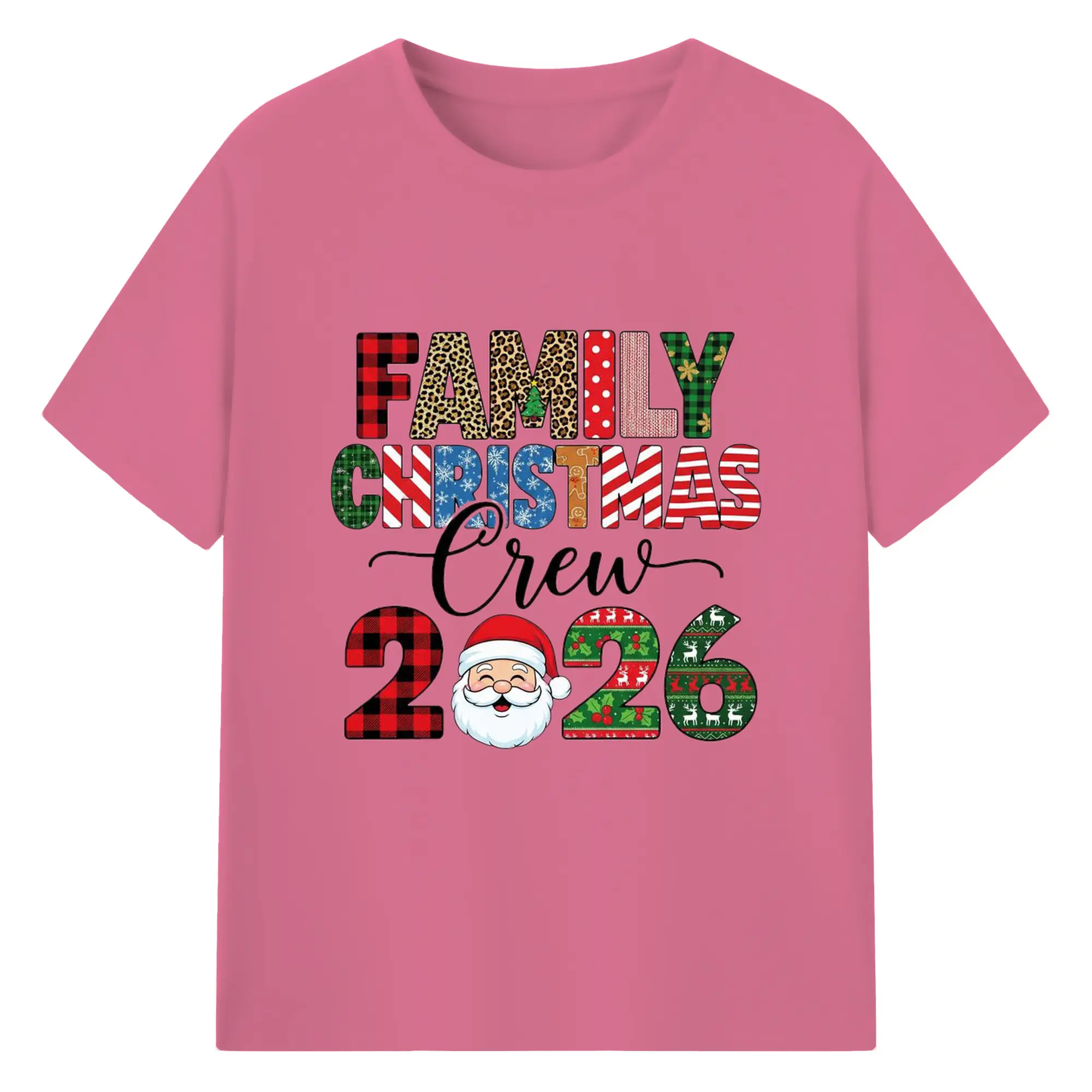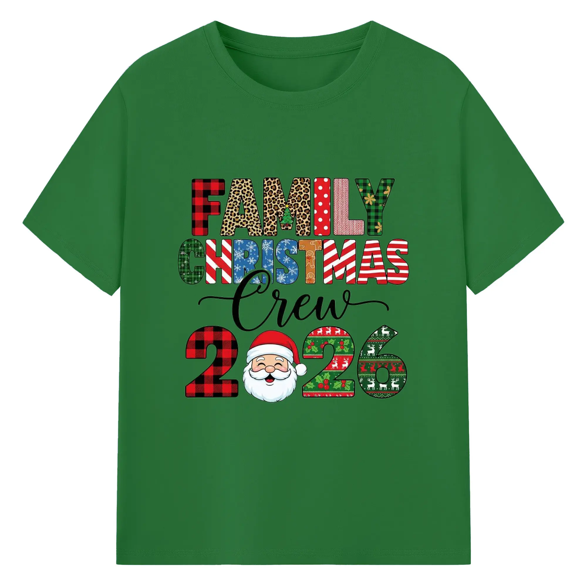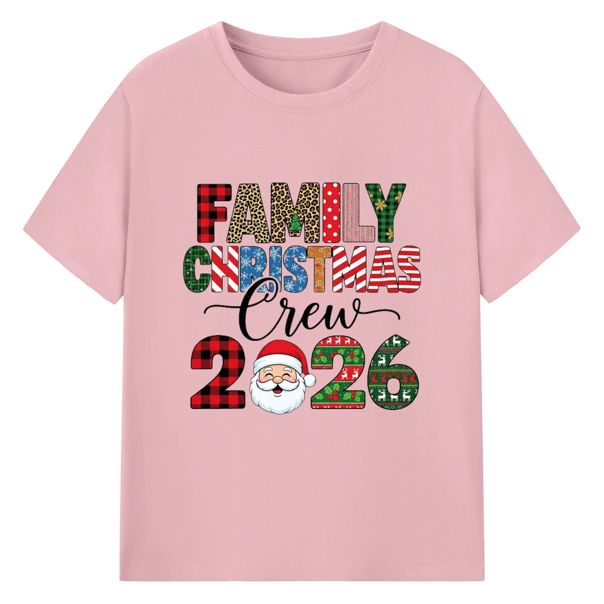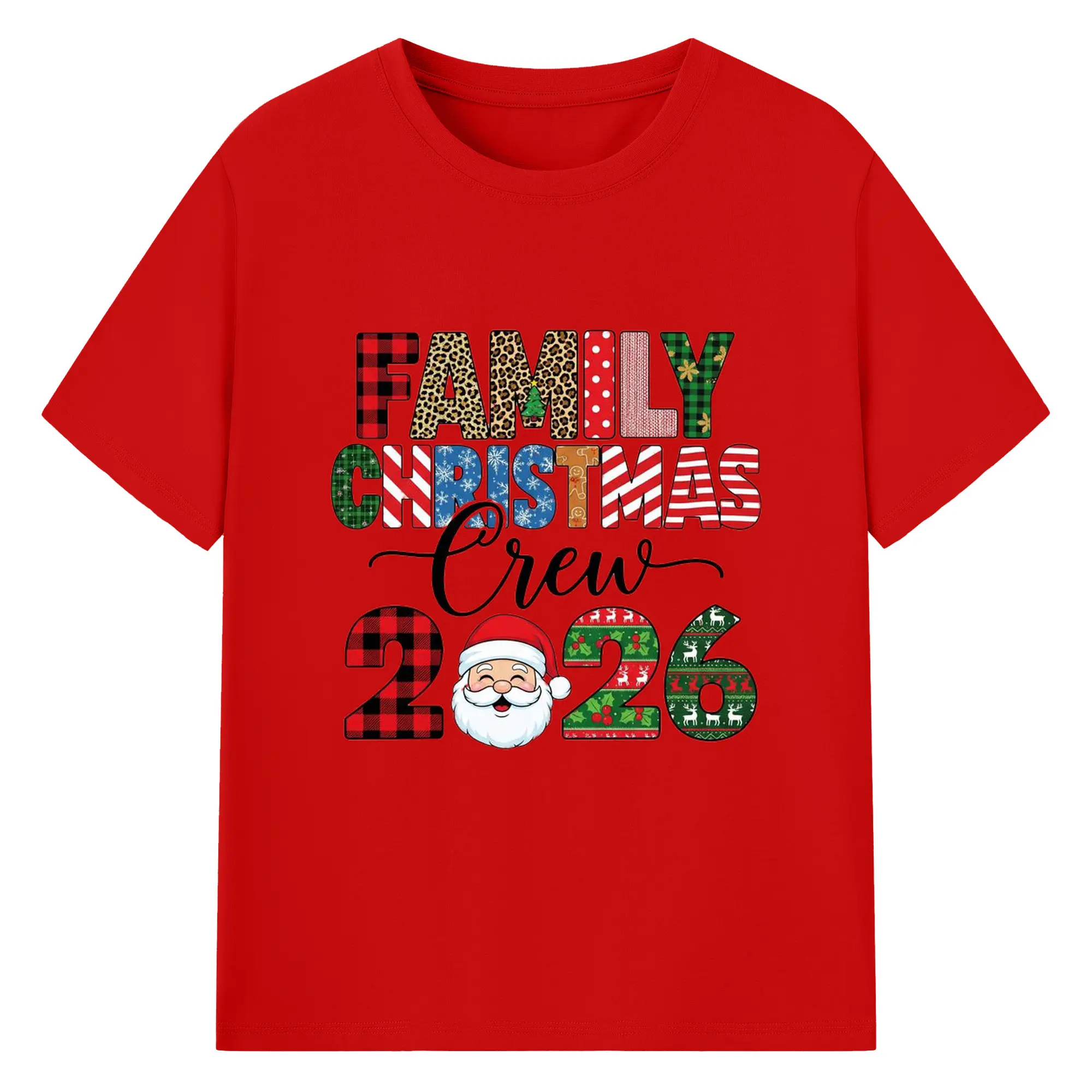 Family Christmas Crew 2026 Patterned - 180g Cotton T-Shirt With Front Heat Transfer Print – Soft, Lightweight, Fitted Design – Comfortable Casual Wear For Sports & Everyday Use