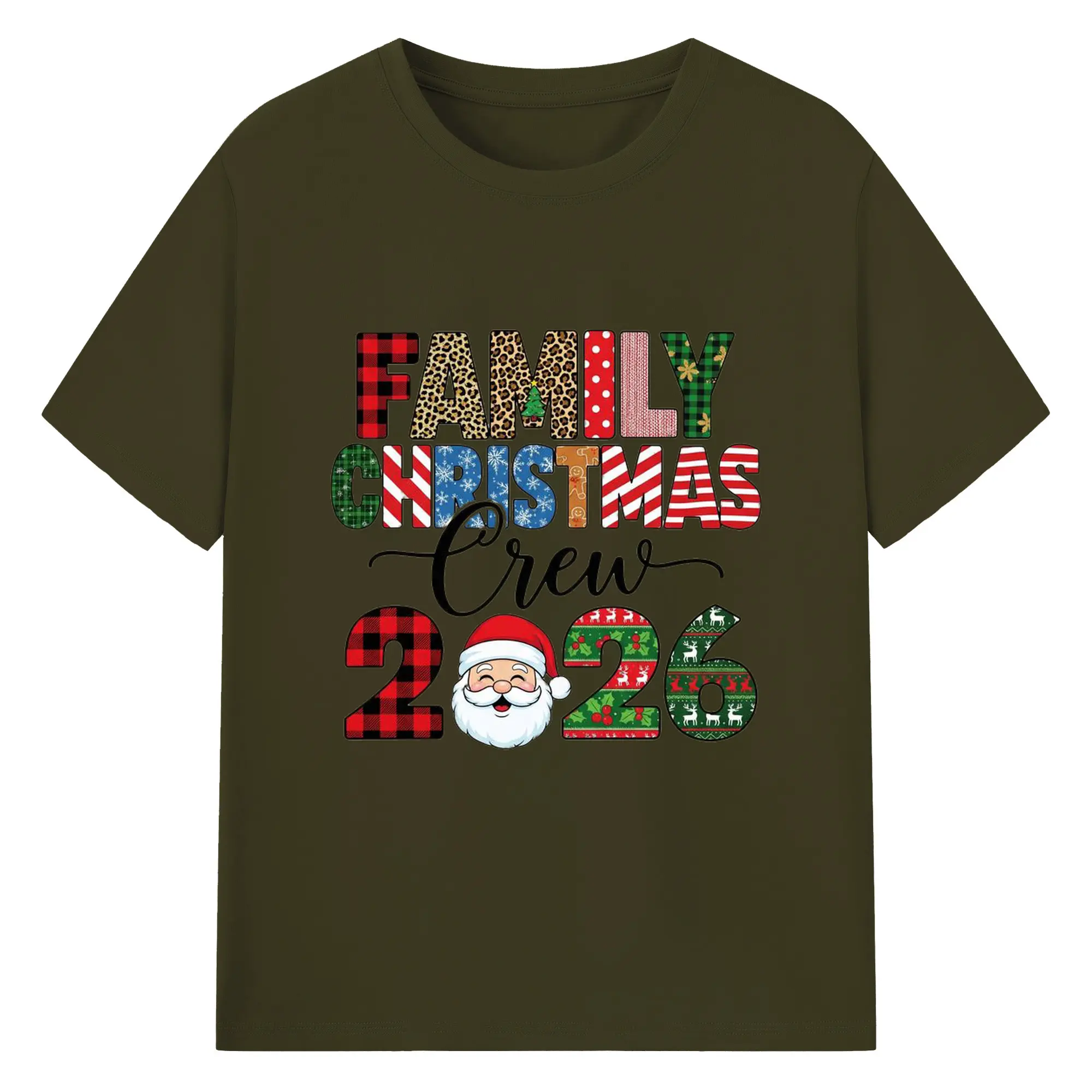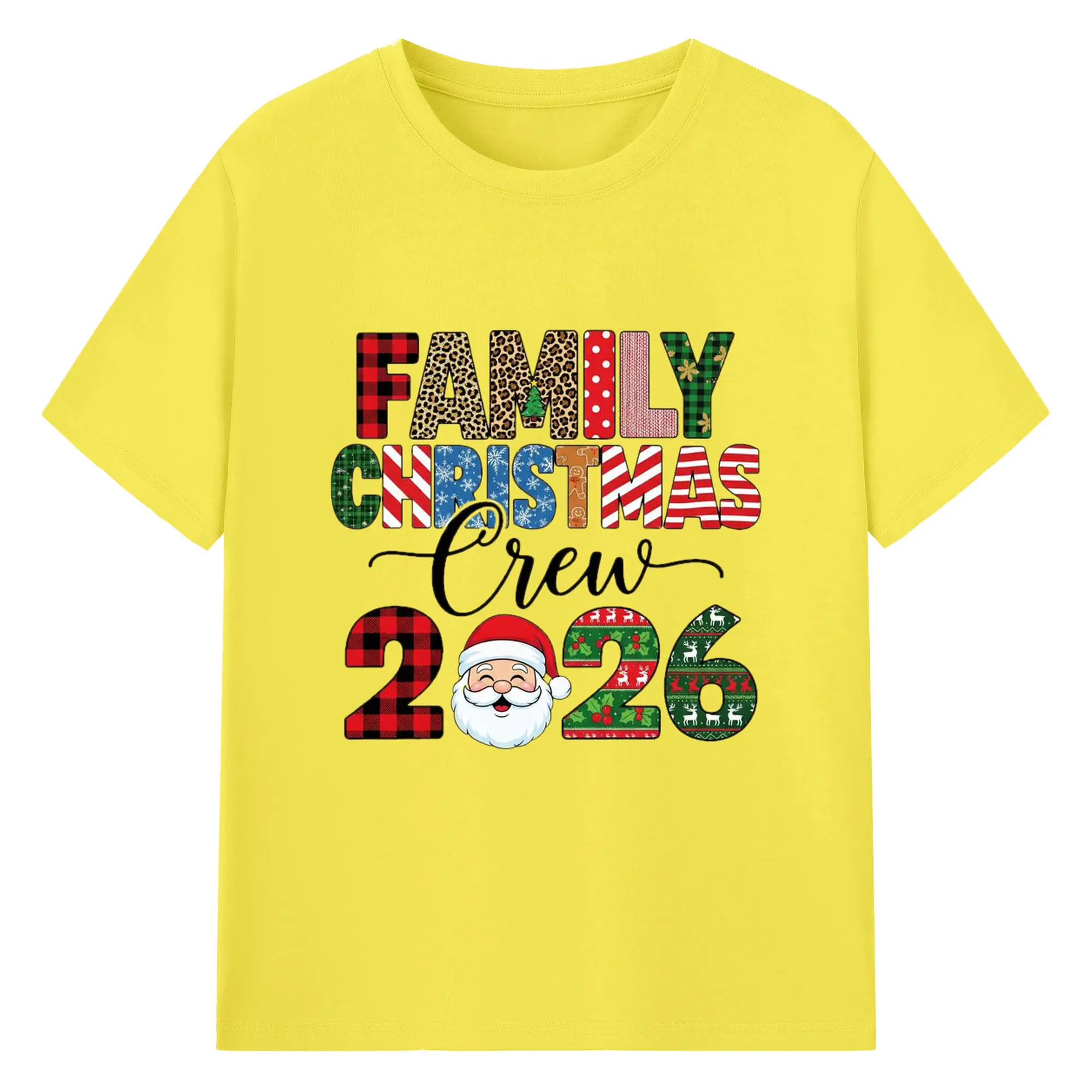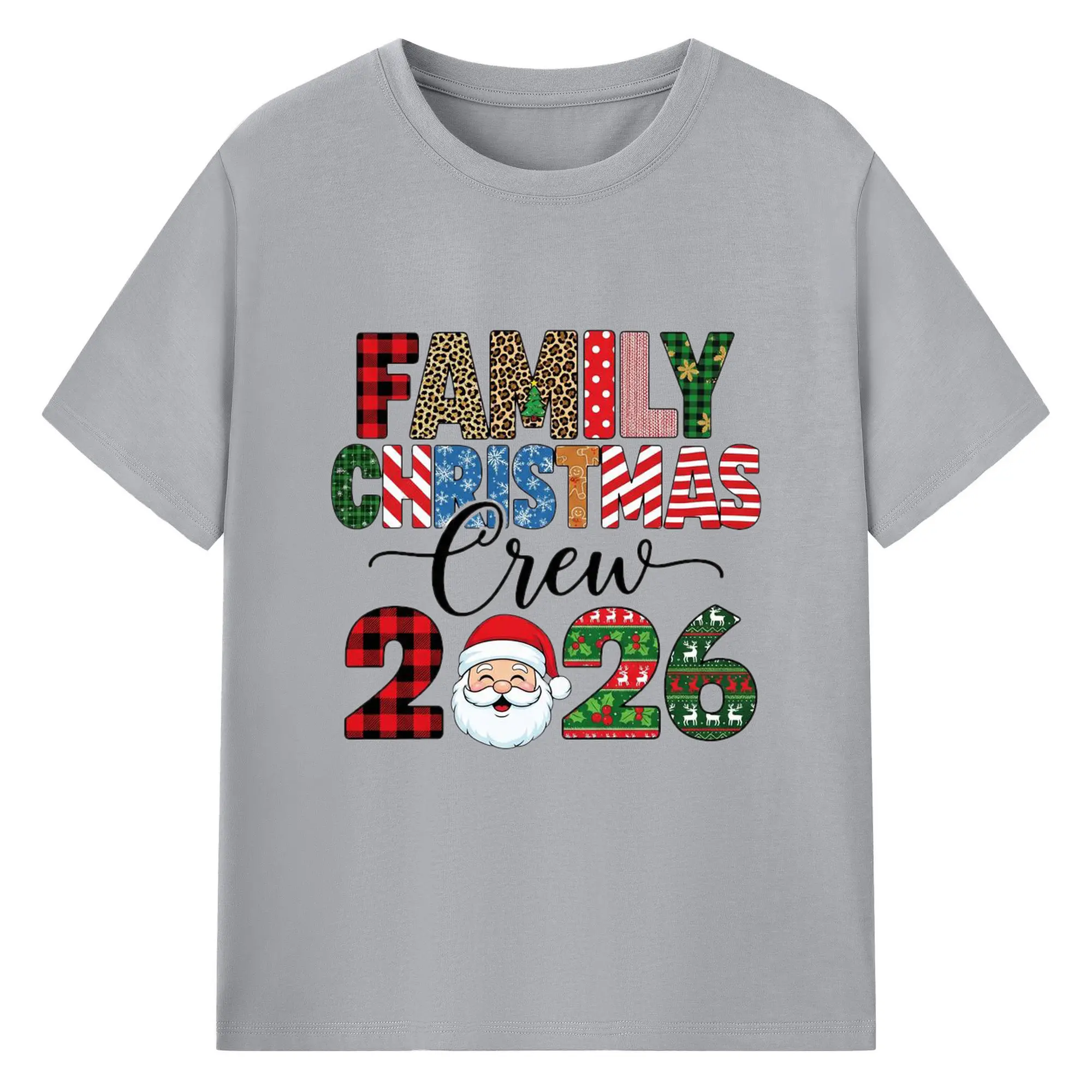 Family Christmas Crew 2026 Patterned - 180g Cotton T-Shirt With Front Heat Transfer Print – Soft, Lightweight, Fitted Design – Comfortable Casual Wear For Sports & Everyday Use