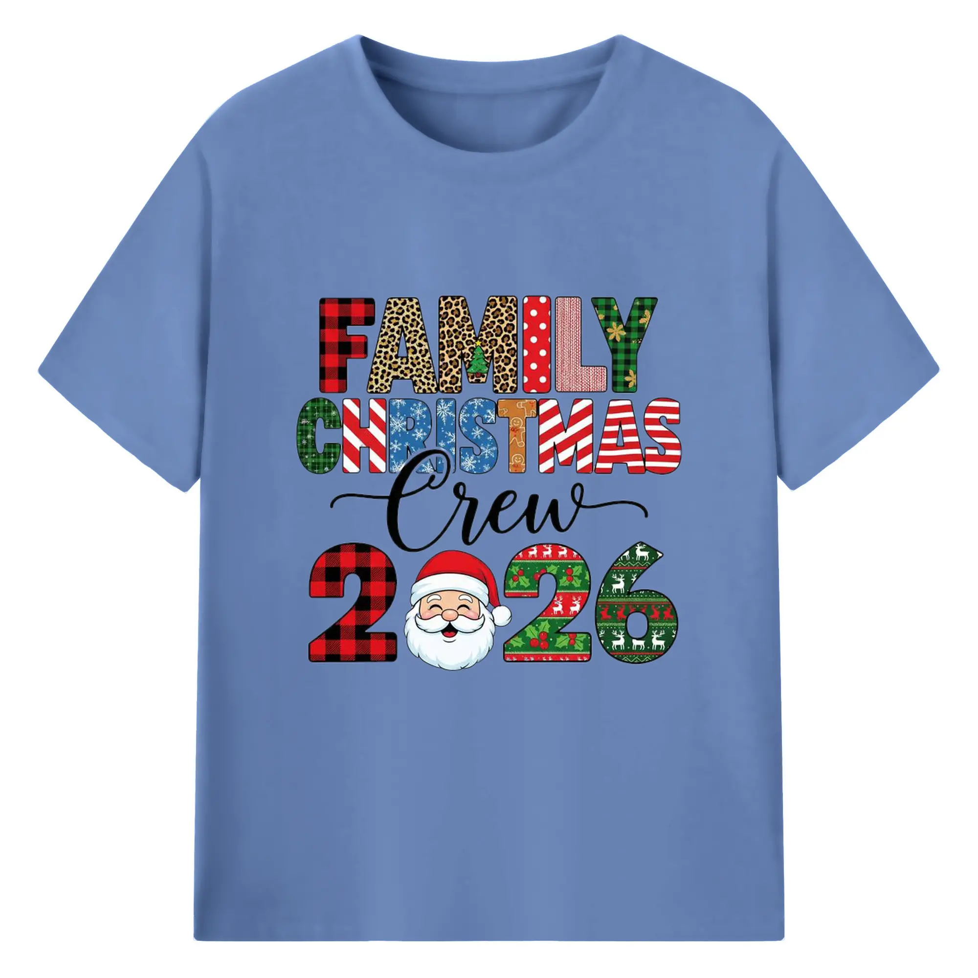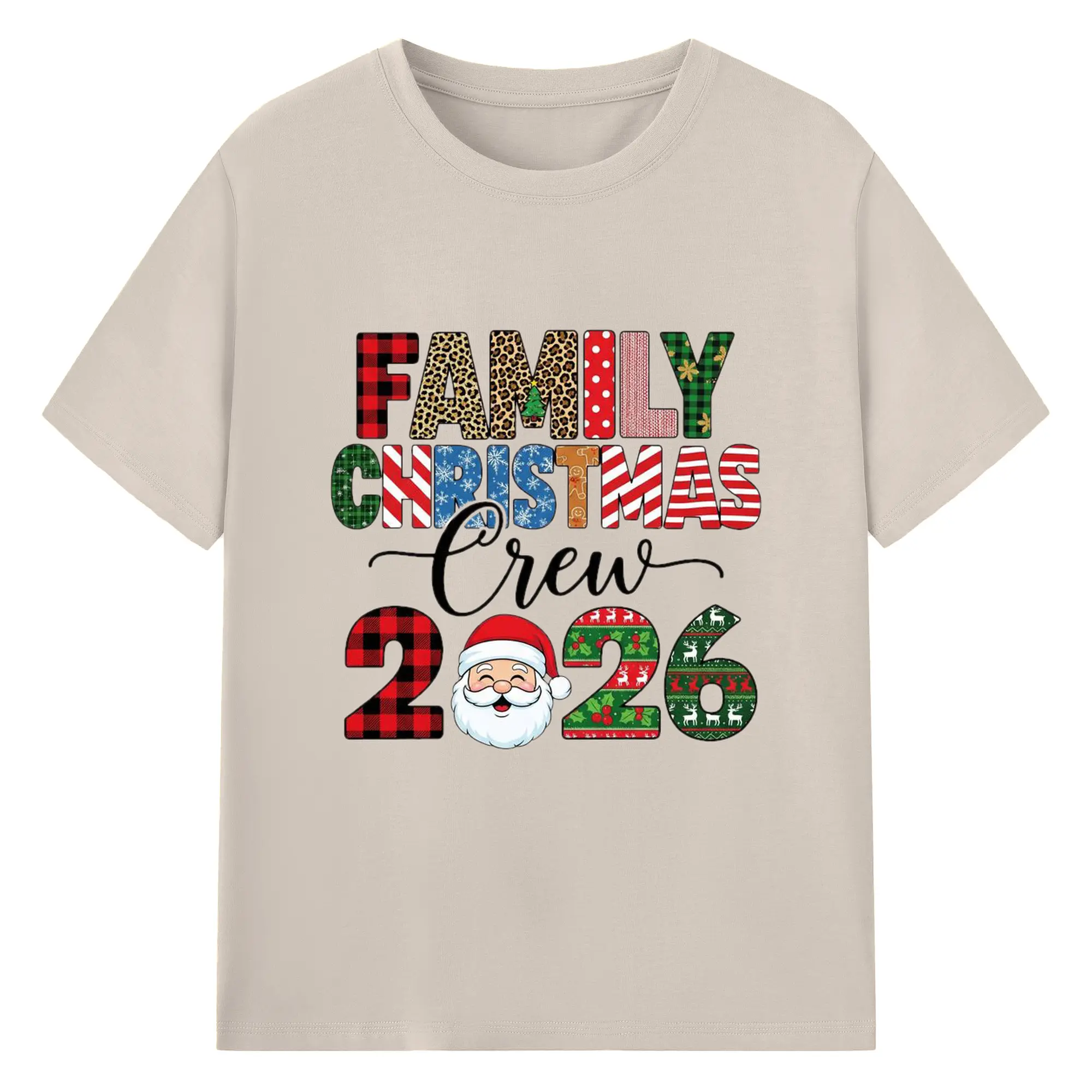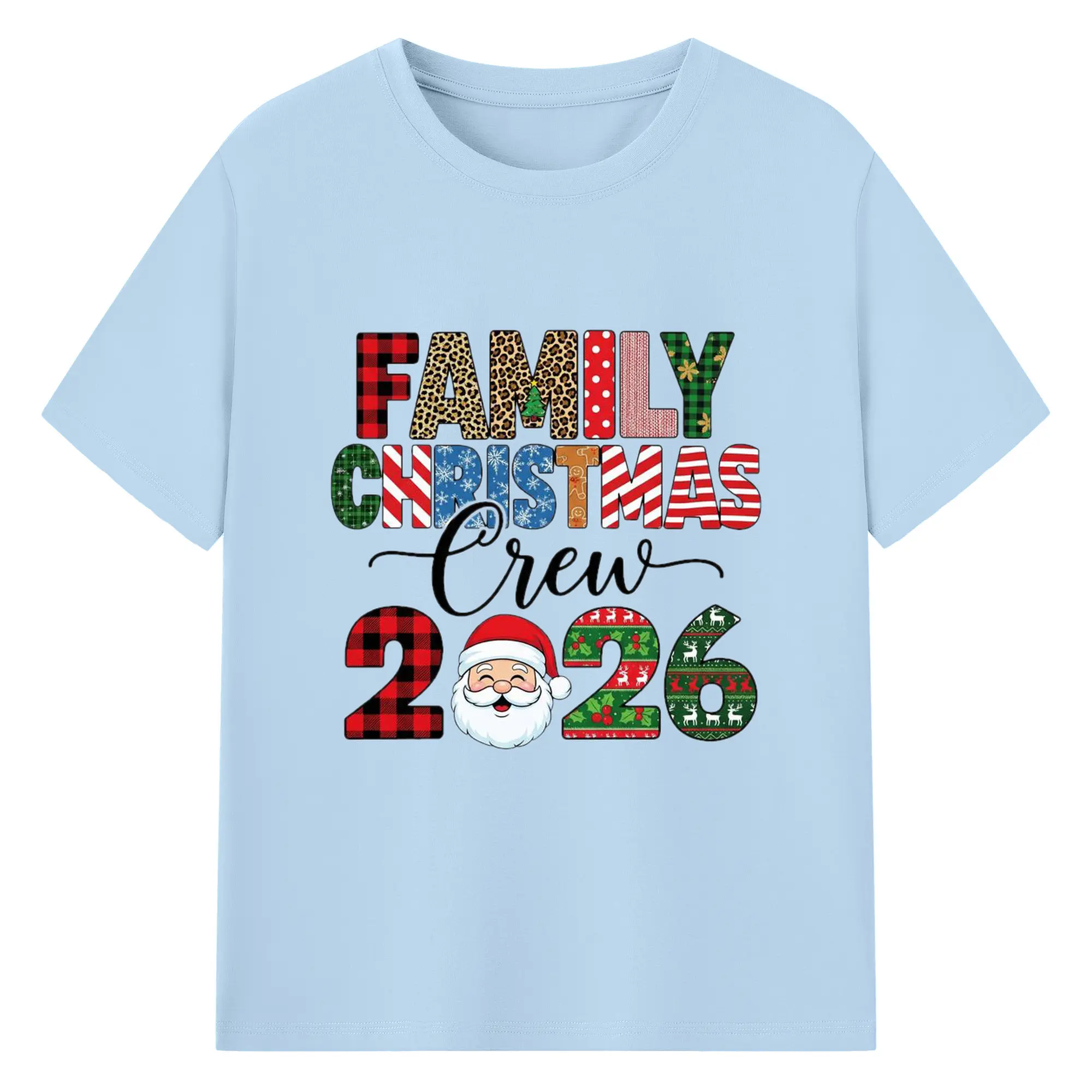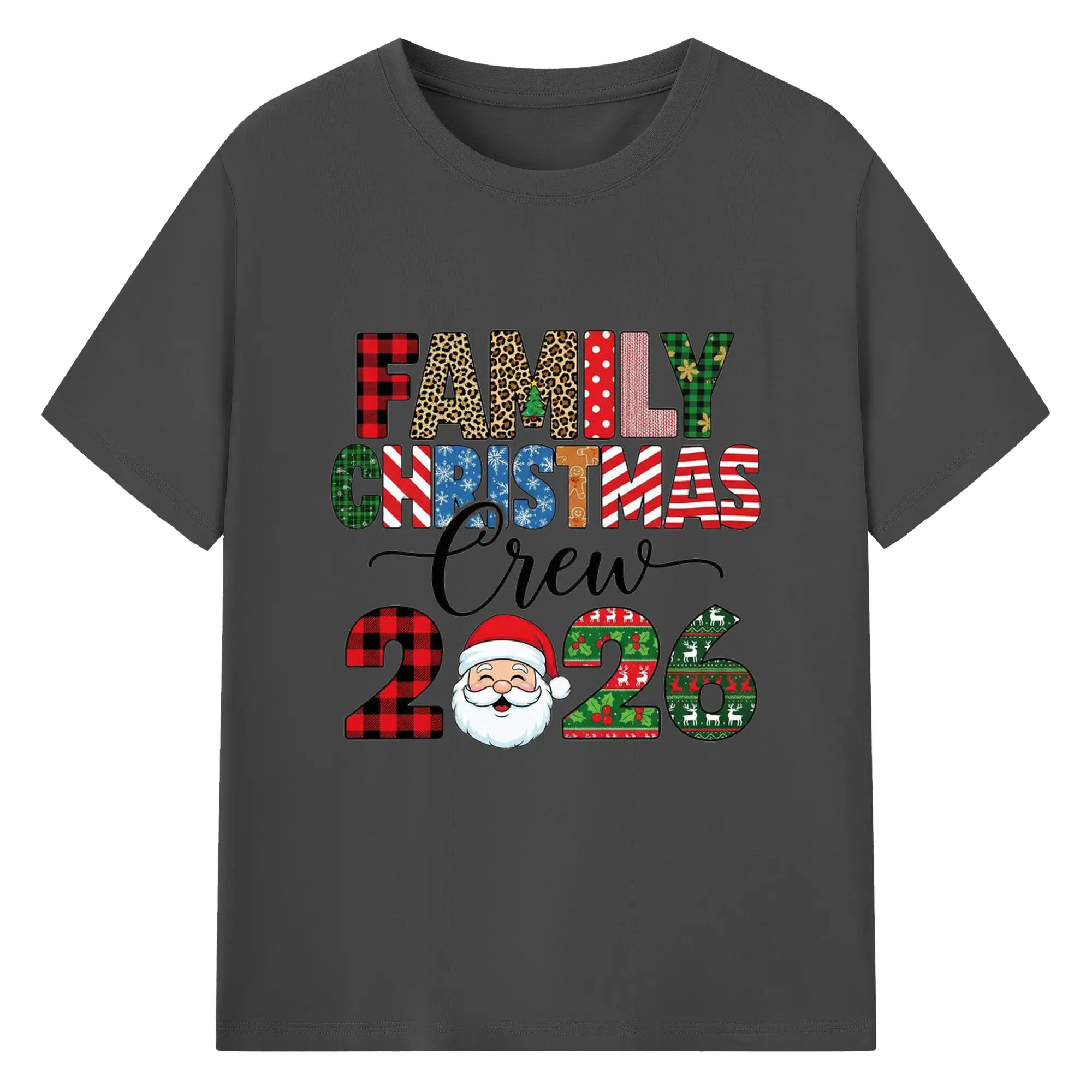 Family Christmas Crew 2026 Patterned - 180g Cotton T-Shirt With Front Heat Transfer Print – Soft, Lightweight, Fitted Design – Comfortable Casual Wear For Sports & Everyday Use