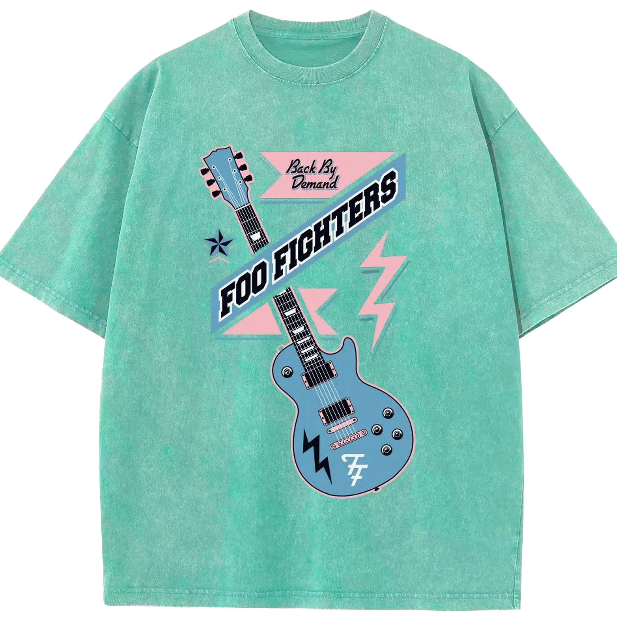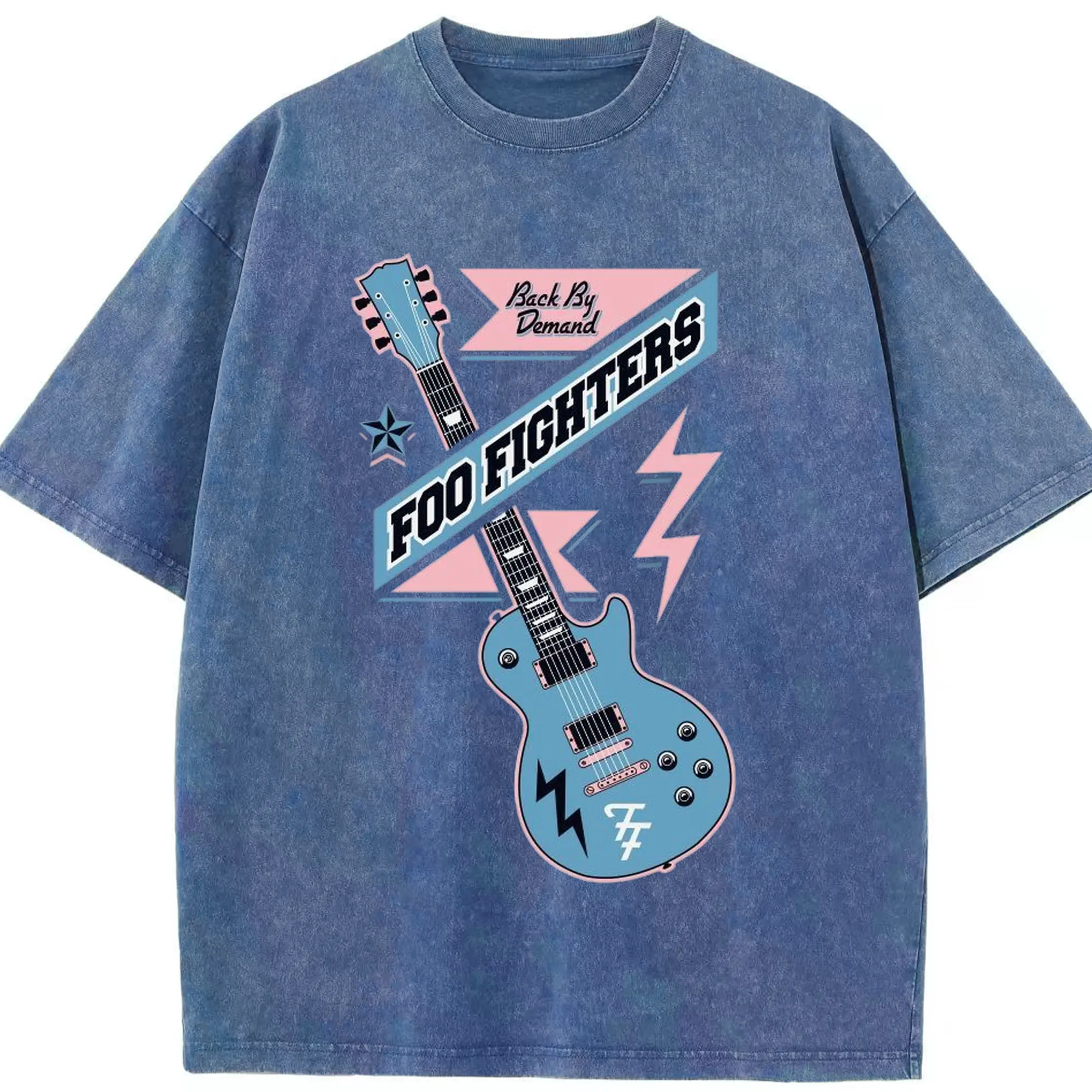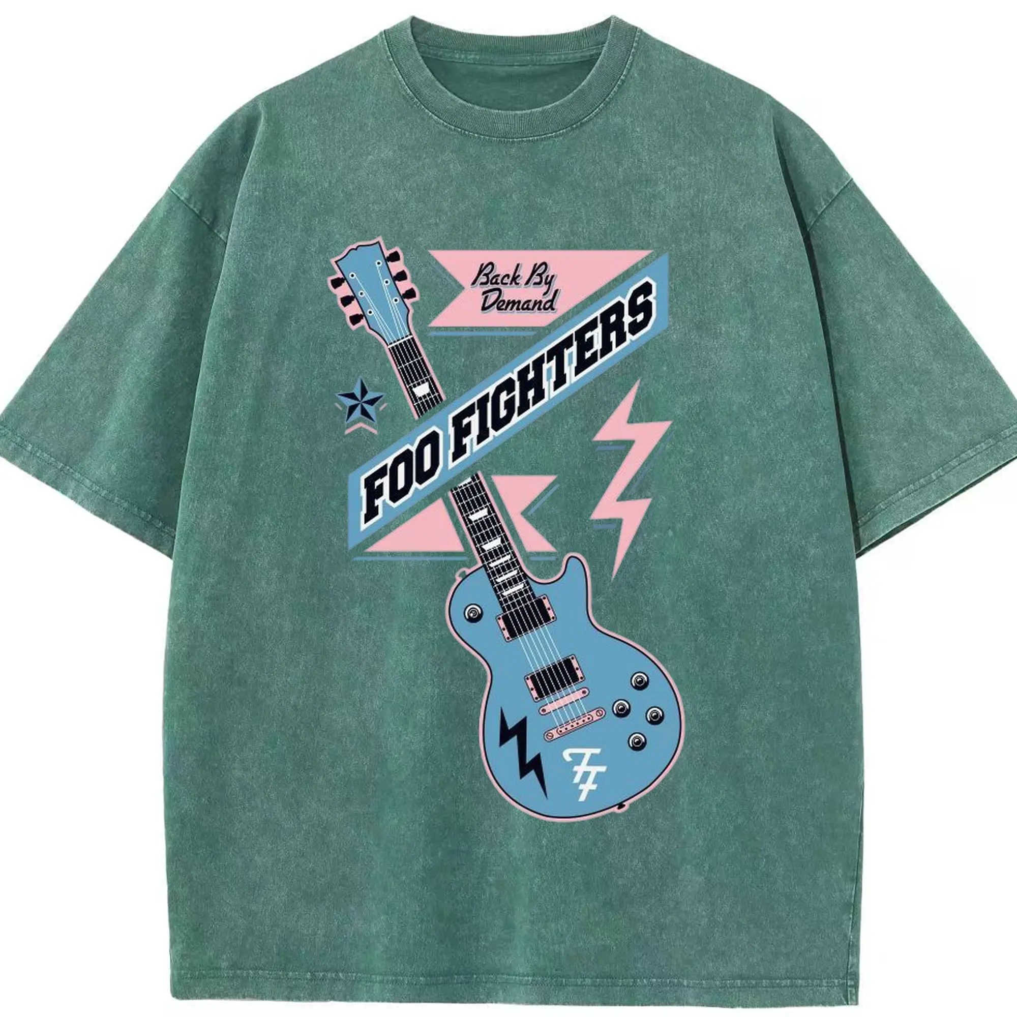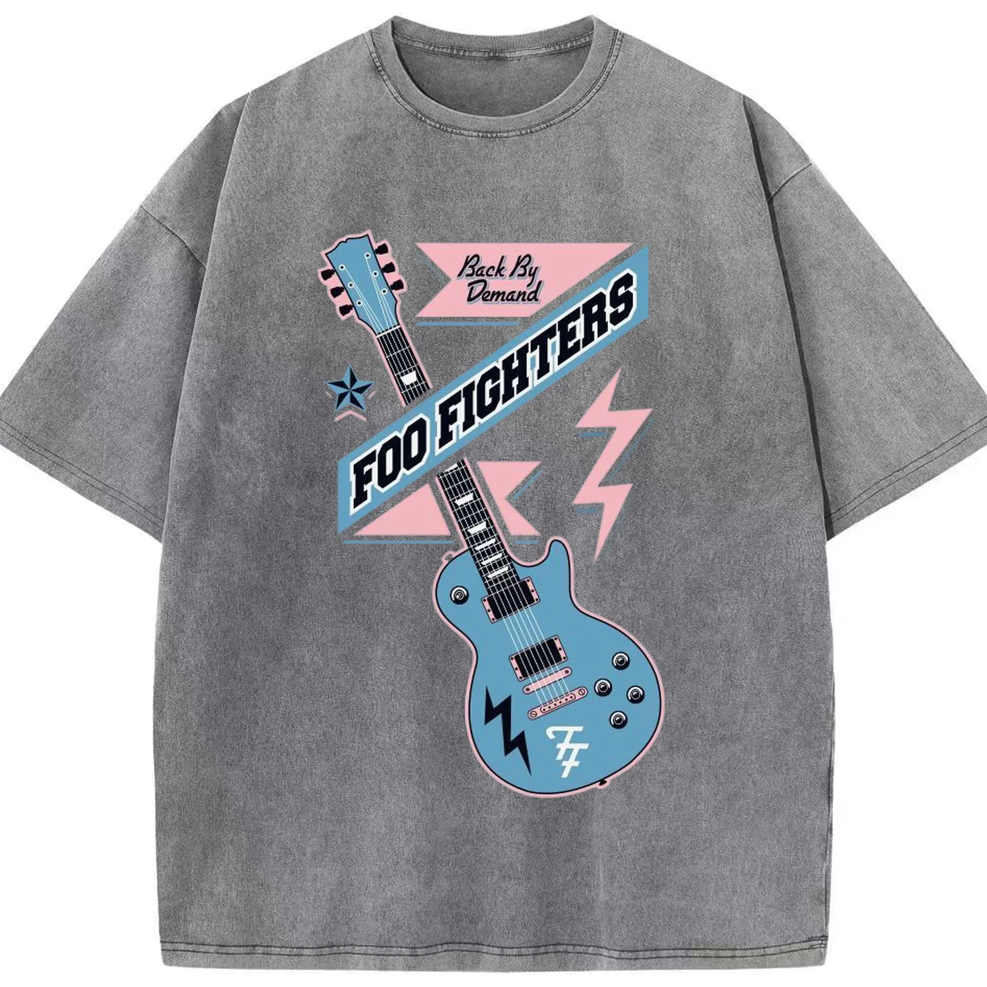 Foo Fighters “Back By Demand” Retro Rock Guitar DIY - Washed Vintage Look 230g Cotton Oversized T-Shirt With Front Heat Transfer Print – Soft, Lightweight, Stylish Fit – Comfortable Casual Wear For Sports & Everyday Use