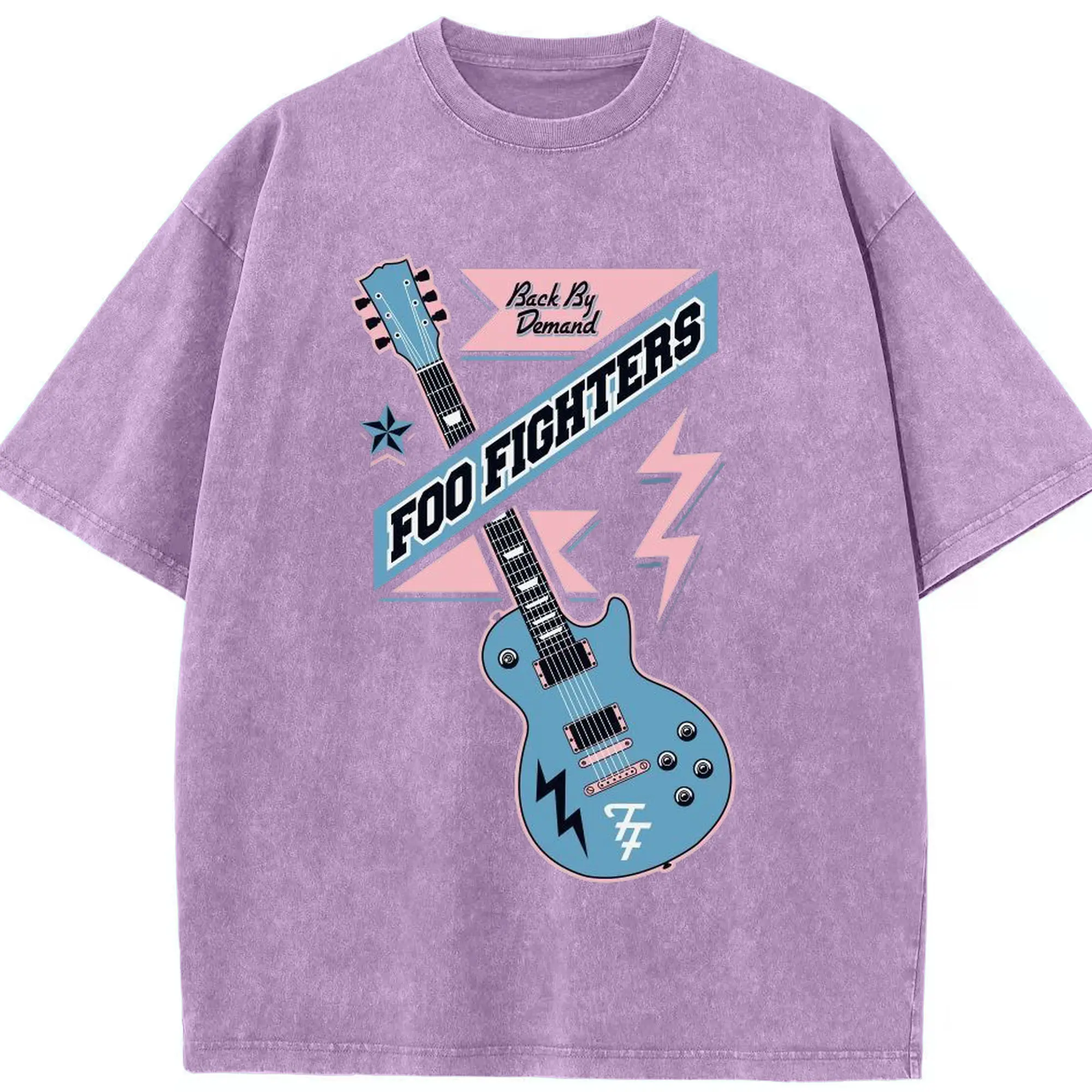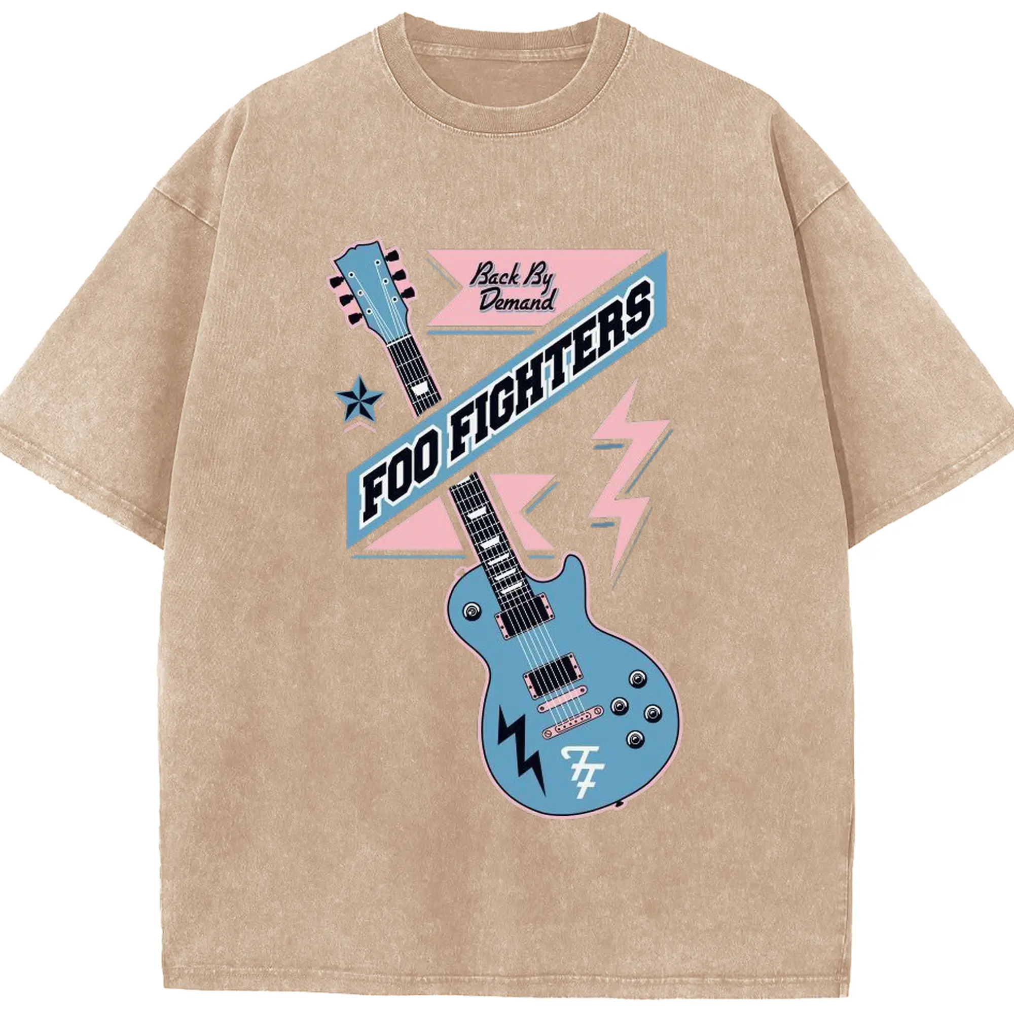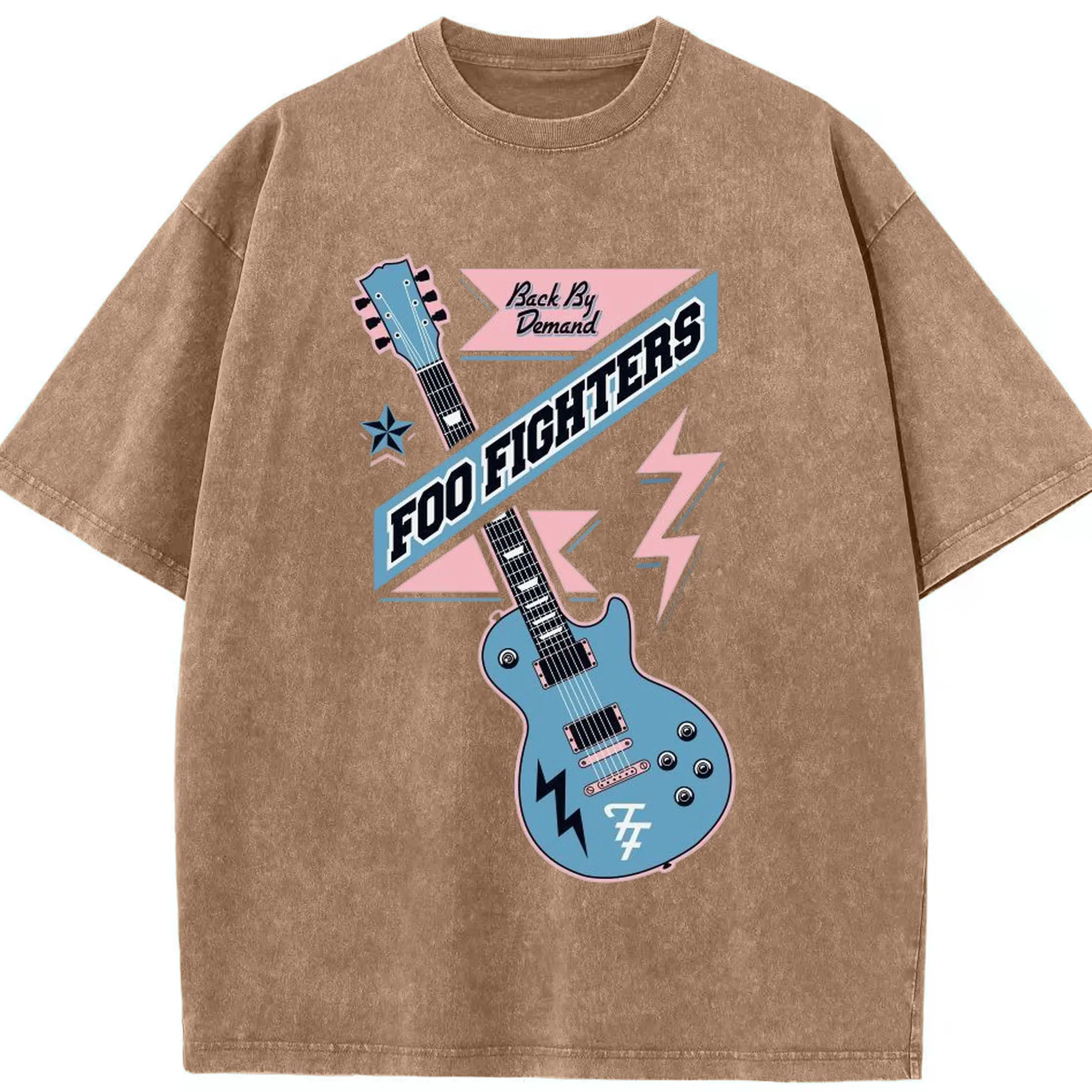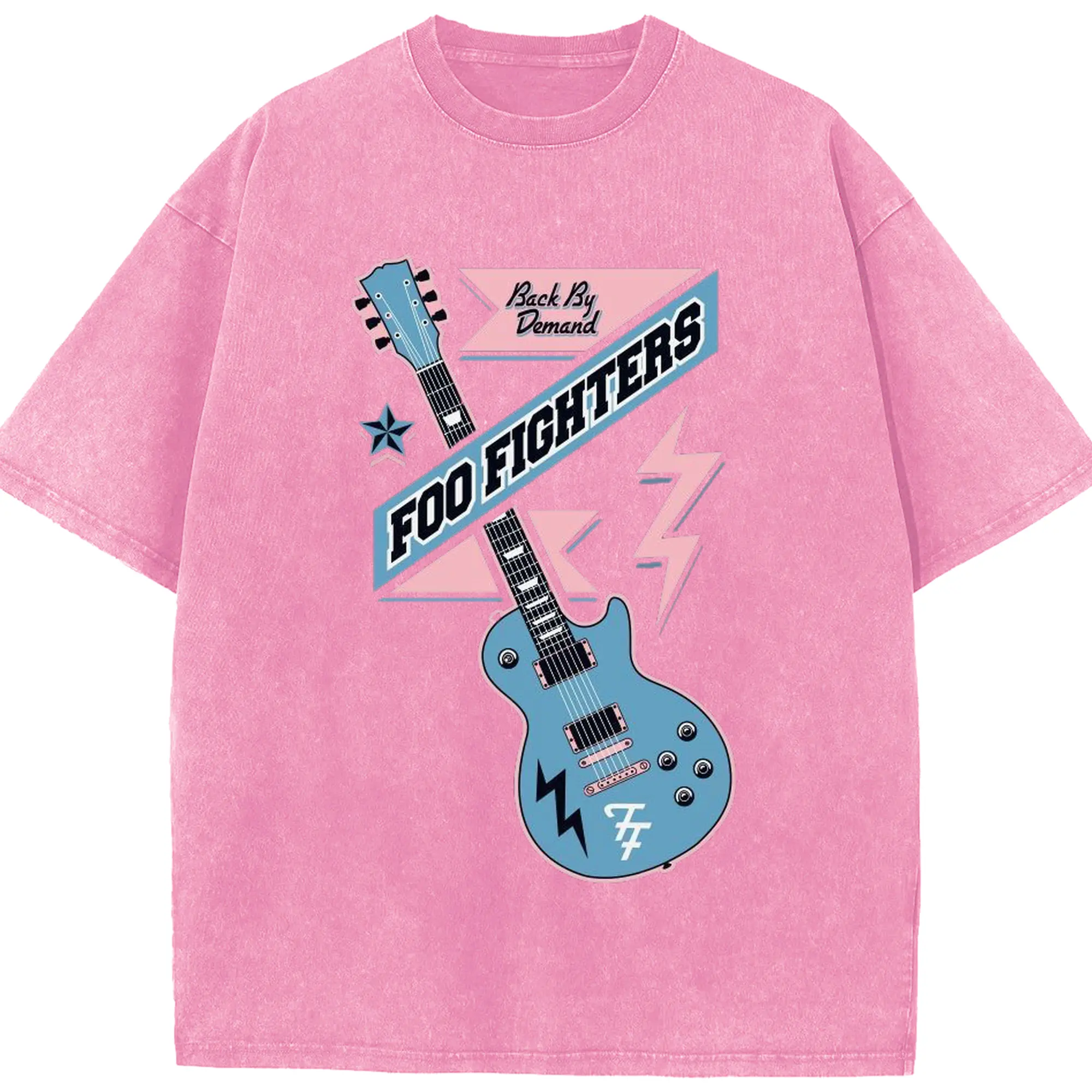Foo Fighters “Back By Demand” Retro Rock Guitar DIY - Washed Vintage Look 230g Cotton Oversized T-Shirt With Front Heat Transfer Print – Soft, Lightweight, Stylish Fit – Comfortable Casual Wear For Sports & Everyday Use