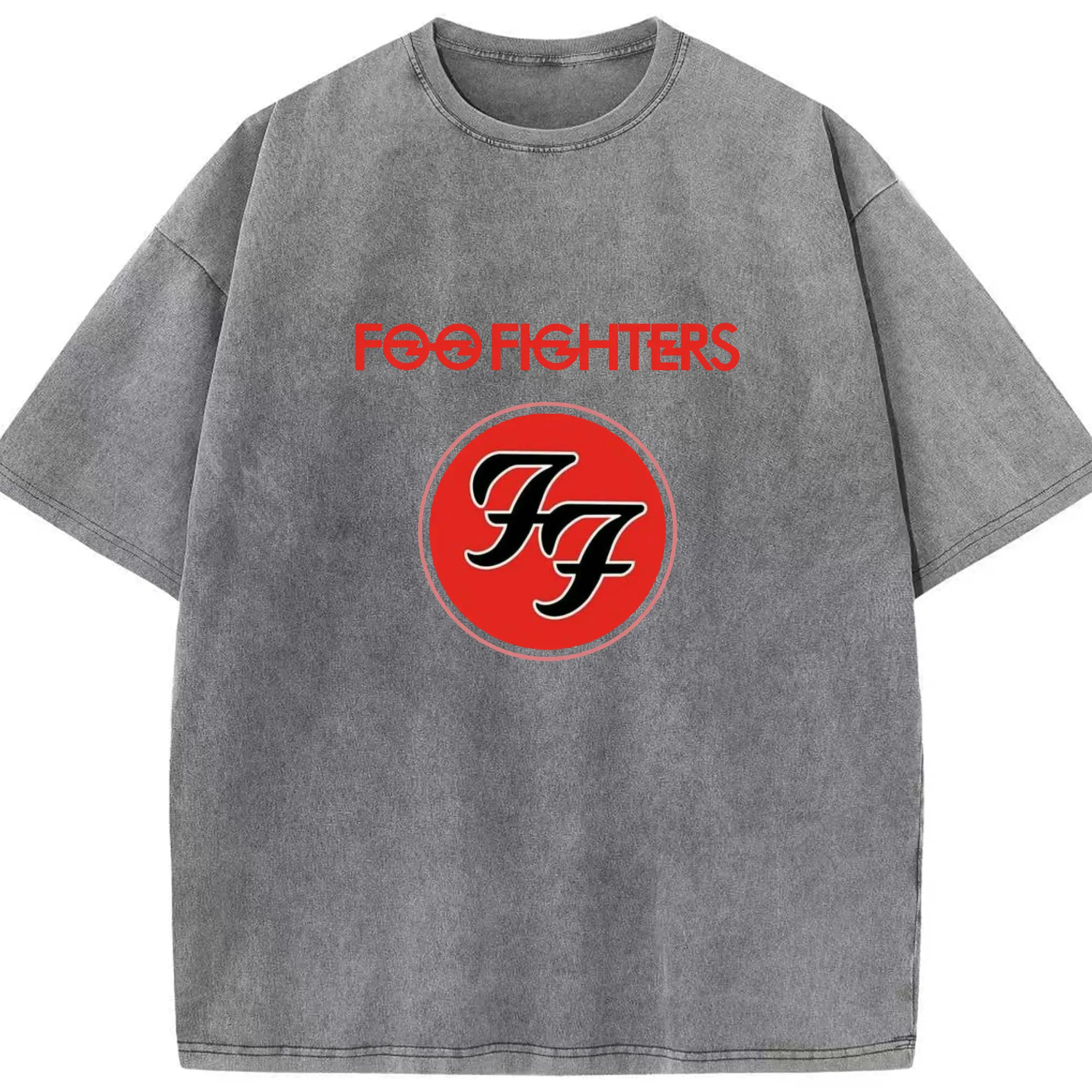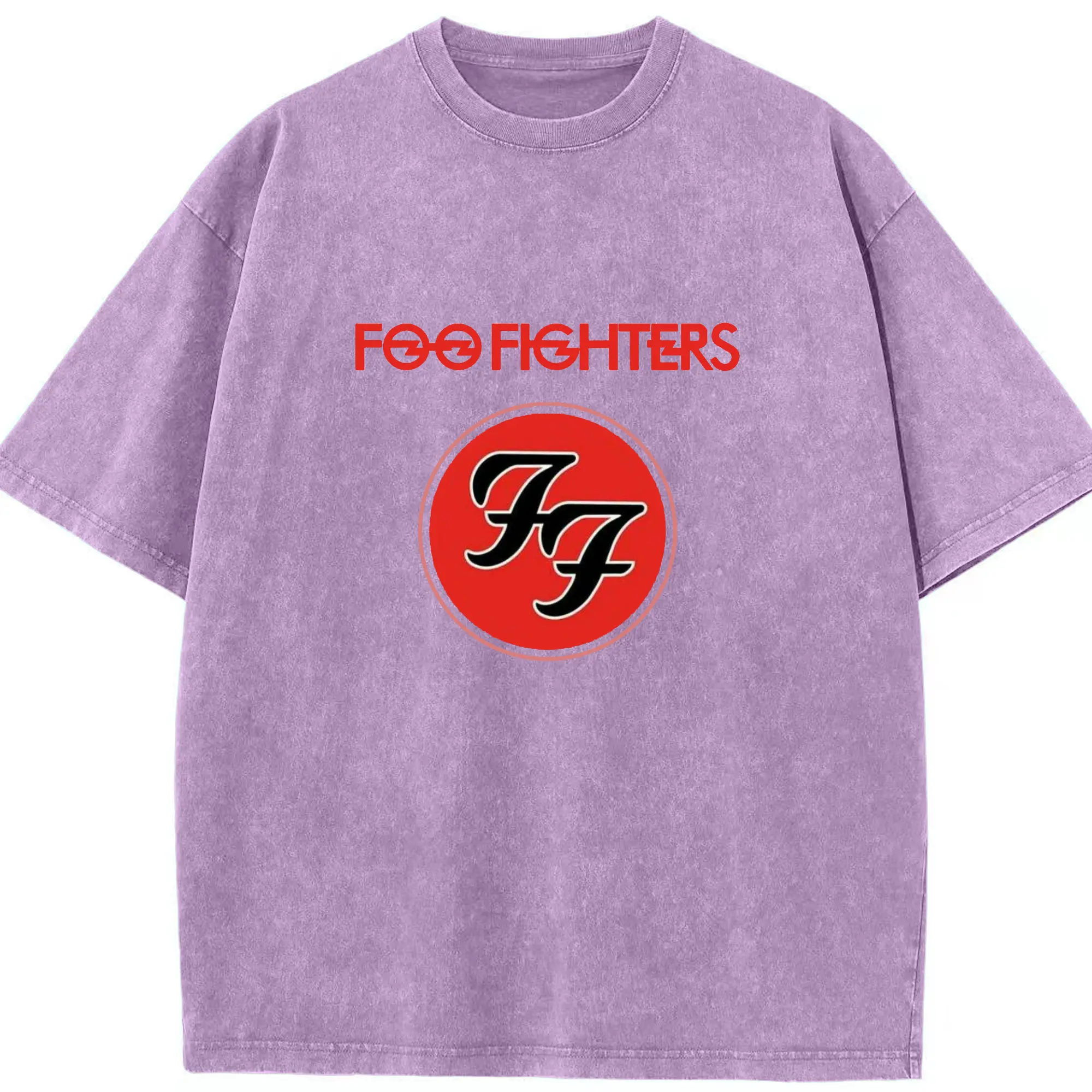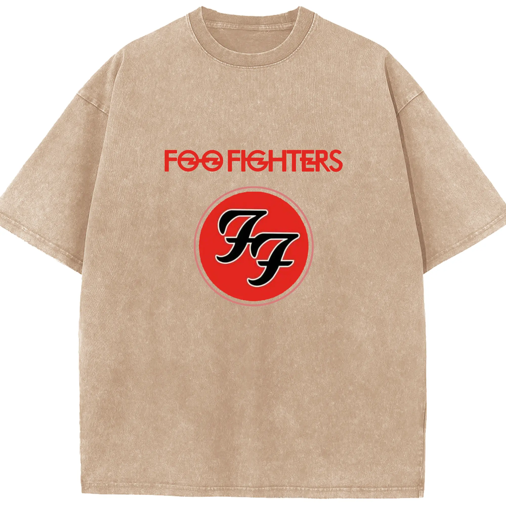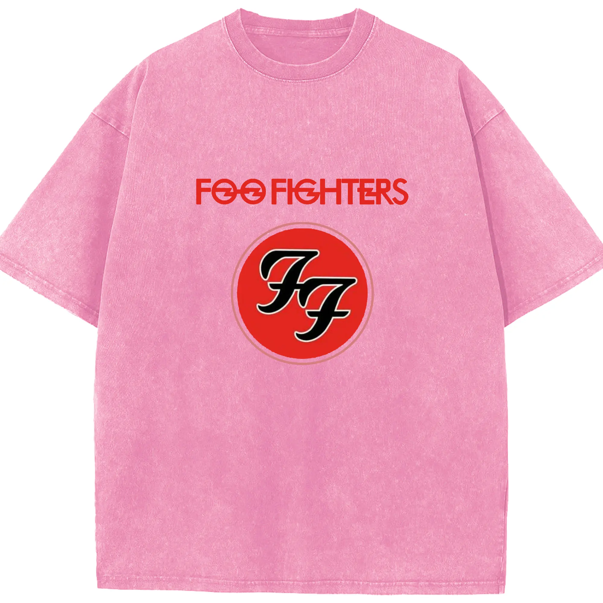 Foo Fighters Classic Rock Band DIY - Washed Vintage Look 230g Cotton Oversized T-Shirt With Front Heat Transfer Print – Soft, Lightweight, Stylish Fit – Comfortable Casual Wear For Sports & Everyday Use