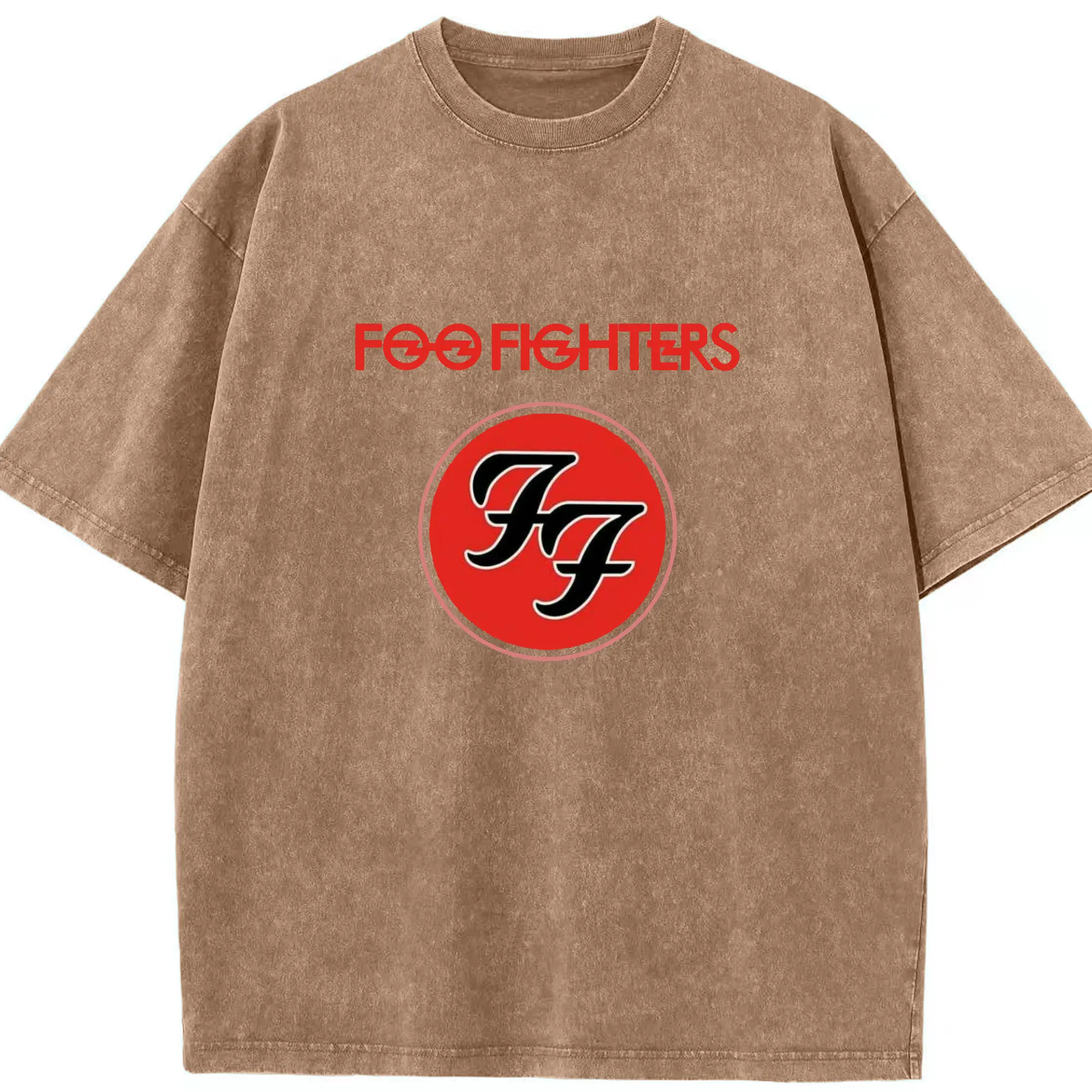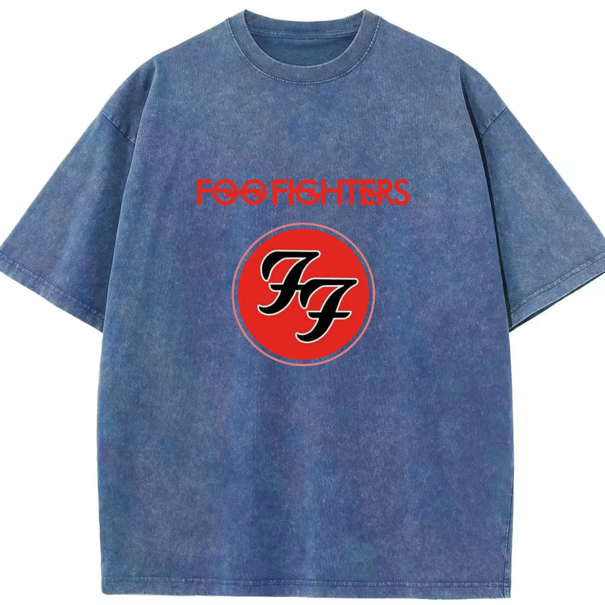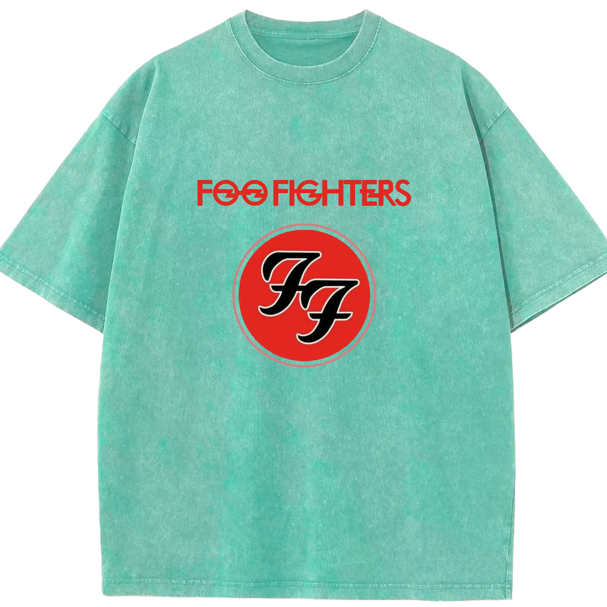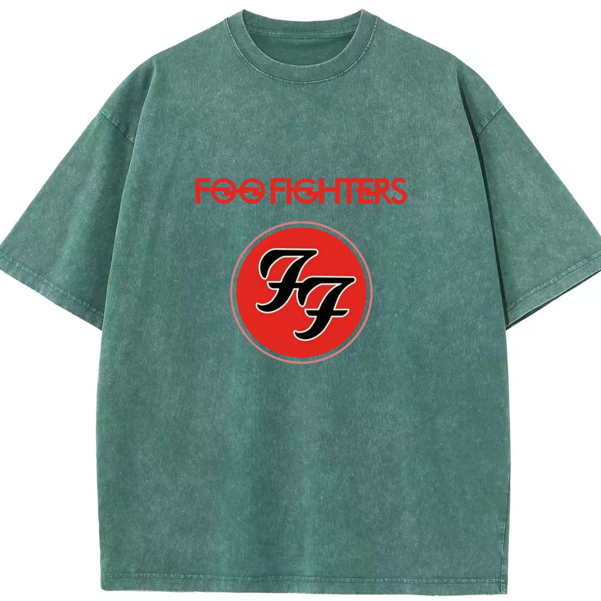 Foo Fighters Classic Rock Band DIY - Washed Vintage Look 230g Cotton Oversized T-Shirt With Front Heat Transfer Print – Soft, Lightweight, Stylish Fit – Comfortable Casual Wear For Sports & Everyday Use