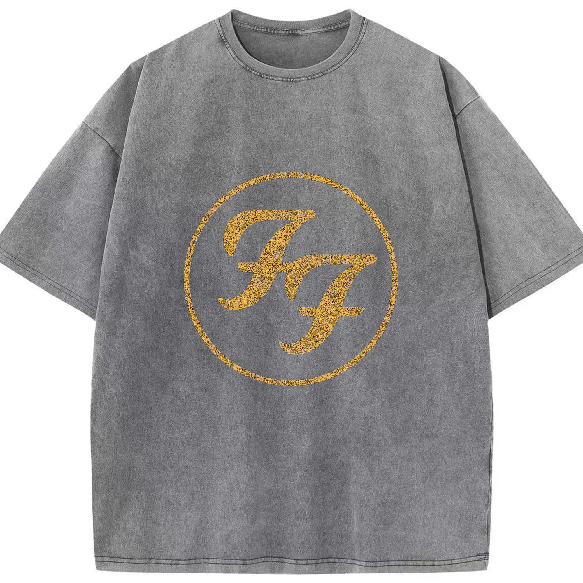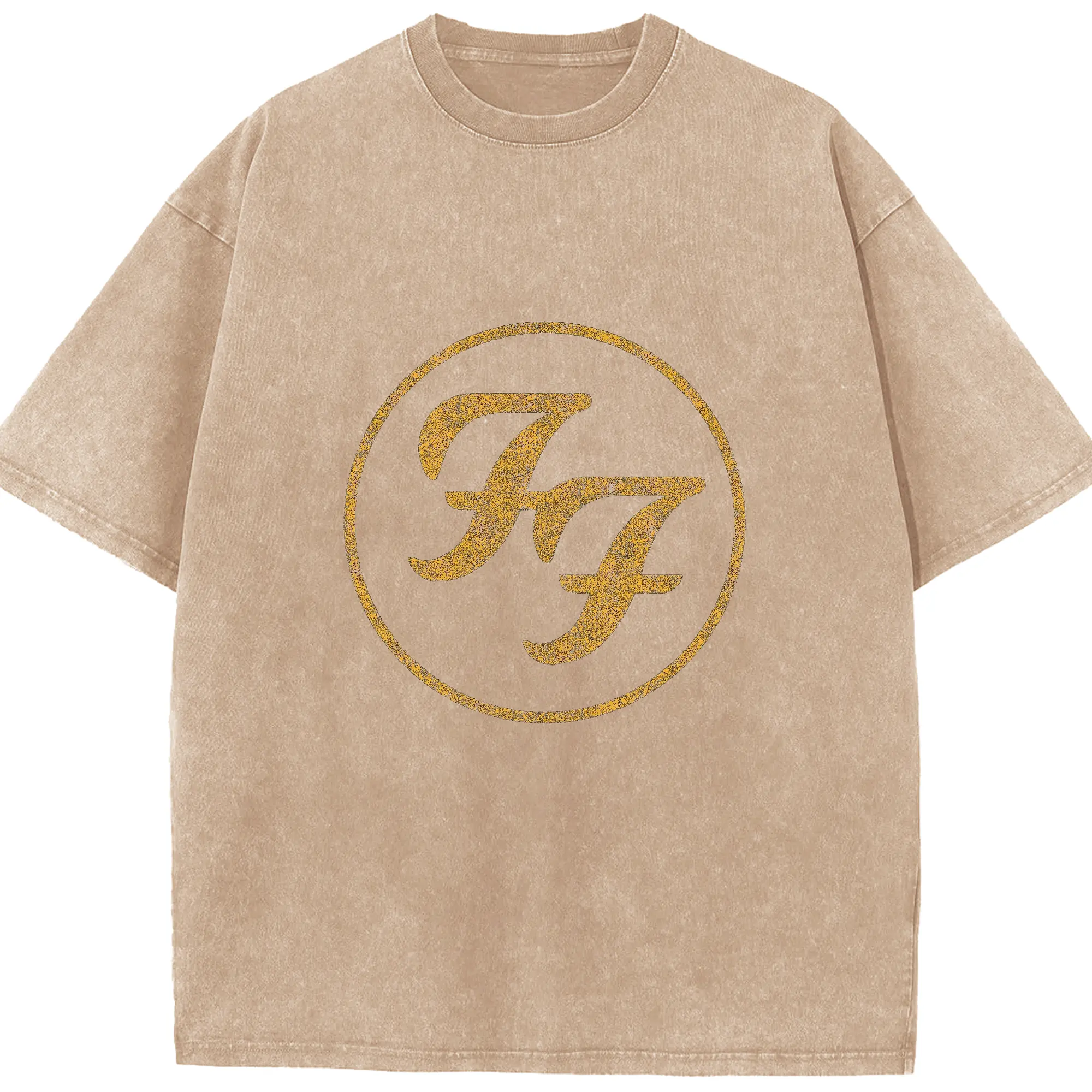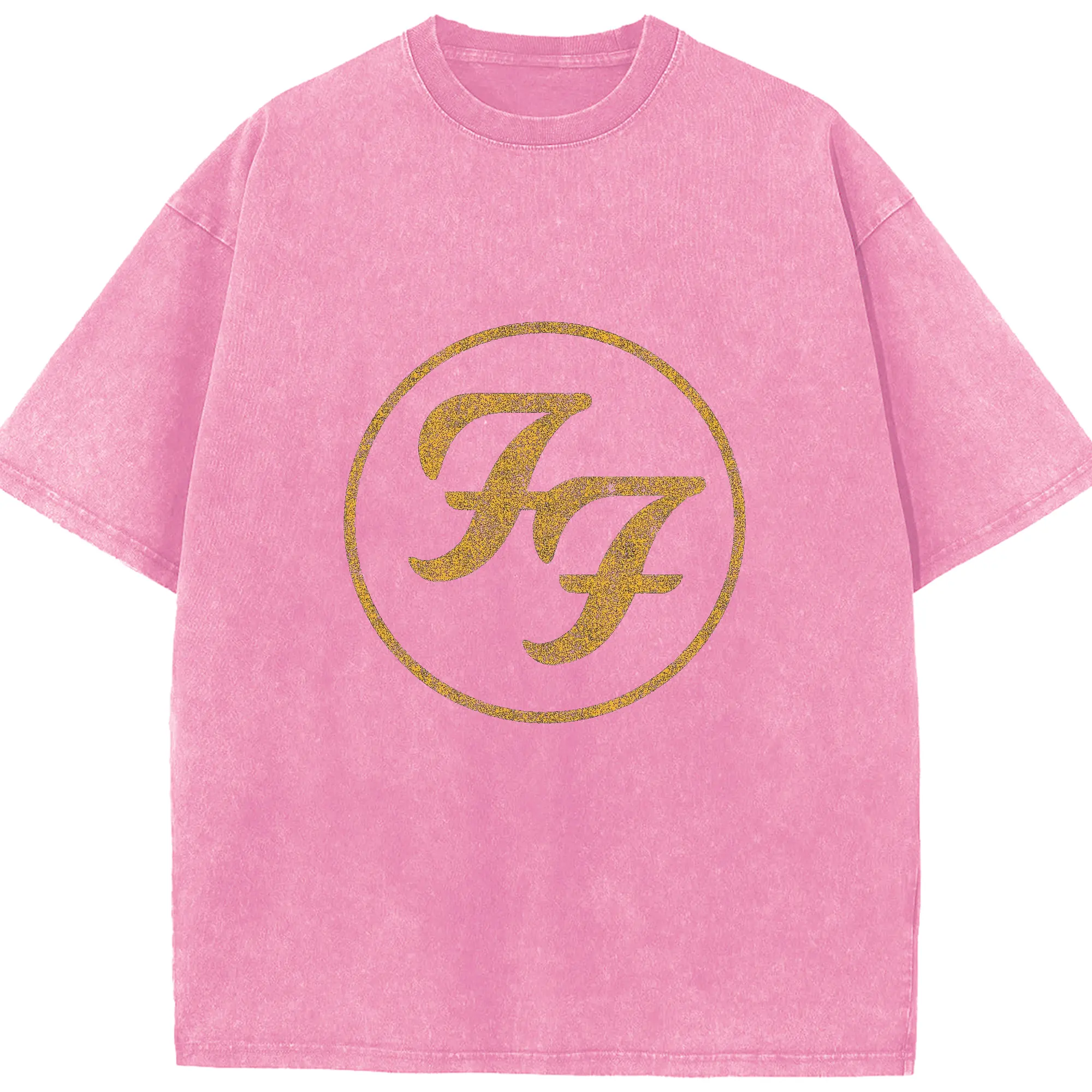 Foo Fighters Glitter Classic Rock DIY - Washed Vintage Look 230g Cotton Oversized T-Shirt With Front Heat Transfer Print – Soft, Lightweight, Stylish Fit – Comfortable Casual Wear For Sports & Everyday Use