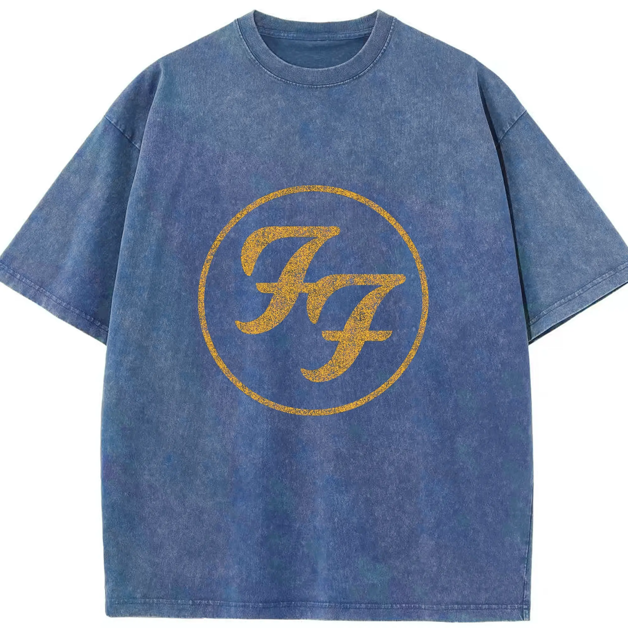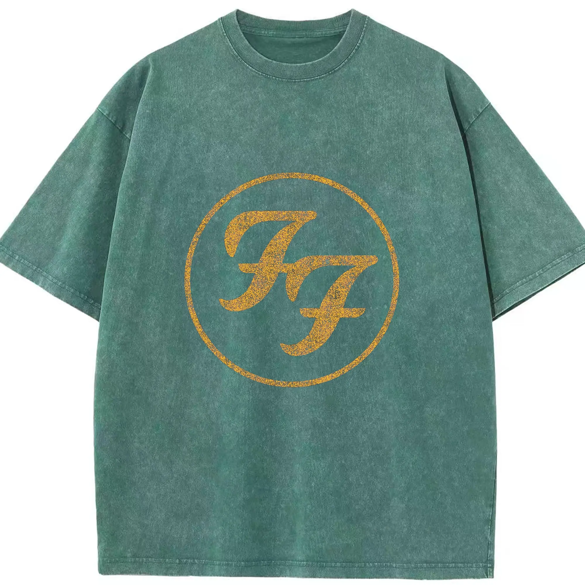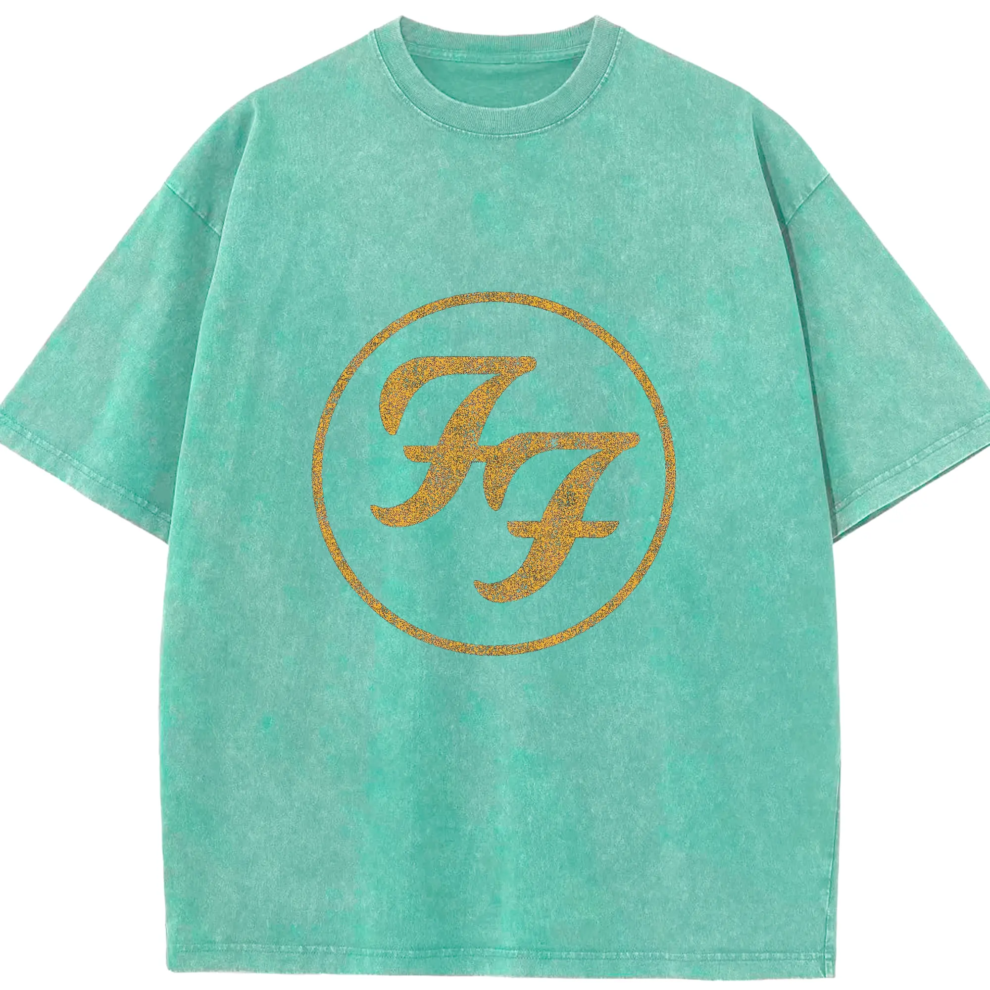 Foo Fighters Glitter Classic Rock DIY - Washed Vintage Look 230g Cotton Oversized T-Shirt With Front Heat Transfer Print – Soft, Lightweight, Stylish Fit – Comfortable Casual Wear For Sports & Everyday Use
