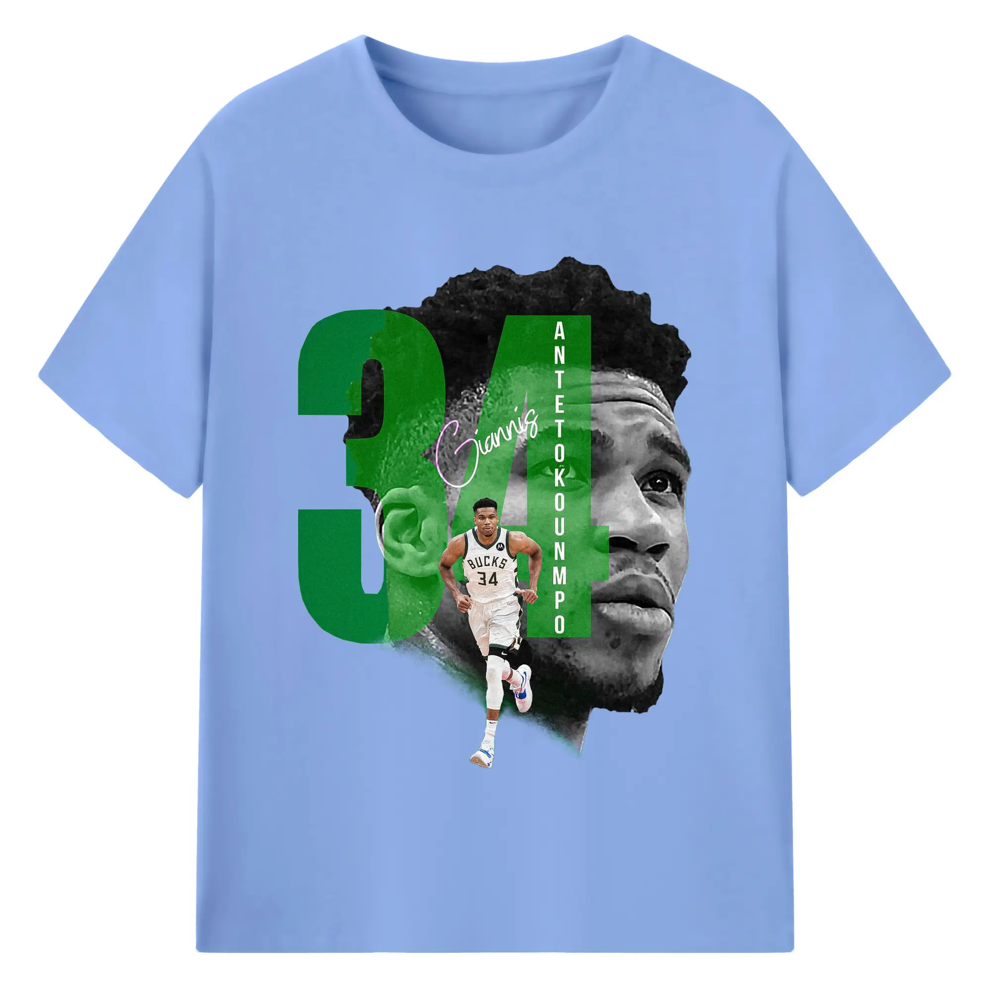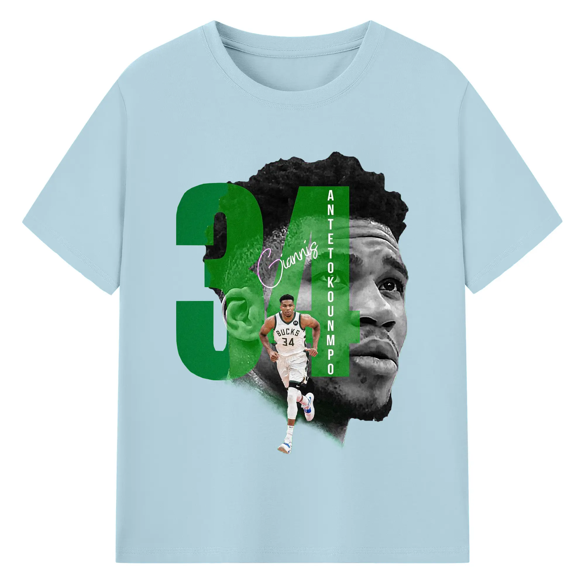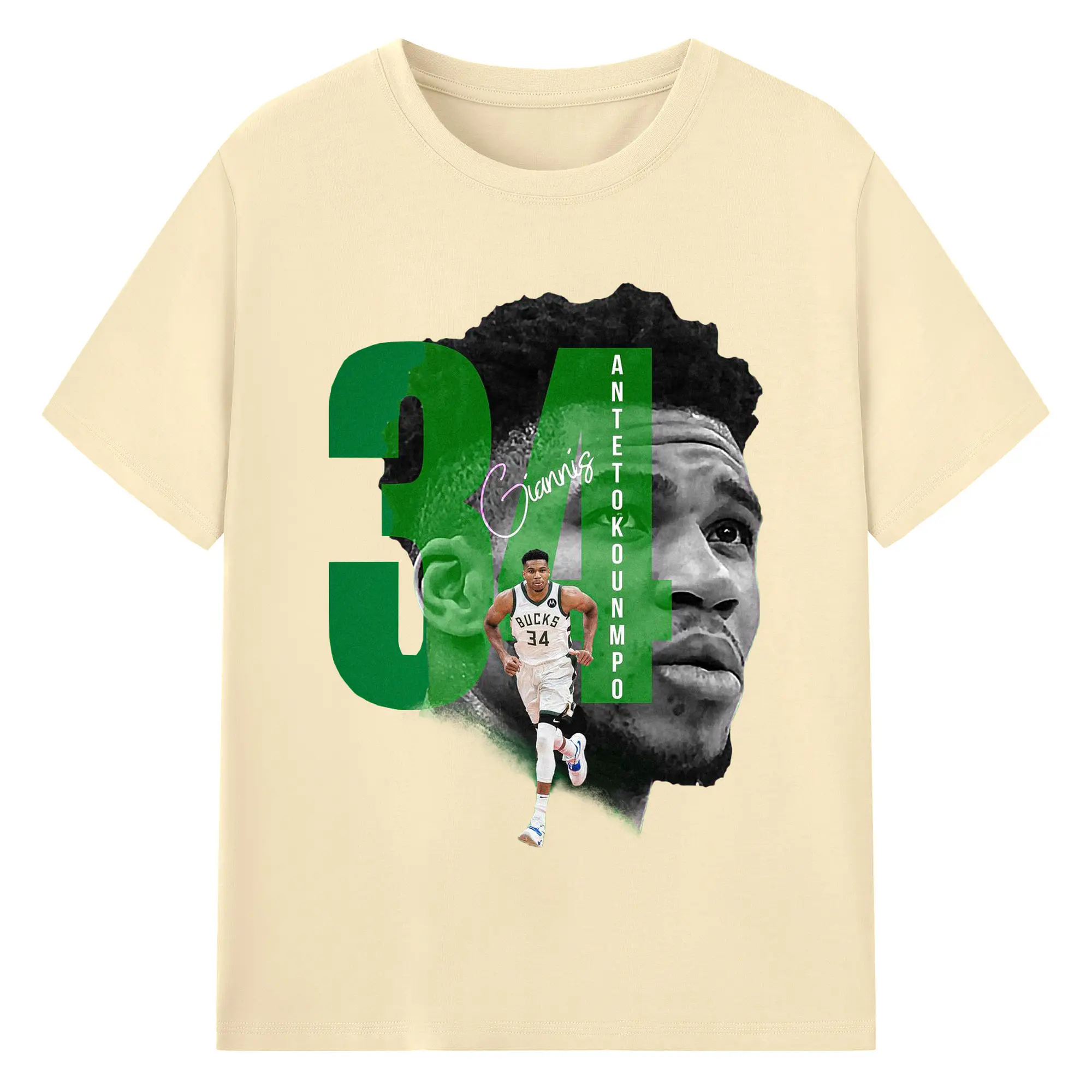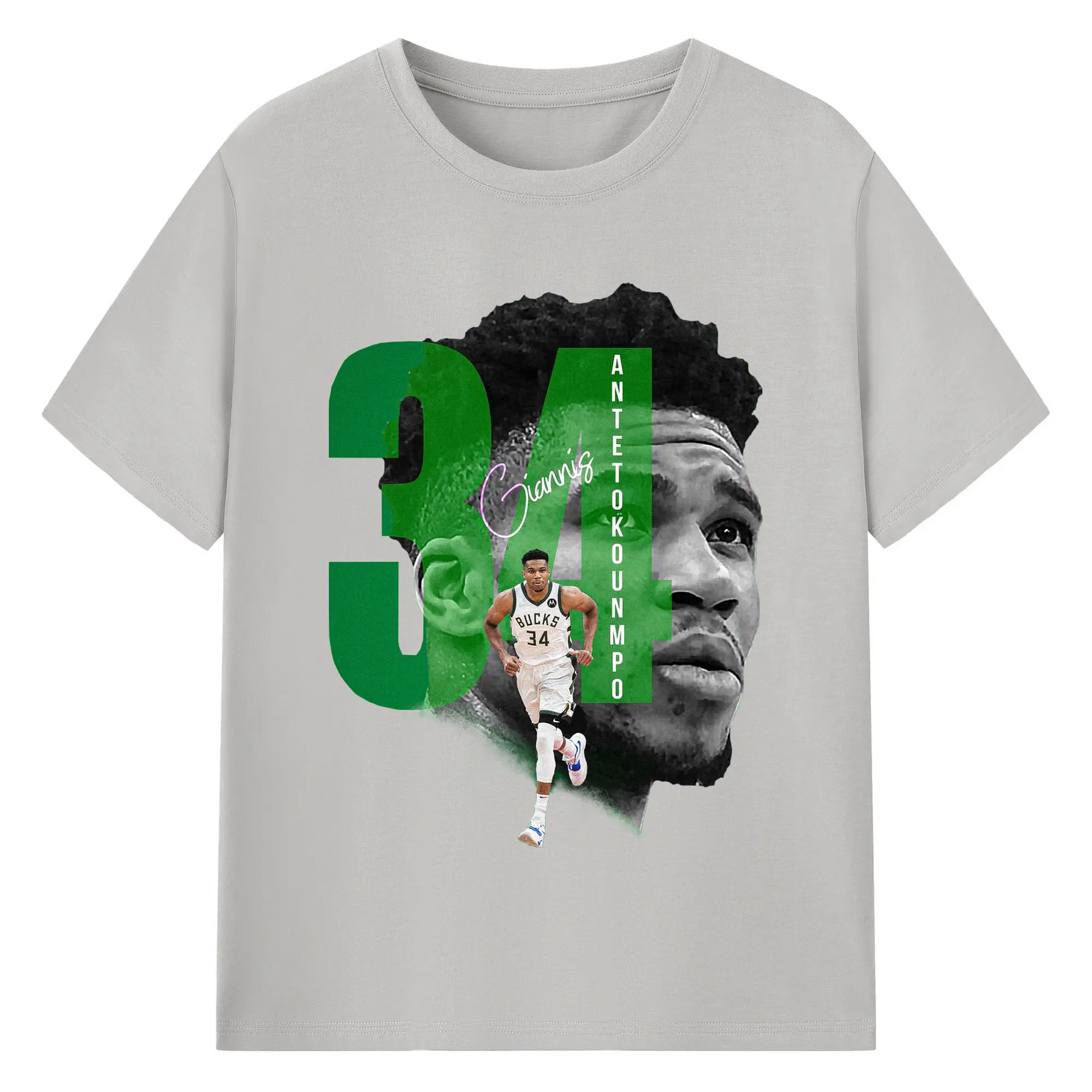 Giannis 34 Bucks Minimalist NBA Fan Shirt - 180g Cotton T-Shirt With Front Heat Transfer Print – Soft, Lightweight, Fitted Design – Comfortable Casual Wear For Sports & Everyday Use