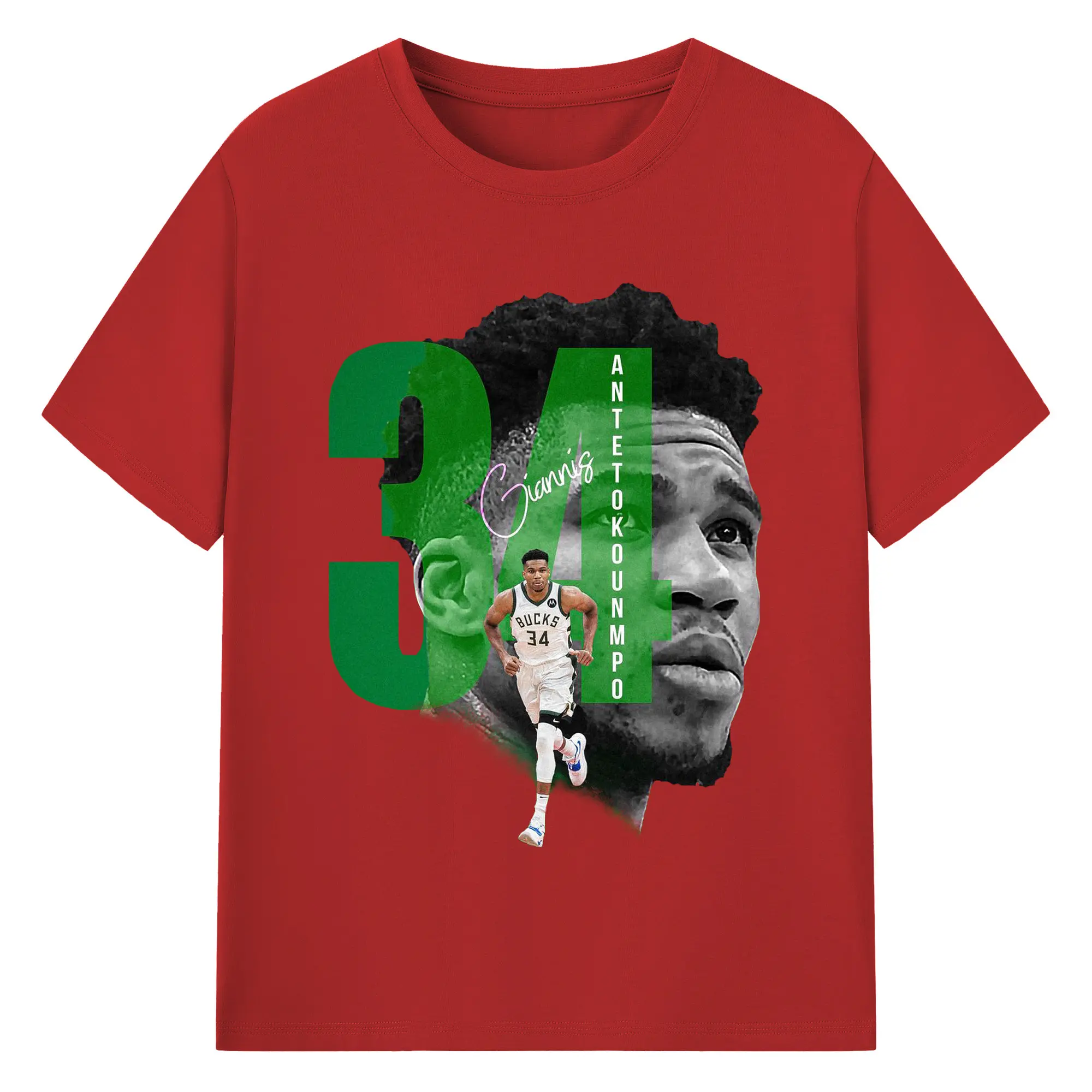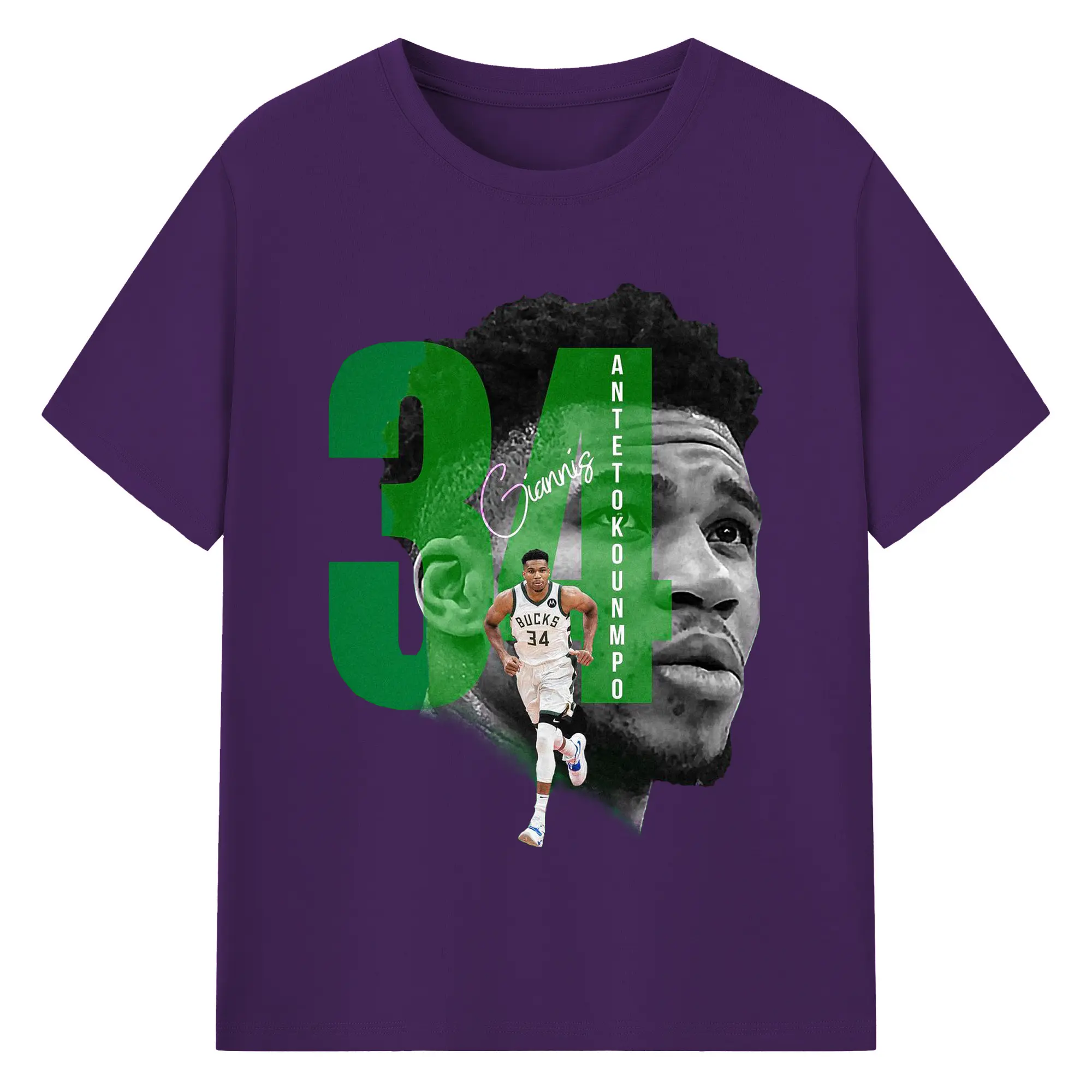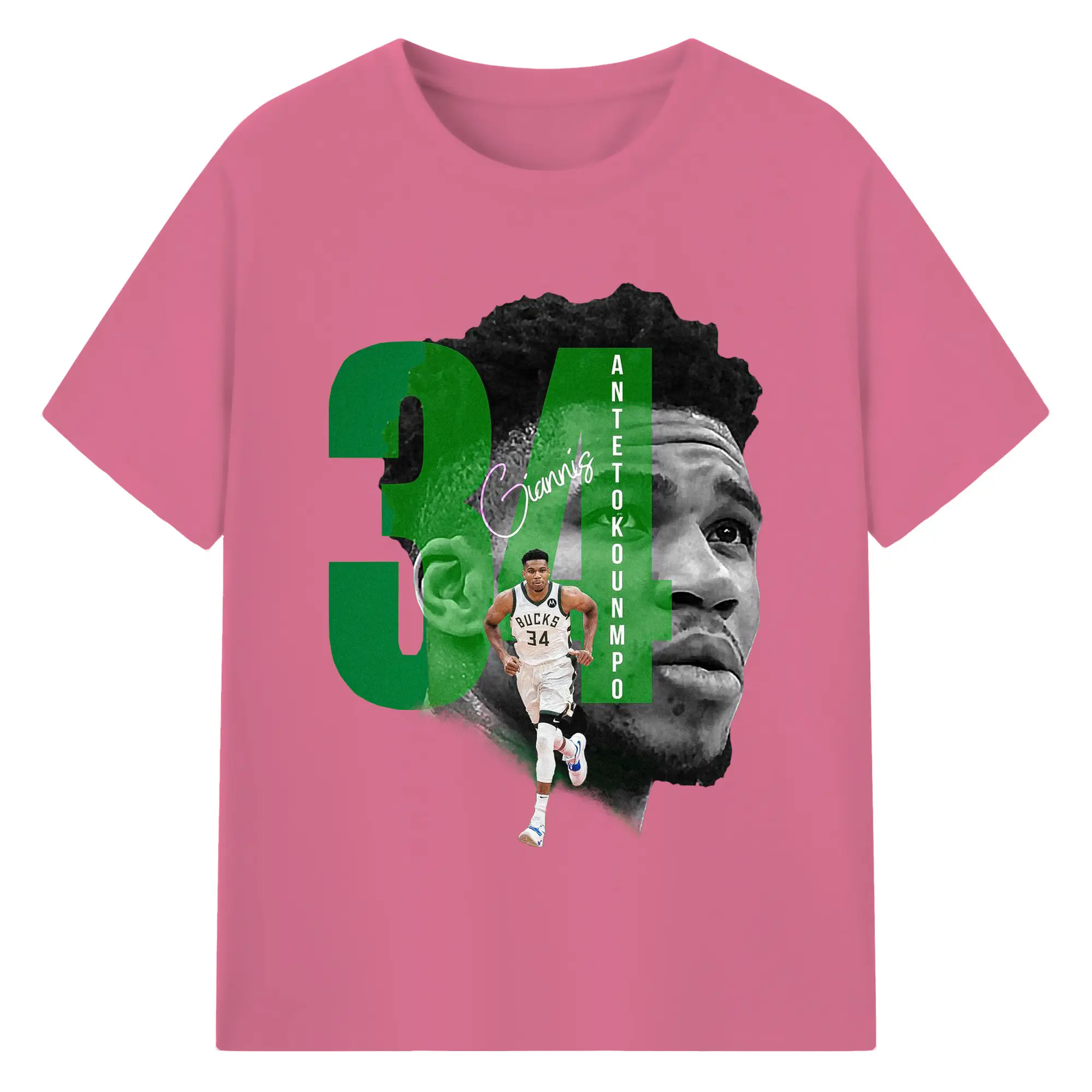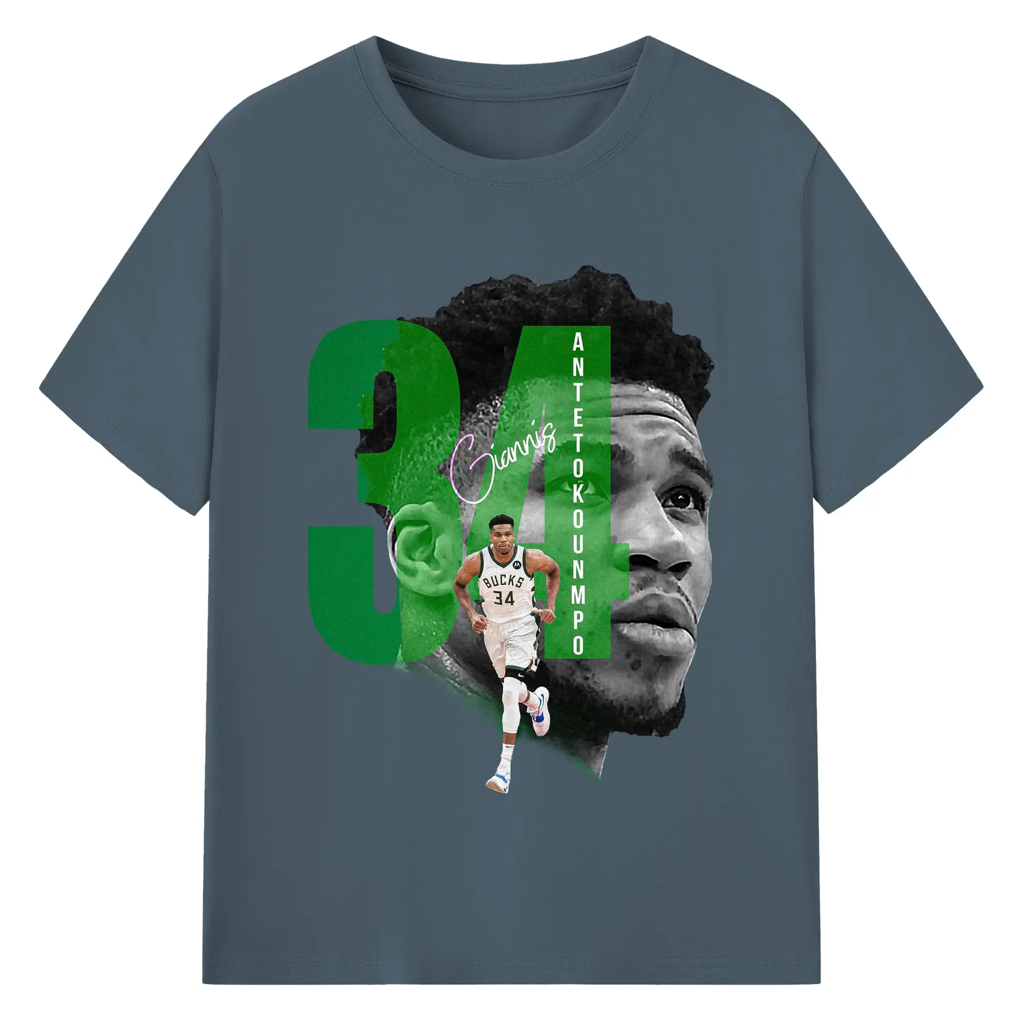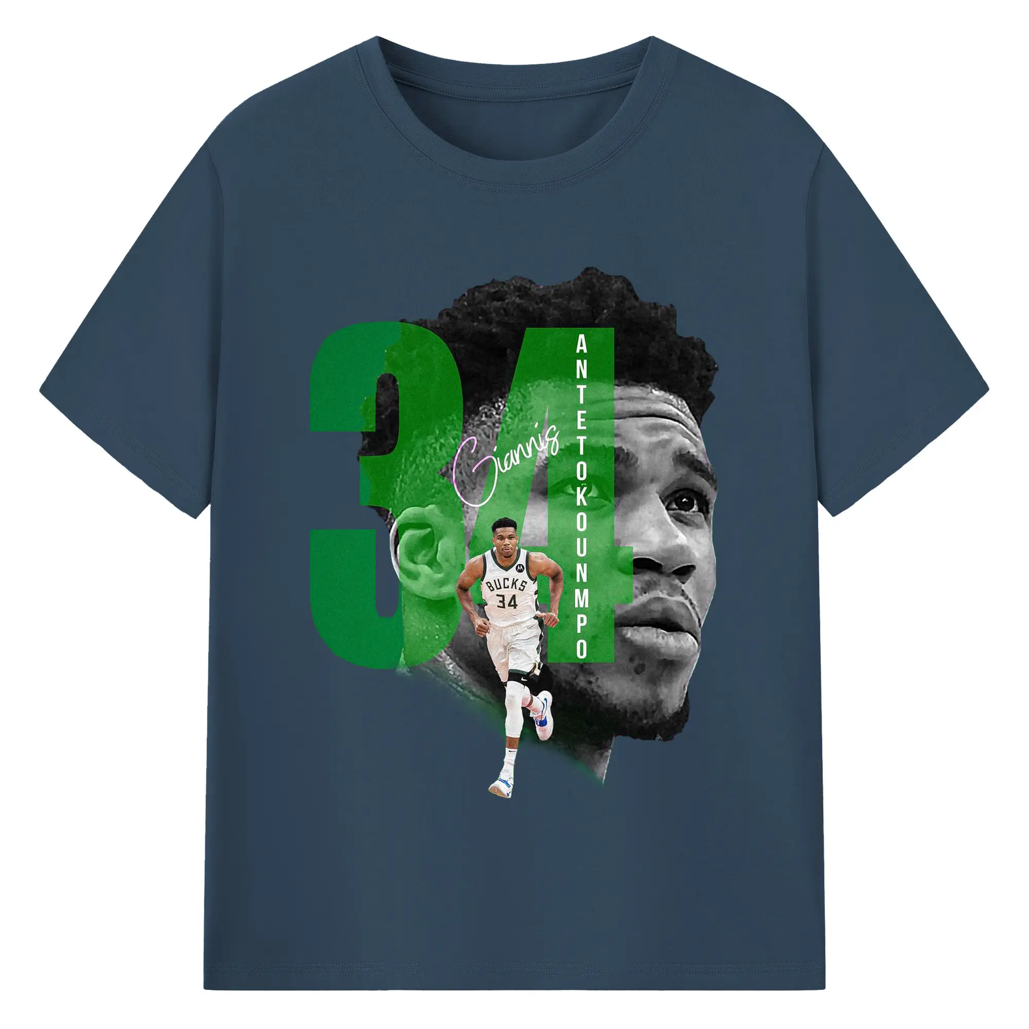 Giannis 34 Bucks Minimalist NBA Fan Shirt - 180g Cotton T-Shirt With Front Heat Transfer Print – Soft, Lightweight, Fitted Design – Comfortable Casual Wear For Sports & Everyday Use