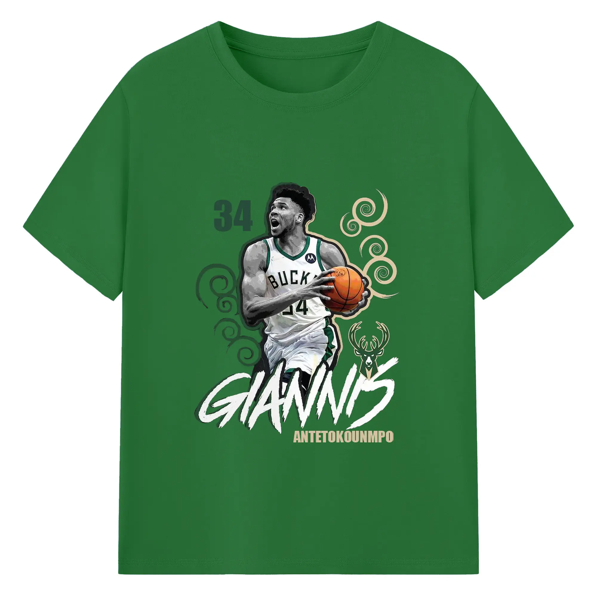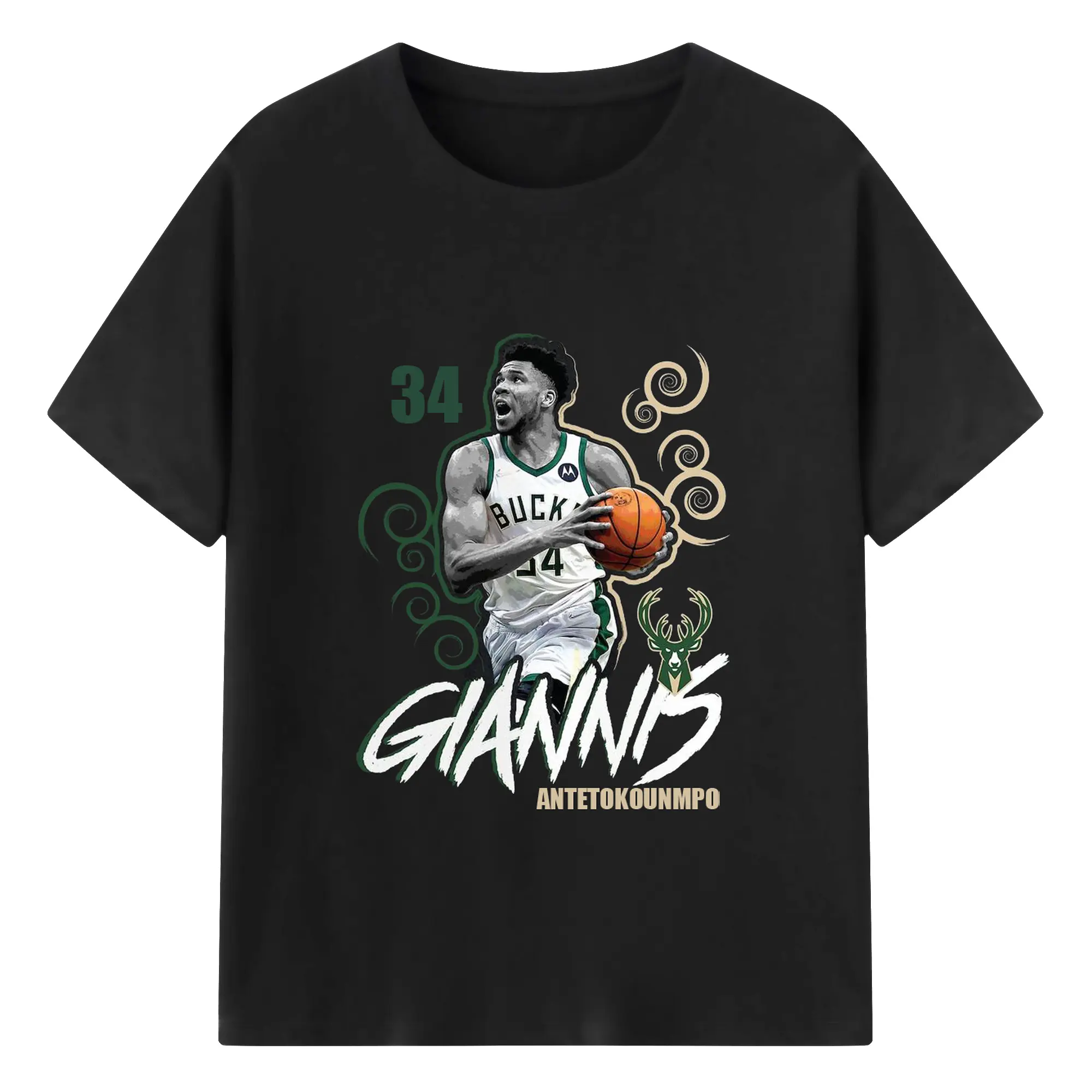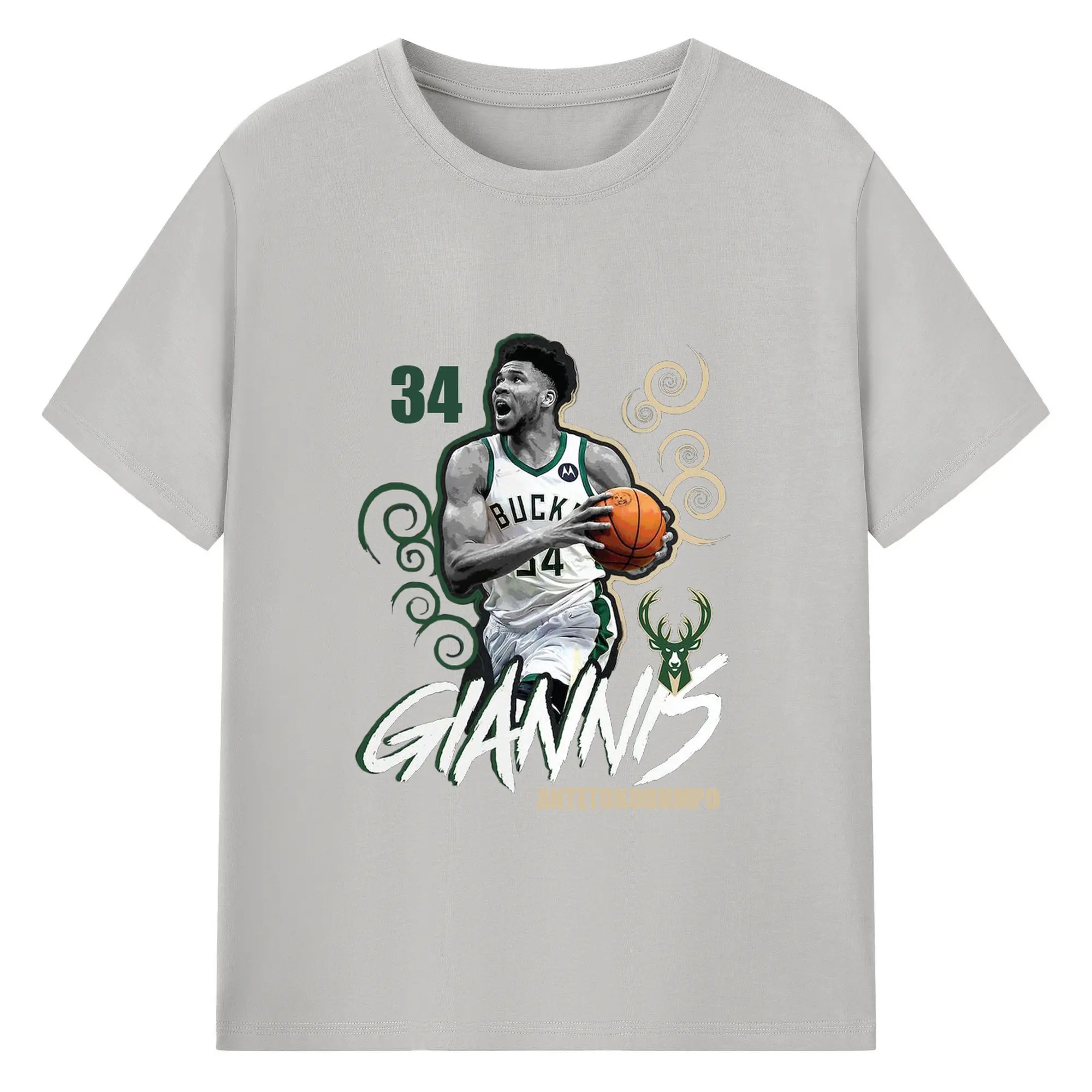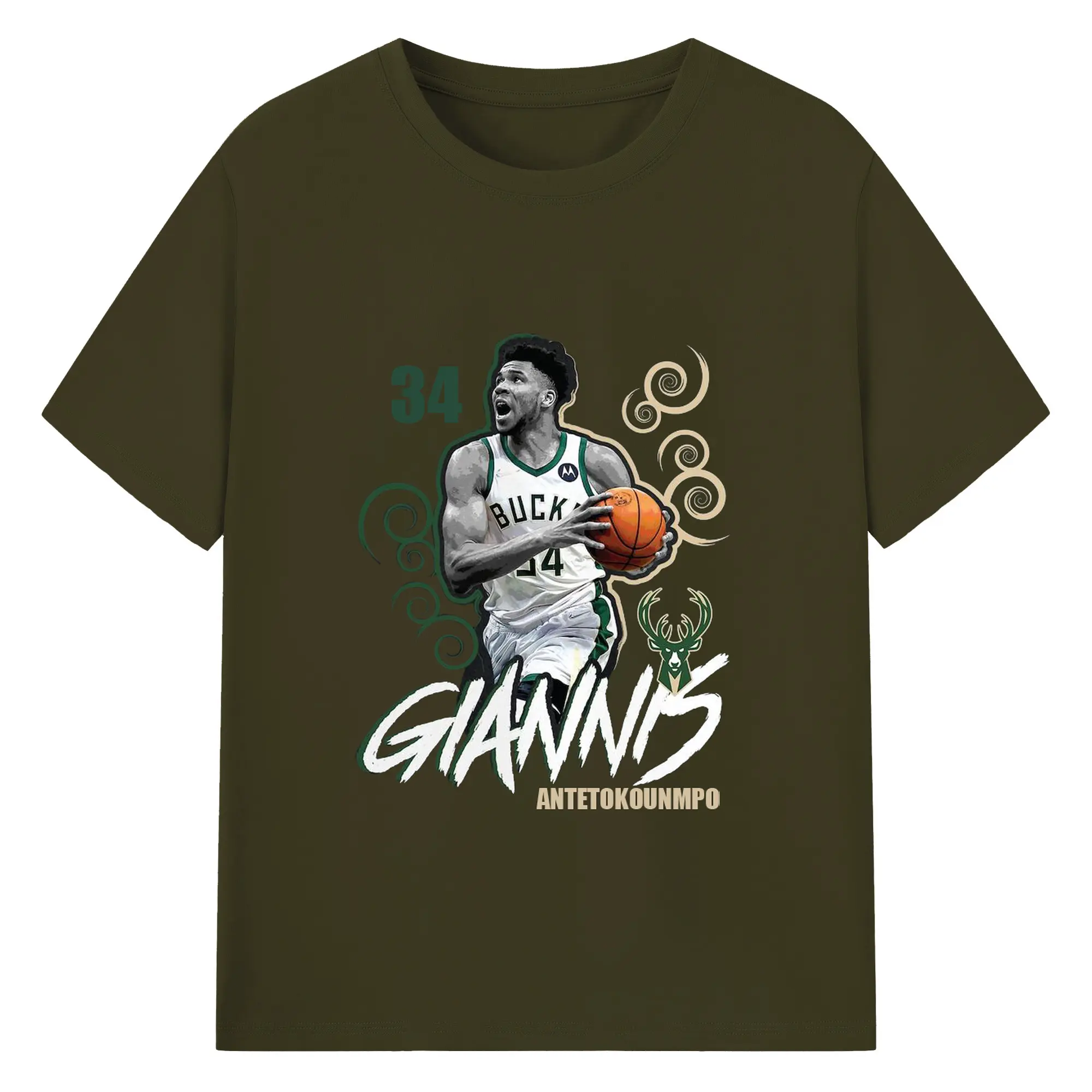 Giannis Antetokounmpo Bucks #34 artistic design Shirt - 180g Cotton T-Shirt With Front Heat Transfer Print – Soft, Lightweight, Fitted Design – Comfortable Casual Wear For Sports & Everyday Use