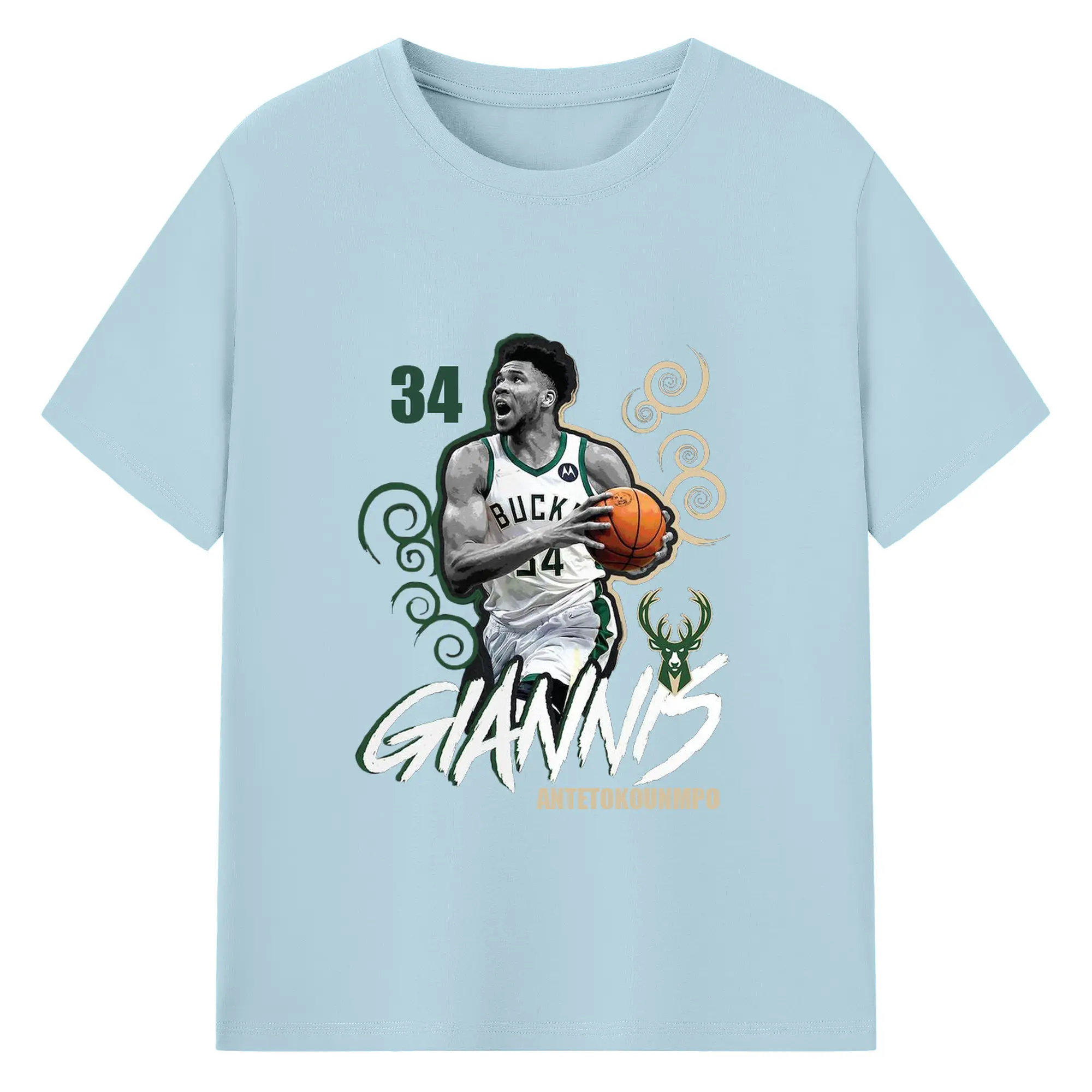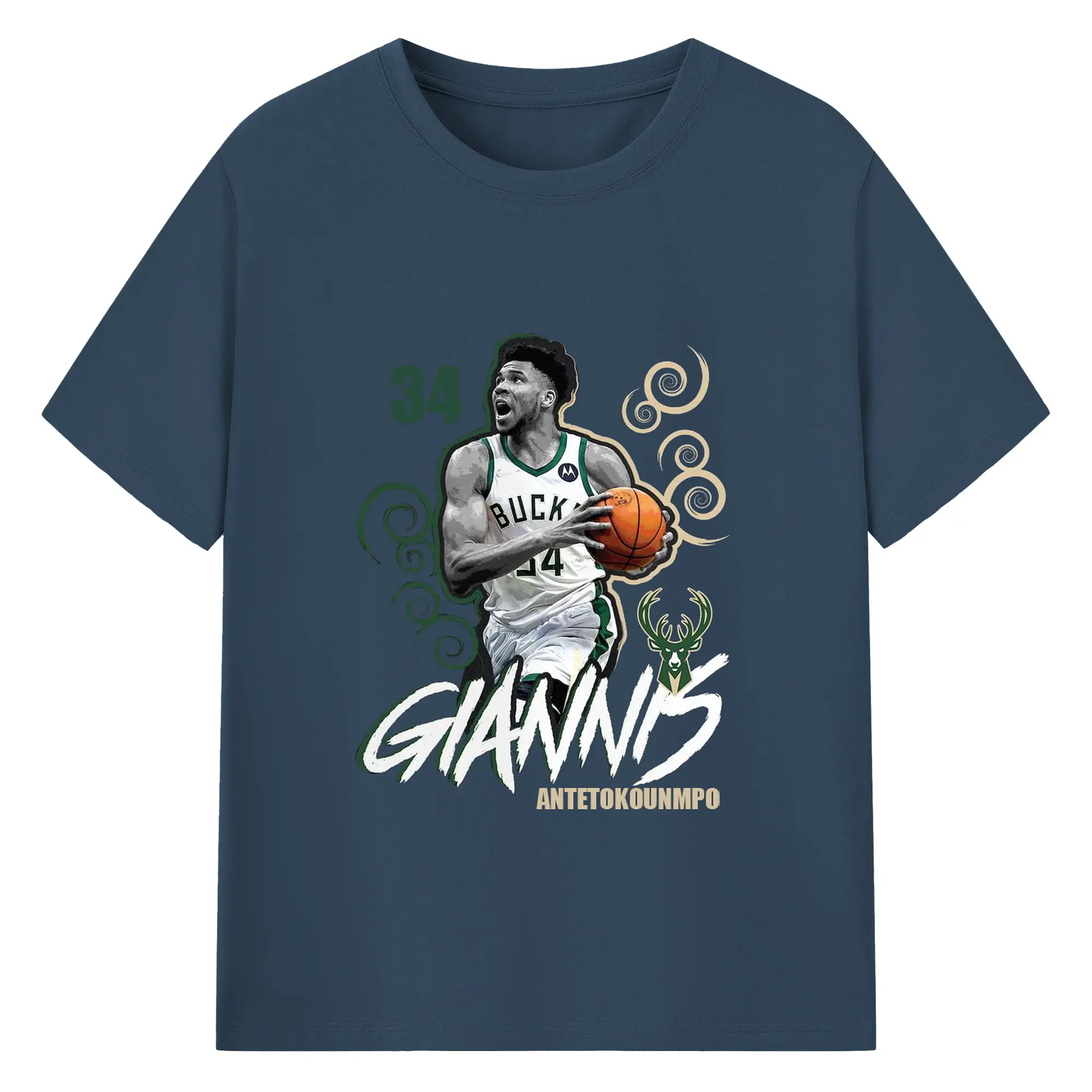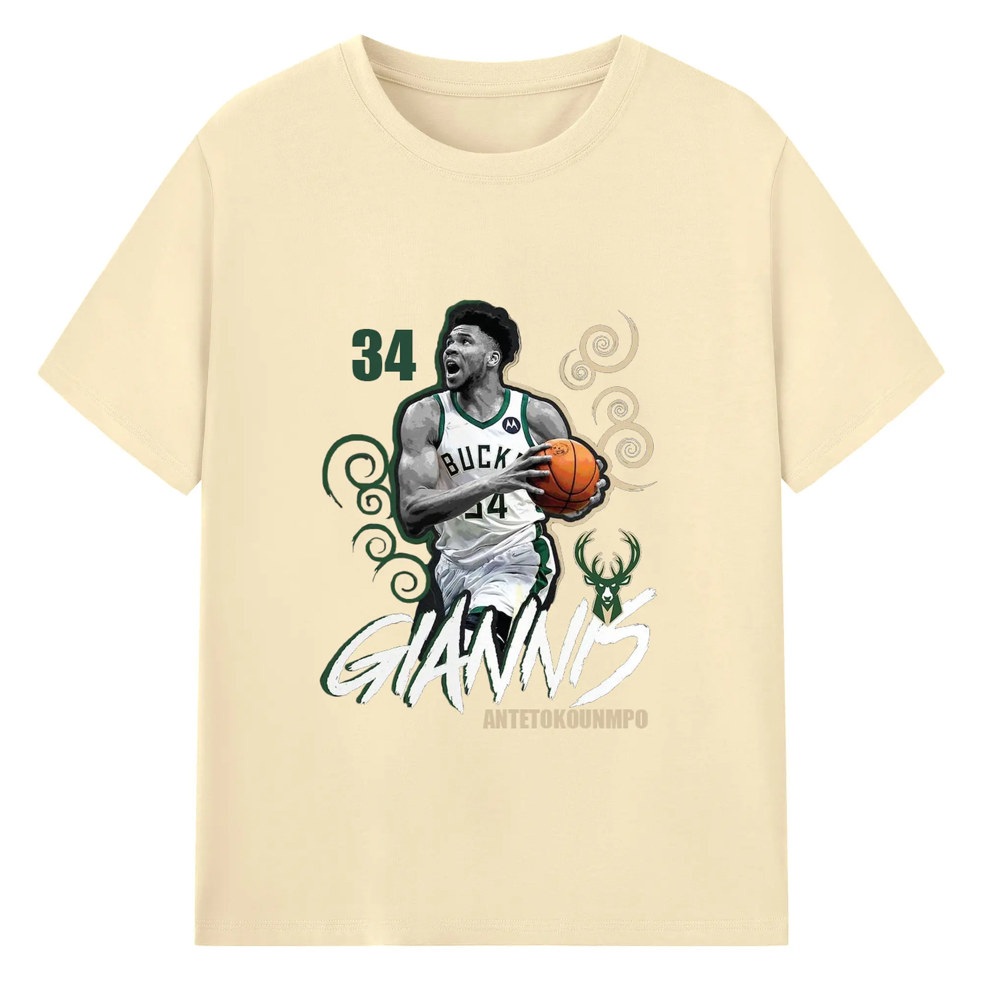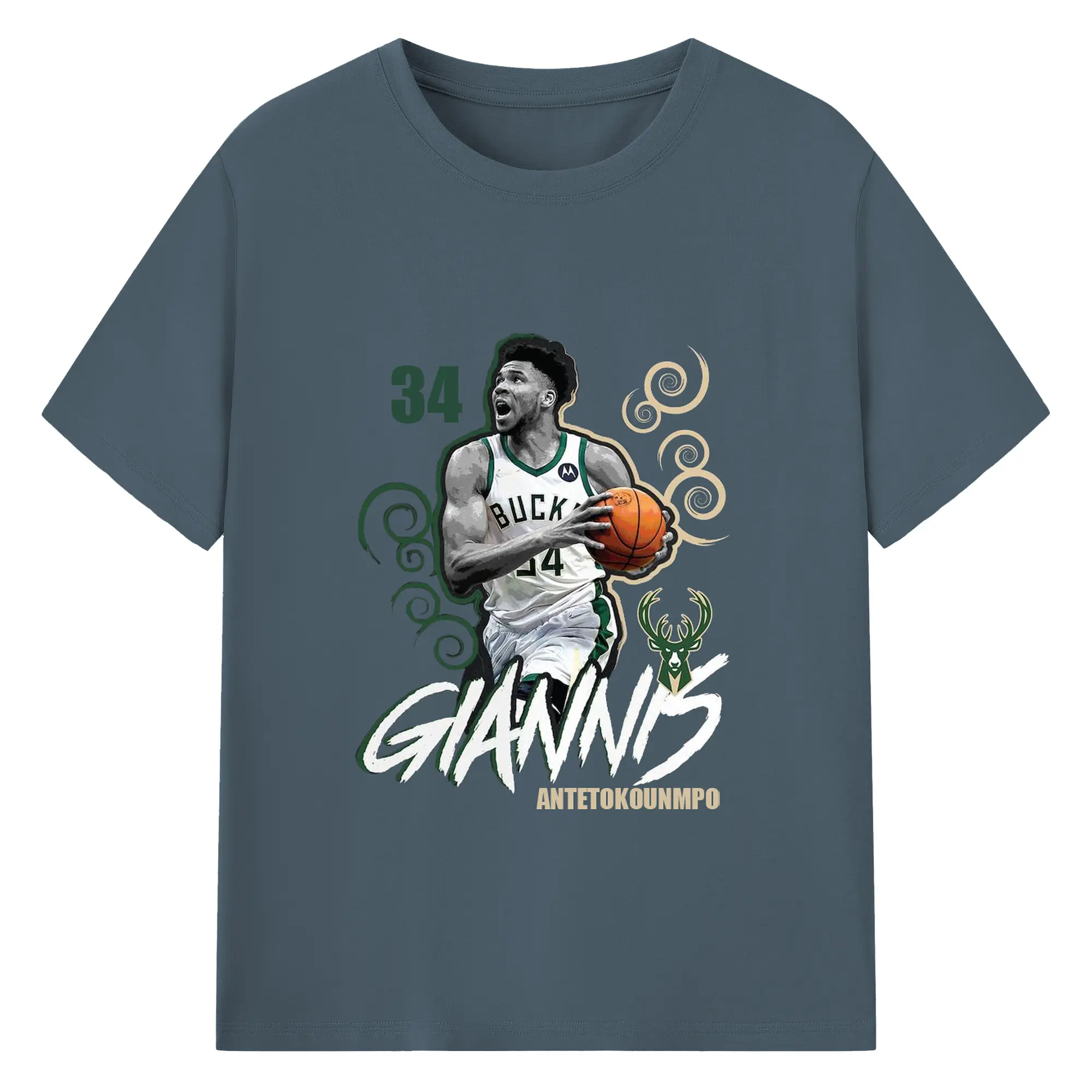 Giannis Antetokounmpo Bucks #34 artistic design Shirt - 180g Cotton T-Shirt With Front Heat Transfer Print – Soft, Lightweight, Fitted Design – Comfortable Casual Wear For Sports & Everyday Use