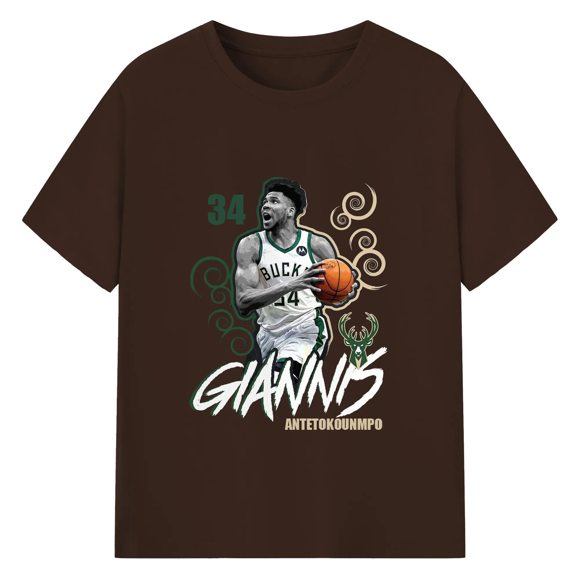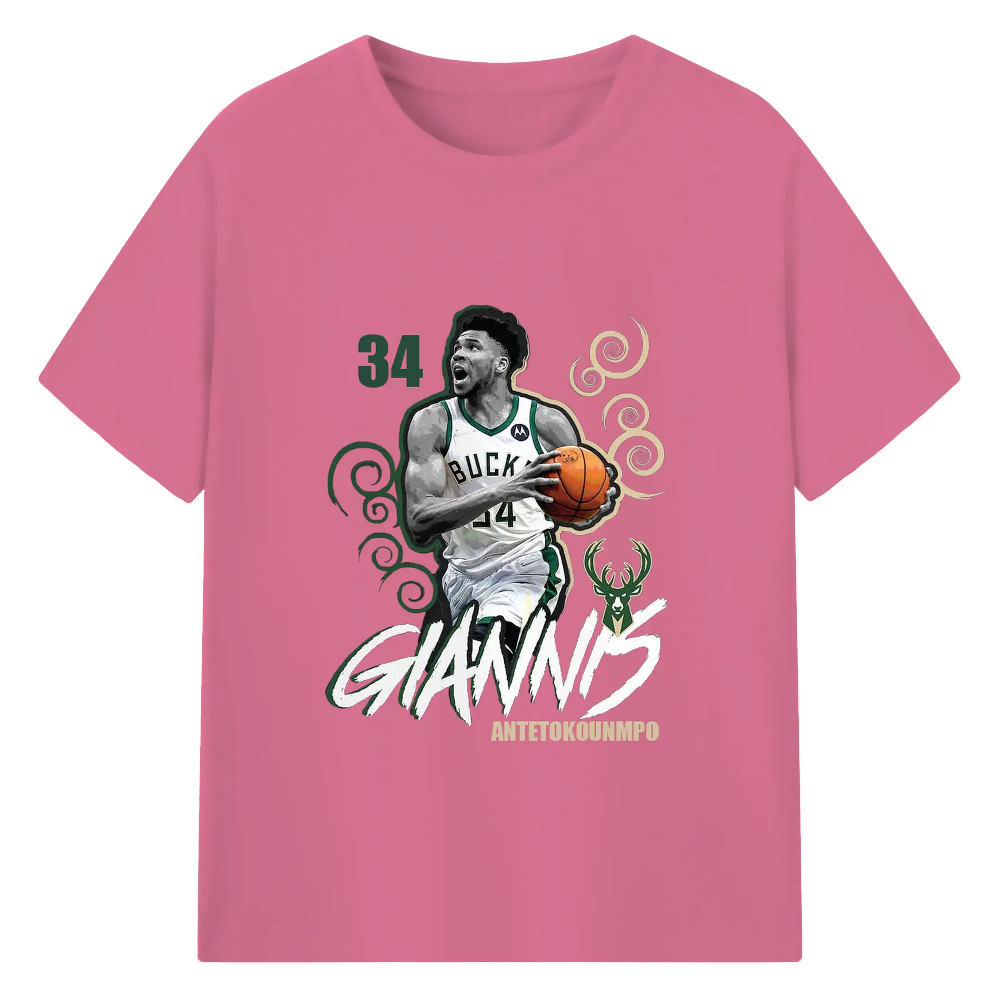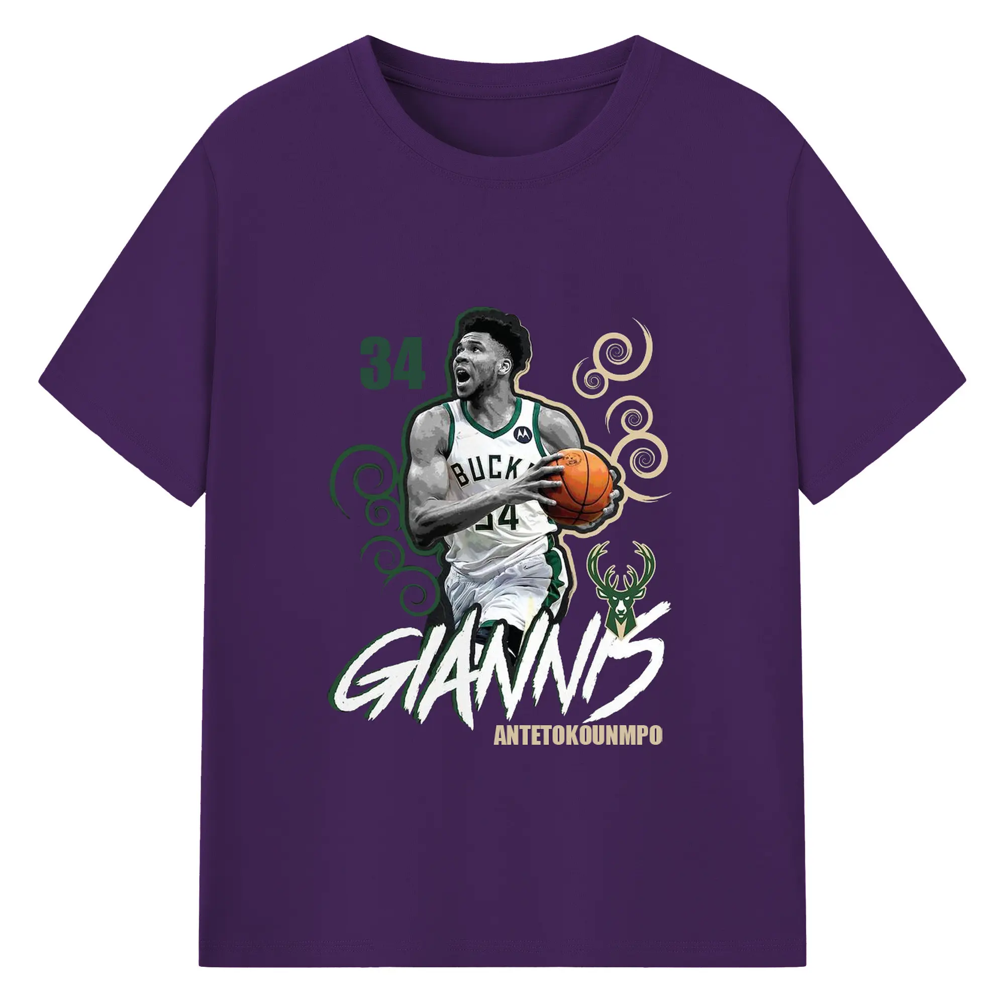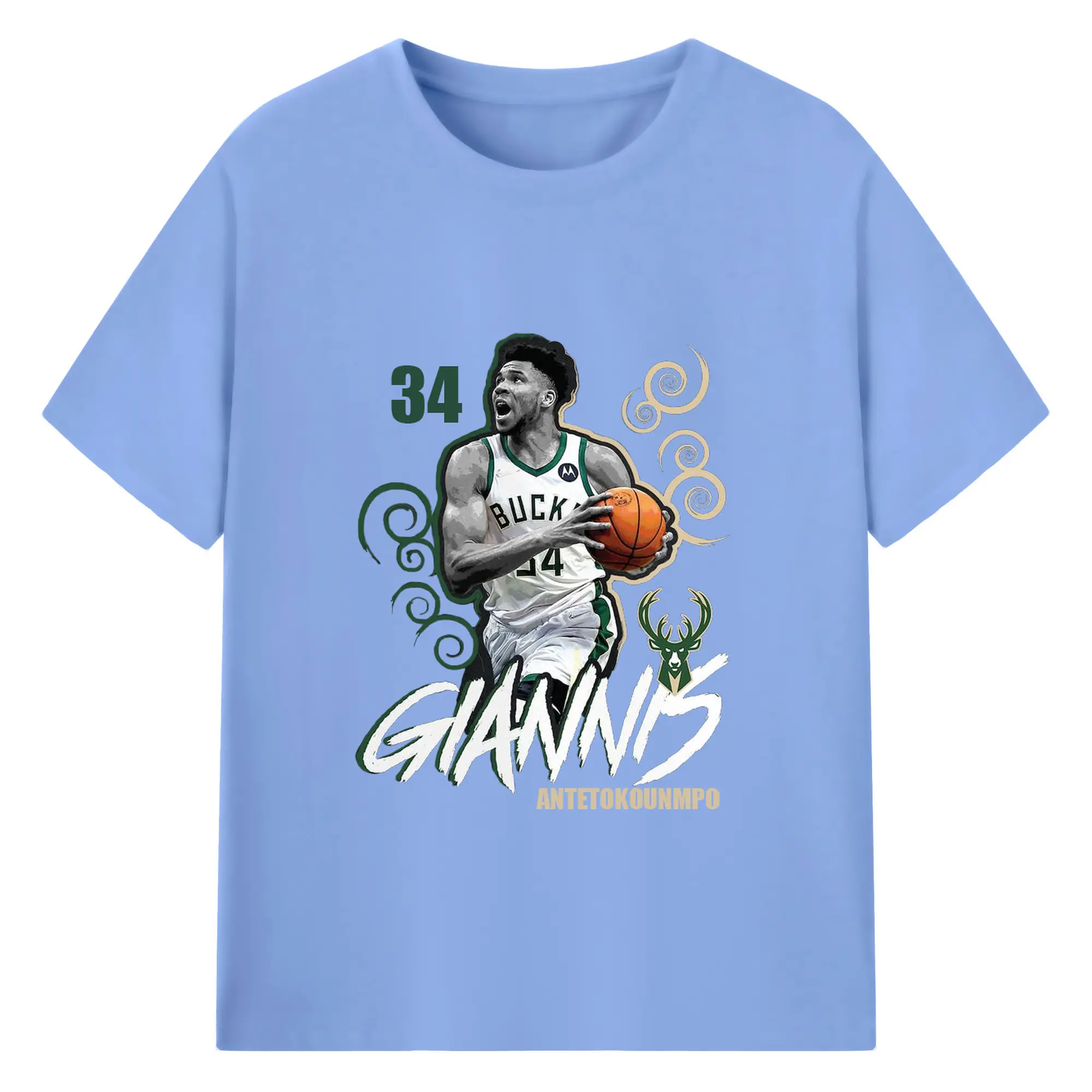 Giannis Antetokounmpo Bucks #34 artistic design Shirt - 180g Cotton T-Shirt With Front Heat Transfer Print – Soft, Lightweight, Fitted Design – Comfortable Casual Wear For Sports & Everyday Use