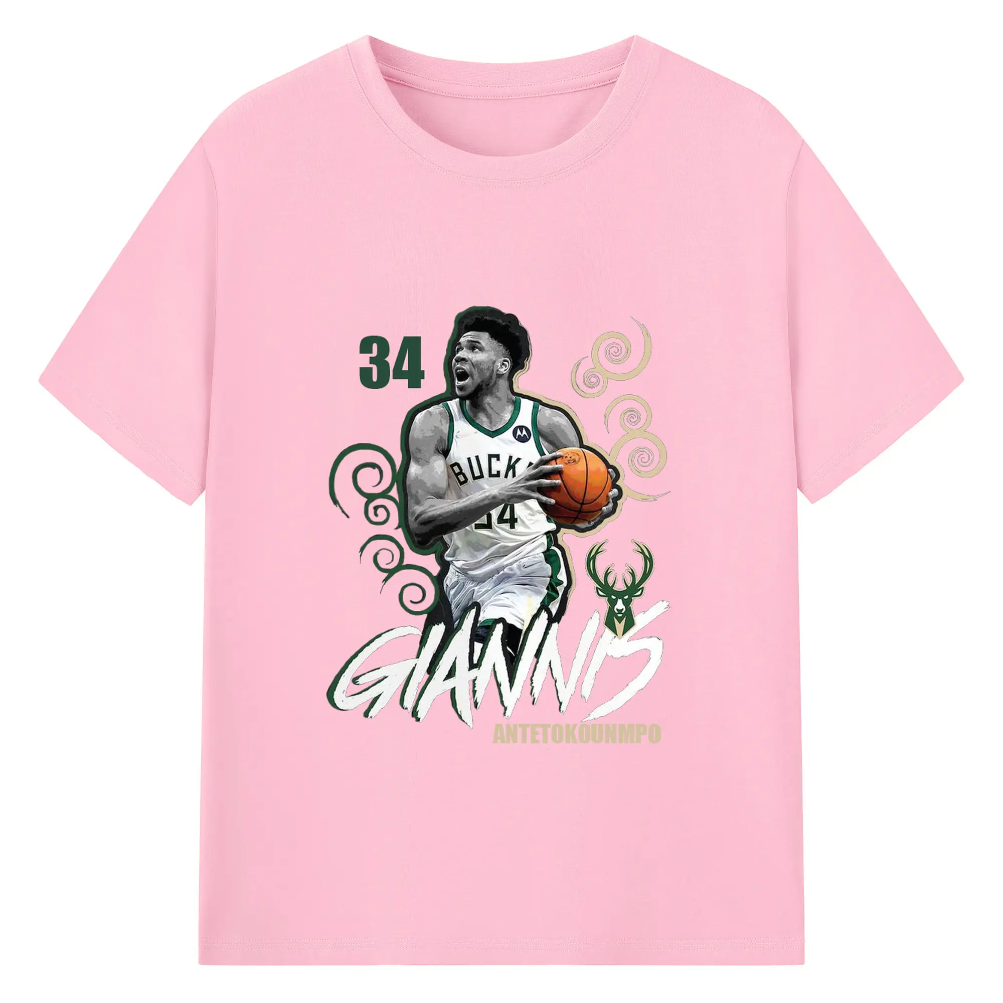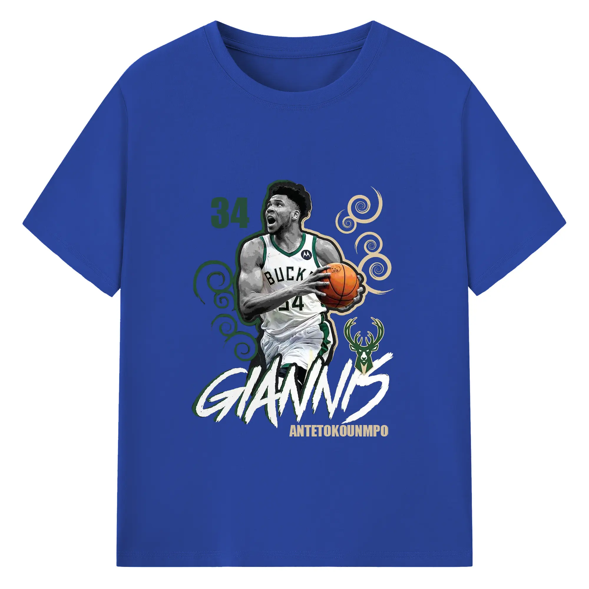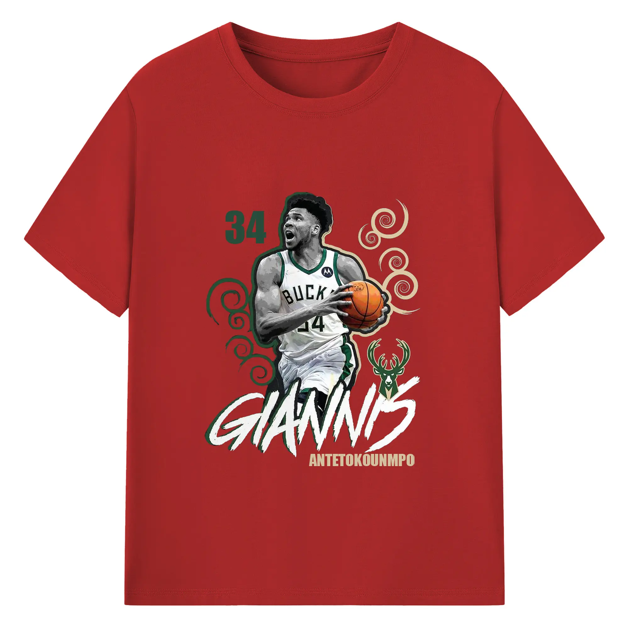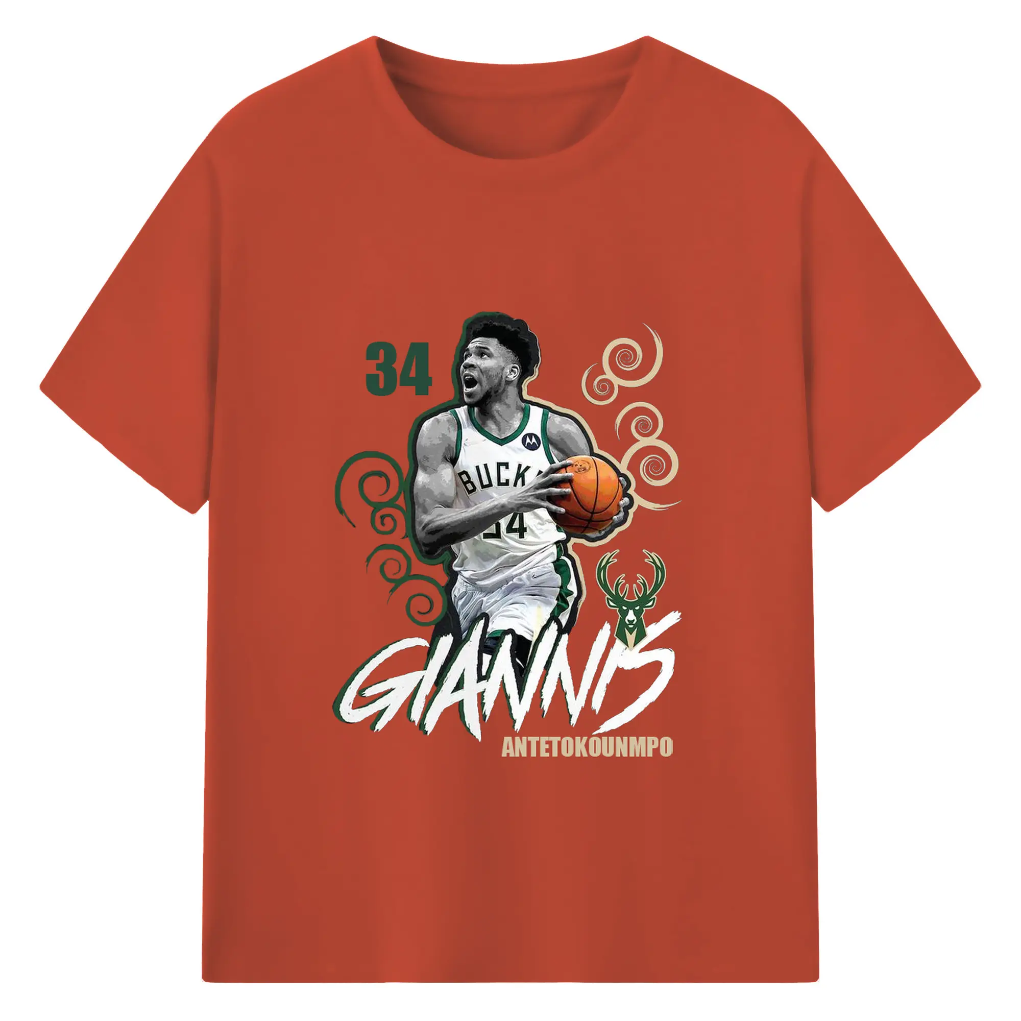 Giannis Antetokounmpo Bucks #34 artistic design Shirt - 180g Cotton T-Shirt With Front Heat Transfer Print – Soft, Lightweight, Fitted Design – Comfortable Casual Wear For Sports & Everyday Use