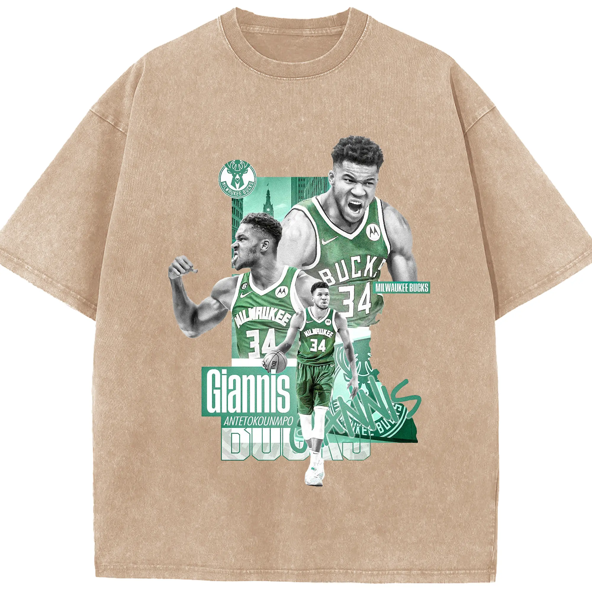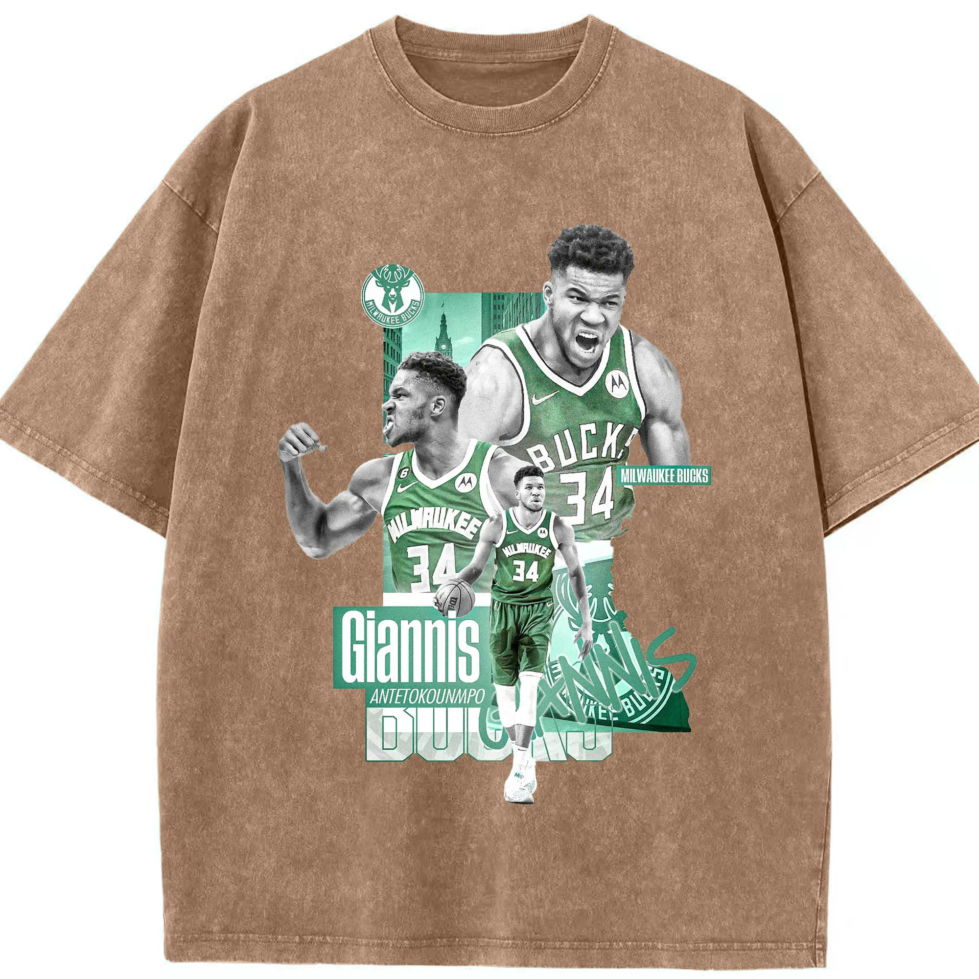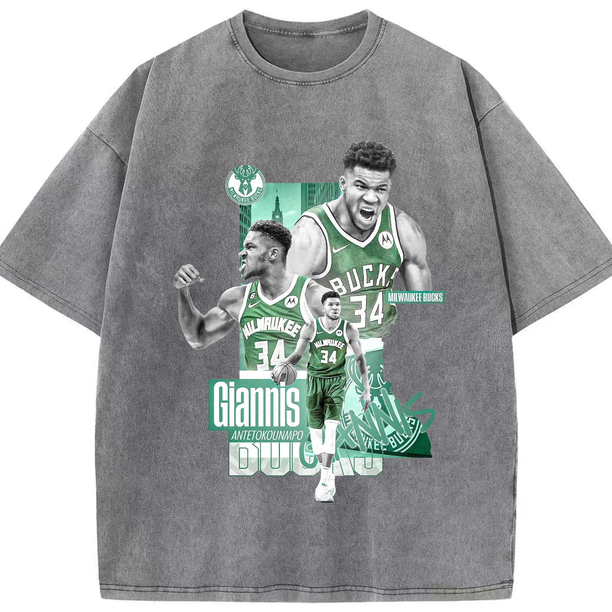 Giannis Antetokounmpo City of Bucks Hero Shirt - Washed Vintage Look 230g Cotton Oversized T-Shirt With Front Heat Transfer Print – Soft, Lightweight, Stylish Fit – Comfortable Casual Wear For Sports & Everyday Use