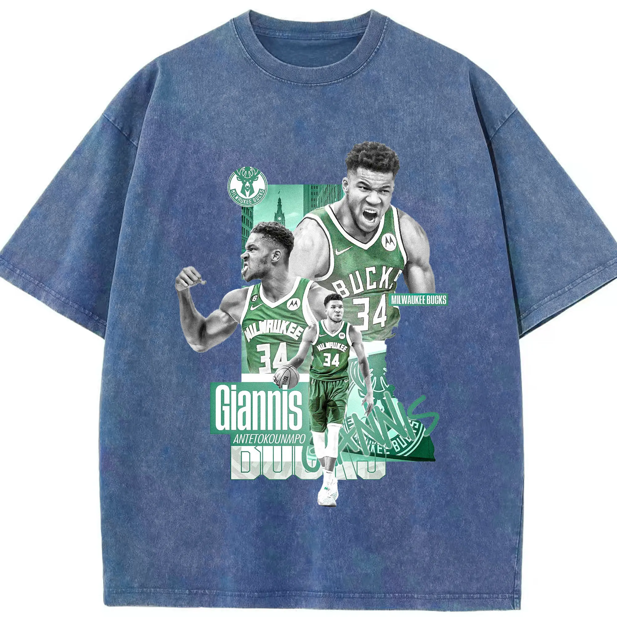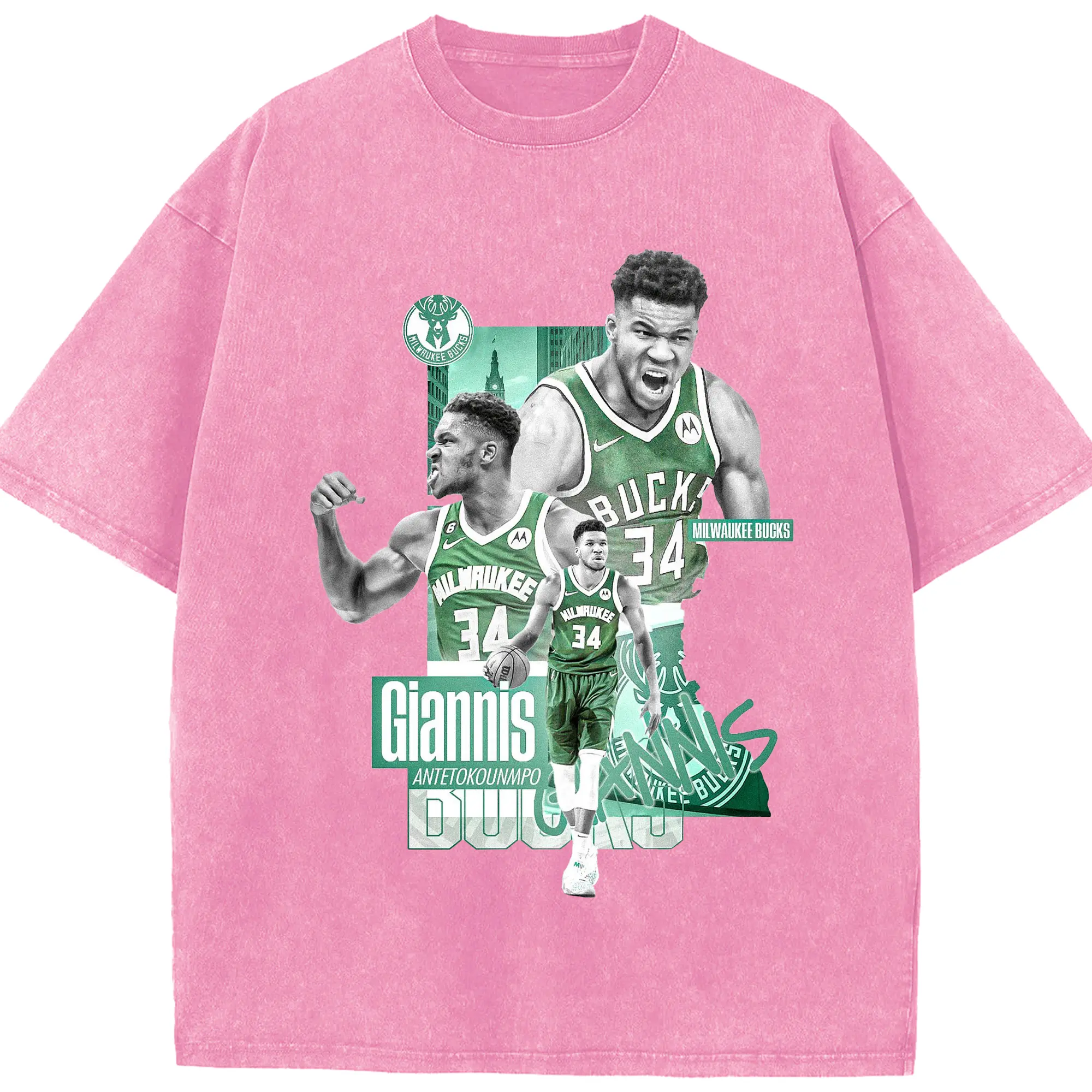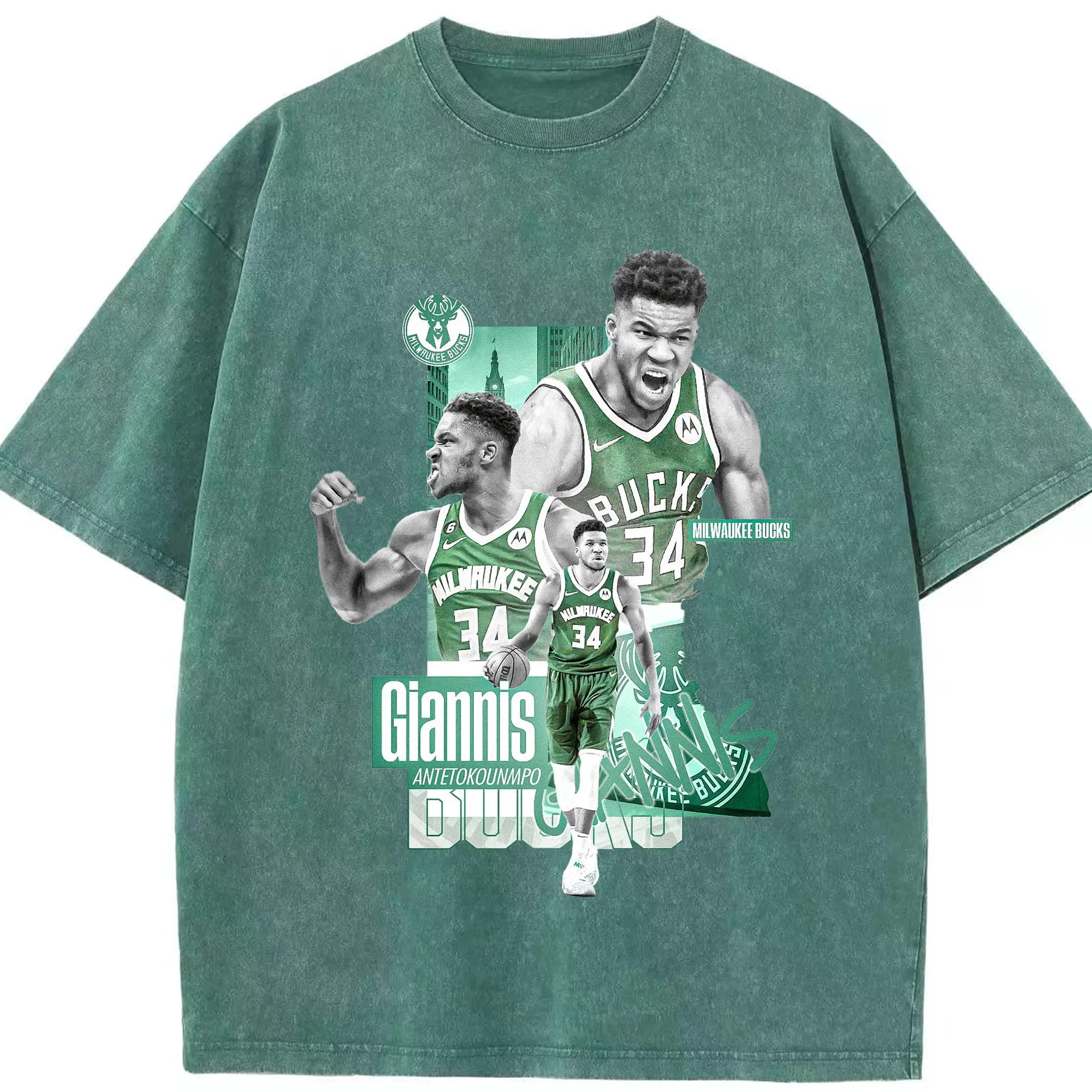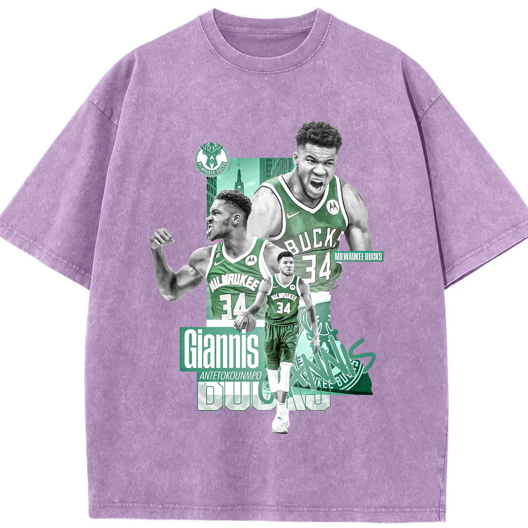 Giannis Antetokounmpo City of Bucks Hero Shirt - Washed Vintage Look 230g Cotton Oversized T-Shirt With Front Heat Transfer Print – Soft, Lightweight, Stylish Fit – Comfortable Casual Wear For Sports & Everyday Use