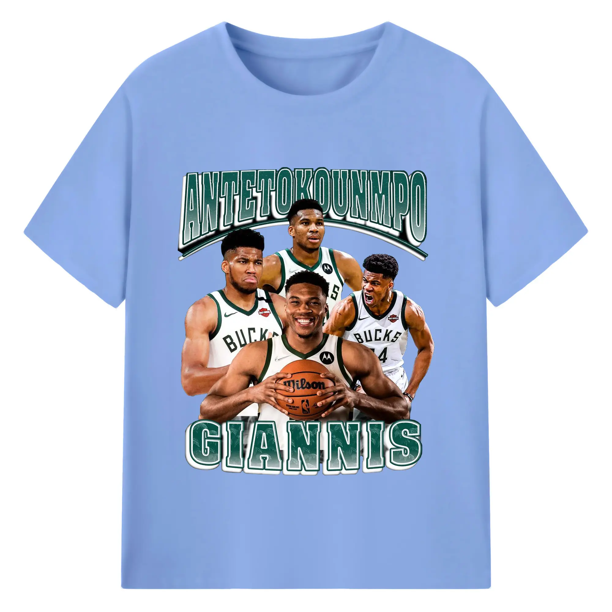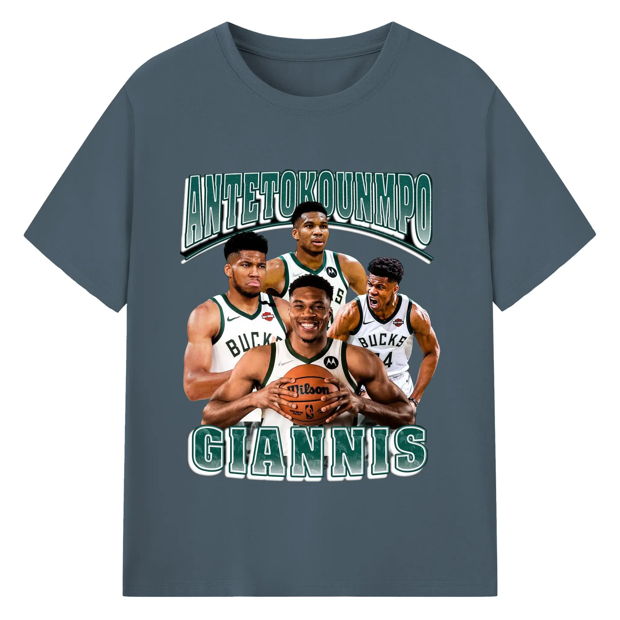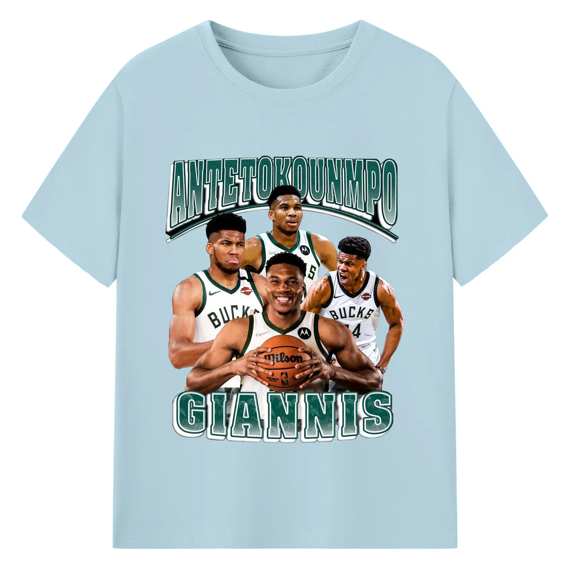 Giannis Antetokounmpo Multi-Pose Fan Shirt - 180g Cotton T-Shirt With Front Heat Transfer Print – Soft, Lightweight, Fitted Design – Comfortable Casual Wear For Sports & Everyday Use