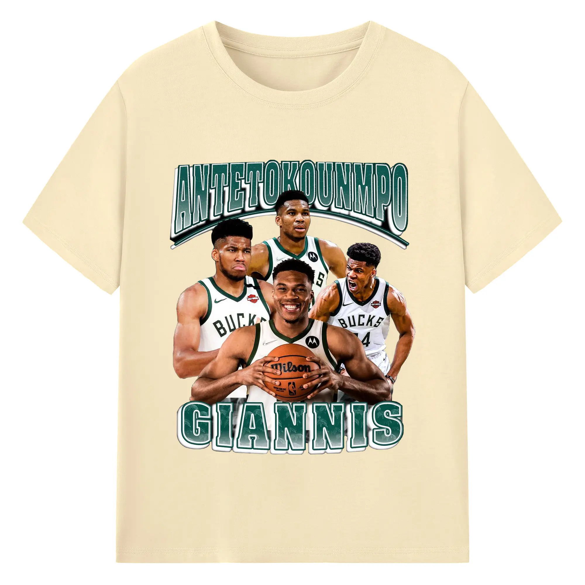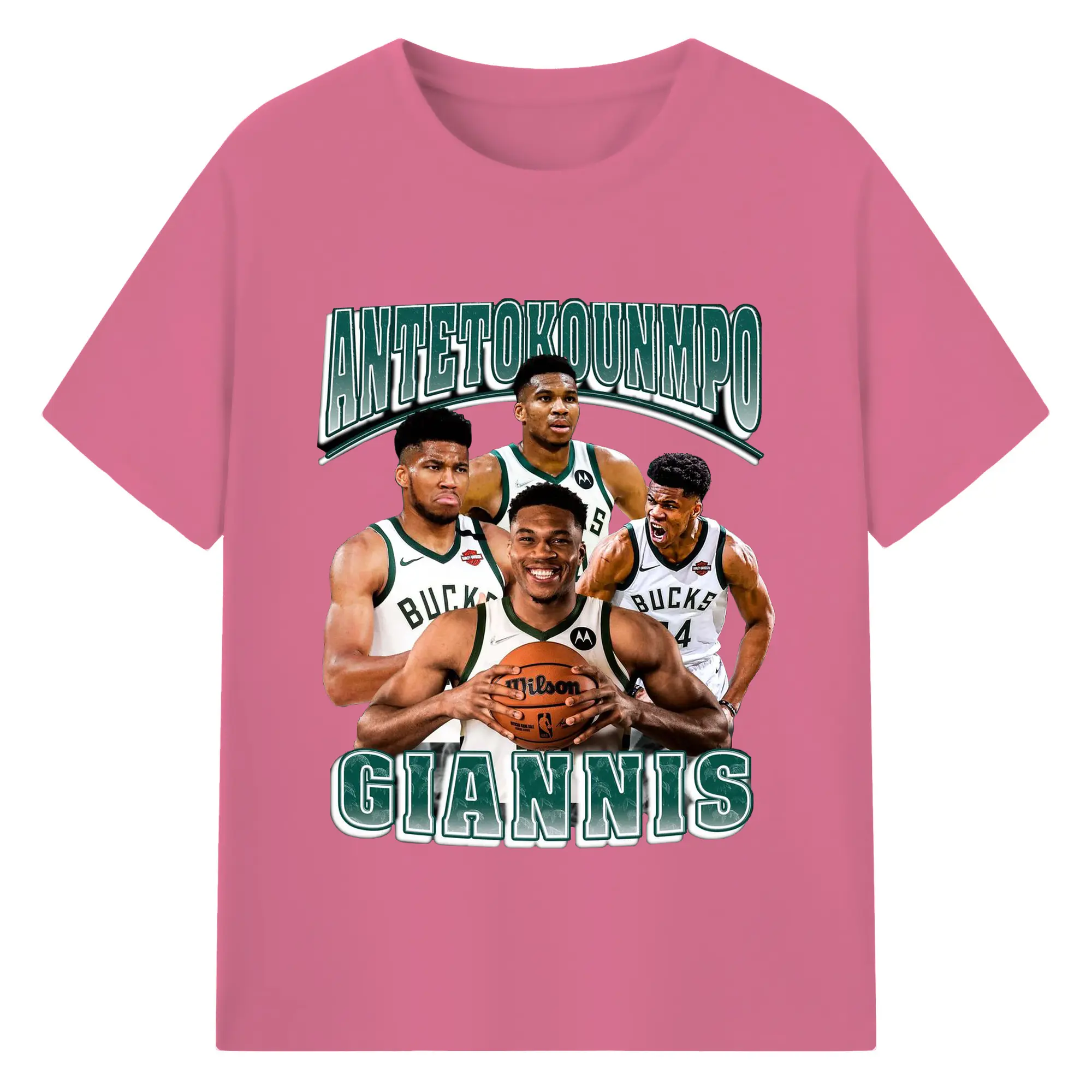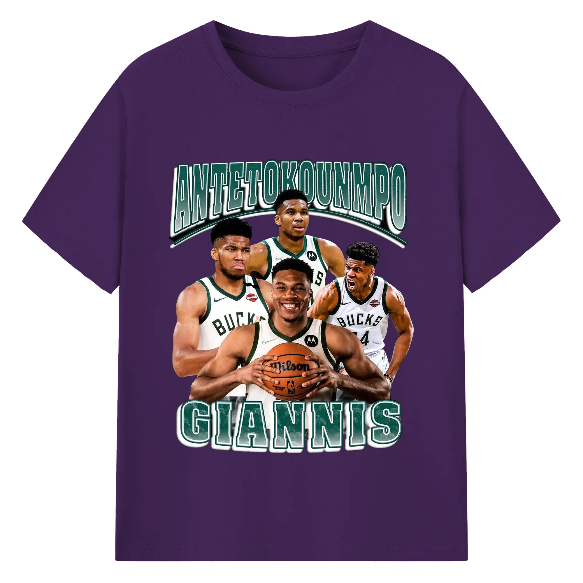 Giannis Antetokounmpo Multi-Pose Fan Shirt - 180g Cotton T-Shirt With Front Heat Transfer Print – Soft, Lightweight, Fitted Design – Comfortable Casual Wear For Sports & Everyday Use
