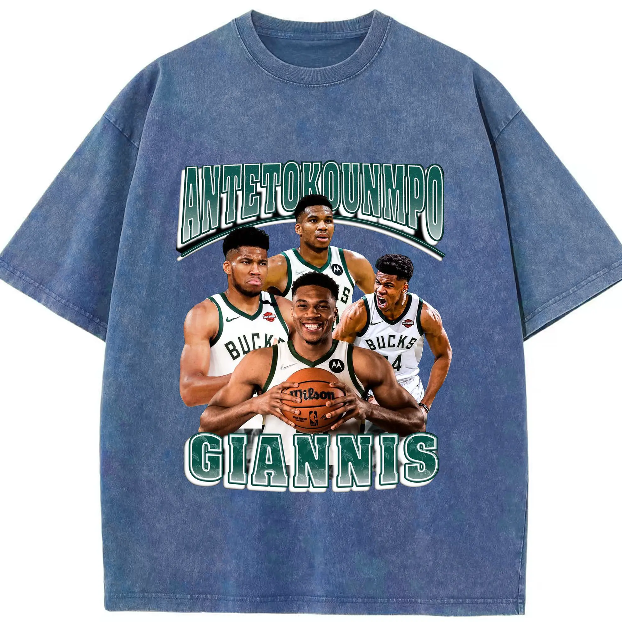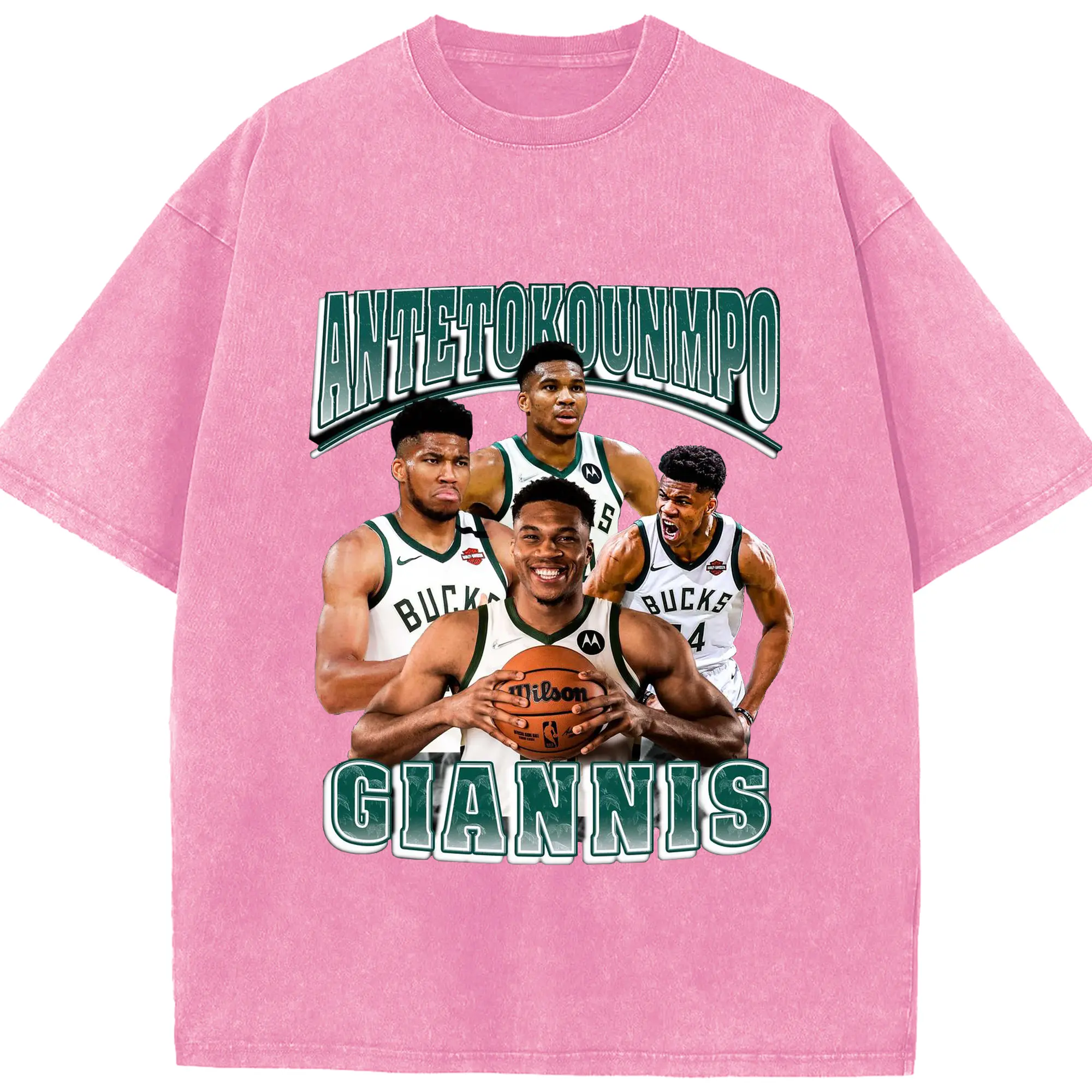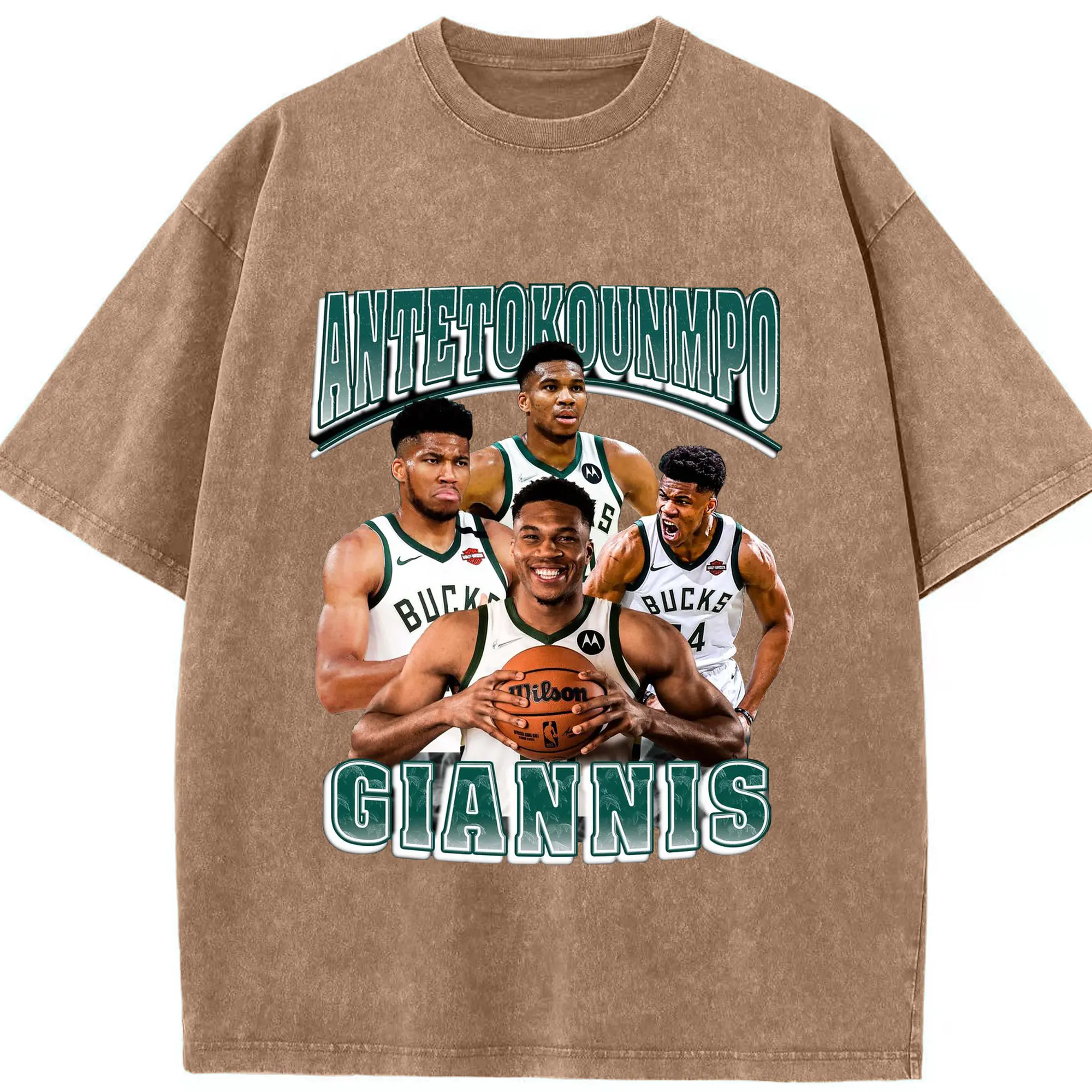 Giannis Antetokounmpo Multi-Pose Fan Shirt - Washed Vintage Look 230g Cotton Oversized T-Shirt With Front Heat Transfer Print – Soft, Lightweight, Stylish Fit – Comfortable Casual Wear For Sports & Everyday Use
