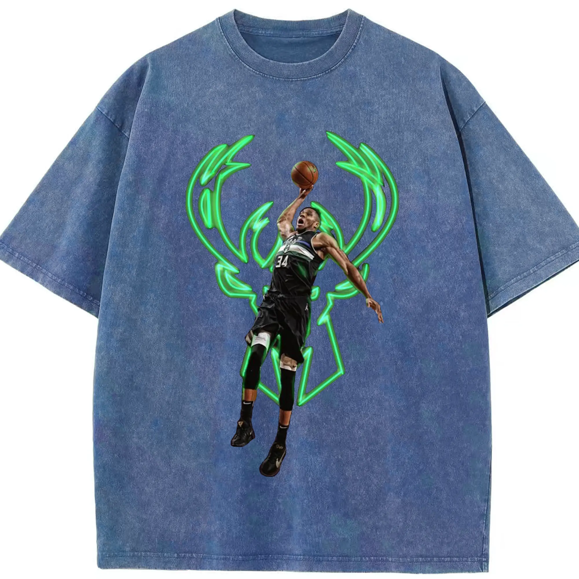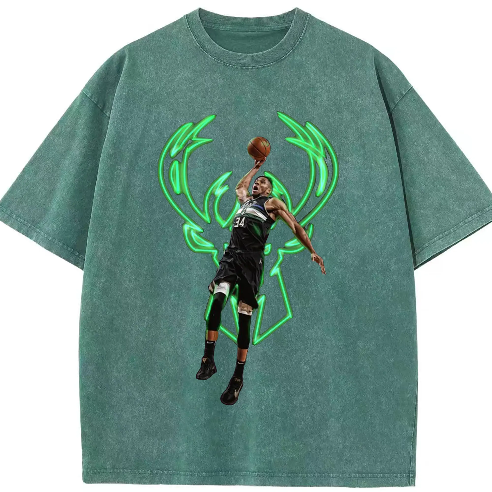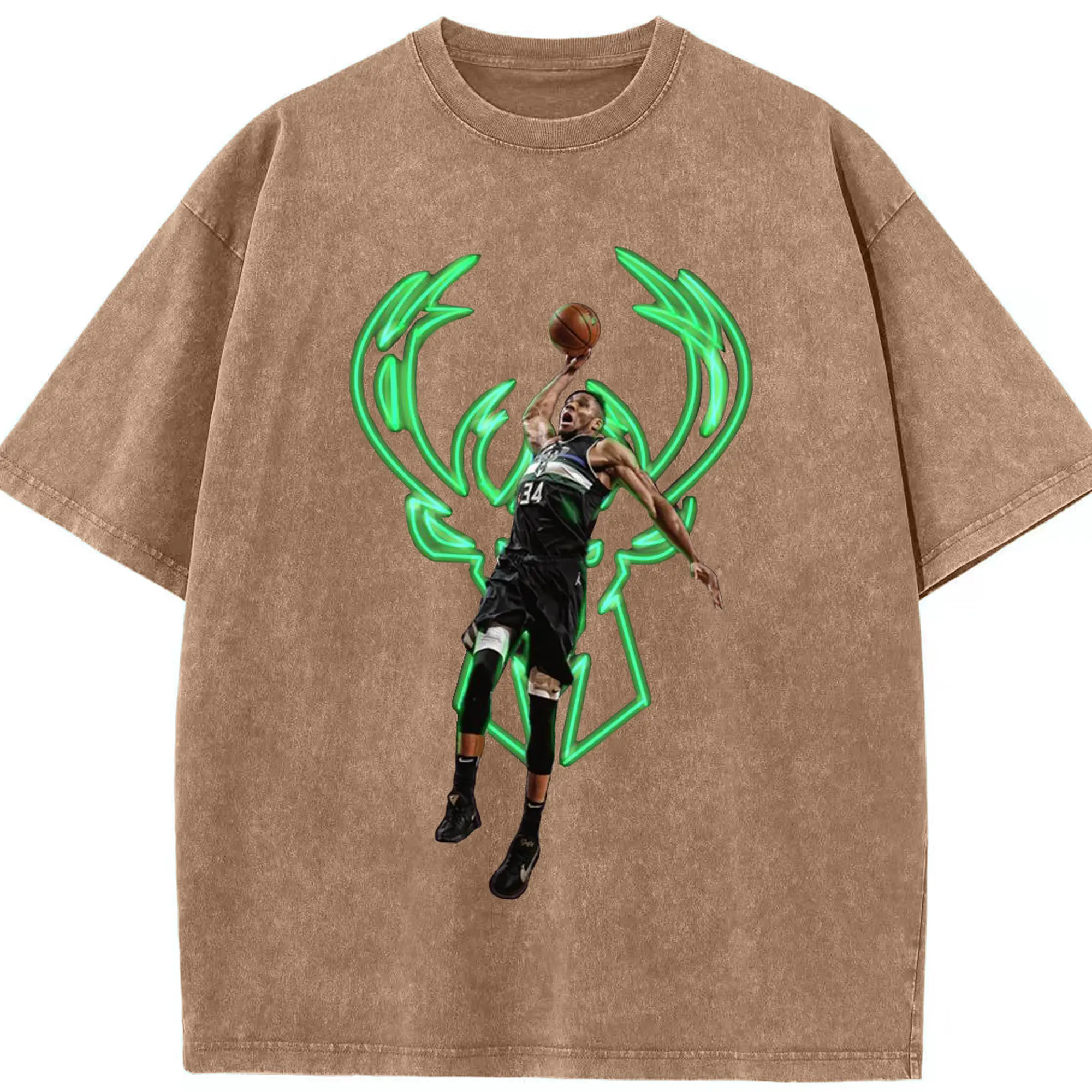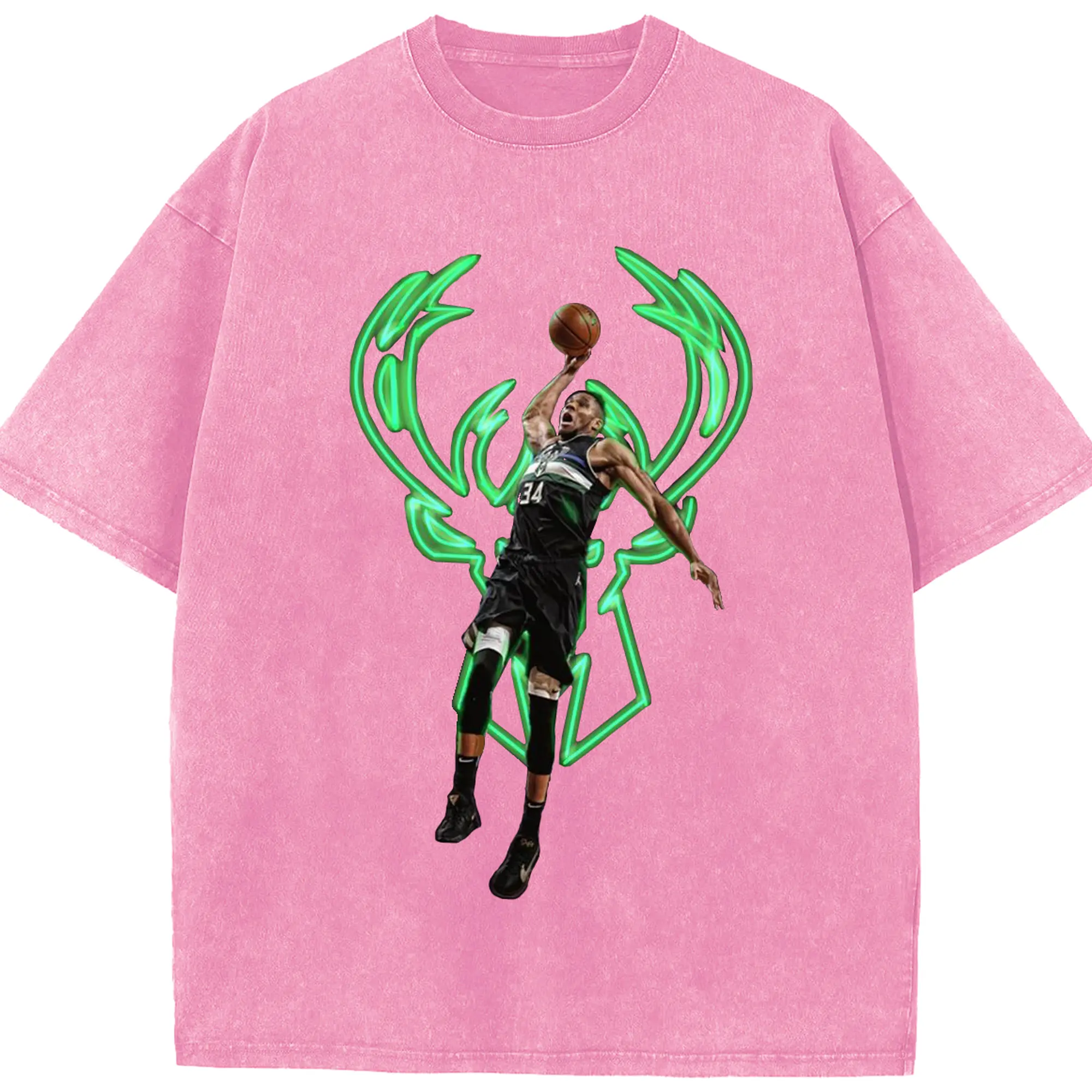 Giannis Antetokounmpo's slam dunk - Washed Vintage Look 230g Cotton Oversized T-Shirt With Front Heat Transfer Print – Soft, Lightweight, Stylish Fit – Comfortable Casual Wear For Sports & Everyday Use