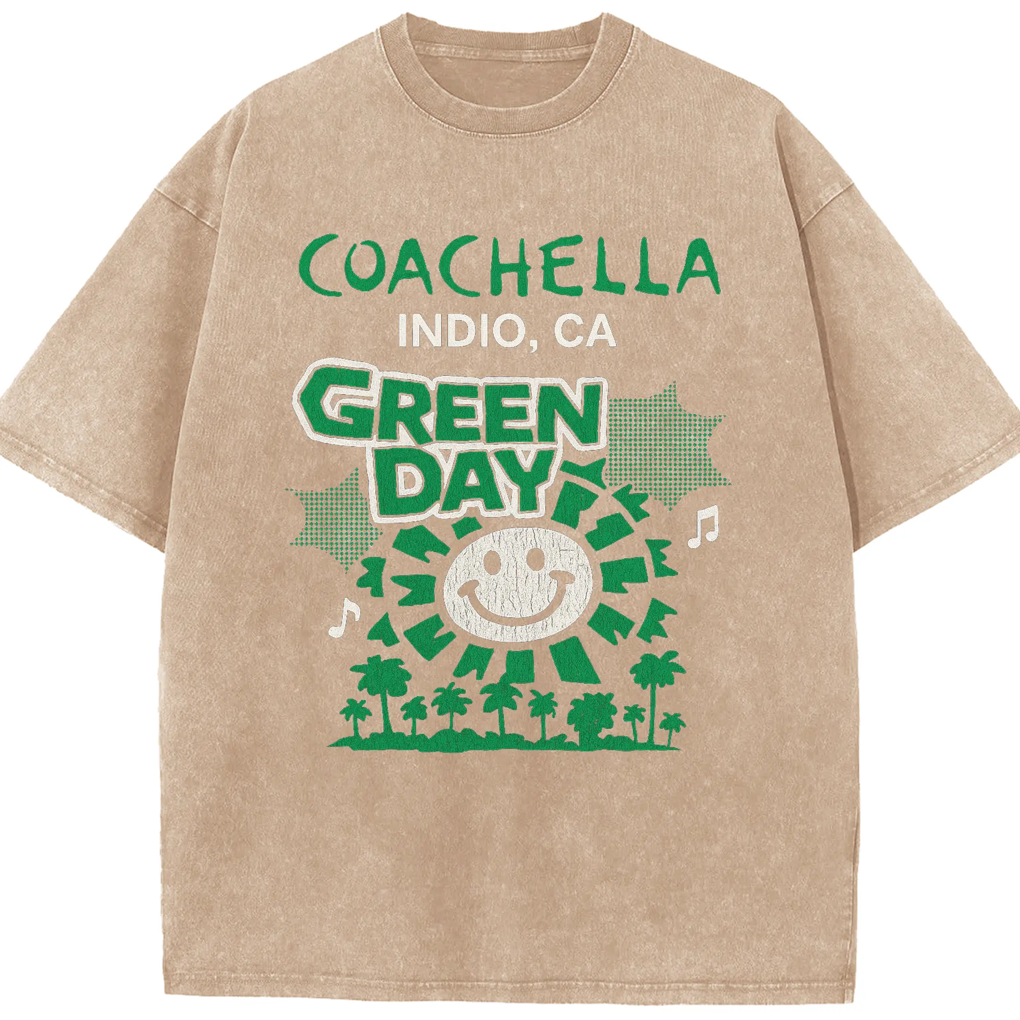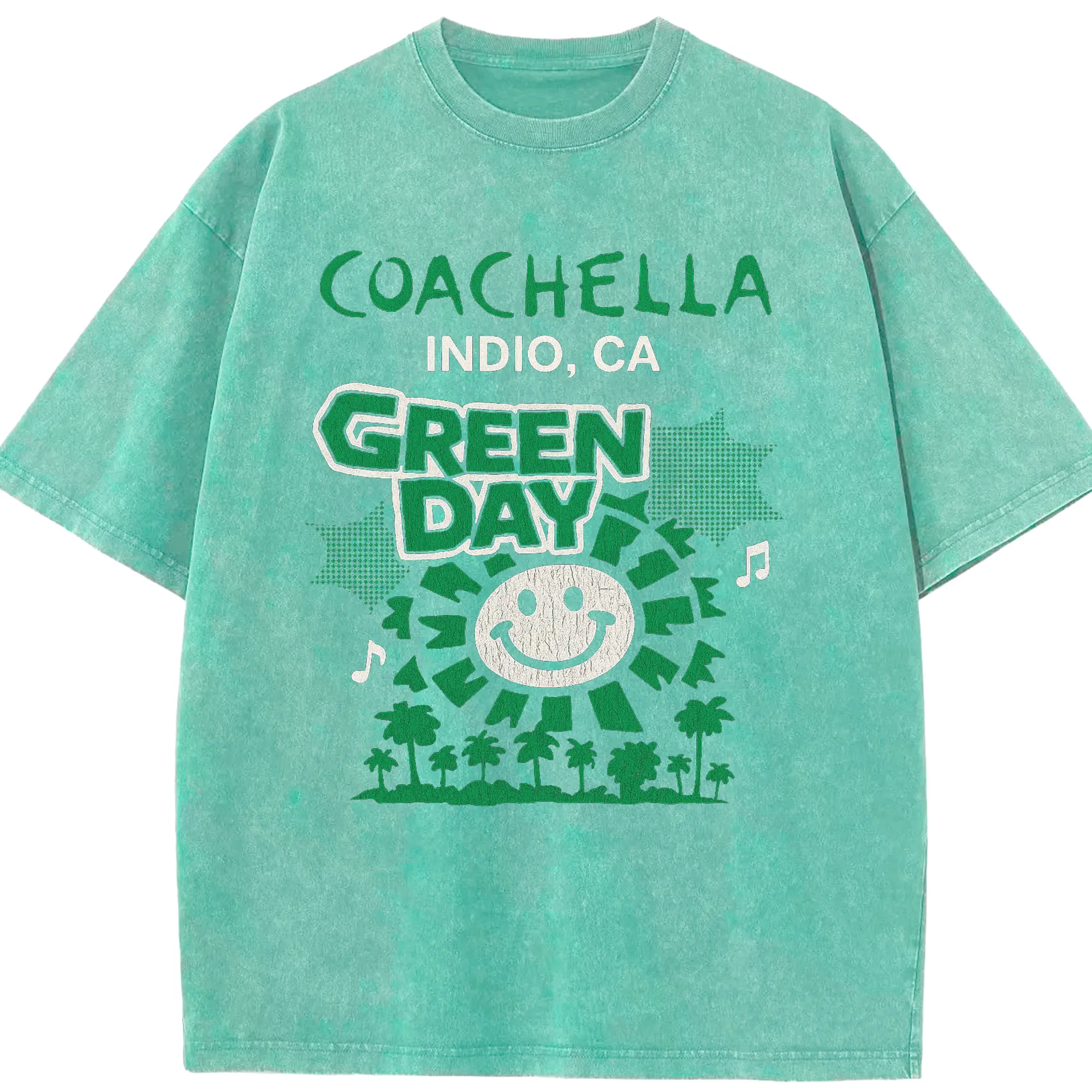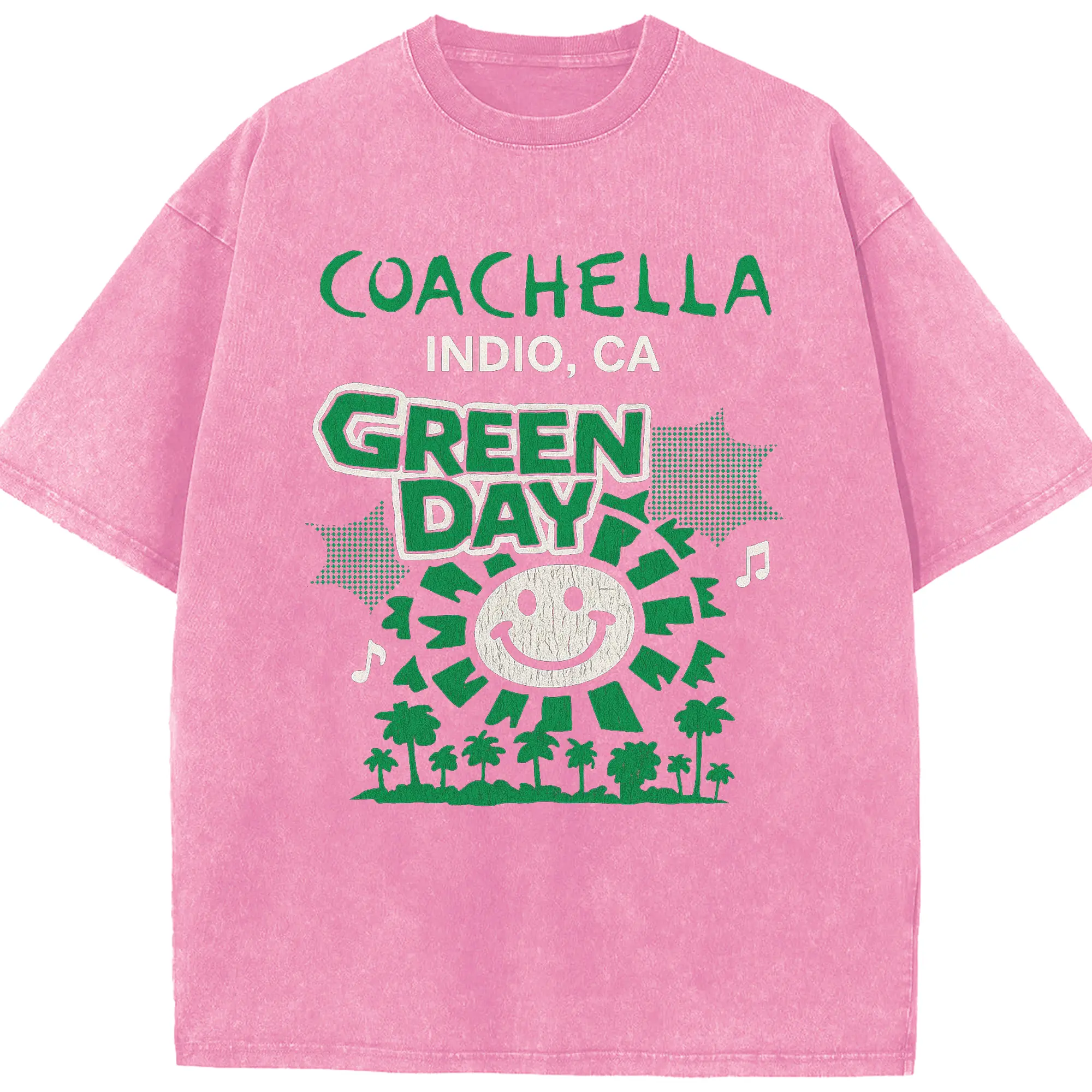 Green Day Coachella Music Festival DIY Shirt - Washed Vintage Look 230g Cotton Oversized T-Shirt With Front Heat Transfer Print – Soft, Lightweight, Stylish Fit – Comfortable Casual Wear For Sports & Everyday Use
