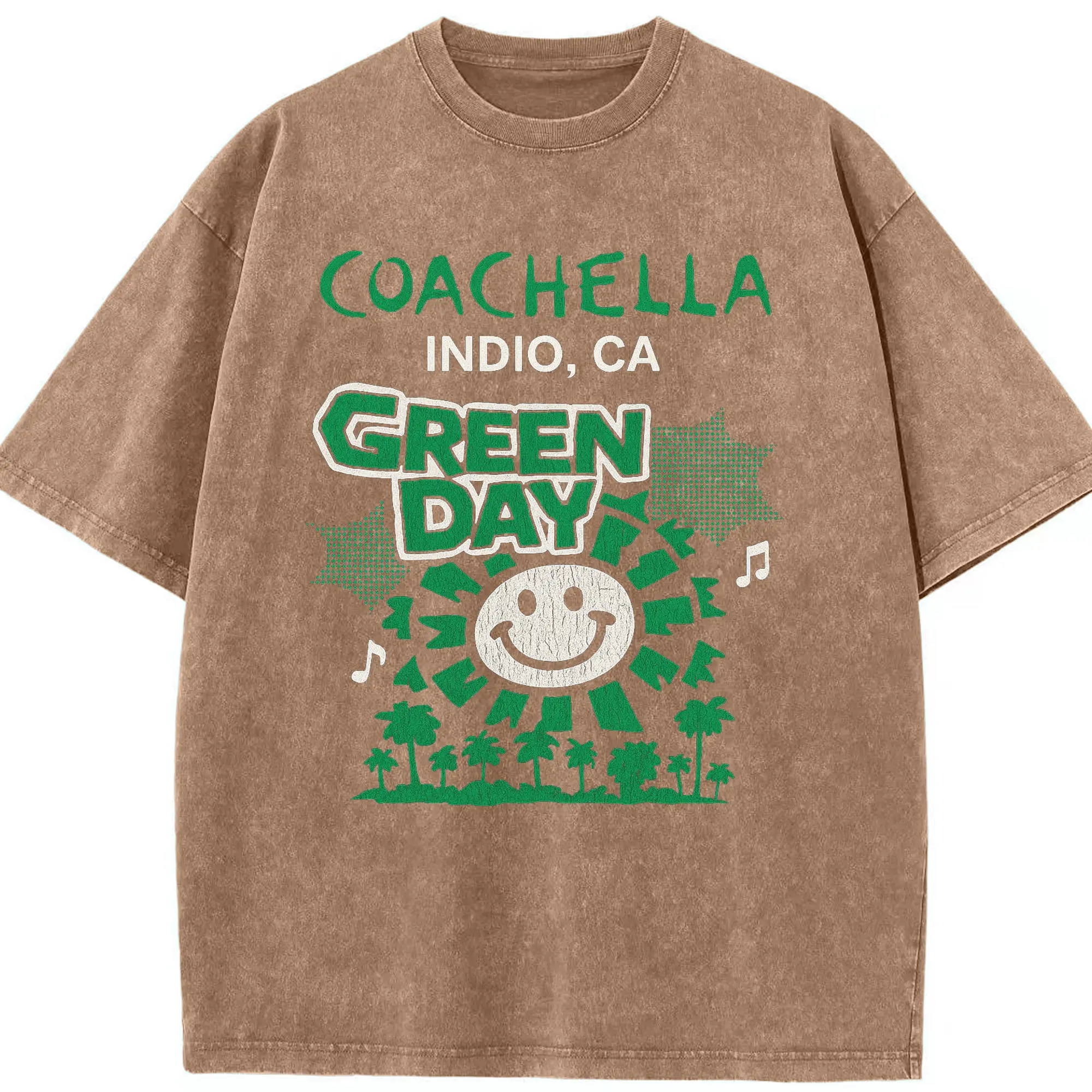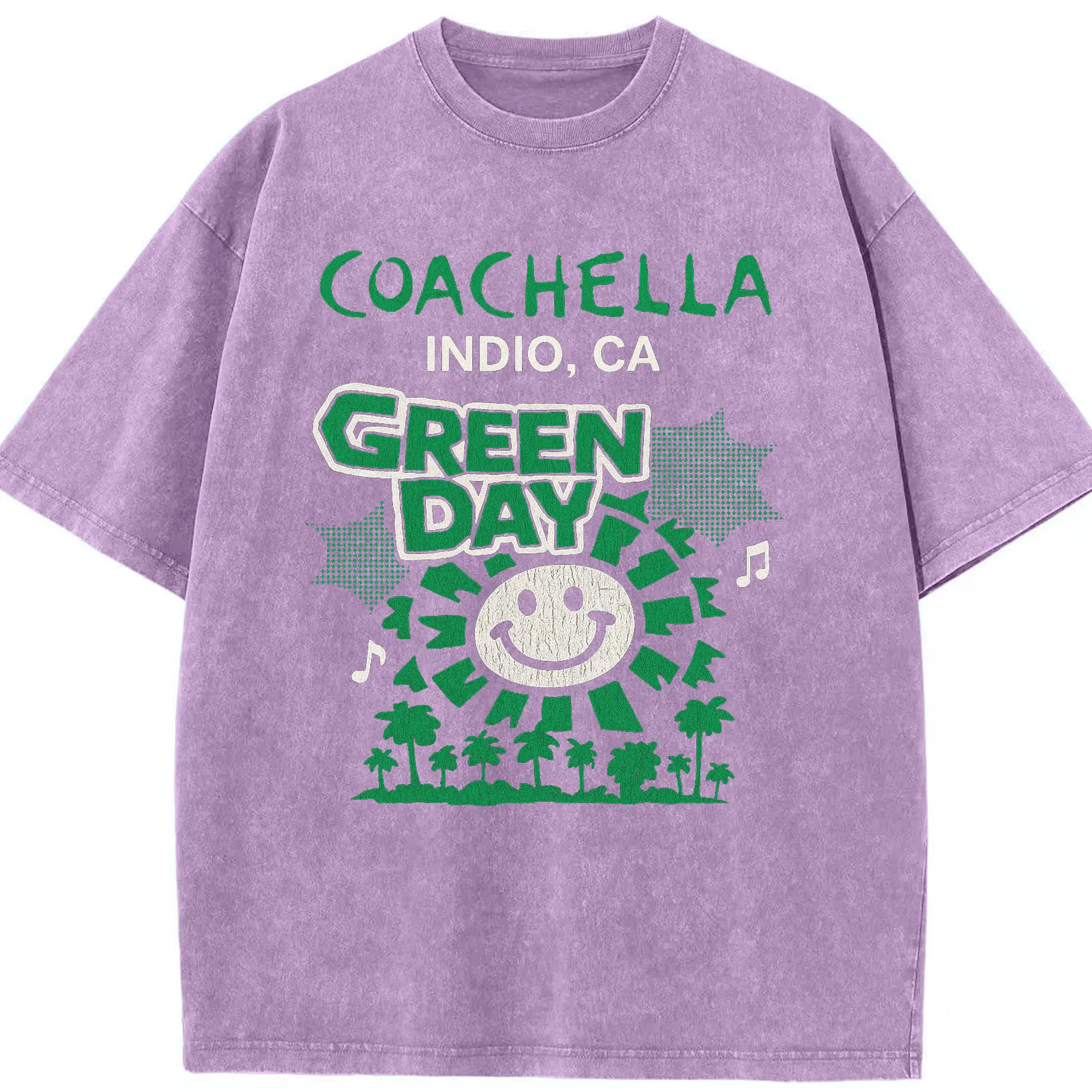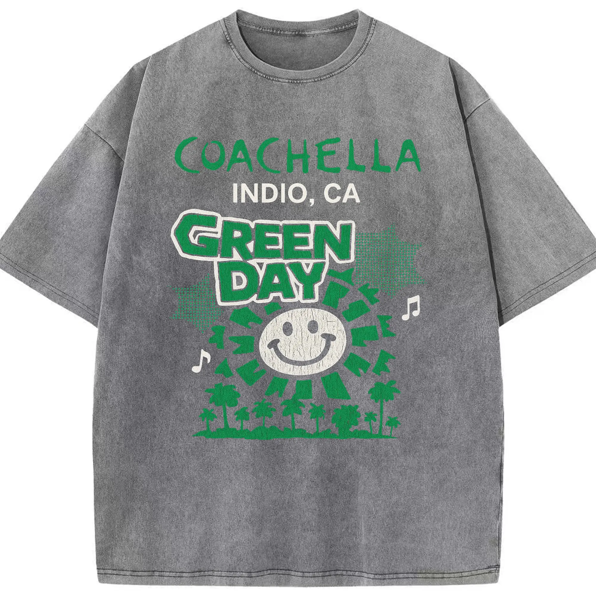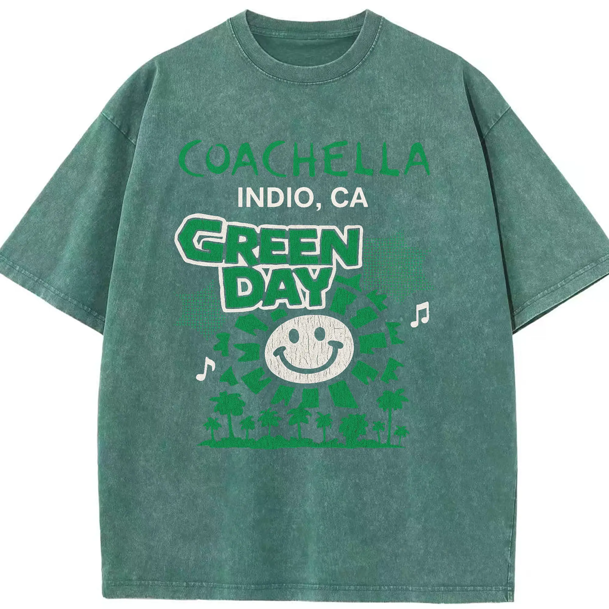 Green Day Coachella Music Festival DIY Shirt - Washed Vintage Look 230g Cotton Oversized T-Shirt With Front Heat Transfer Print – Soft, Lightweight, Stylish Fit – Comfortable Casual Wear For Sports & Everyday Use
