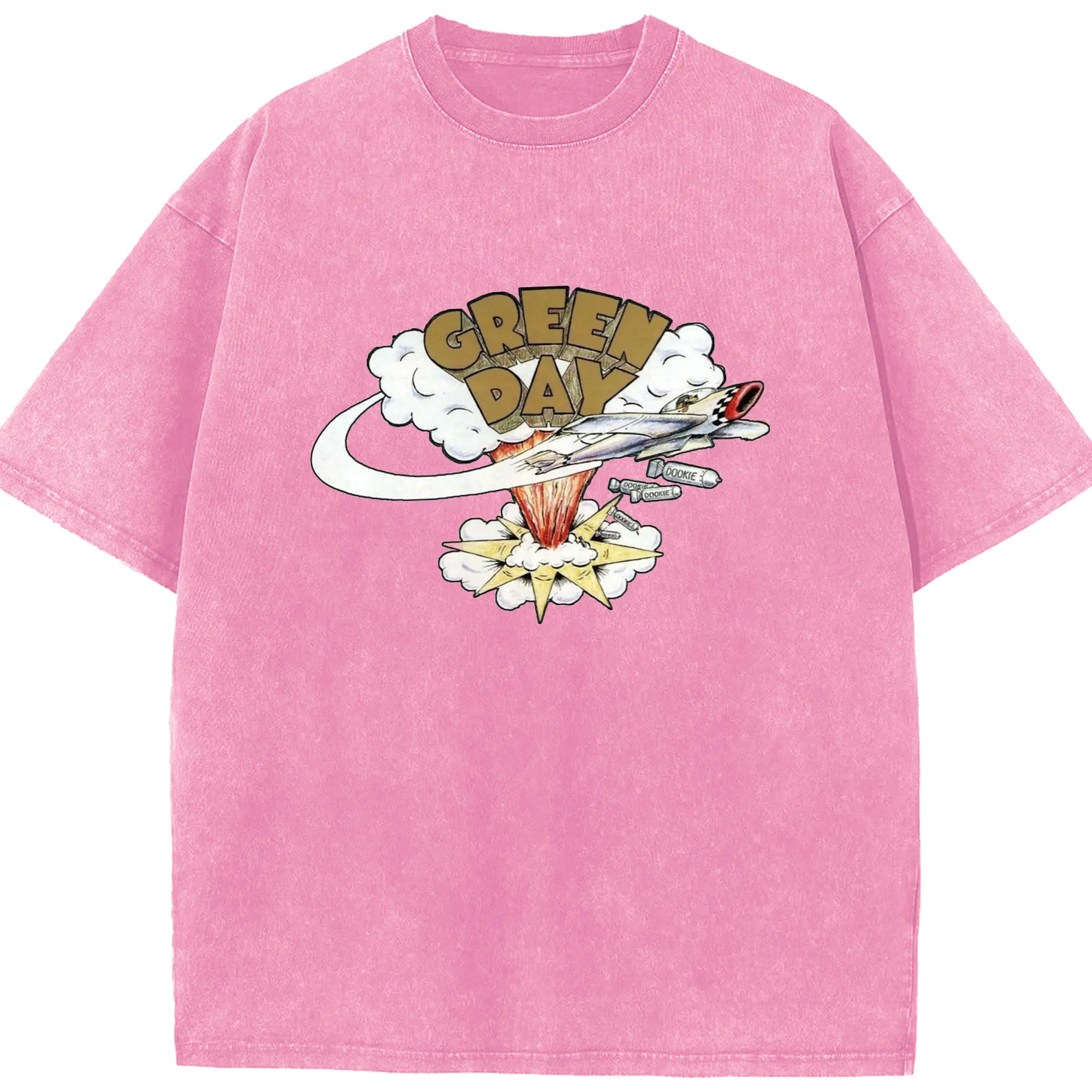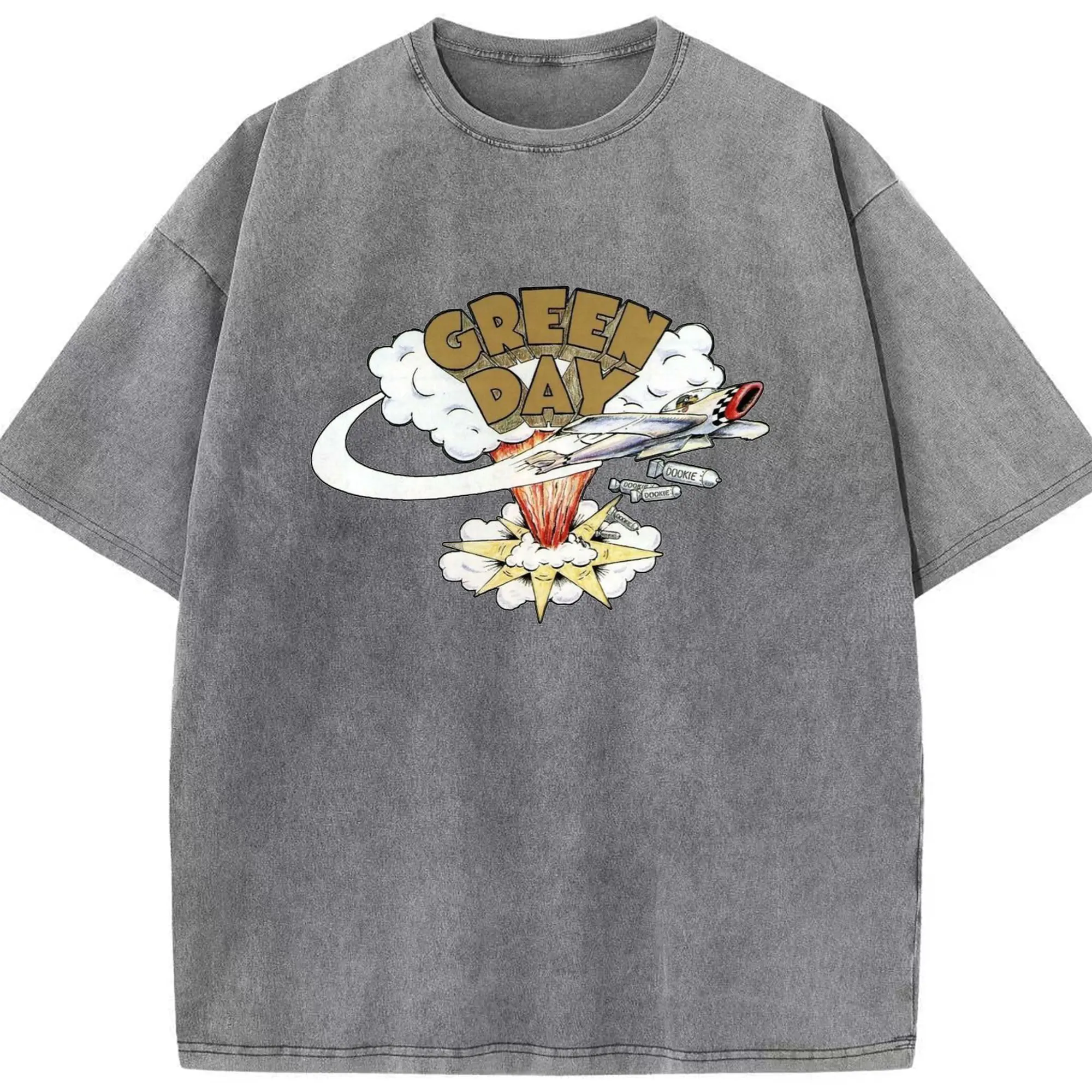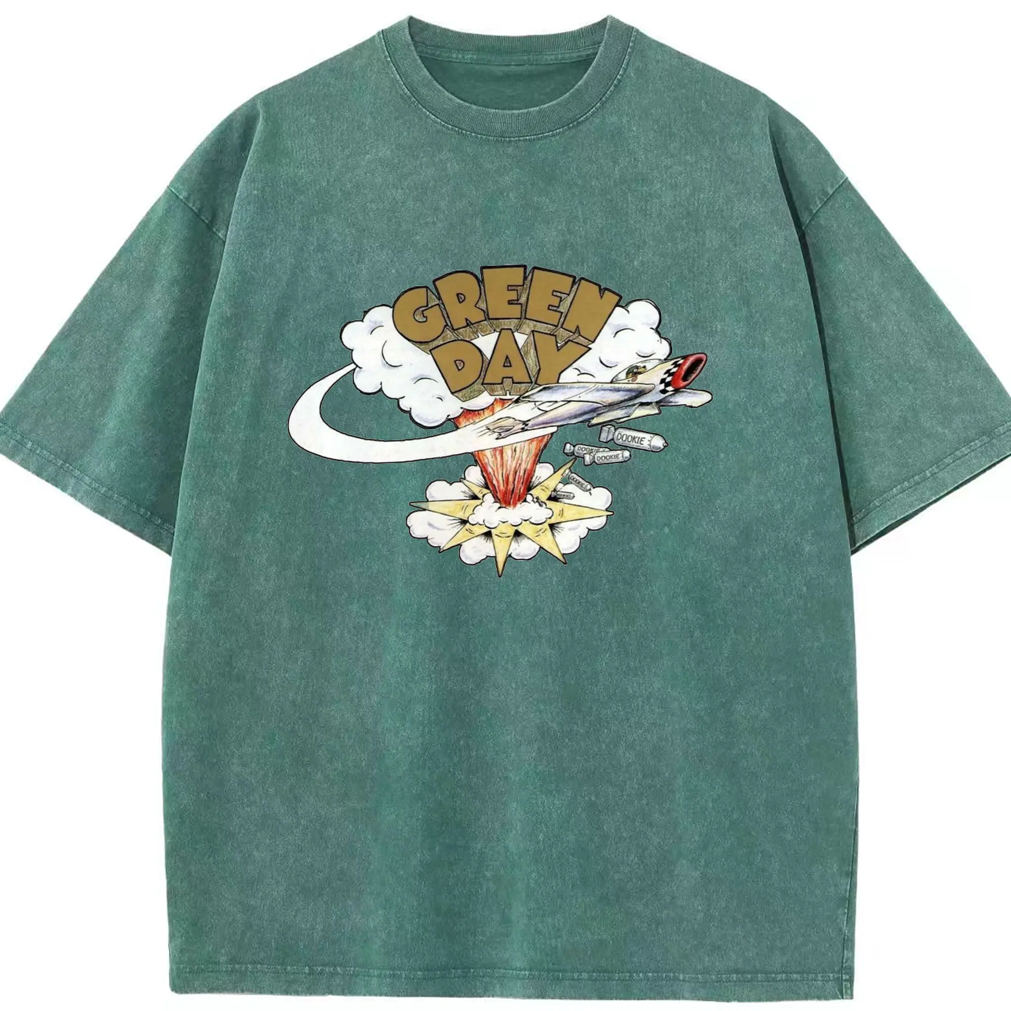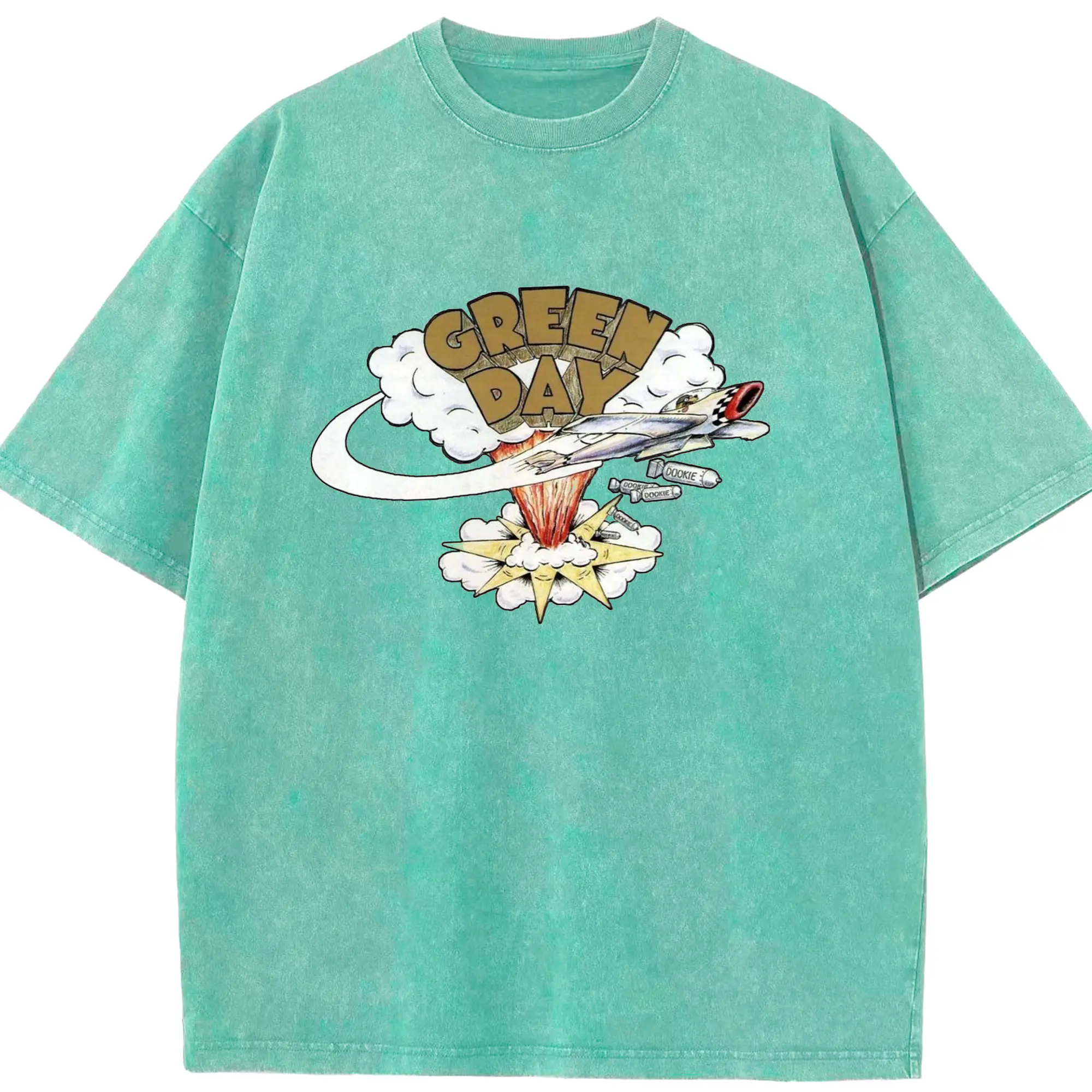 Green Day Punk Rock Cookie Bomb DIY Shirt - Washed Vintage Look 230g Cotton Oversized T-Shirt With Front Heat Transfer Print – Soft, Lightweight, Stylish Fit – Comfortable Casual Wear For Sports & Everyday Use