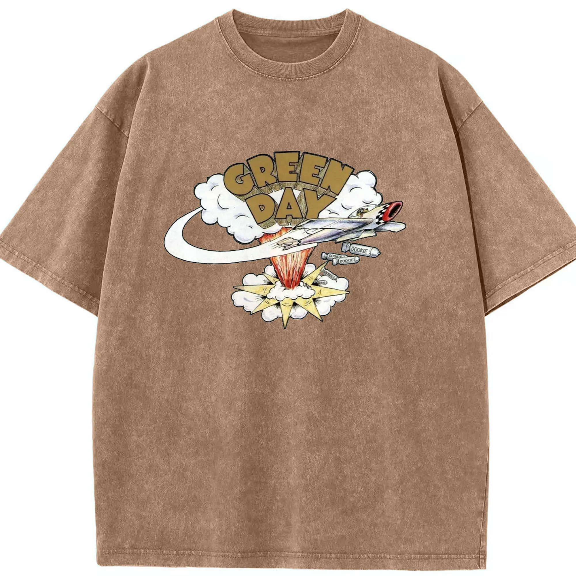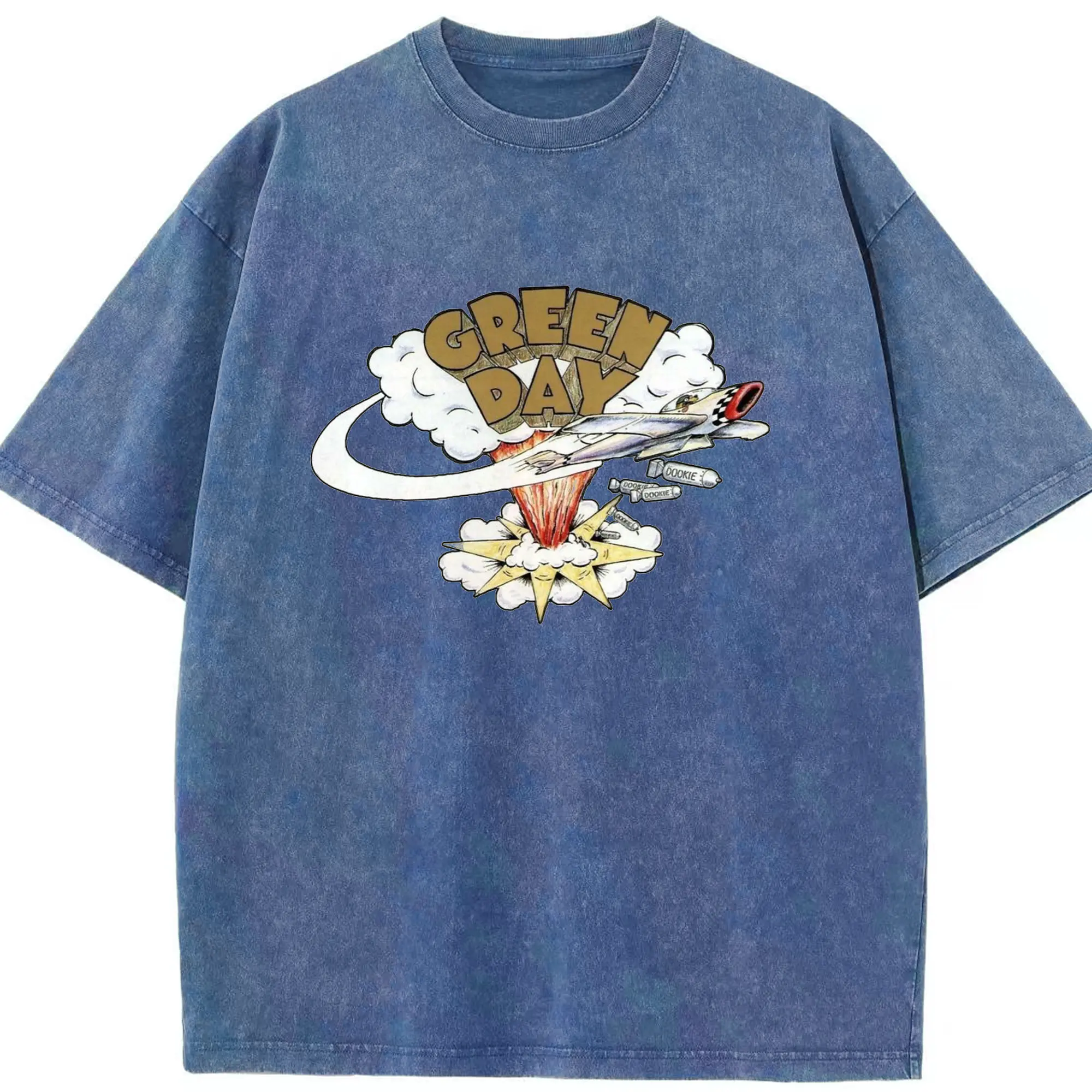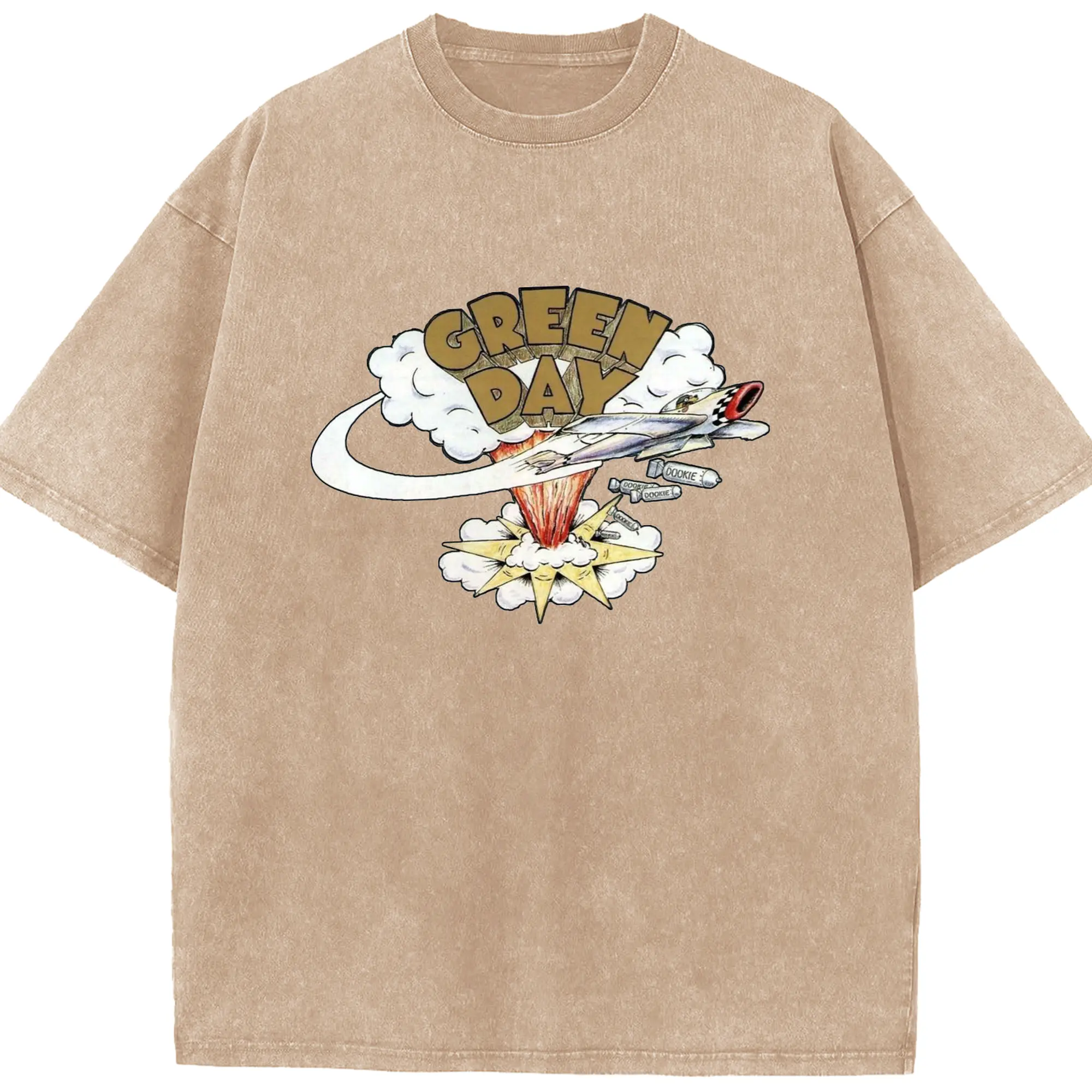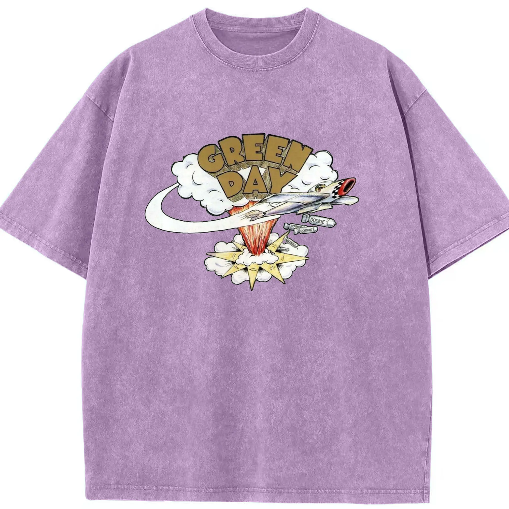 Green Day Punk Rock Cookie Bomb DIY Shirt - Washed Vintage Look 230g Cotton Oversized T-Shirt With Front Heat Transfer Print – Soft, Lightweight, Stylish Fit – Comfortable Casual Wear For Sports & Everyday Use