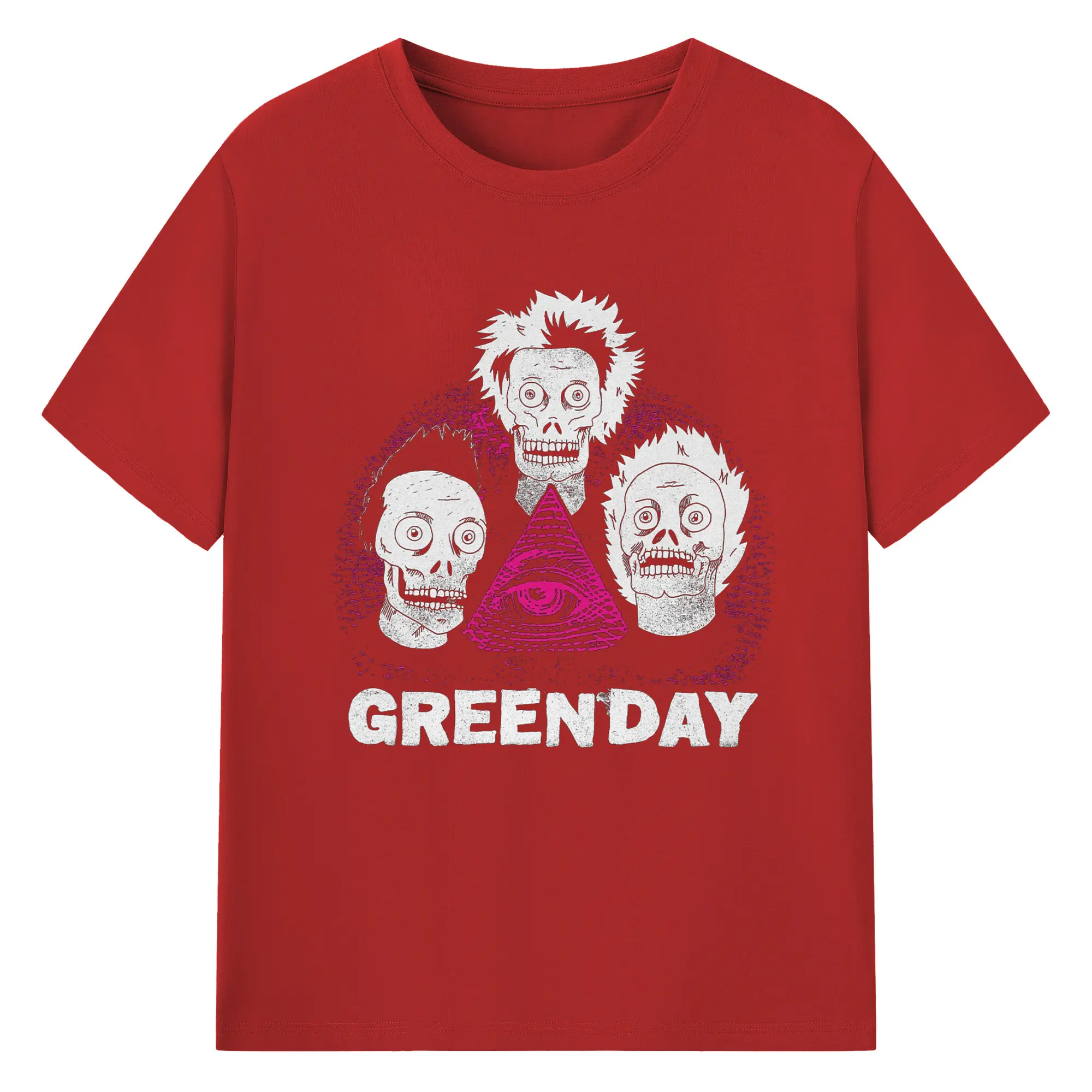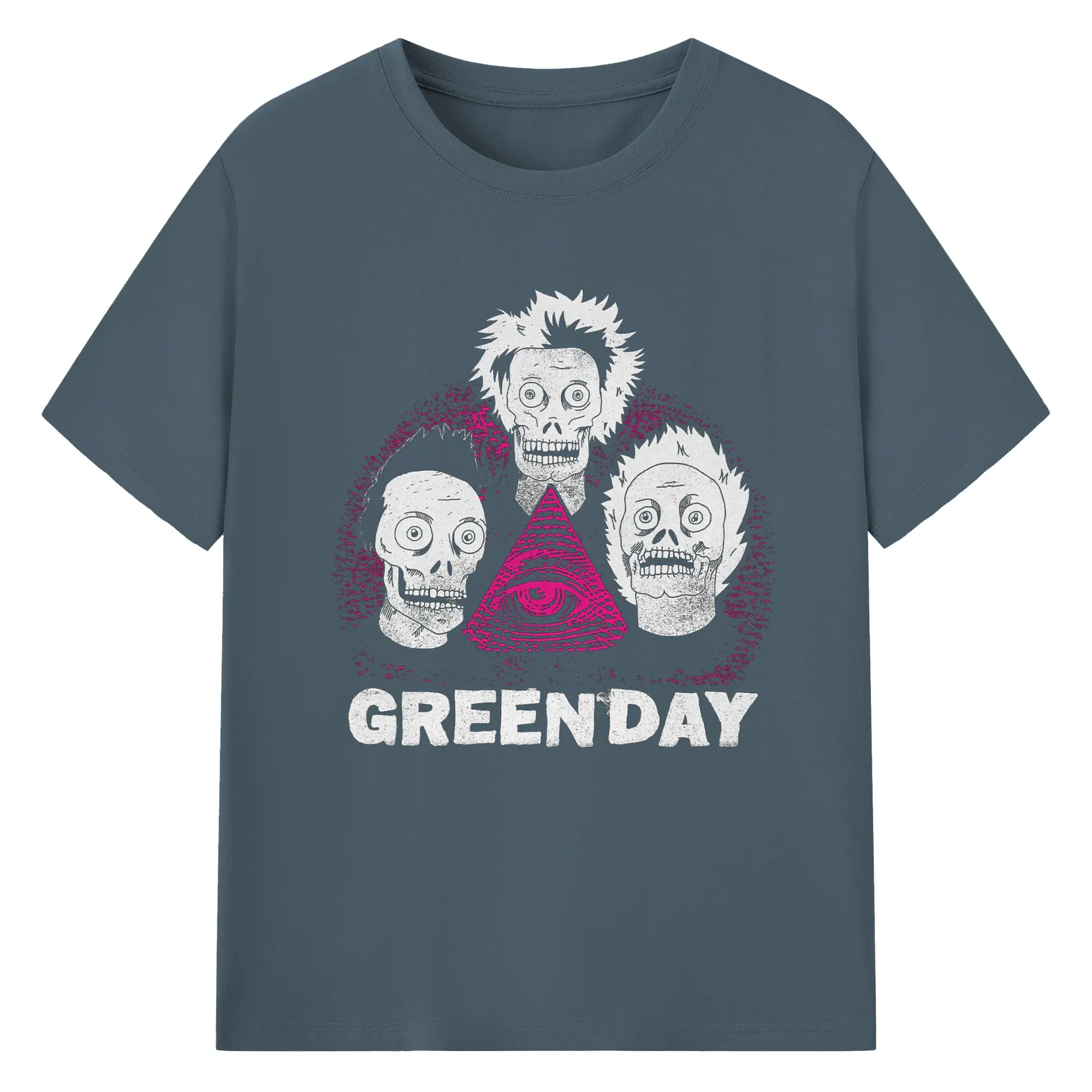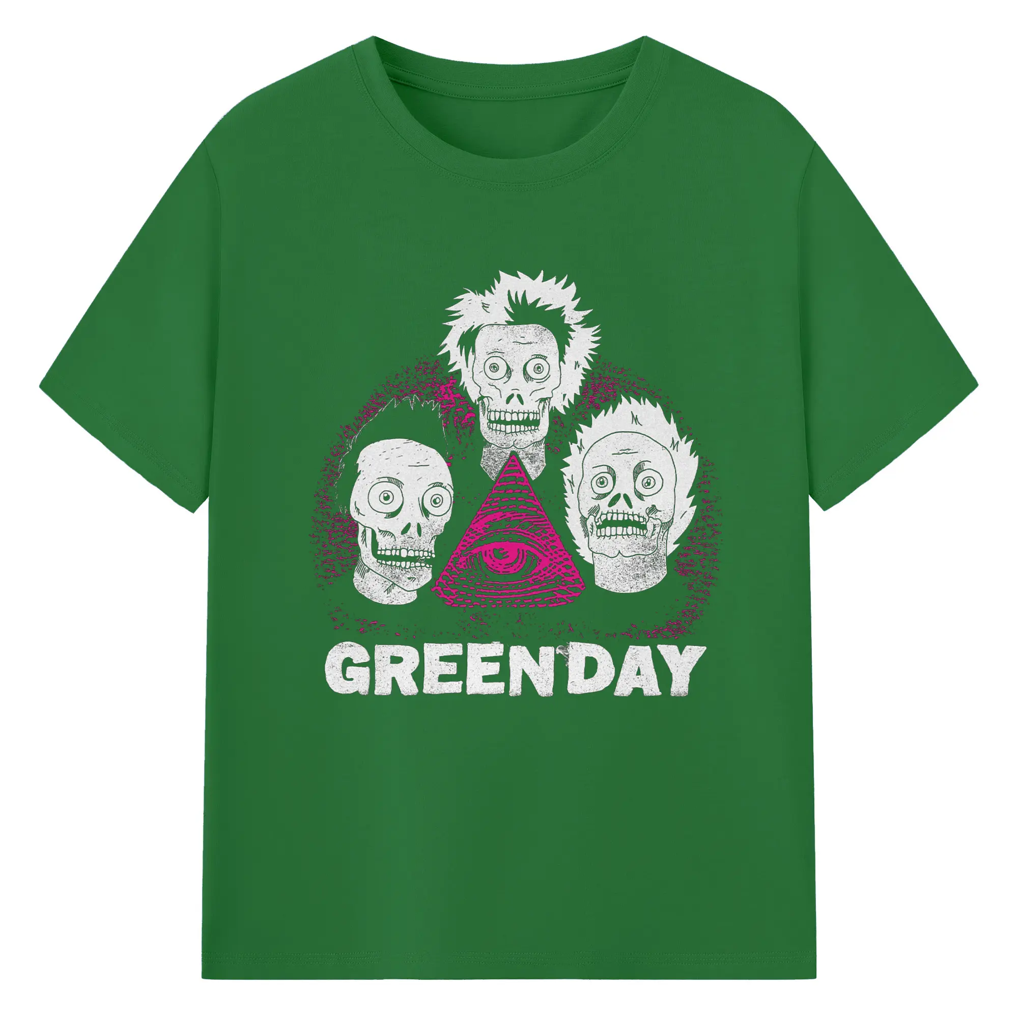 Green Day Punk Rock Skull DIY Shirt - 180g Cotton T-Shirt With Front Heat Transfer Print – Soft, Lightweight, Fitted Design – Comfortable Casual Wear For Sports & Everyday Use