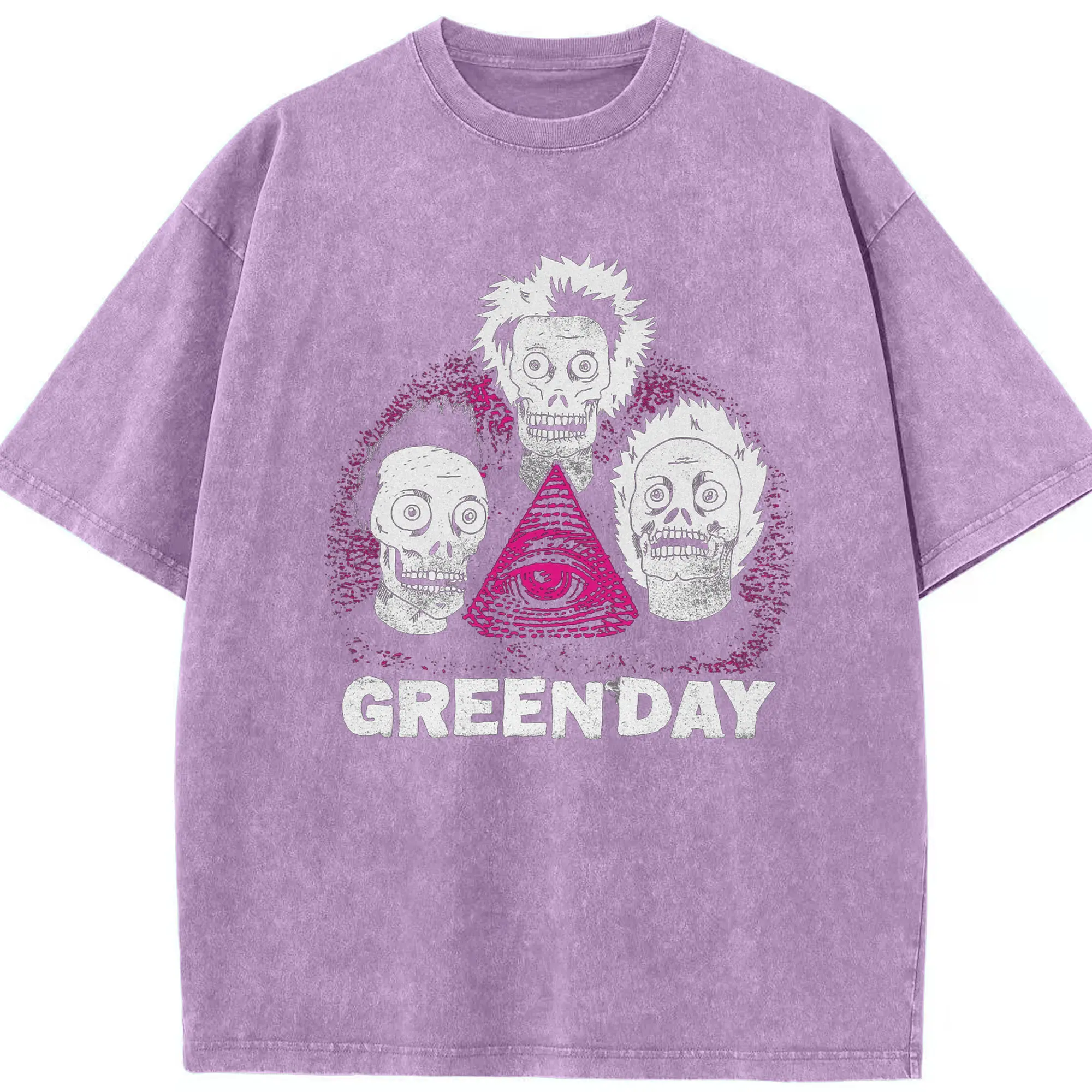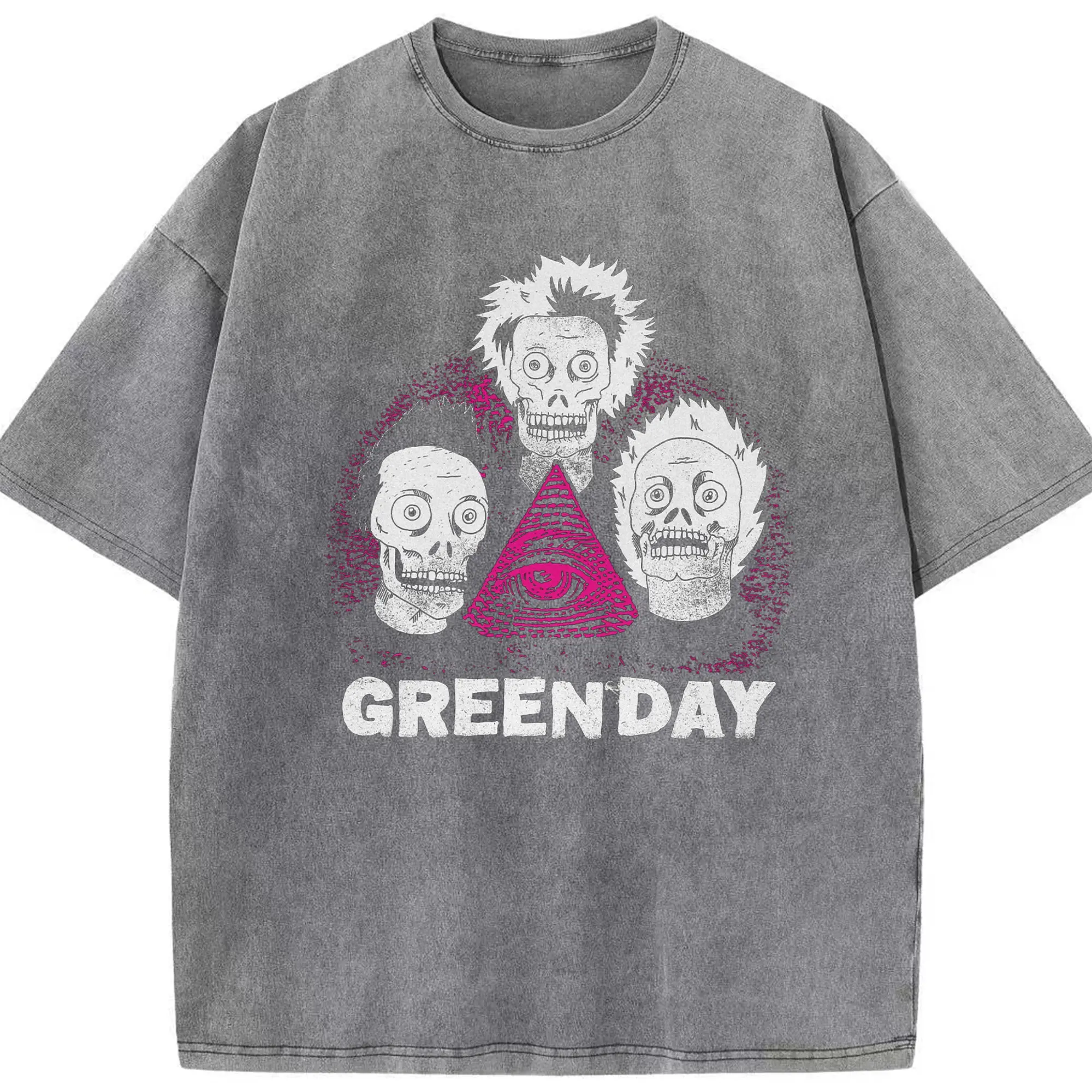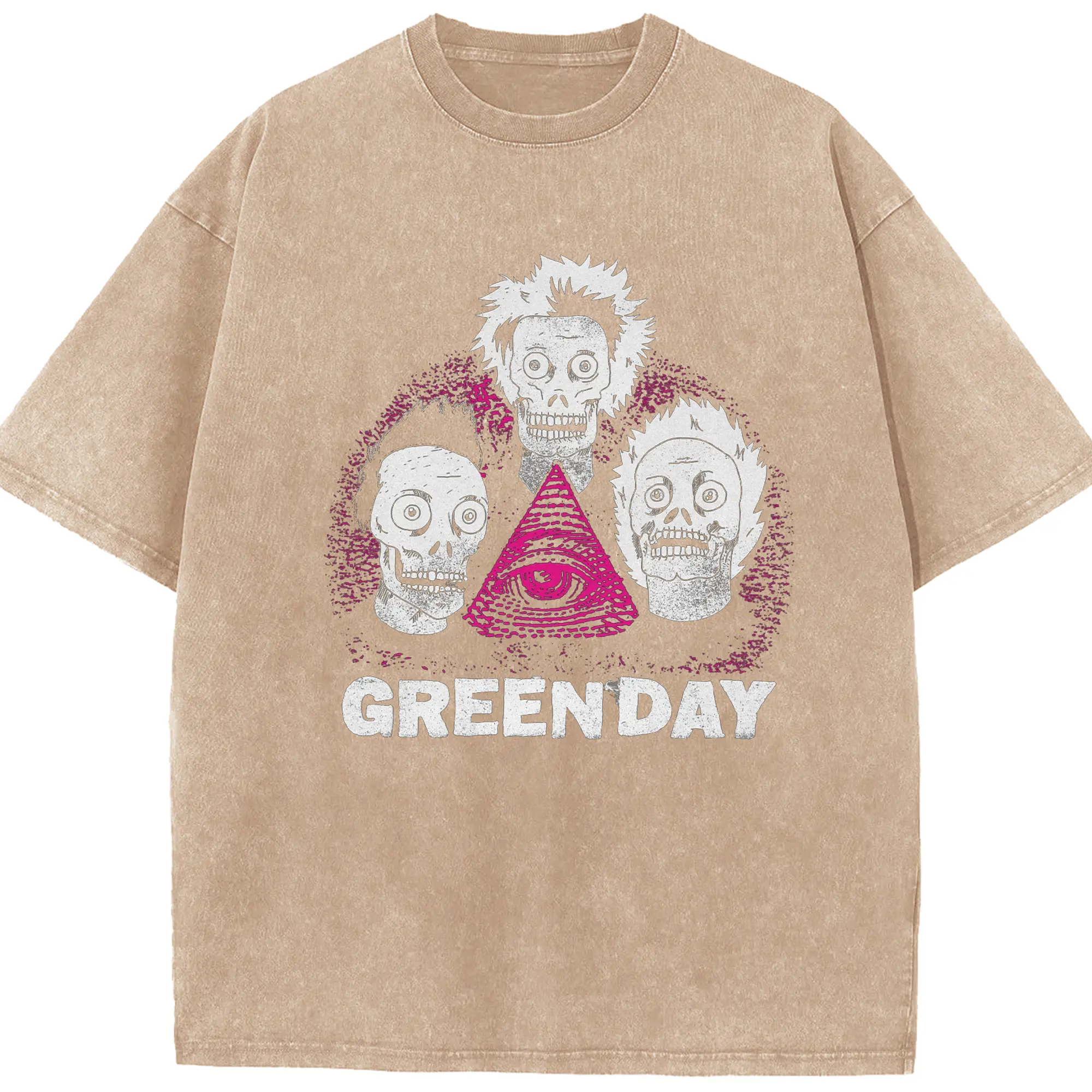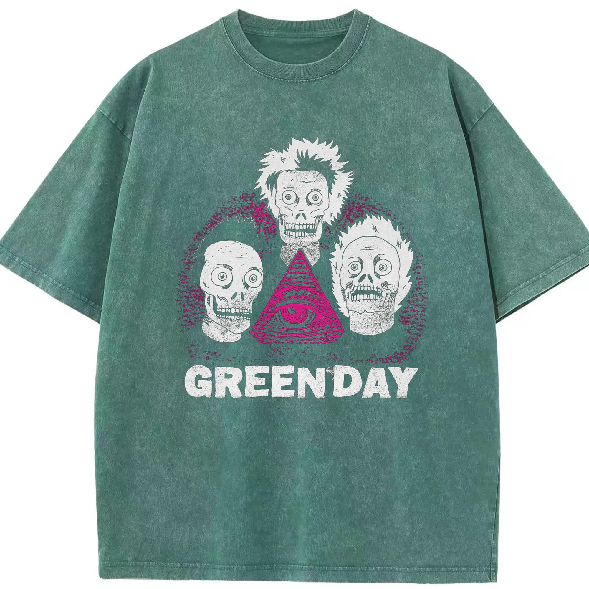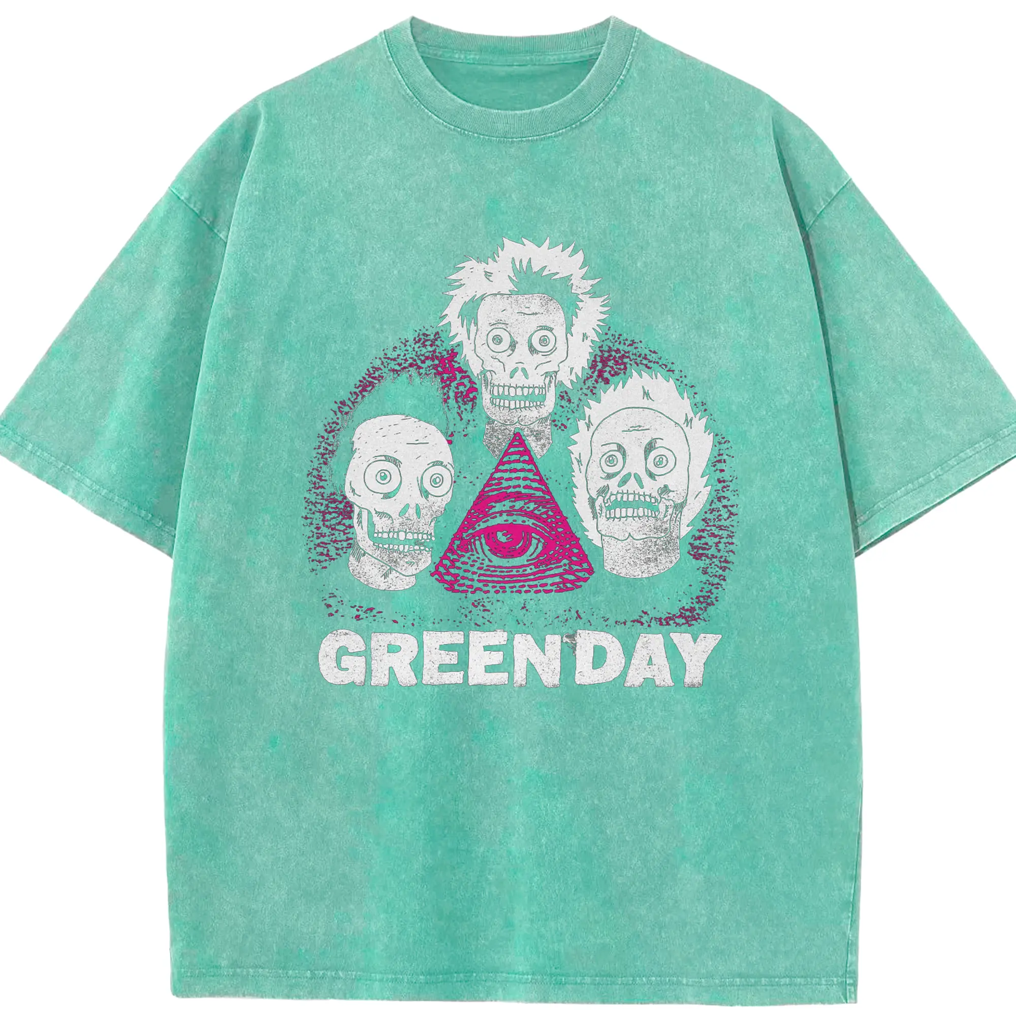 Green Day Punk Rock Skull DIY Shirt - Washed Vintage Look 230g Cotton Oversized T-Shirt With Front Heat Transfer Print – Soft, Lightweight, Stylish Fit – Comfortable Casual Wear For Sports & Everyday Use