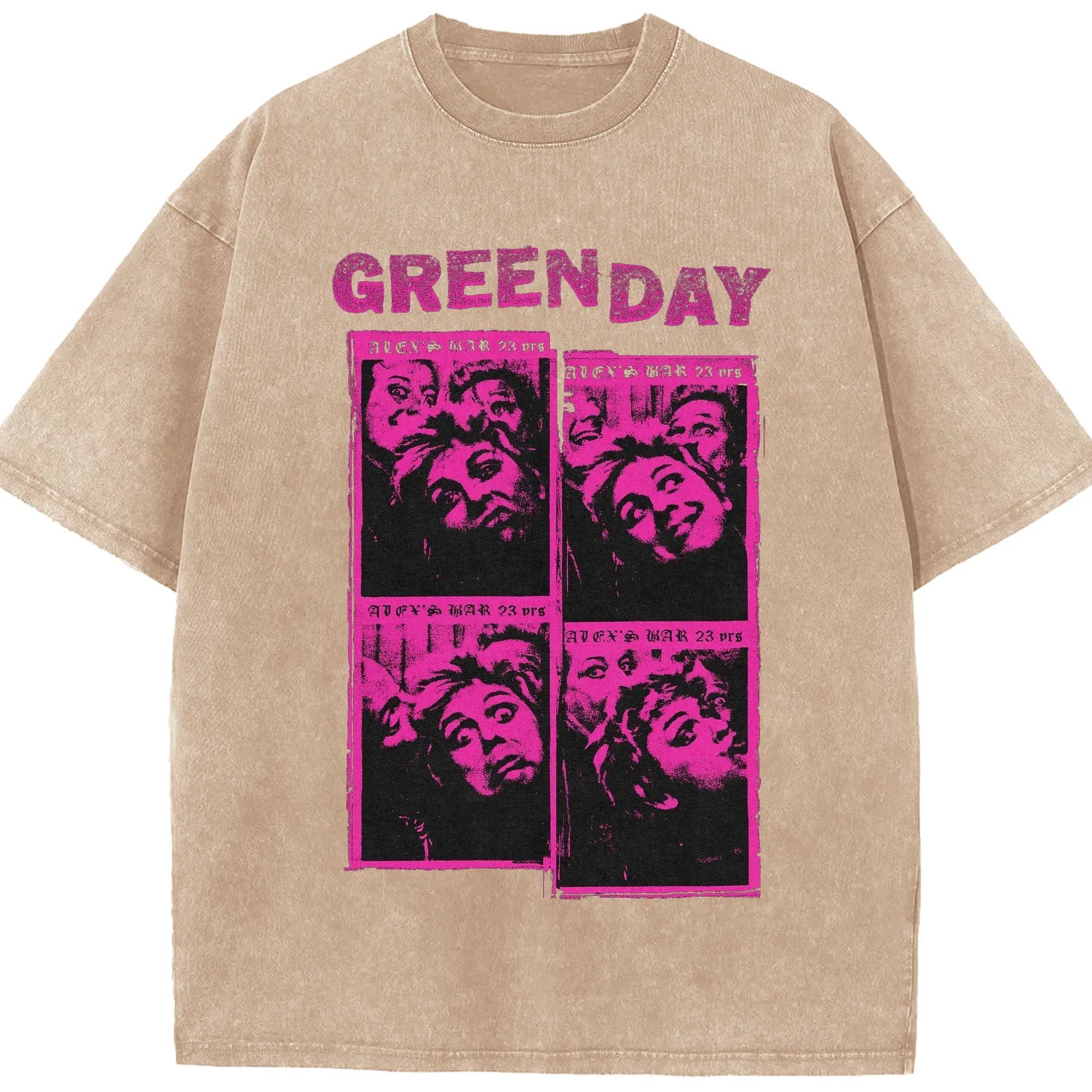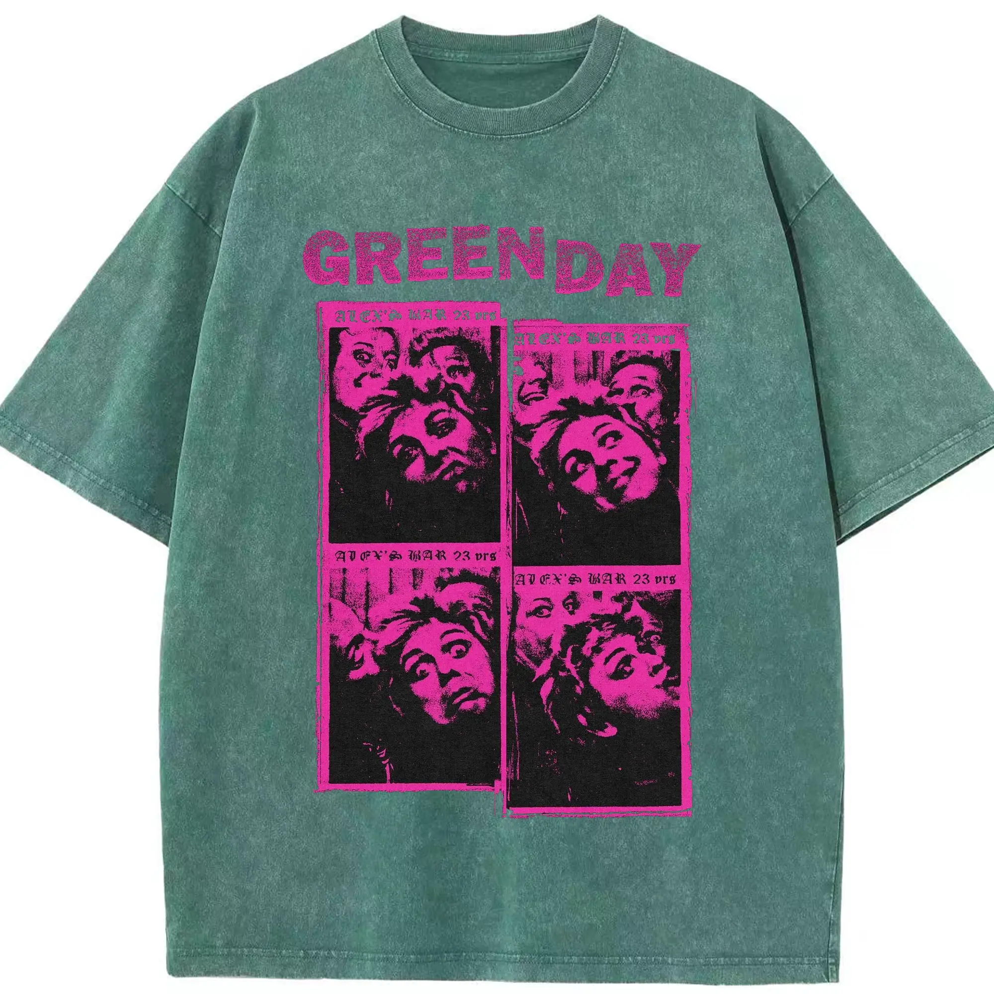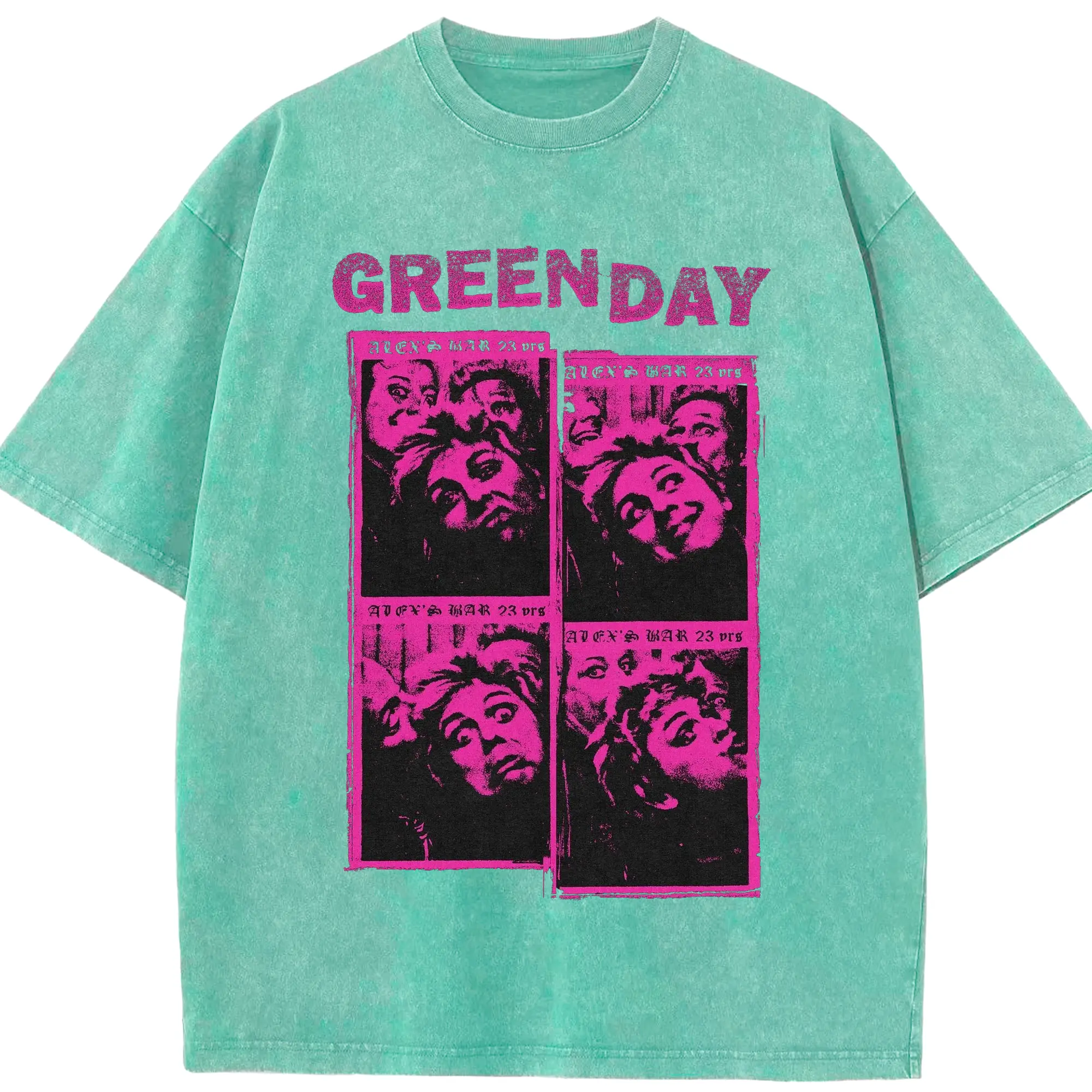 Green Day Underground Culture Shirt - Washed Vintage Look 230g Cotton Oversized T-Shirt With Front Heat Transfer Print – Soft, Lightweight, Stylish Fit – Comfortable Casual Wear For Sports & Everyday Use