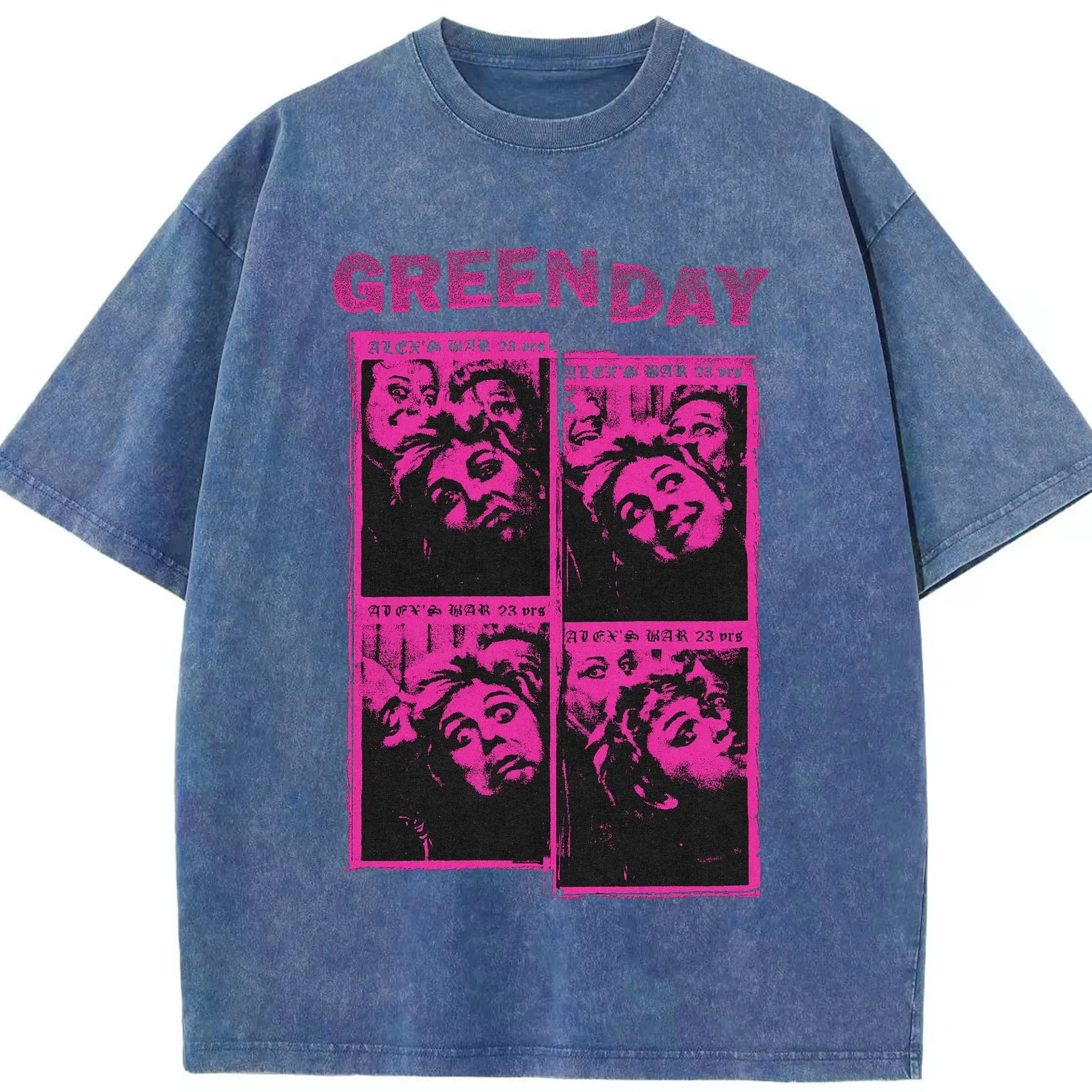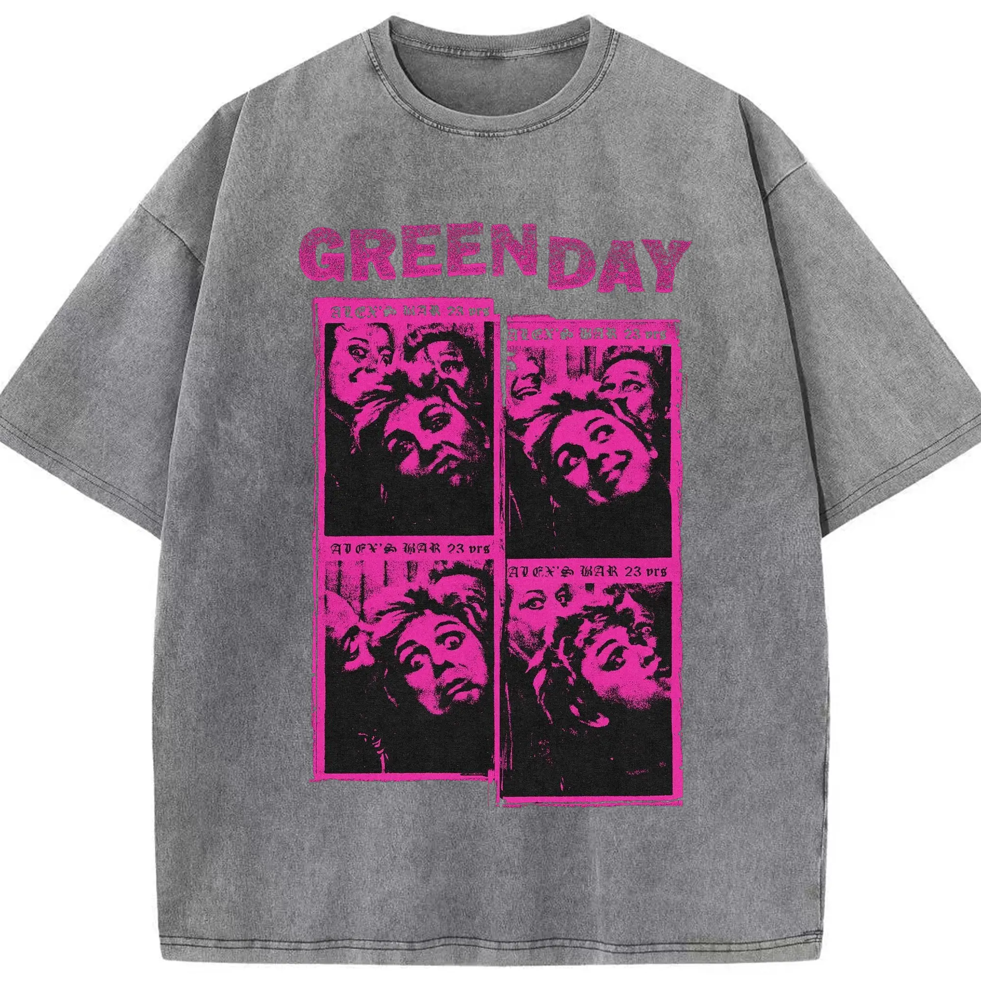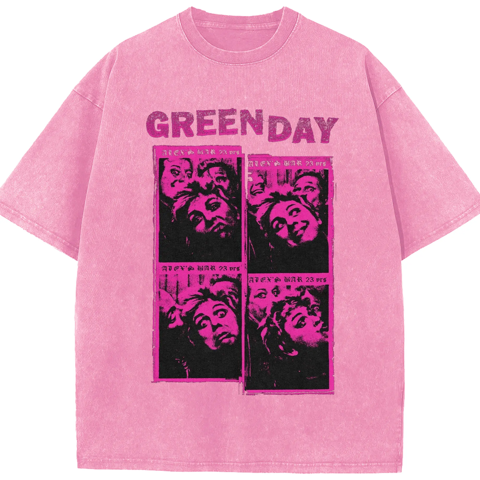 Green Day Underground Culture Shirt - Washed Vintage Look 230g Cotton Oversized T-Shirt With Front Heat Transfer Print – Soft, Lightweight, Stylish Fit – Comfortable Casual Wear For Sports & Everyday Use