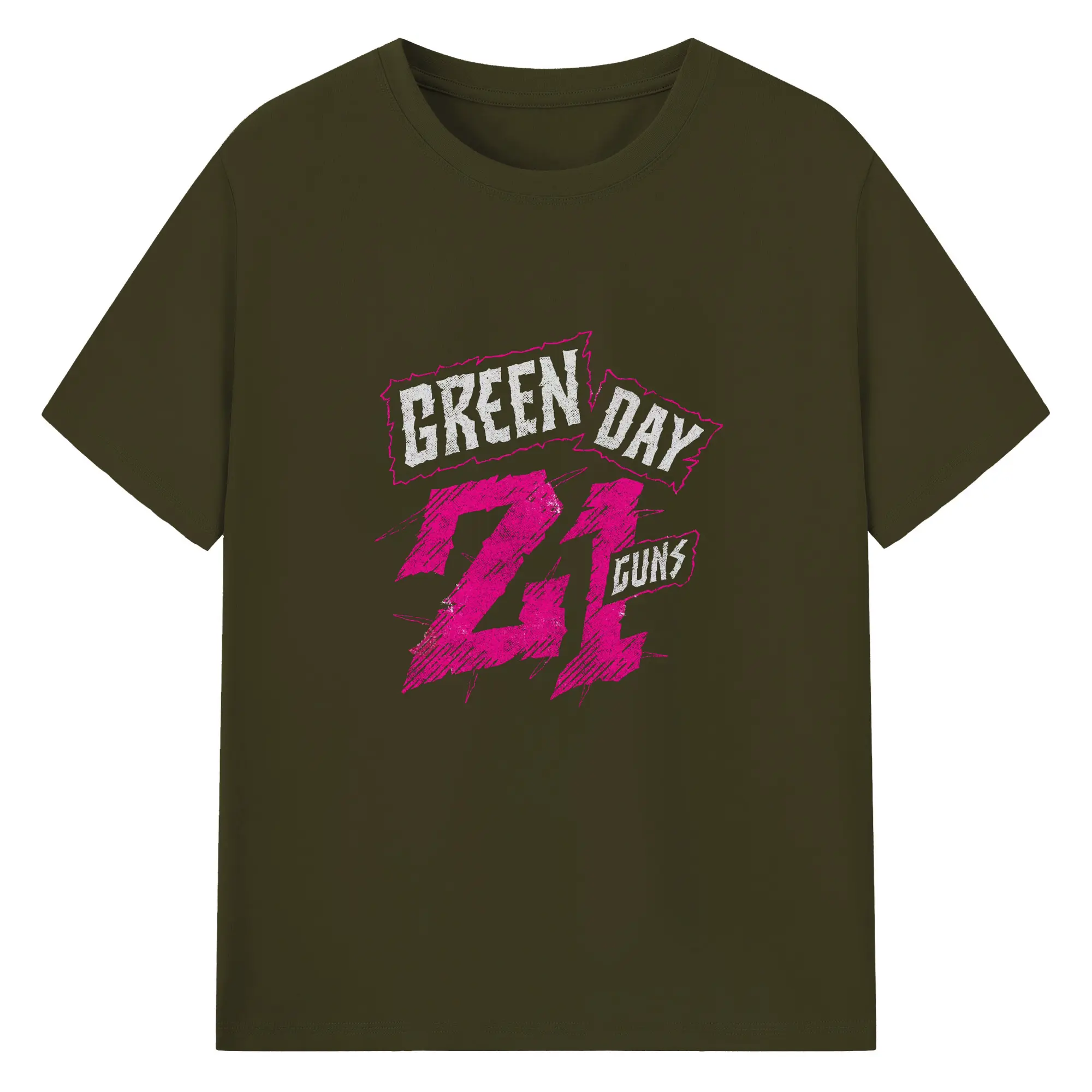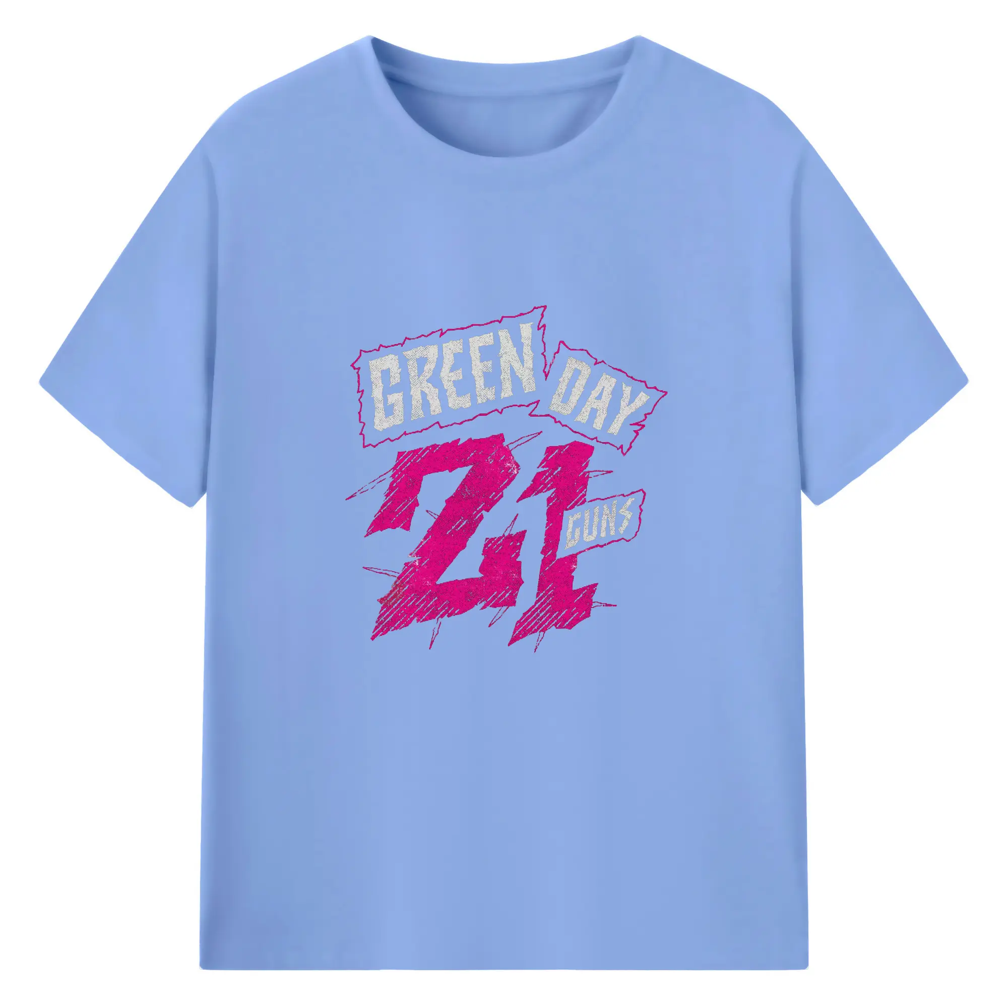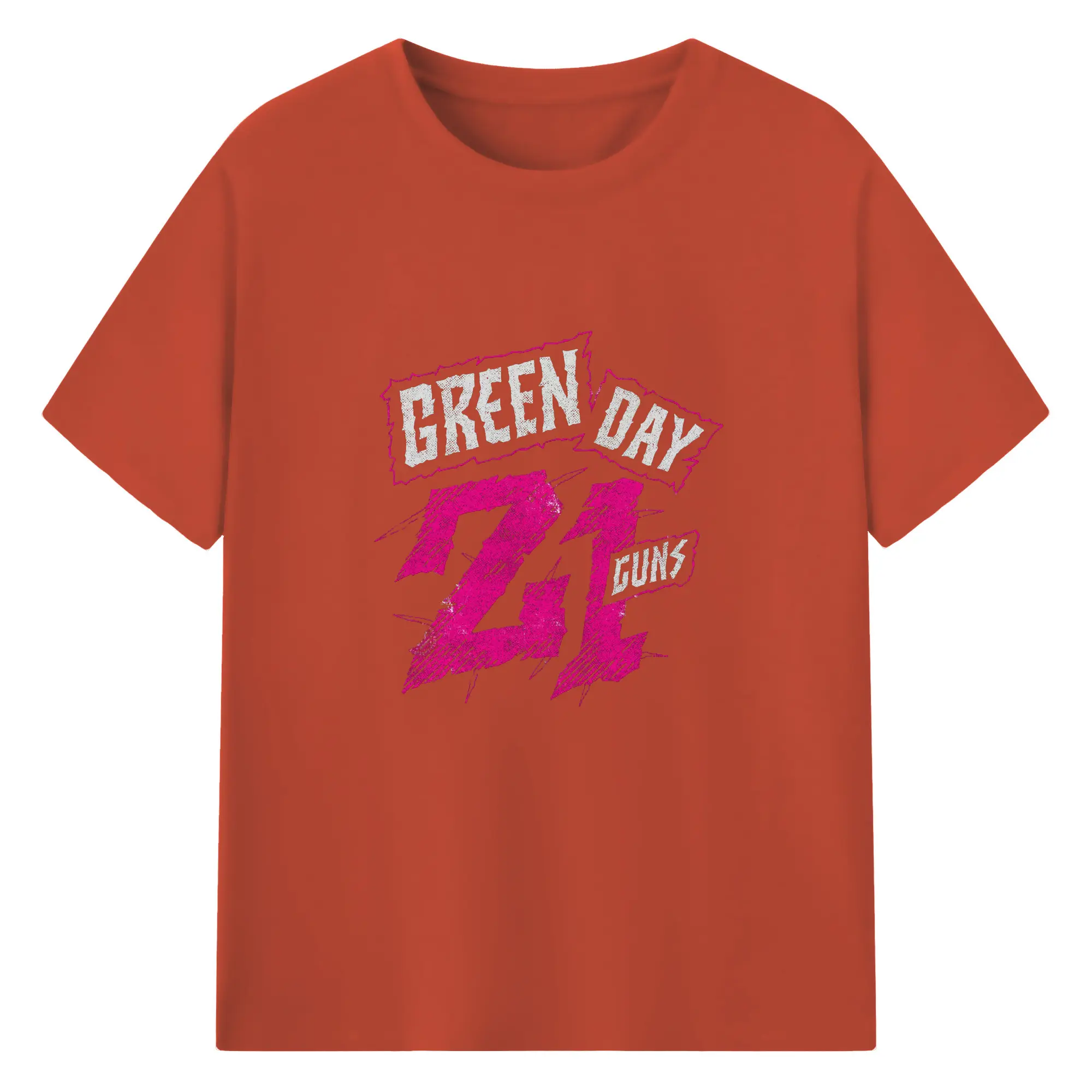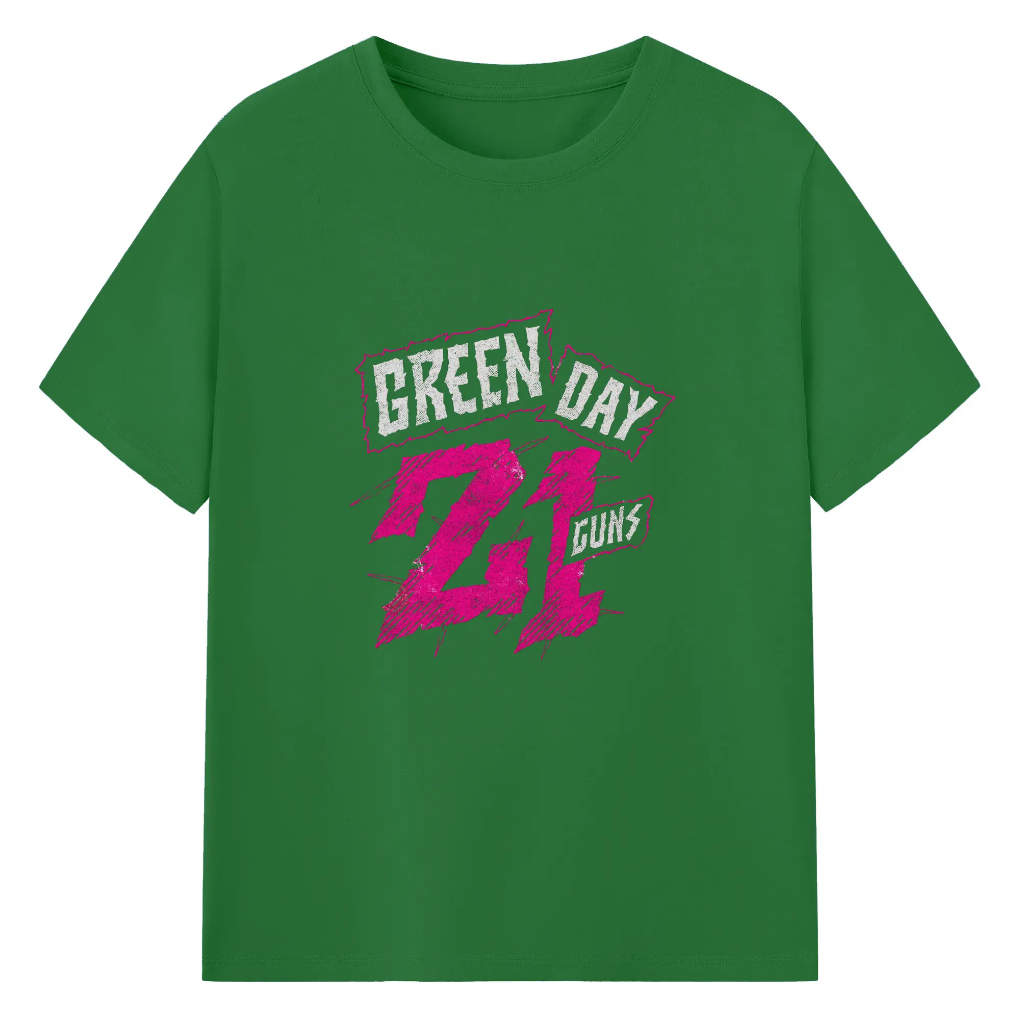 Green Day《21 Guns》Punk Rock DIY Shirt - 180g Cotton T-Shirt With Front Heat Transfer Print – Soft, Lightweight, Fitted Design – Comfortable Casual Wear For Sports & Everyday Use