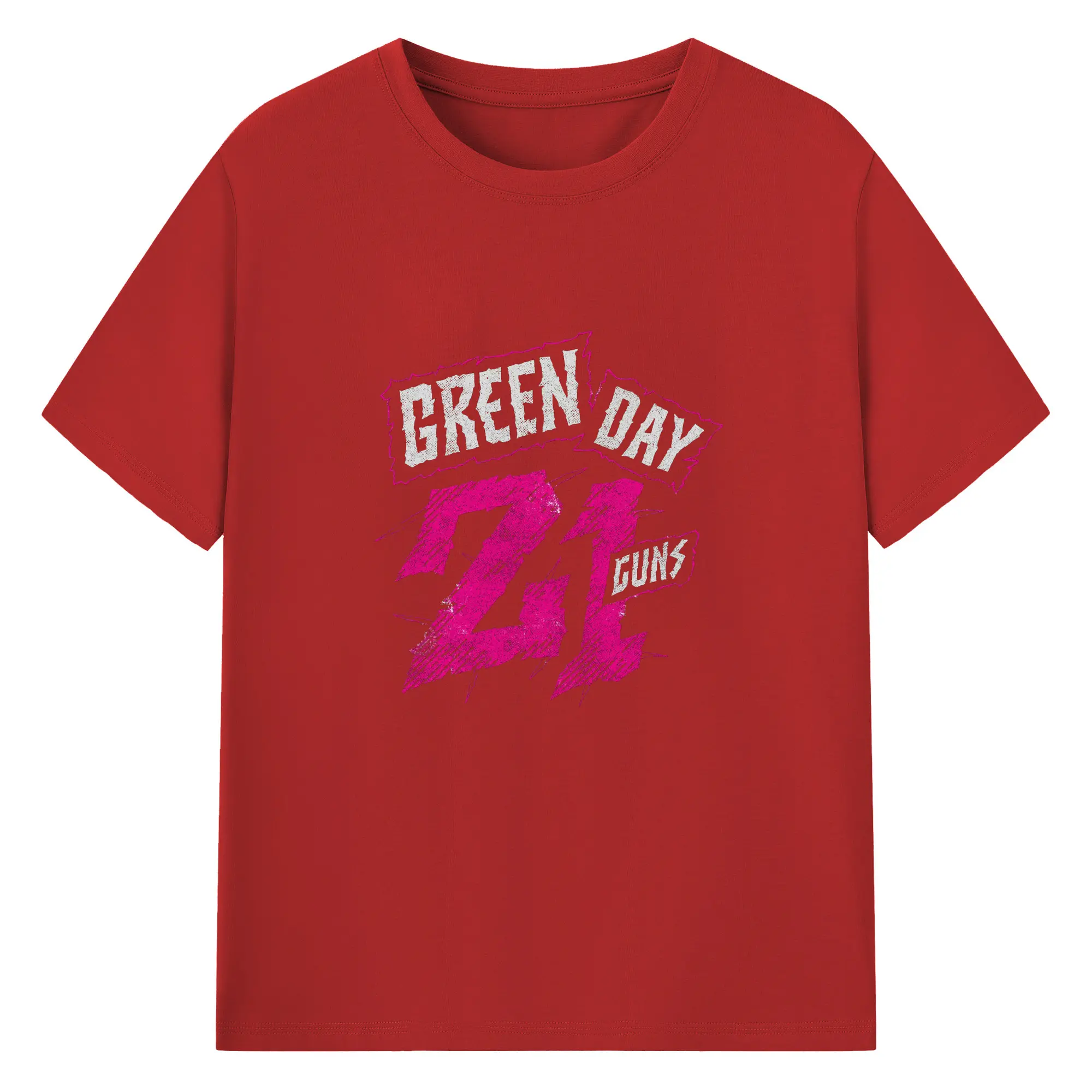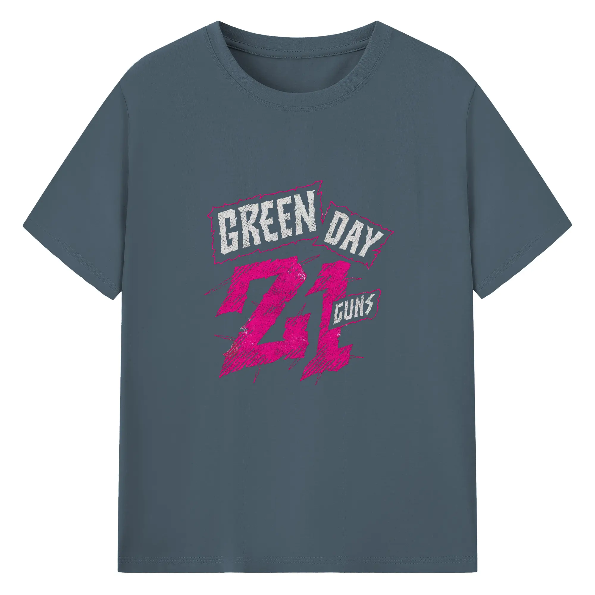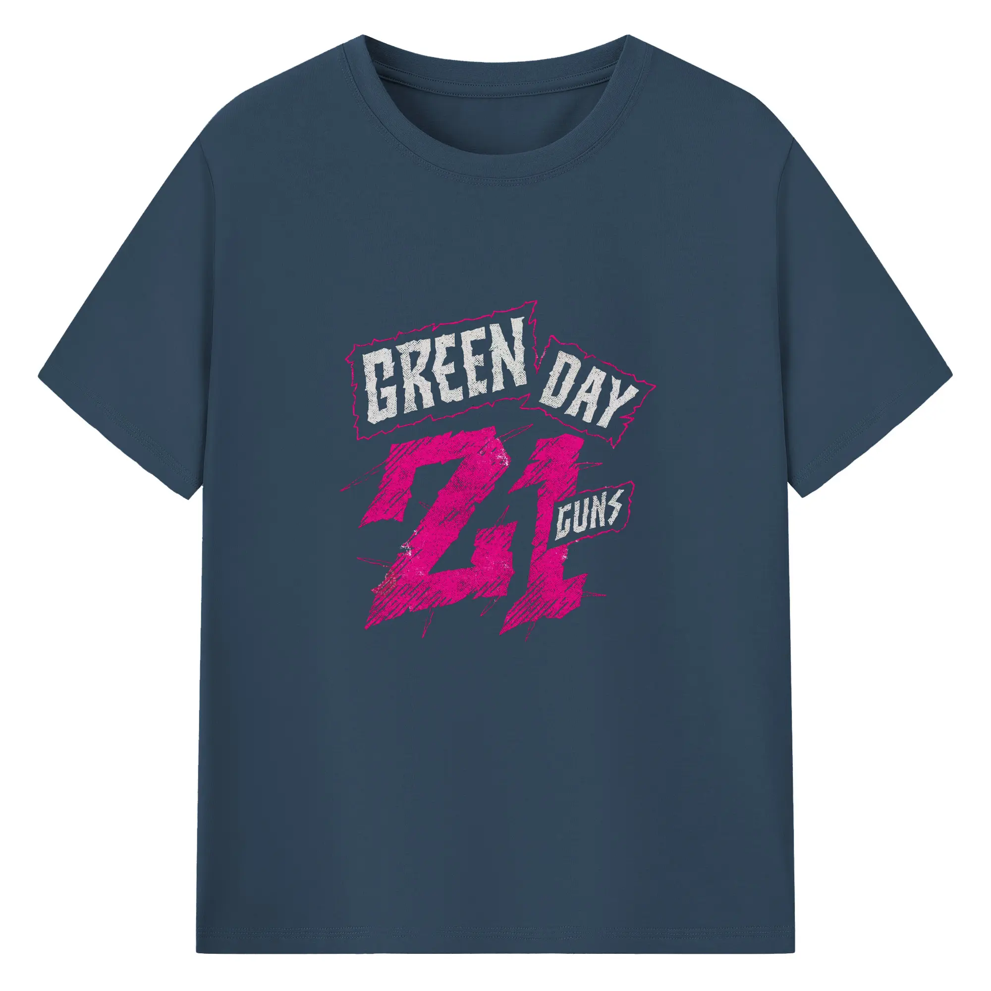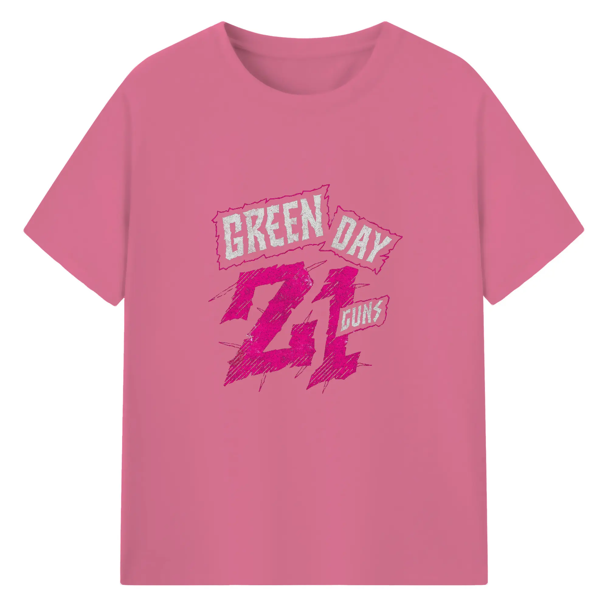 Green Day《21 Guns》Punk Rock DIY Shirt - 180g Cotton T-Shirt With Front Heat Transfer Print – Soft, Lightweight, Fitted Design – Comfortable Casual Wear For Sports & Everyday Use