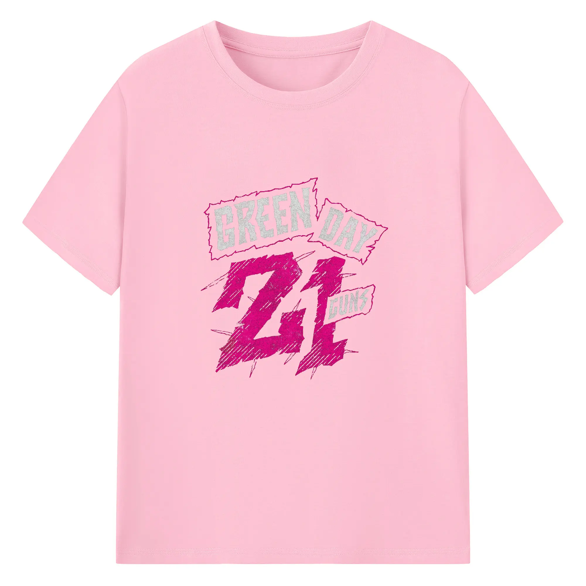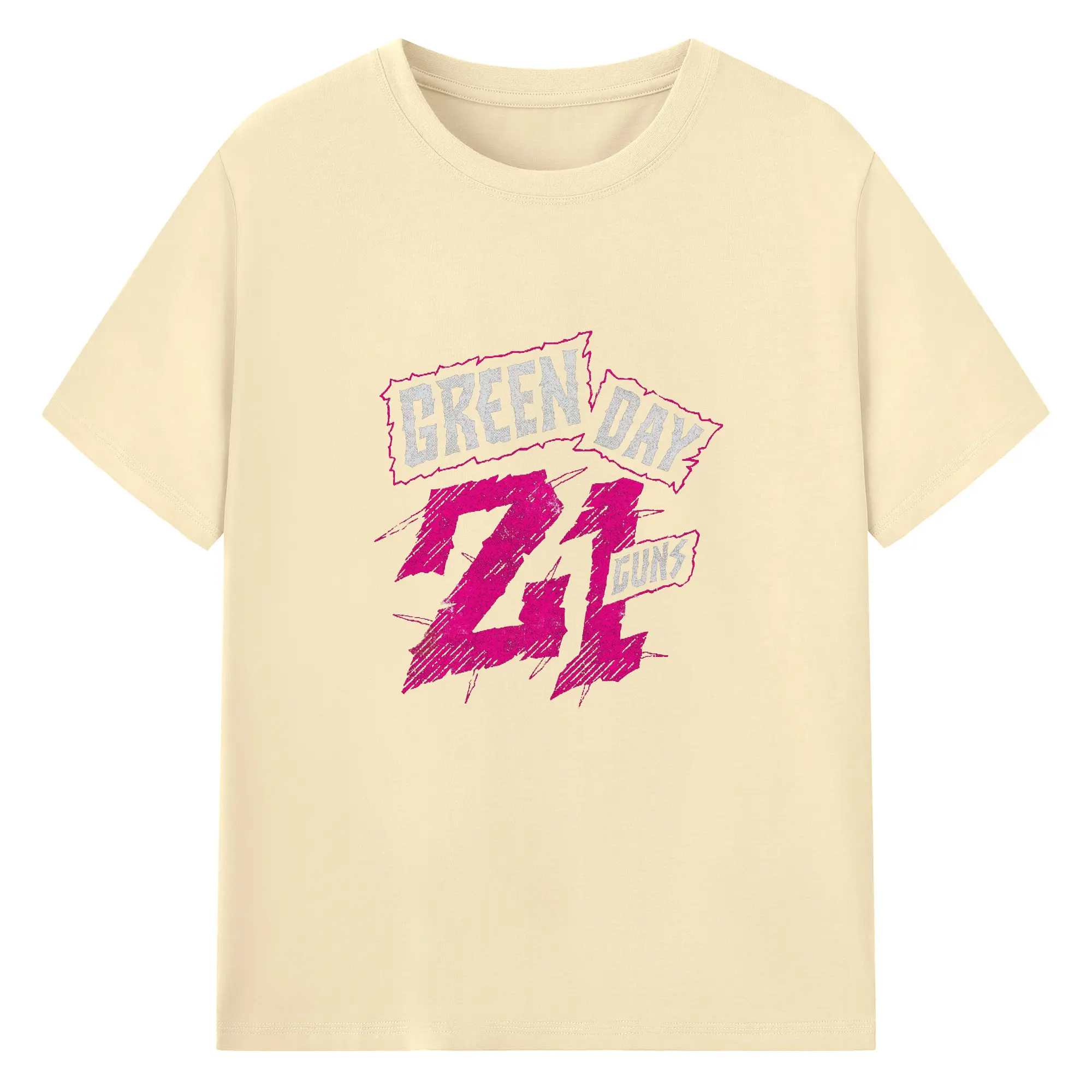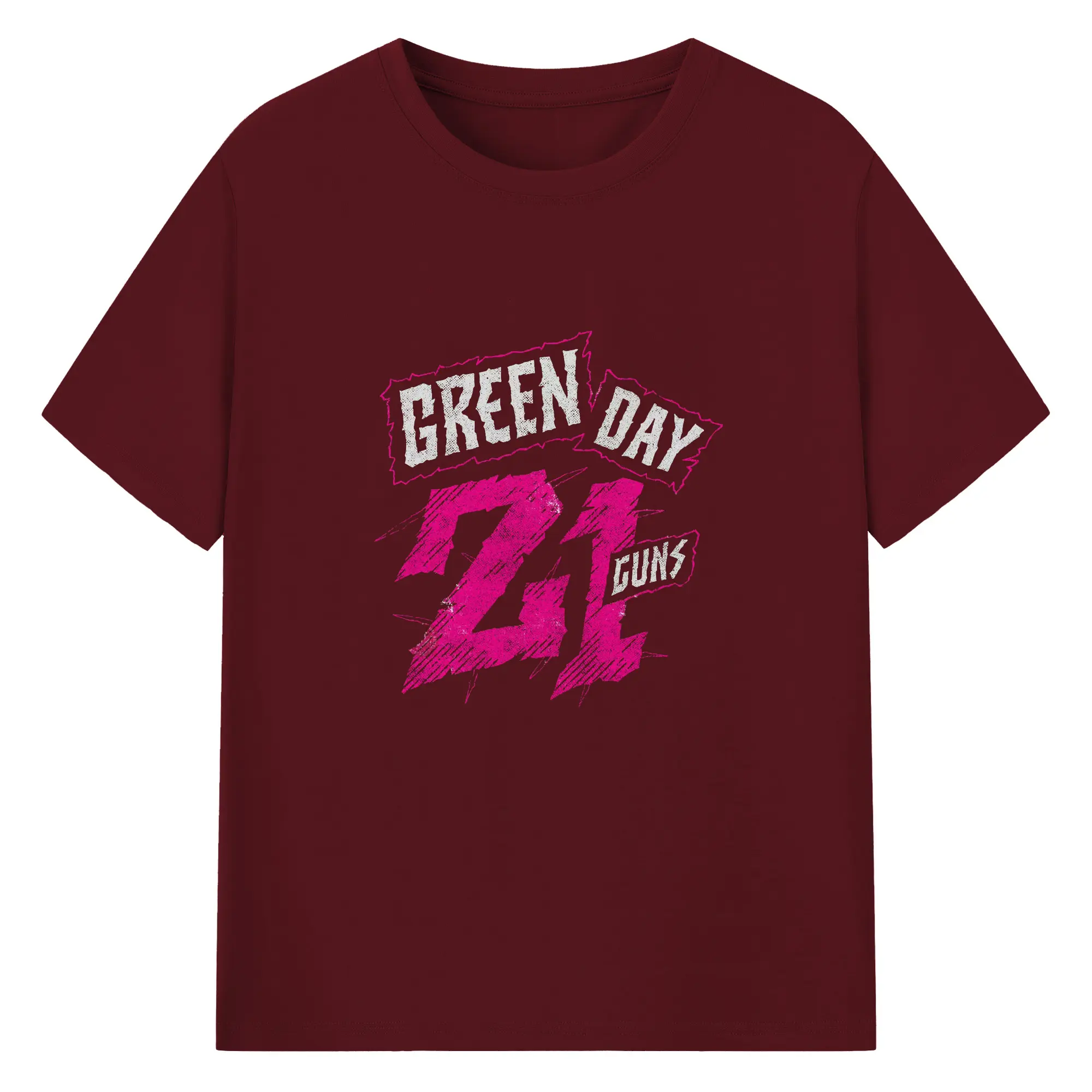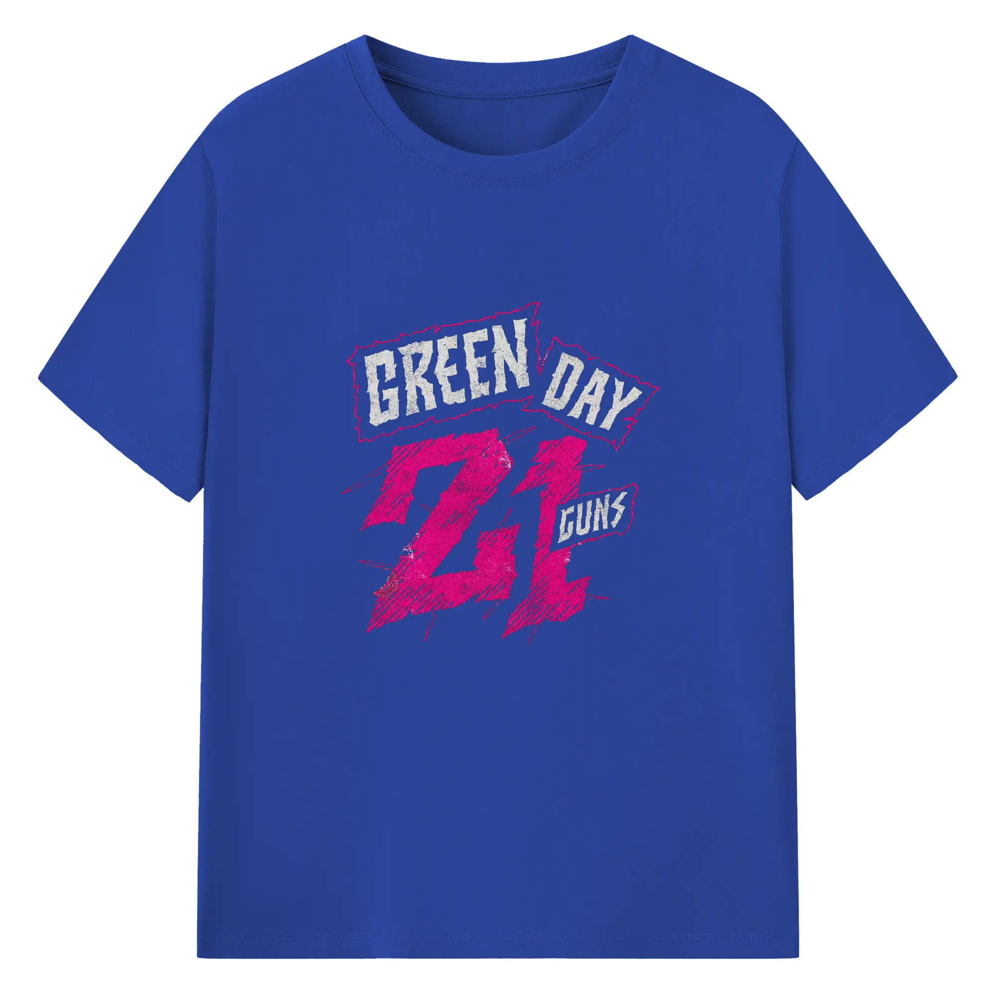 Green Day《21 Guns》Punk Rock DIY Shirt - 180g Cotton T-Shirt With Front Heat Transfer Print – Soft, Lightweight, Fitted Design – Comfortable Casual Wear For Sports & Everyday Use