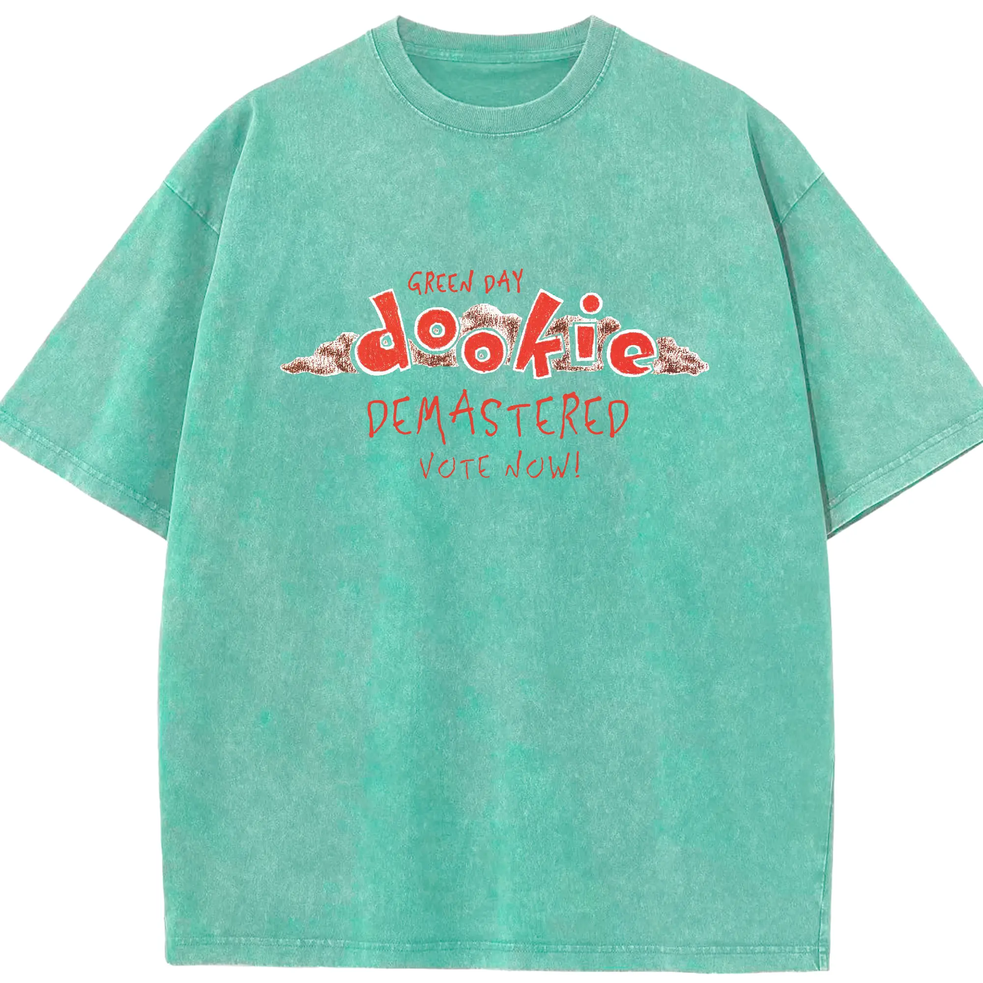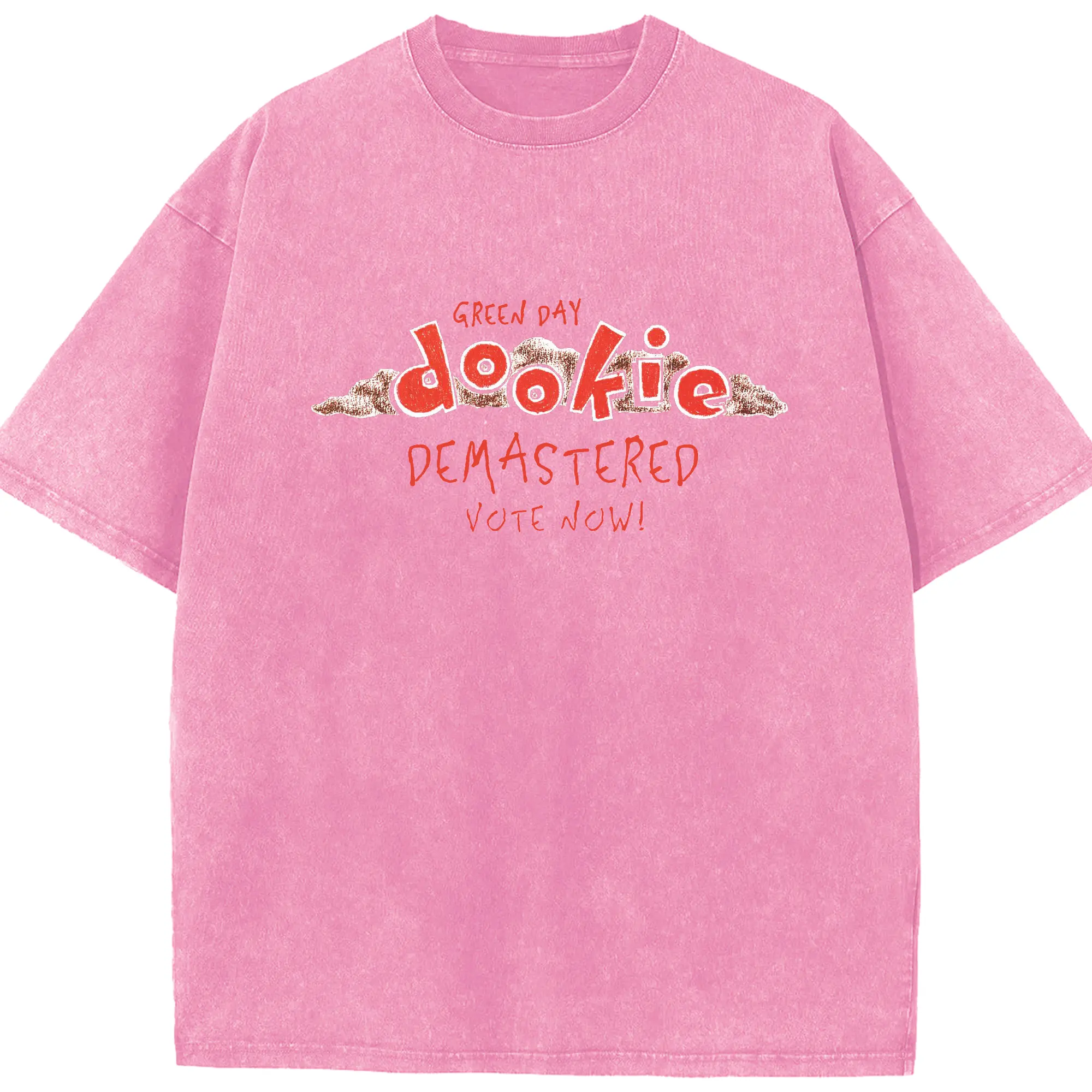 Green Day《Dookie》Album Punk Rock DIY Shirt - Washed Vintage Look 230g Cotton Oversized T-Shirt With Front Heat Transfer Print – Soft, Lightweight, Stylish Fit – Comfortable Casual Wear For Sports & Everyday Use