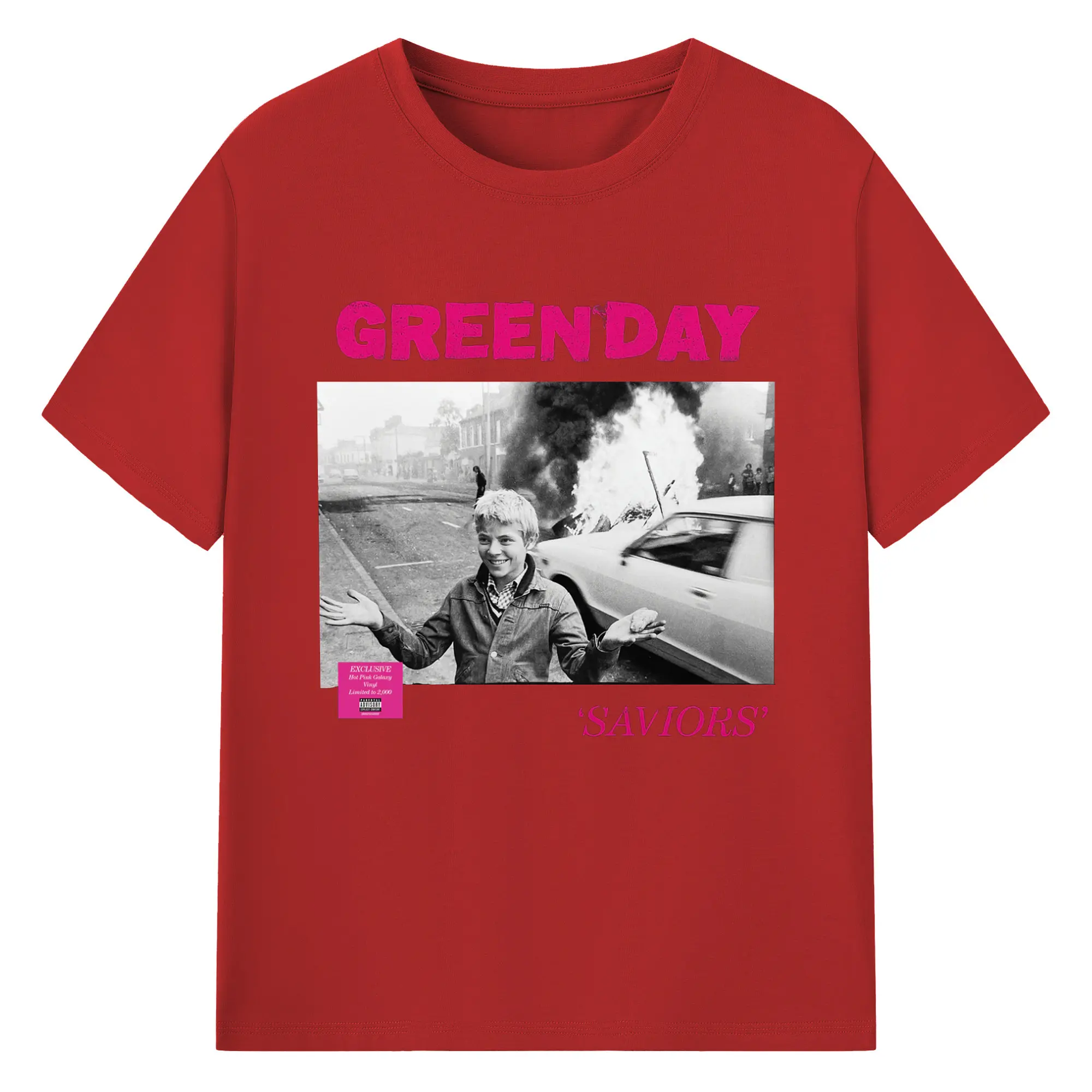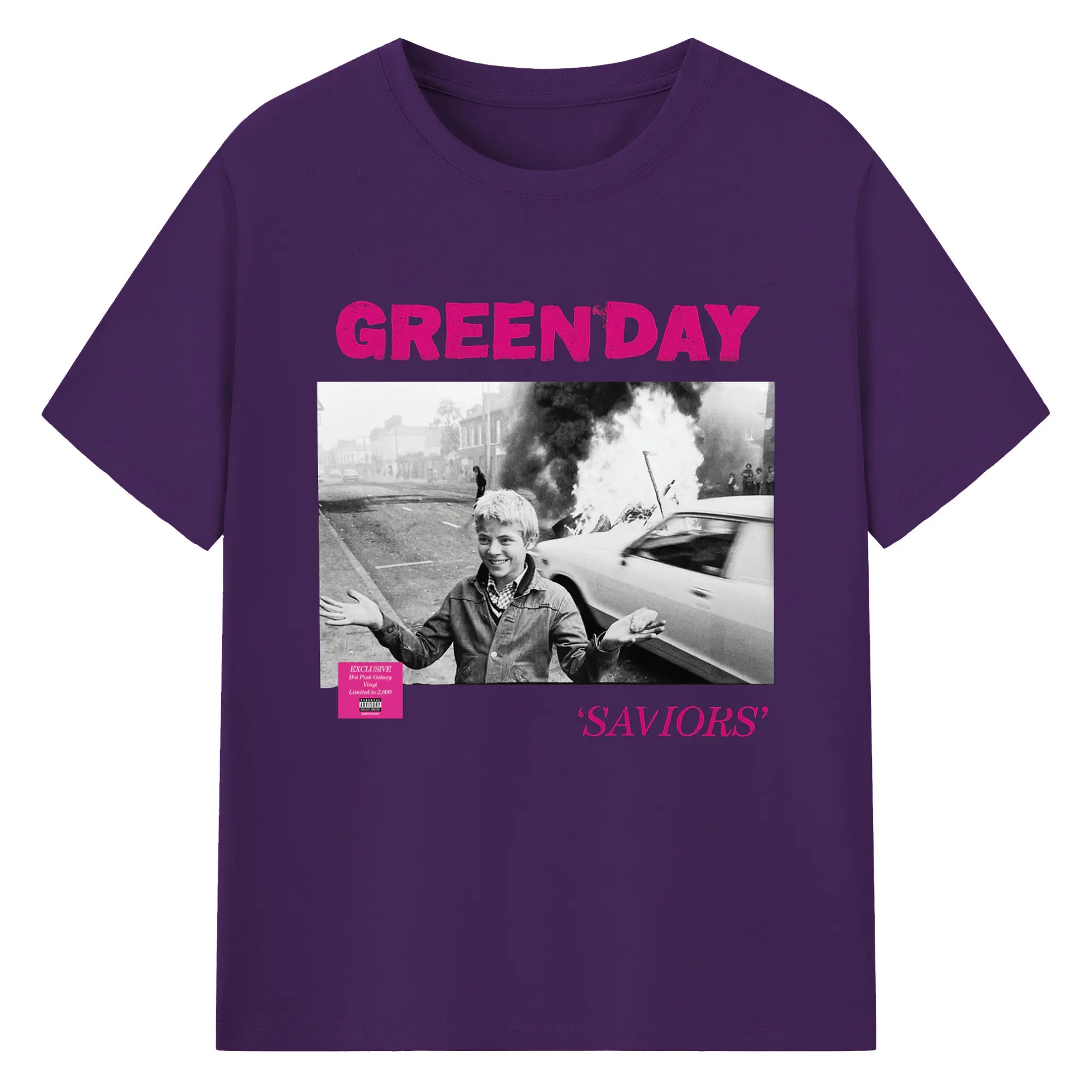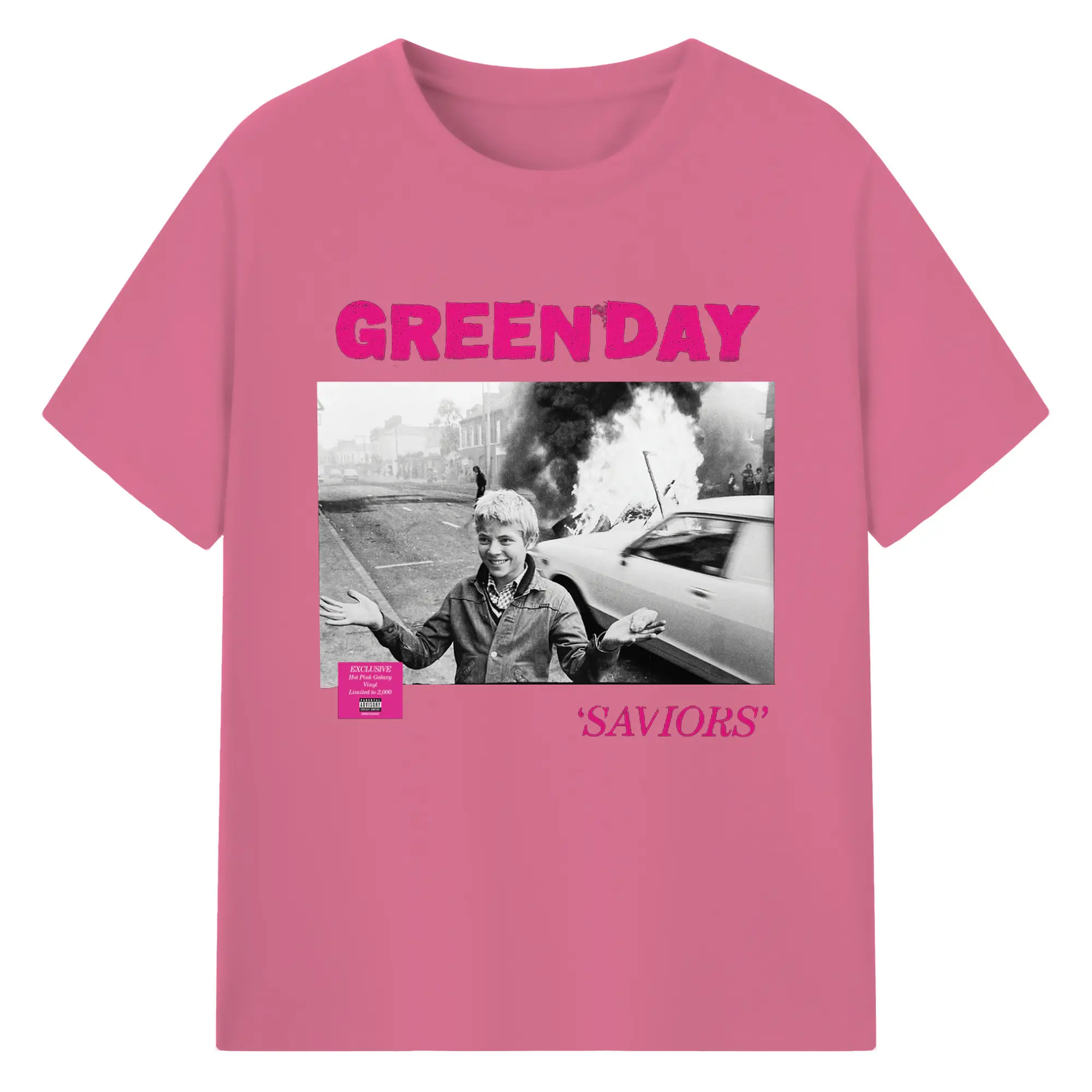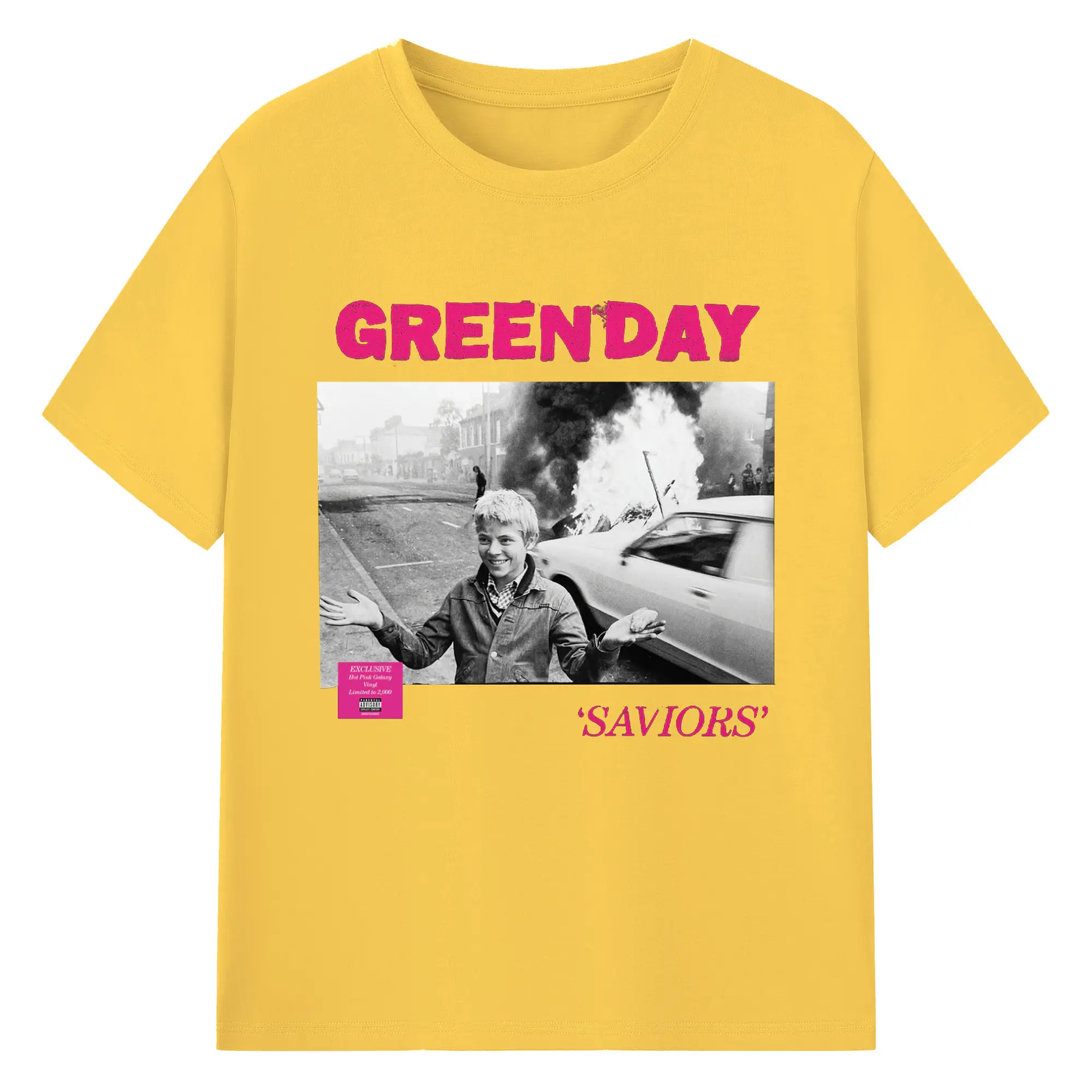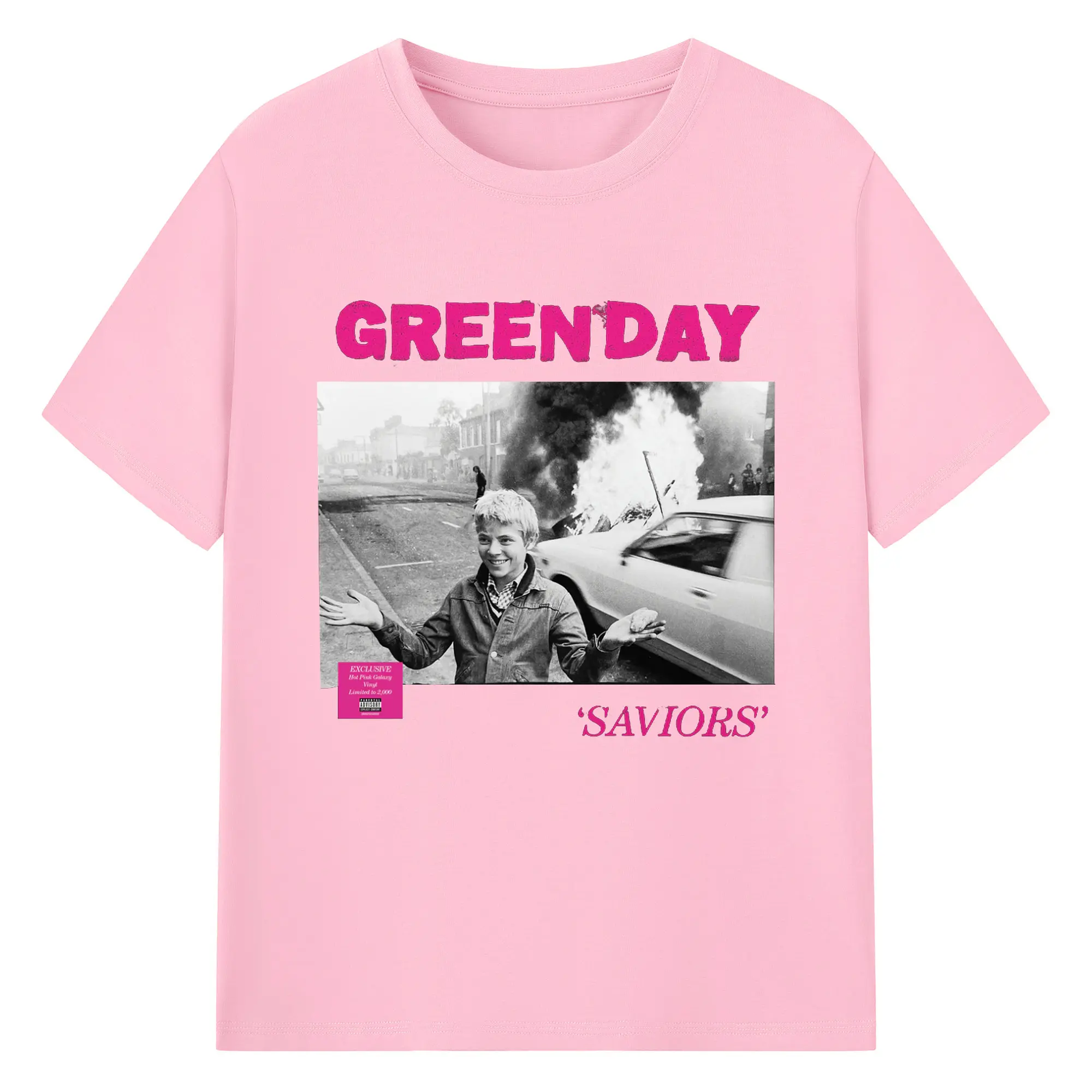 Green Day《Saviors》Punk Rock DIY Shirt - 180g Cotton T-Shirt With Front Heat Transfer Print – Soft, Lightweight, Fitted Design – Comfortable Casual Wear For Sports & Everyday Use