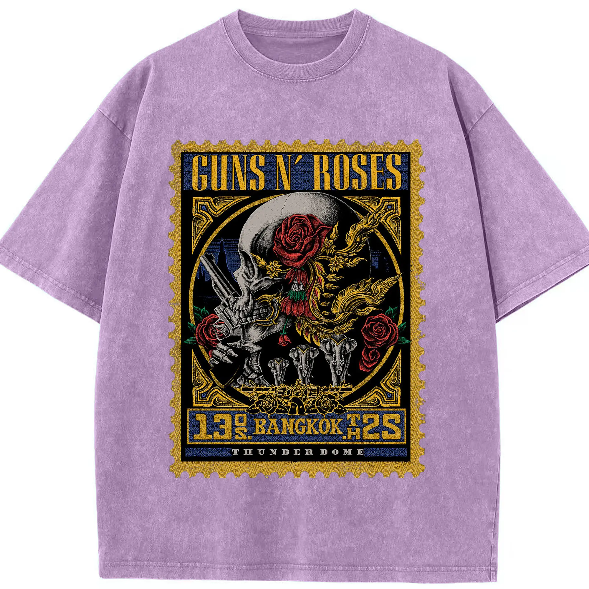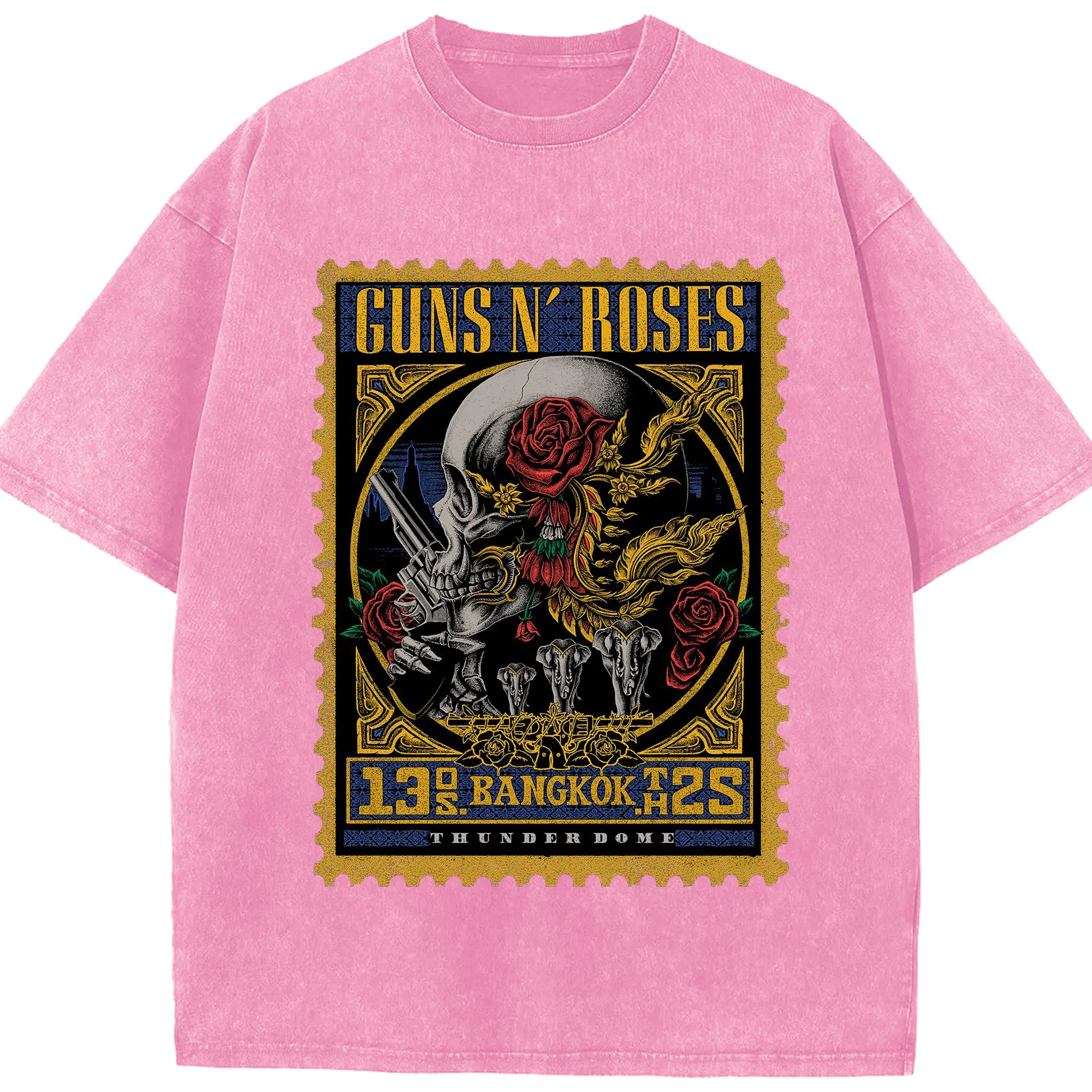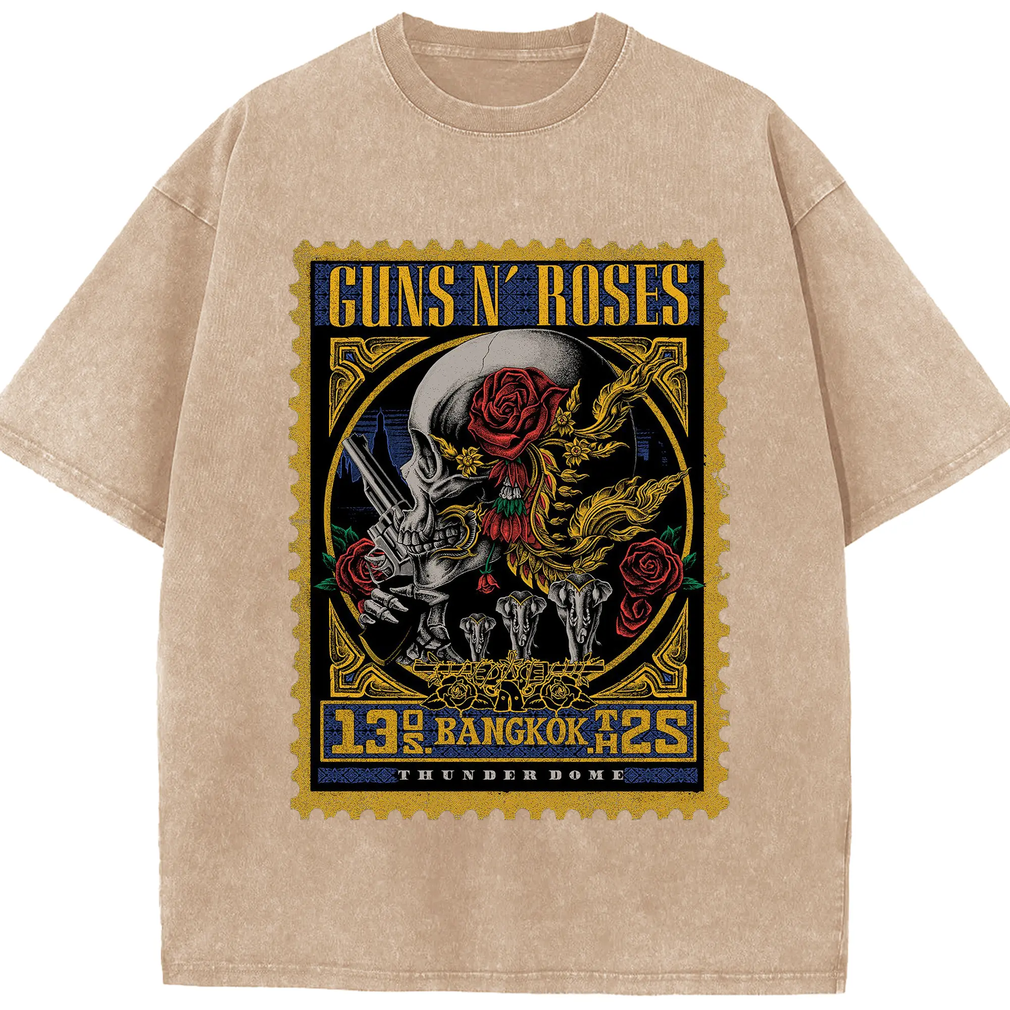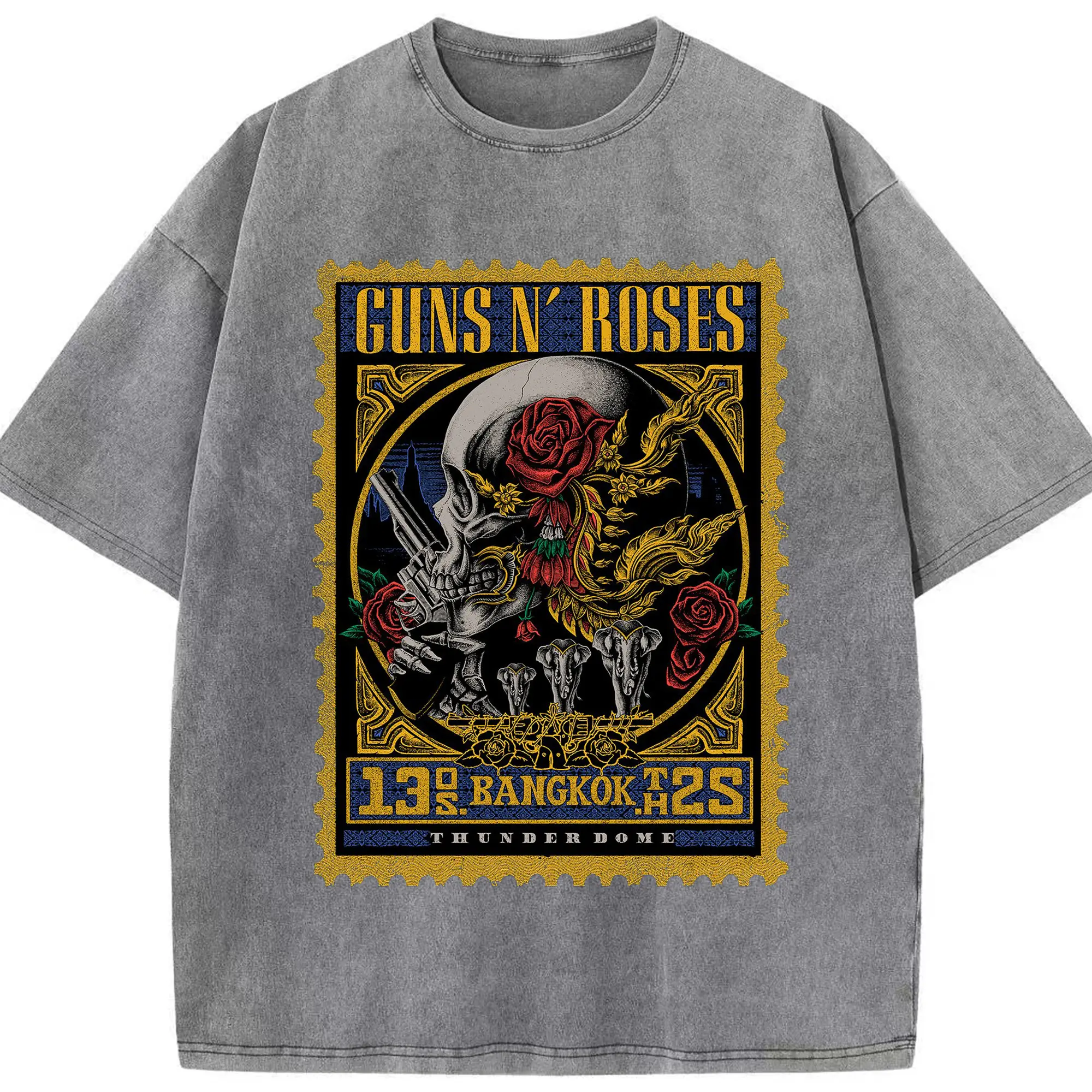 Guns N' Roses BANGKOK City Limited Shirt - Washed Vintage Look 230g Cotton Oversized T-Shirt With Front Heat Transfer Print – Soft, Lightweight, Stylish Fit – Comfortable Casual Wear For Sports & Everyday Use